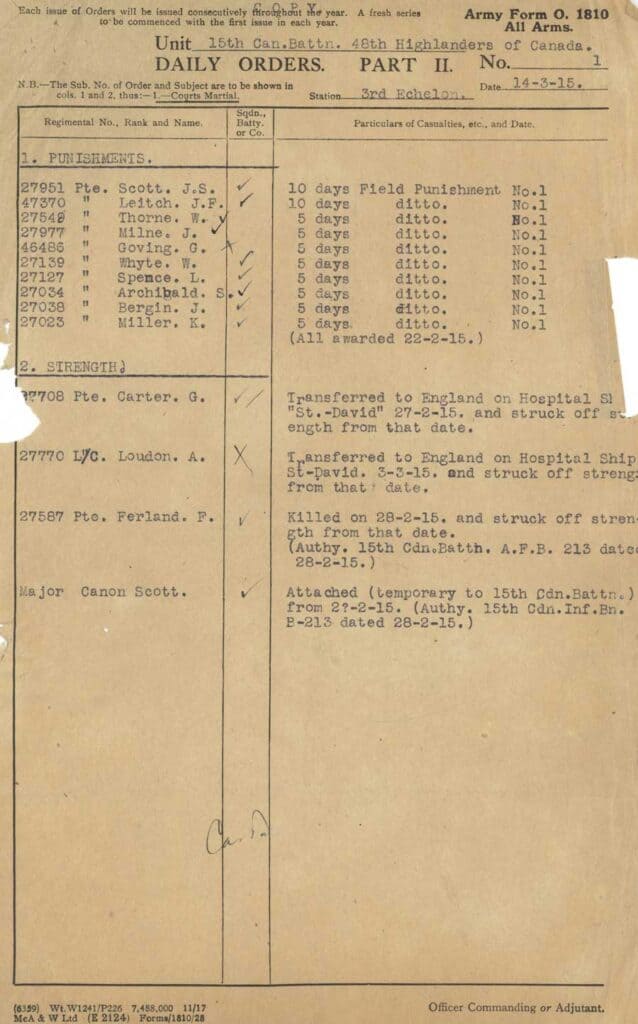 PT II Daily Orders were numbered sequentially by year and in the case of the 15th Battalion the sequence of the PT II Daily Orders that have survived are complete for the years 1915, 1917, 1918 and 1919. However, the 1916 sequence is missing #s 1 to 13.