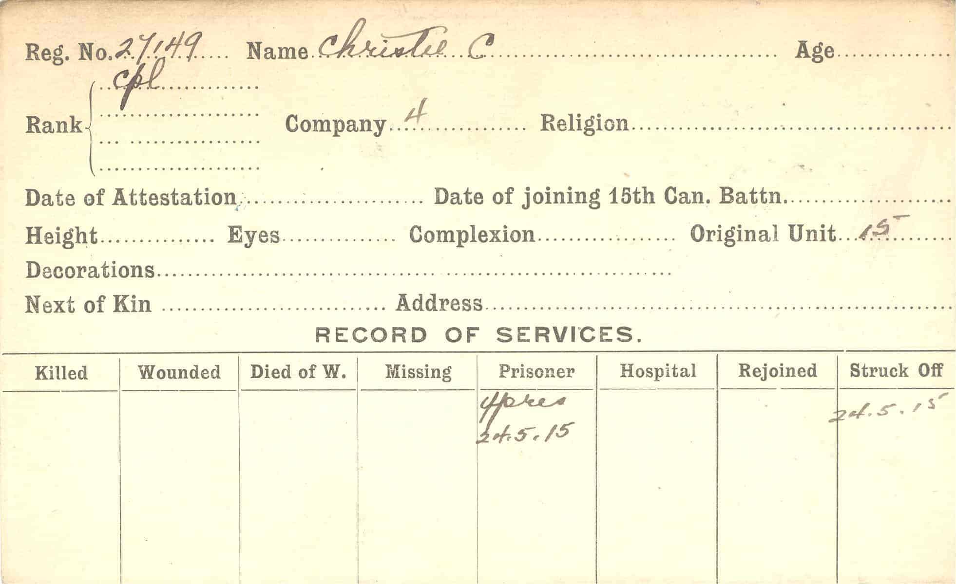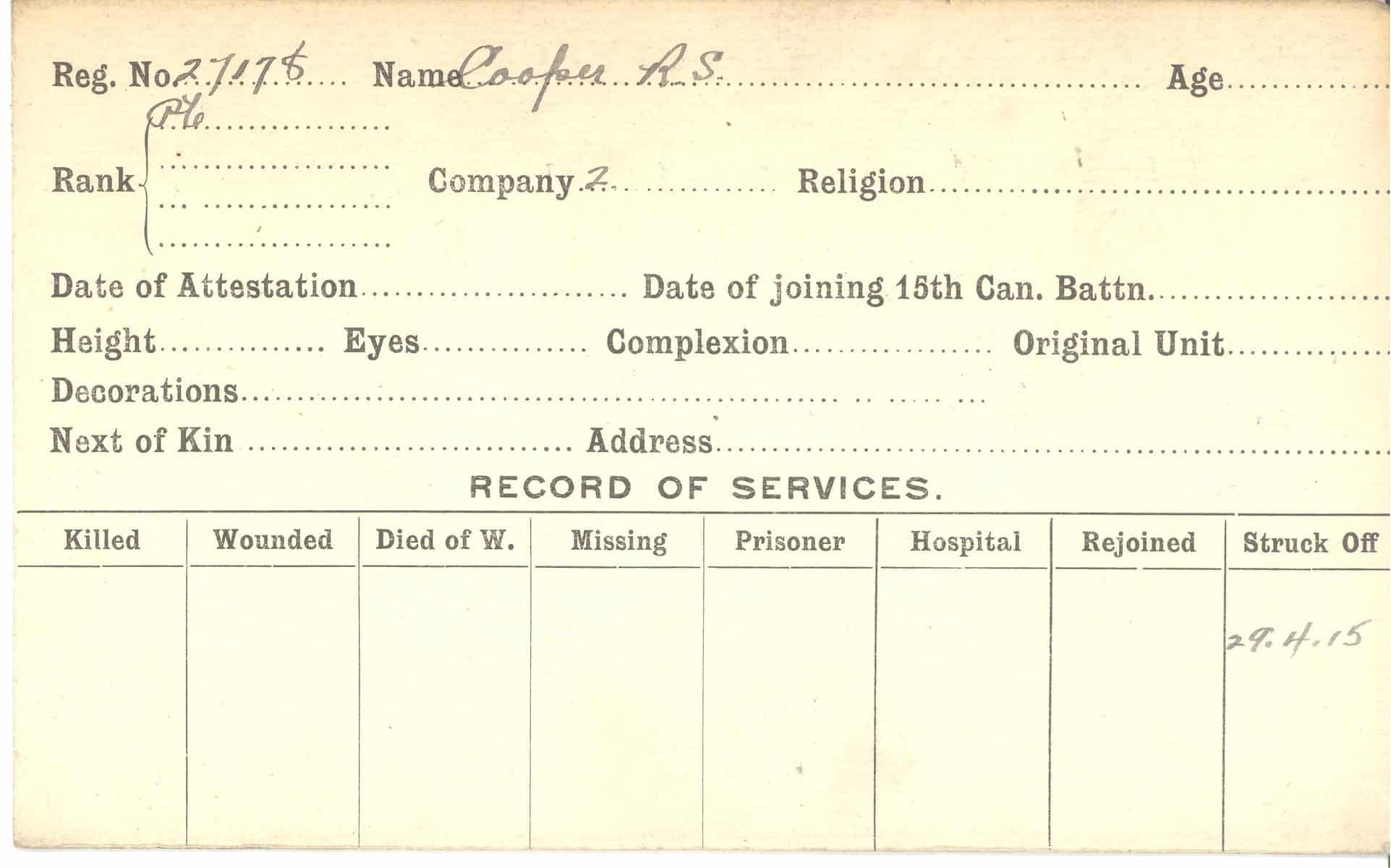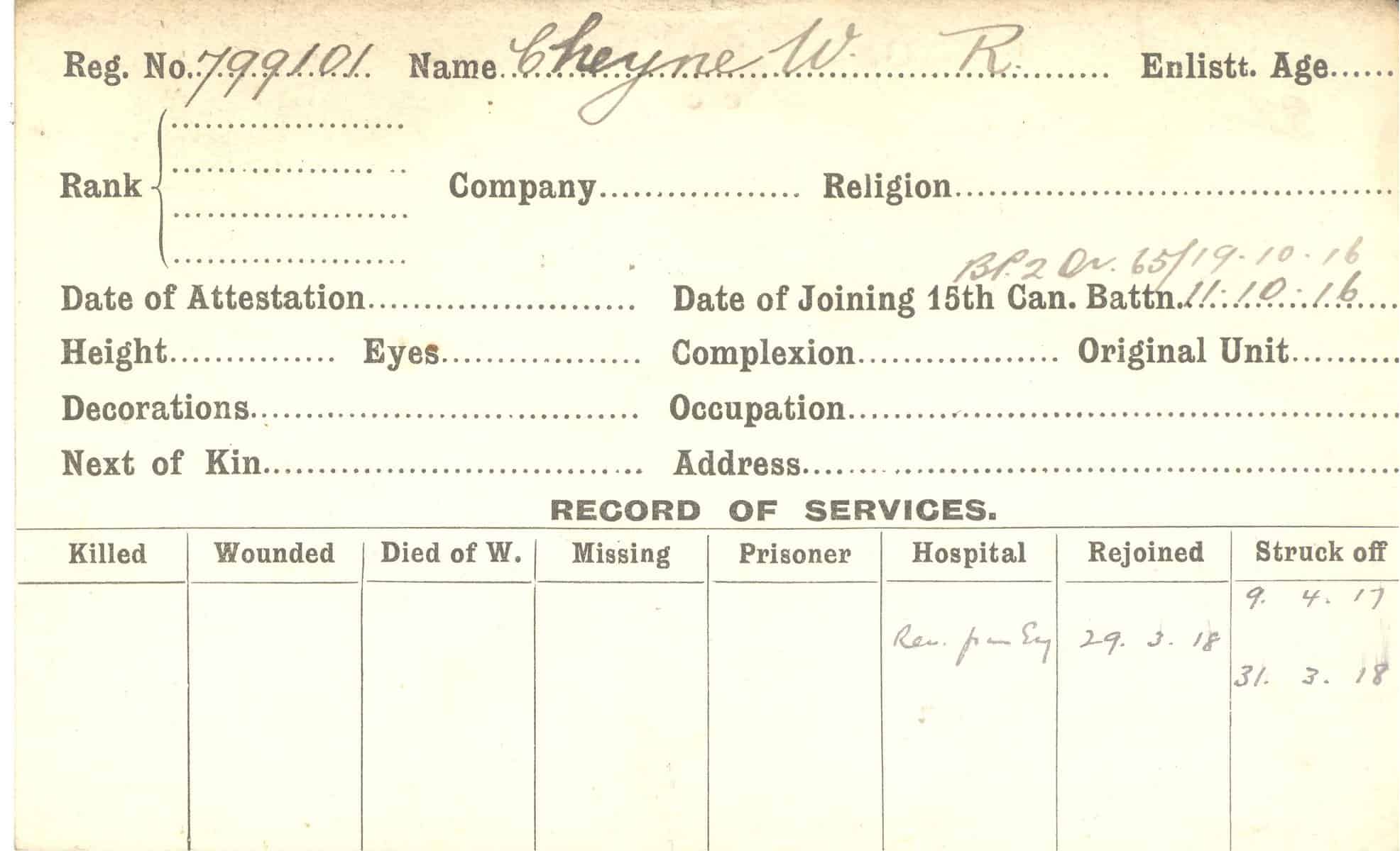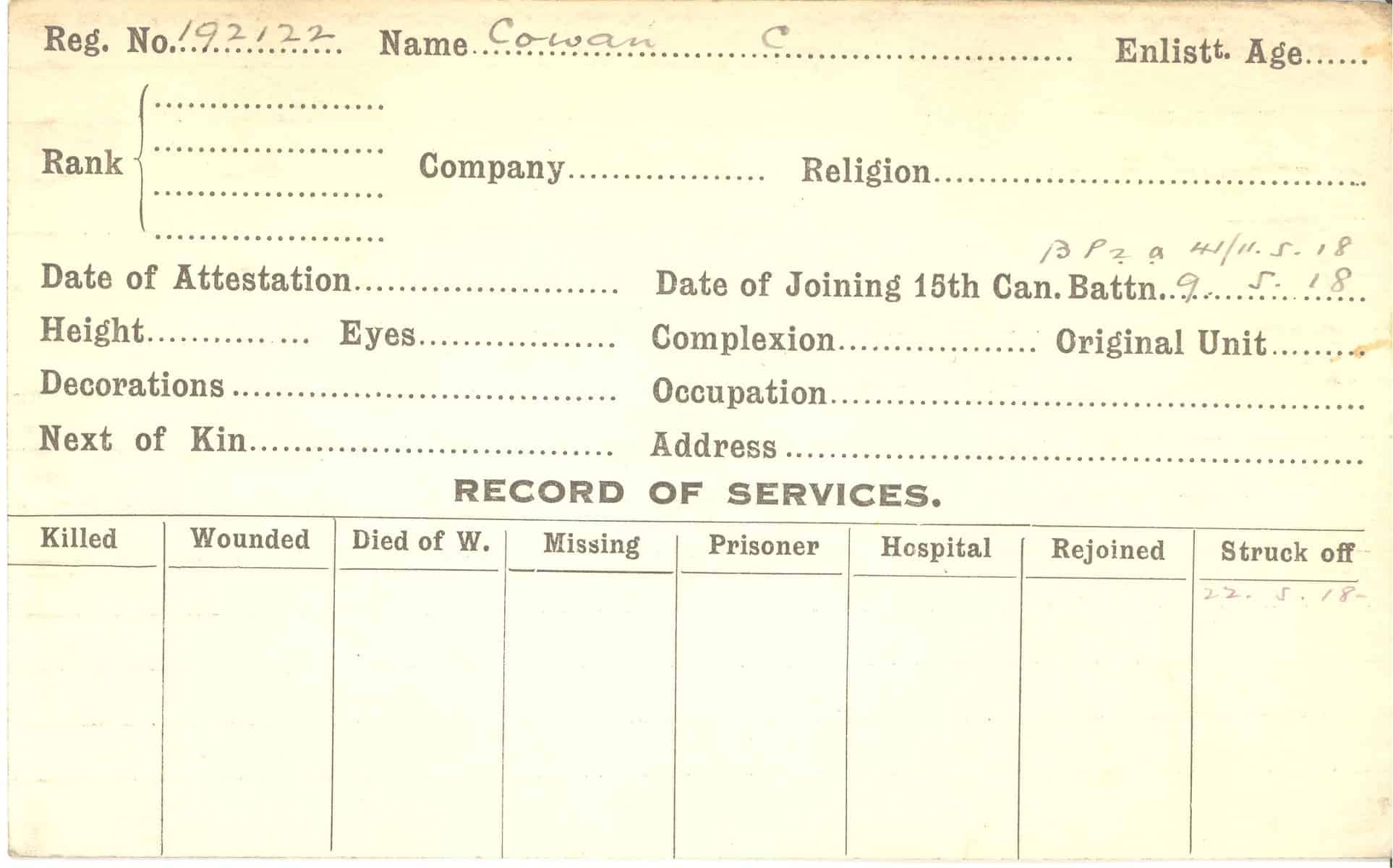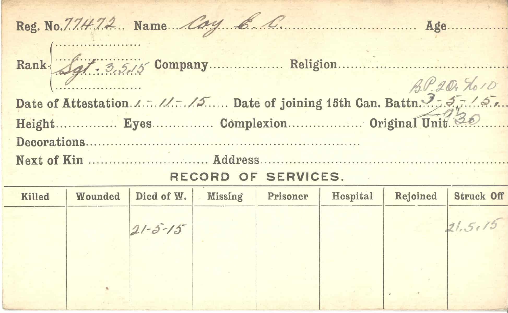 Record of Service Cards – C