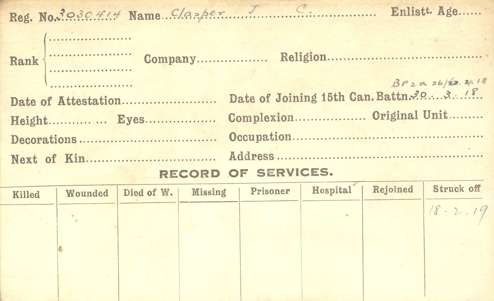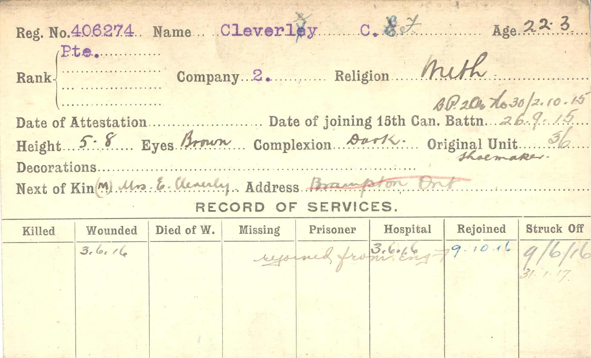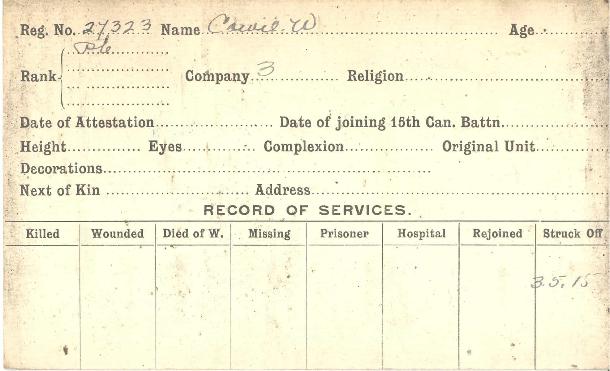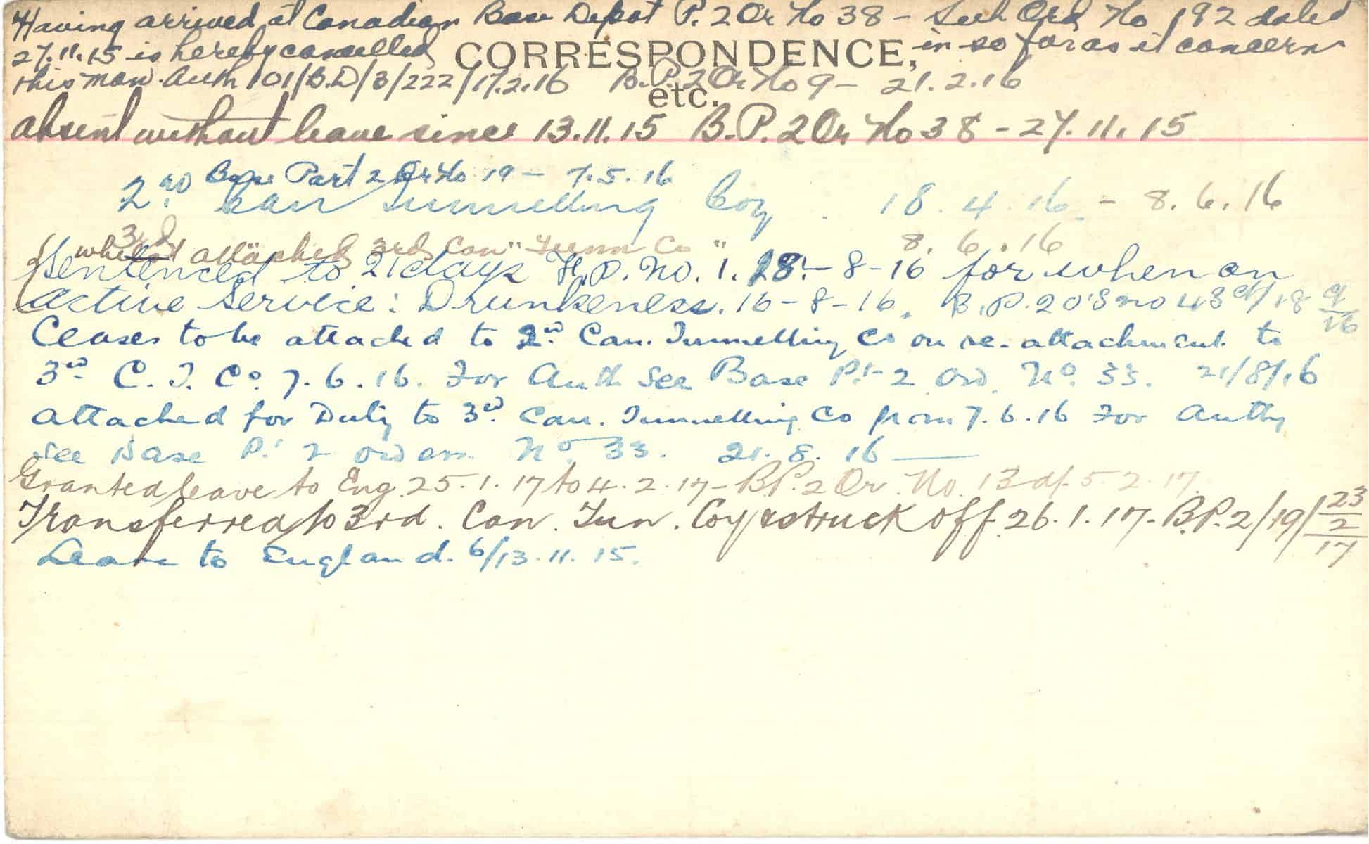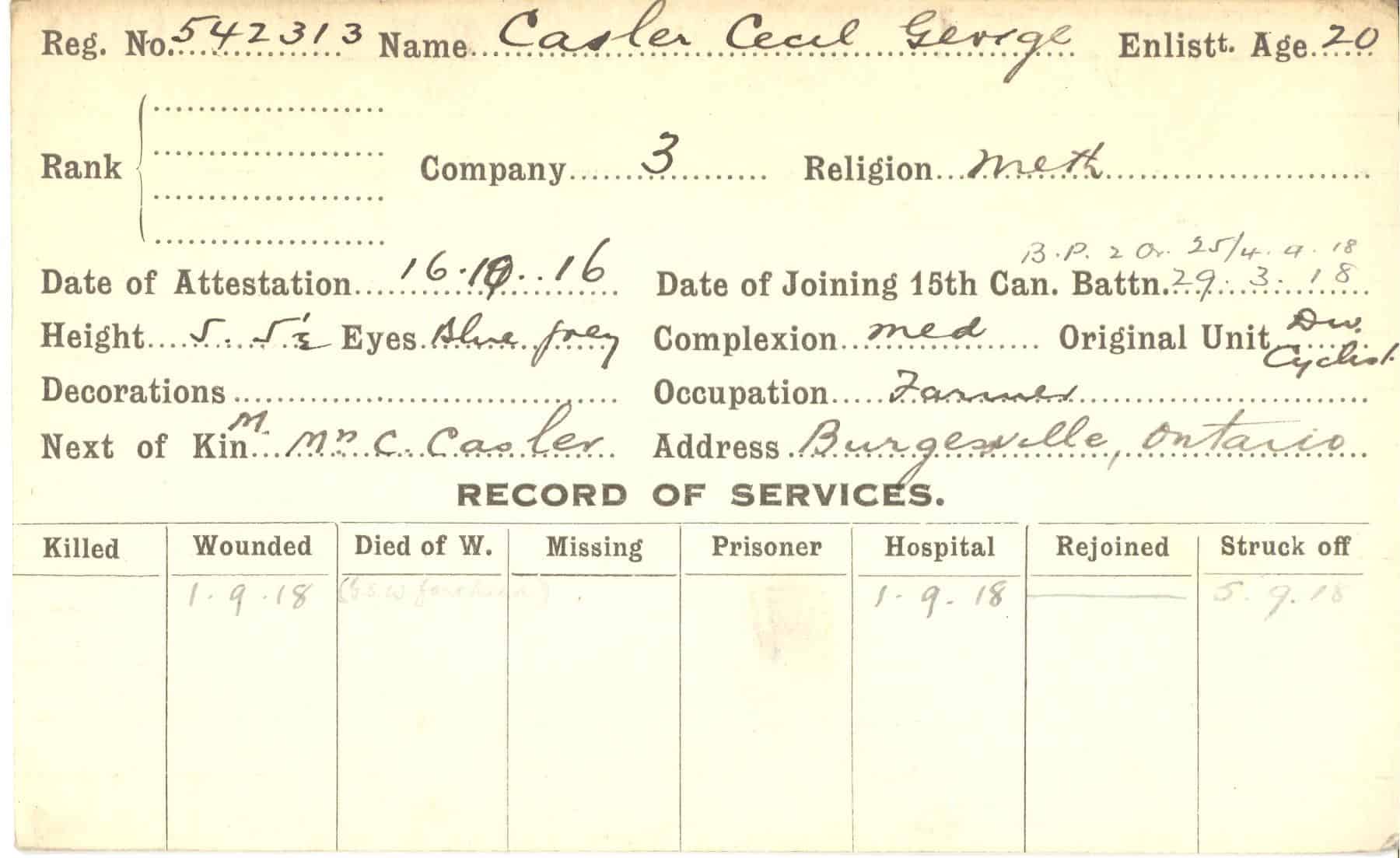 Record of Service Cards – C