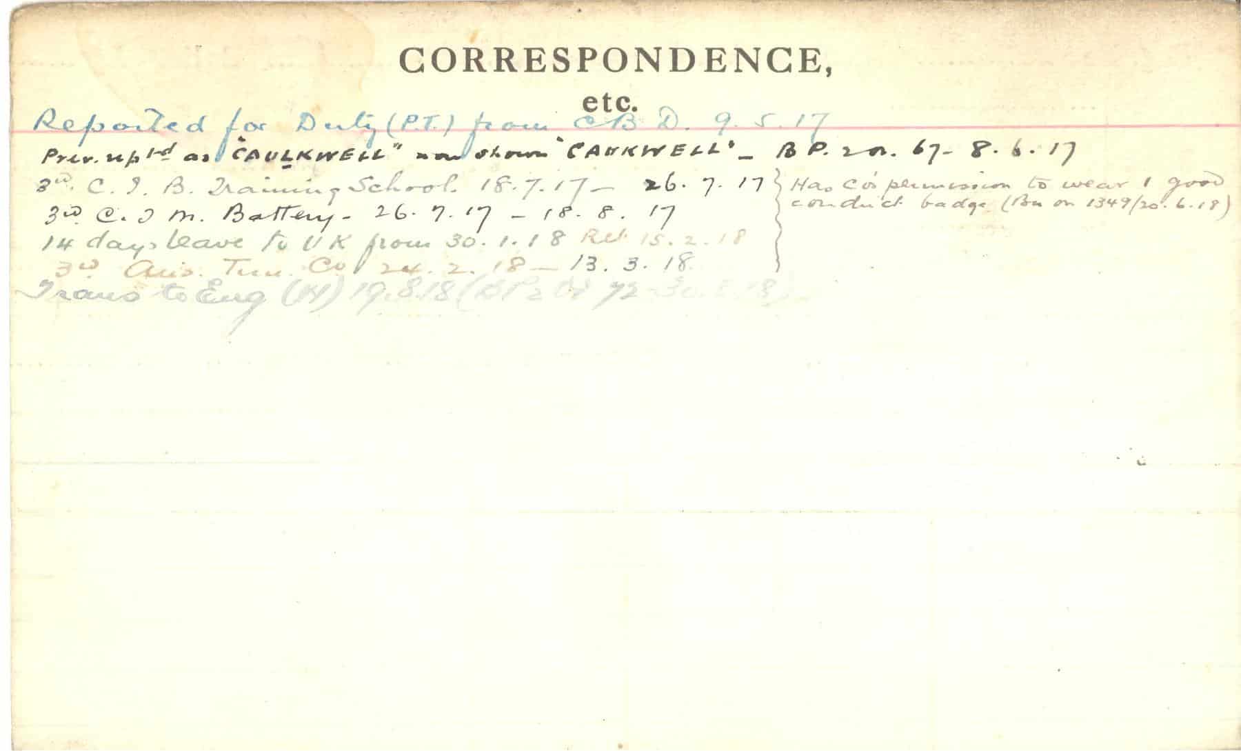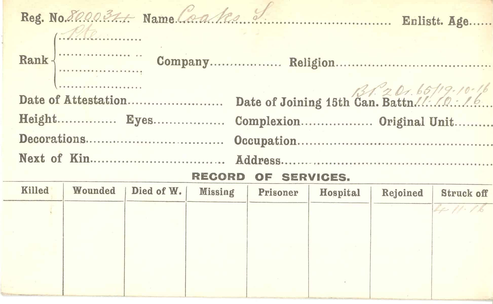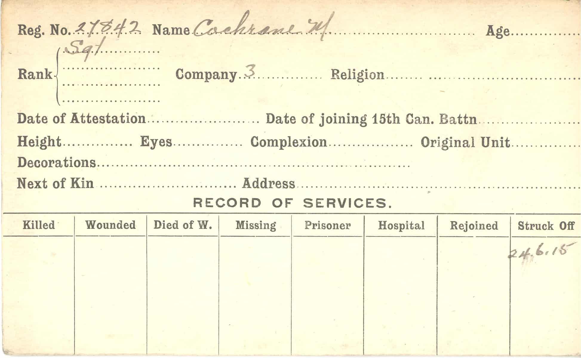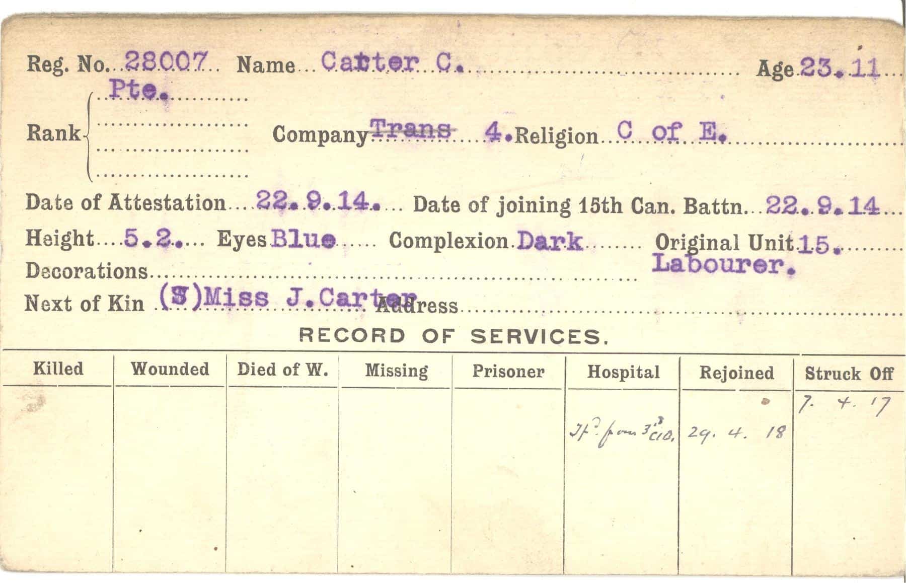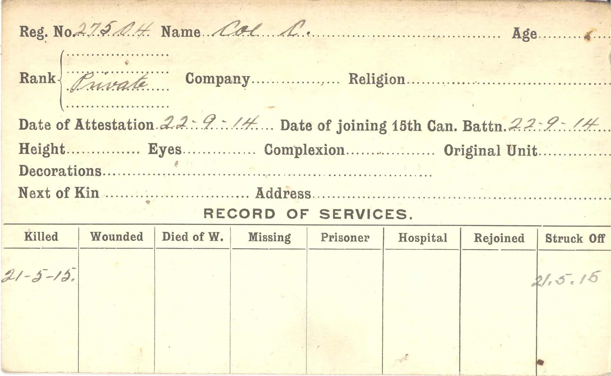 Record of Service Cards – C
