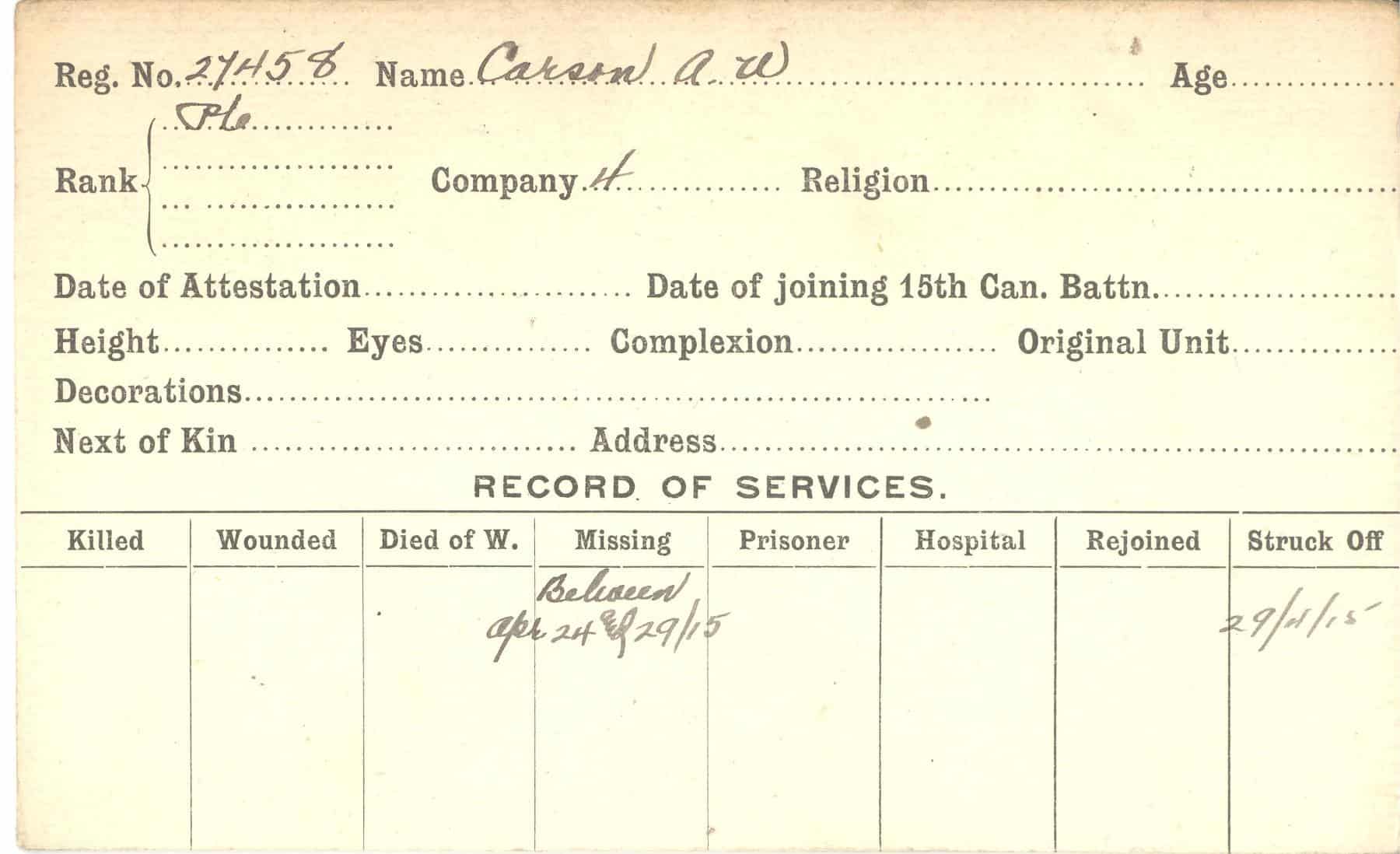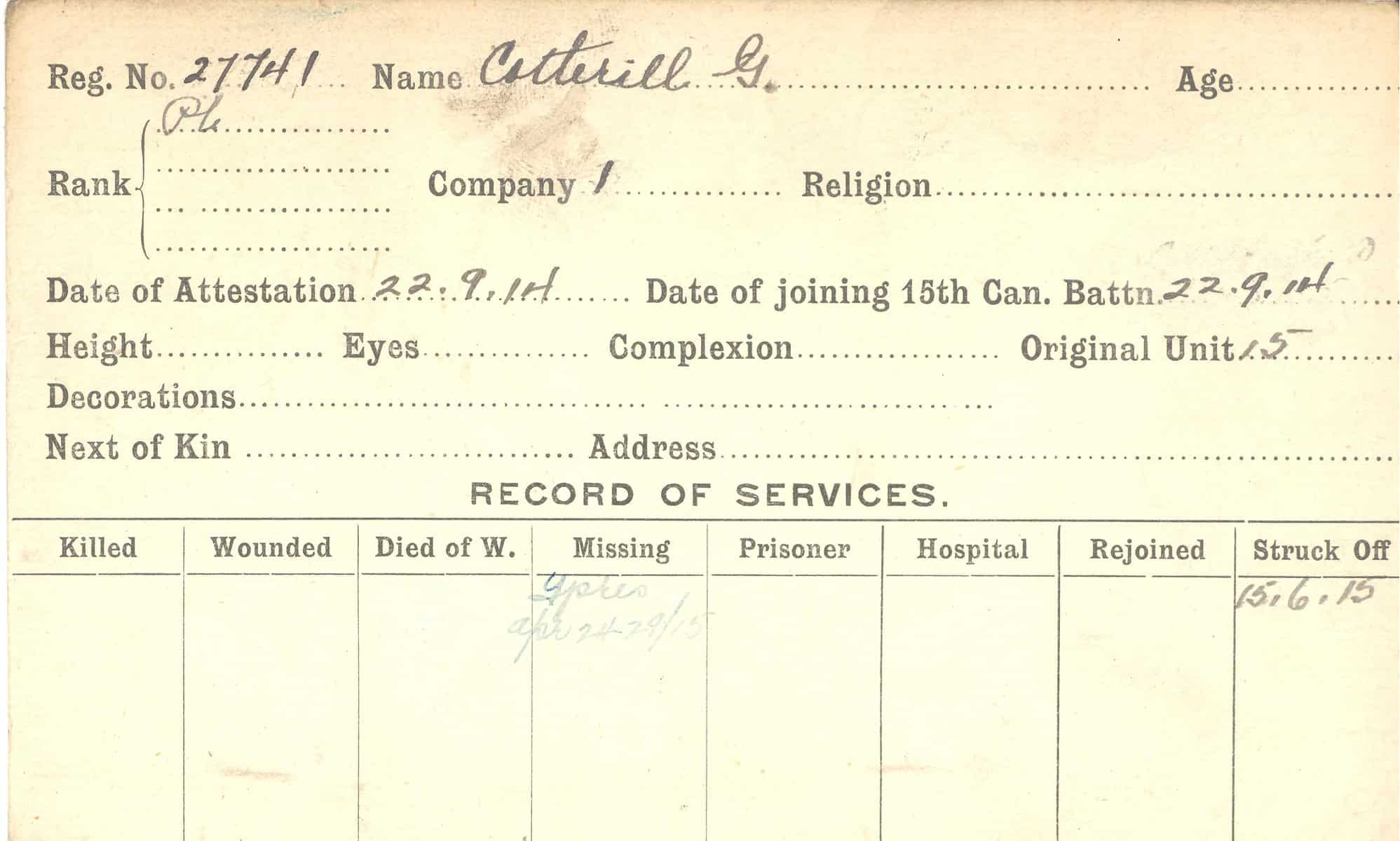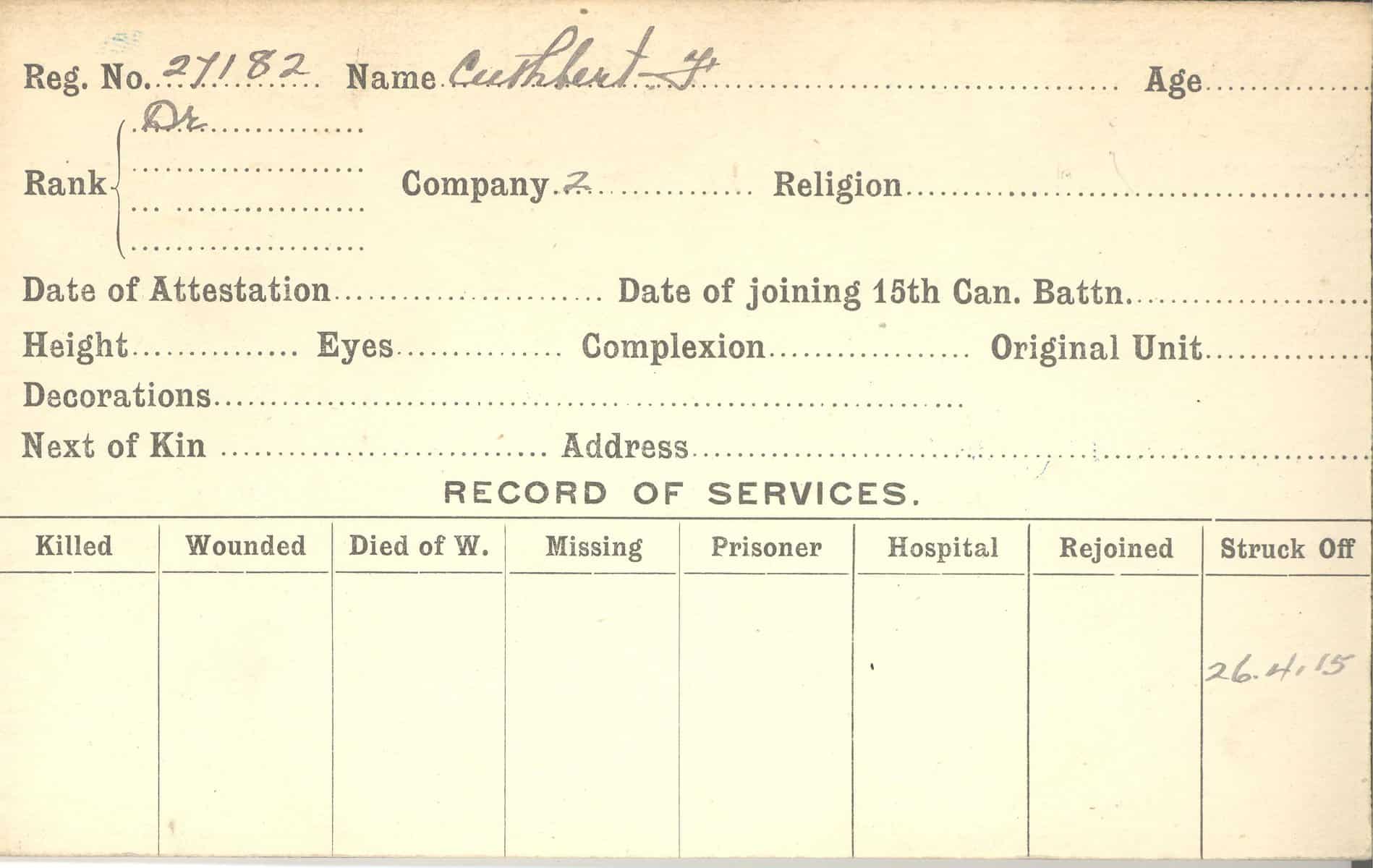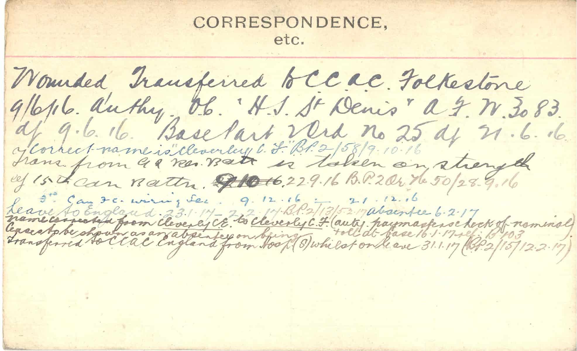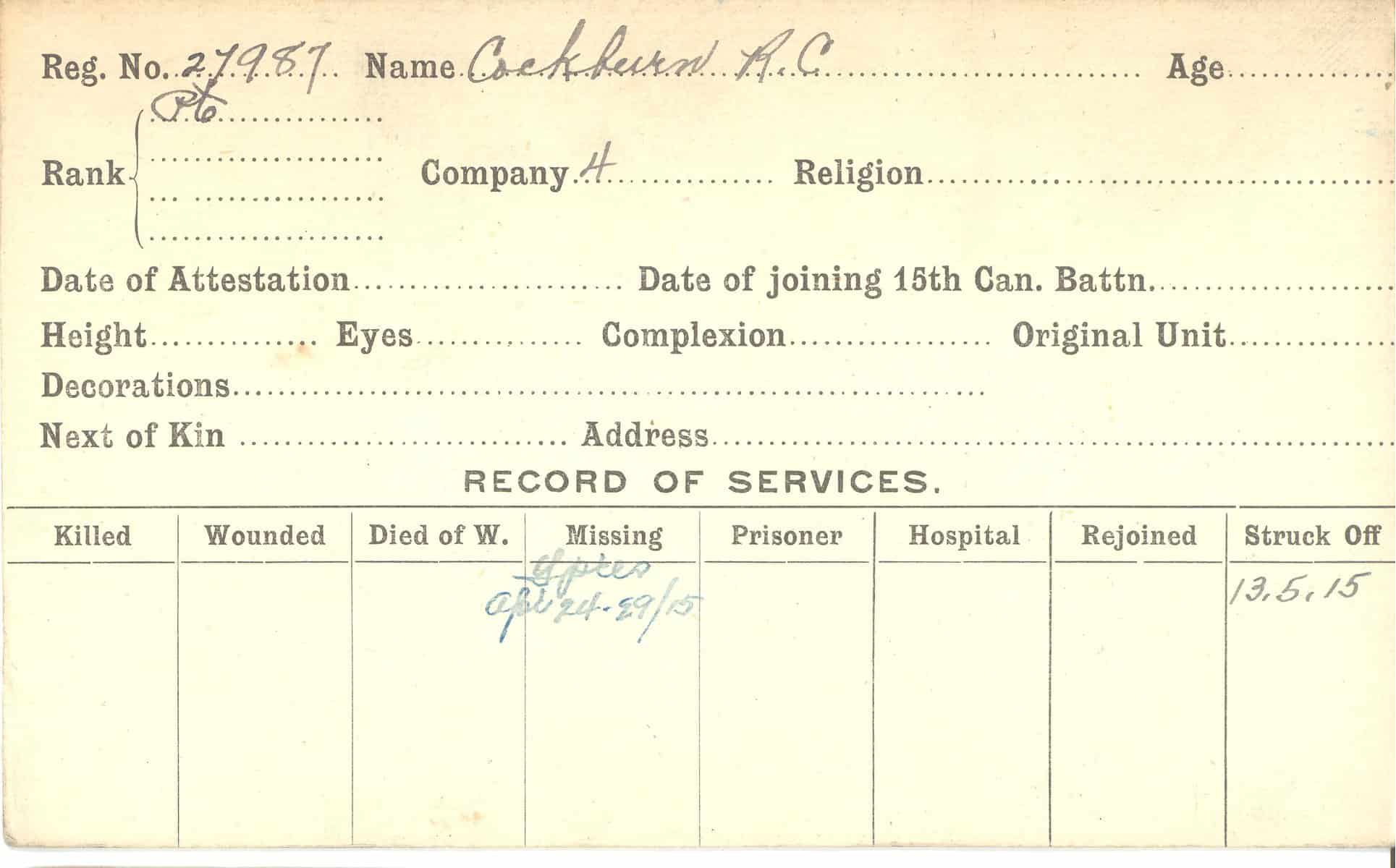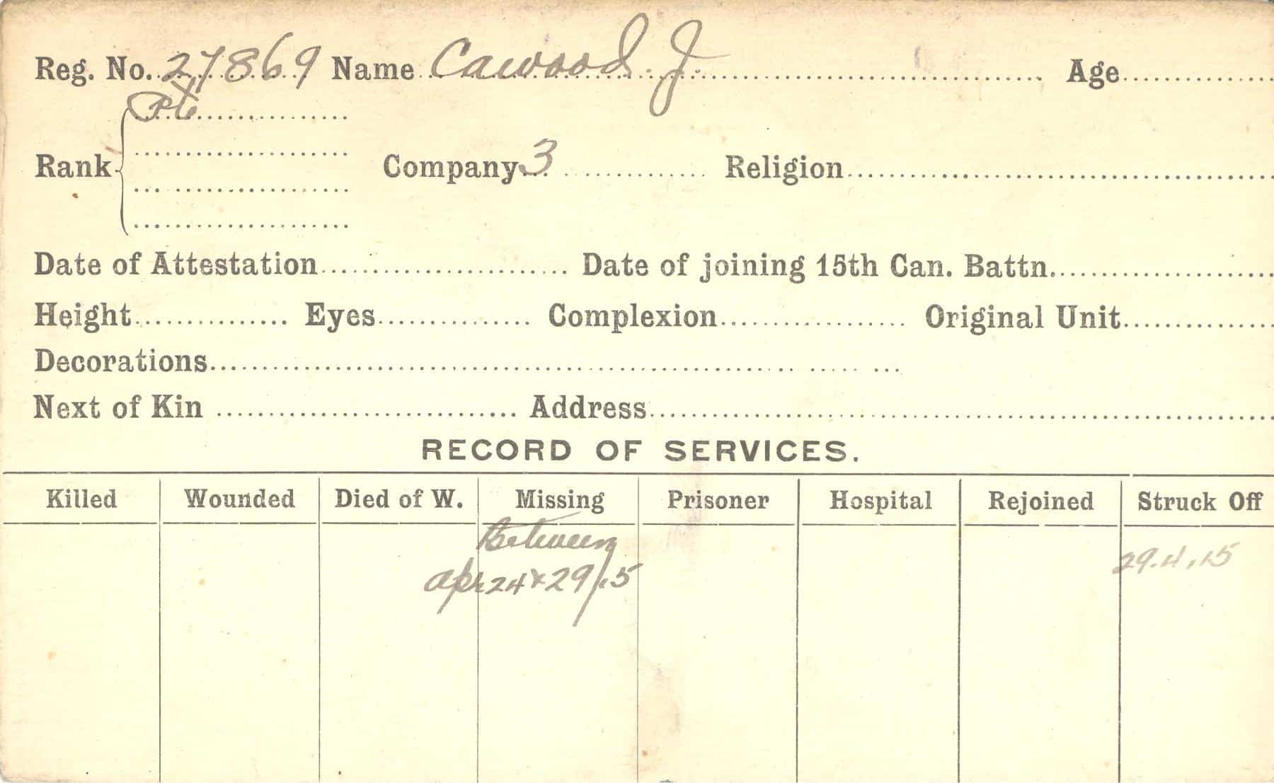 Record of Service Cards – C