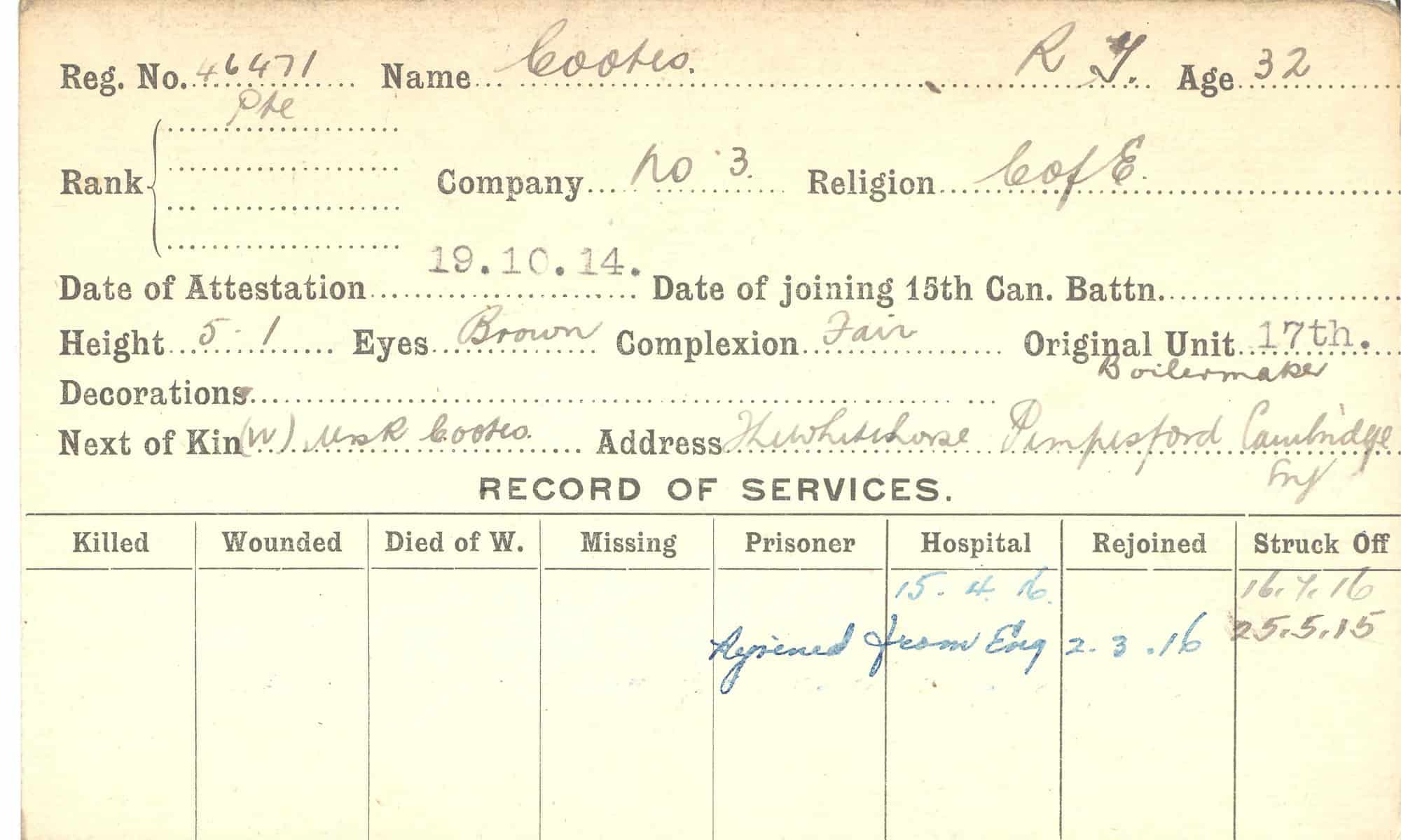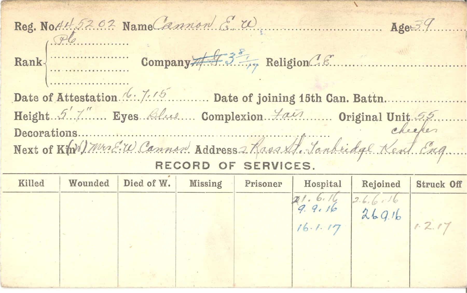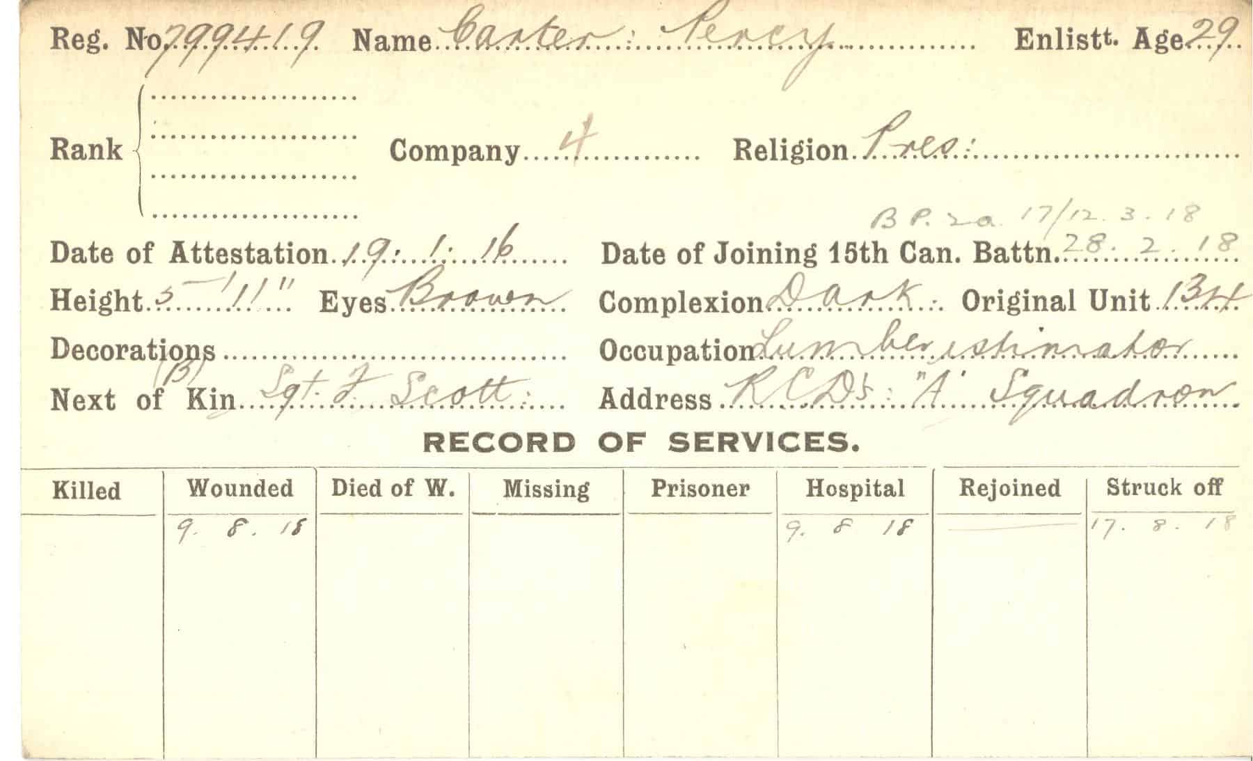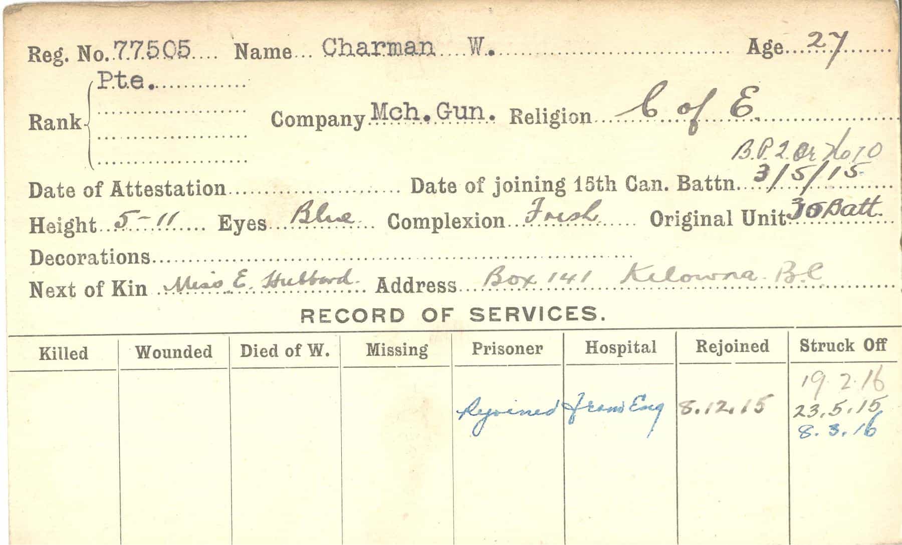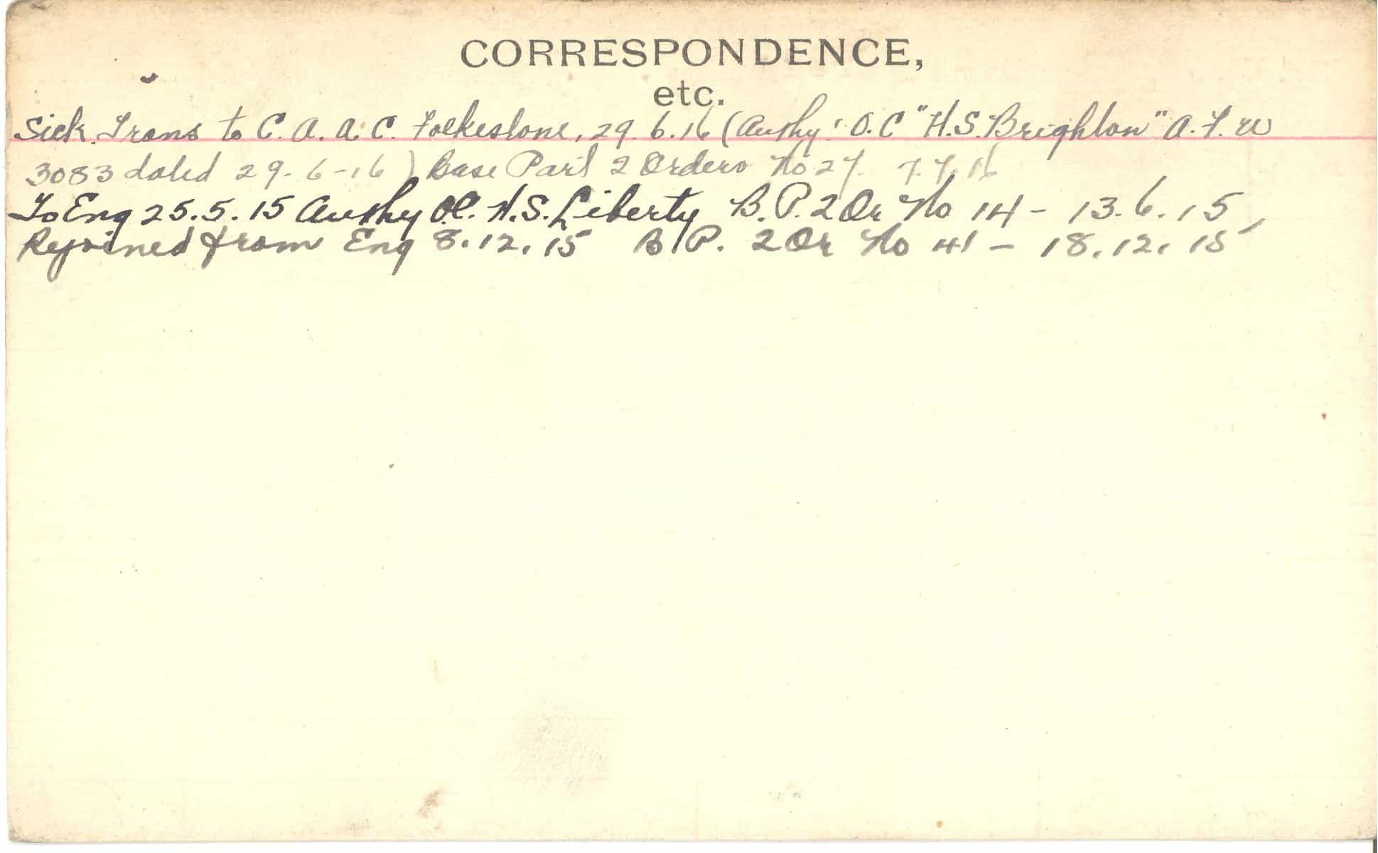 Record of Service Cards – C