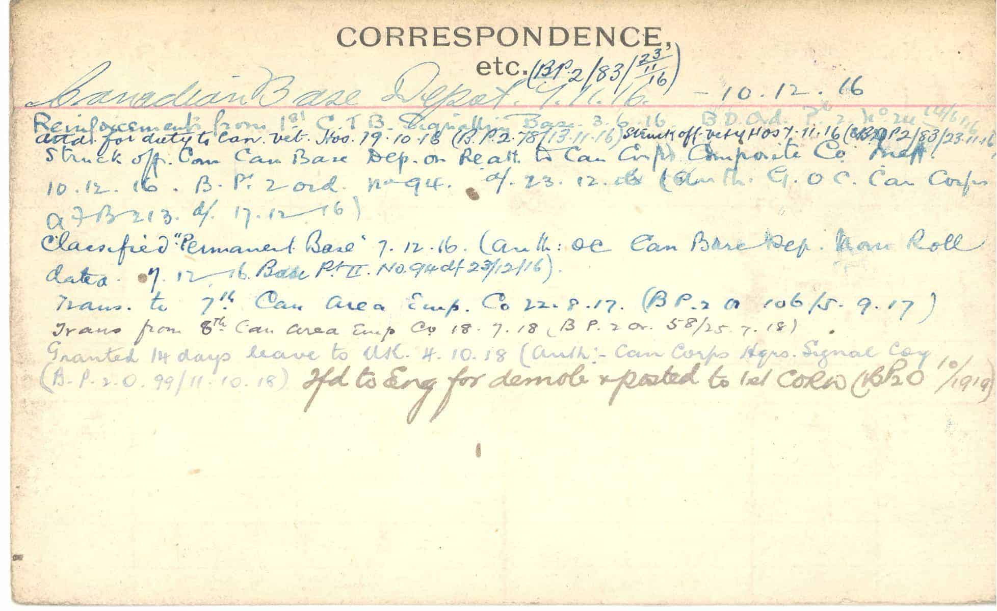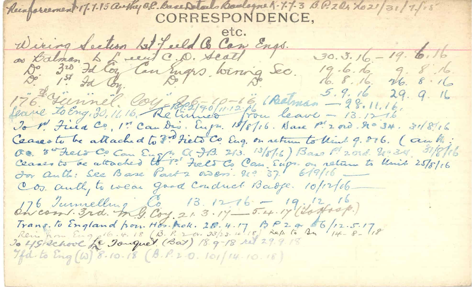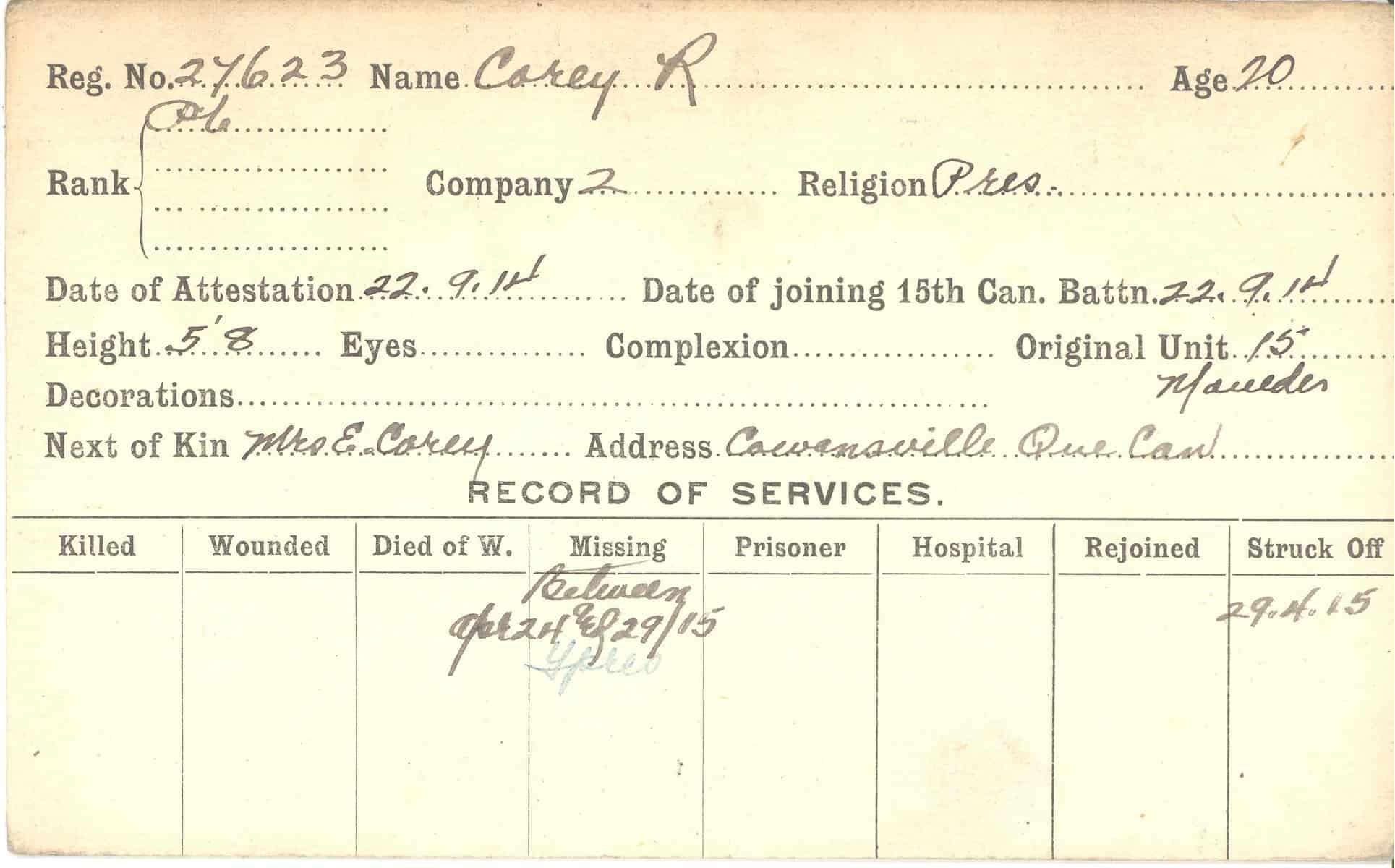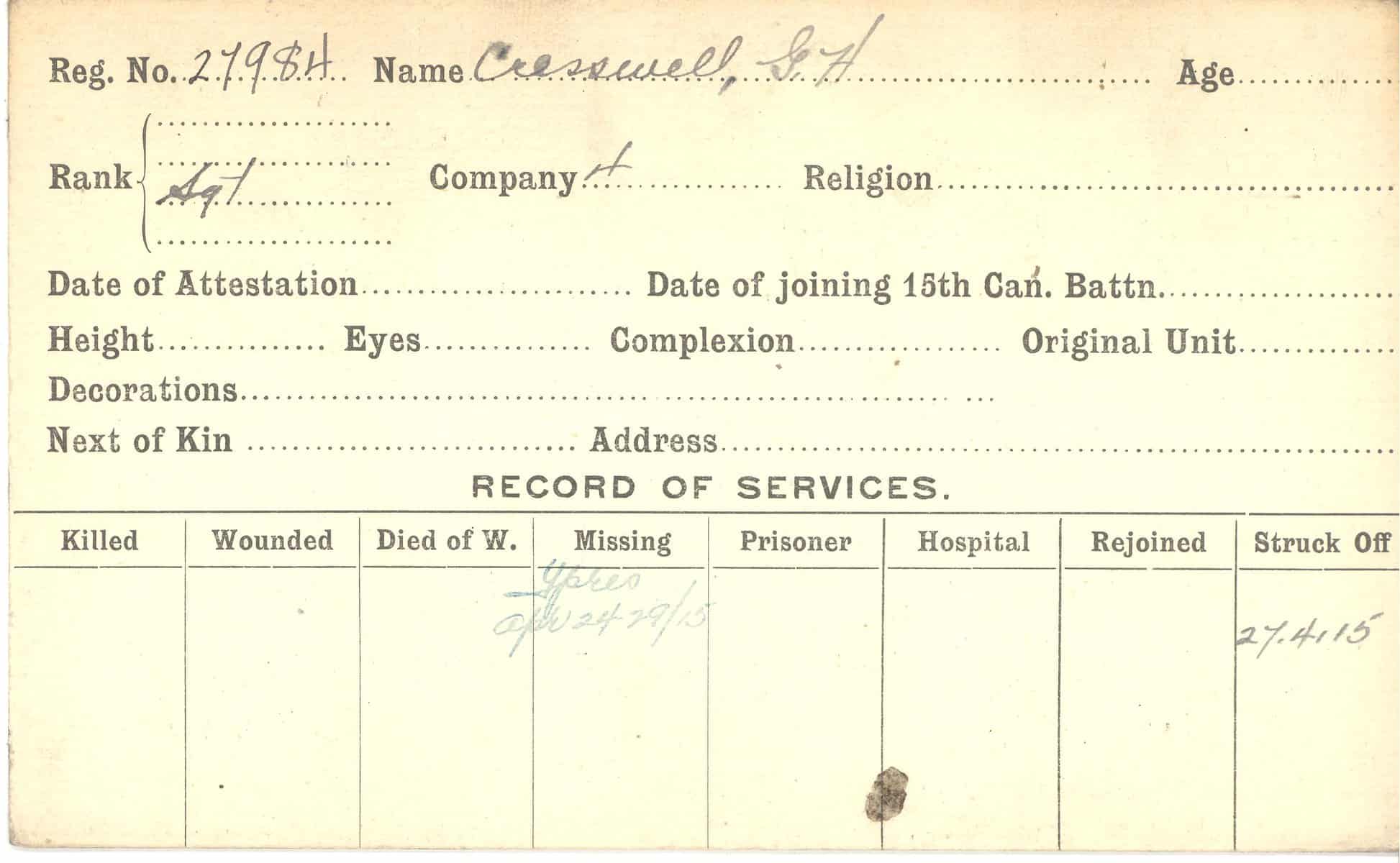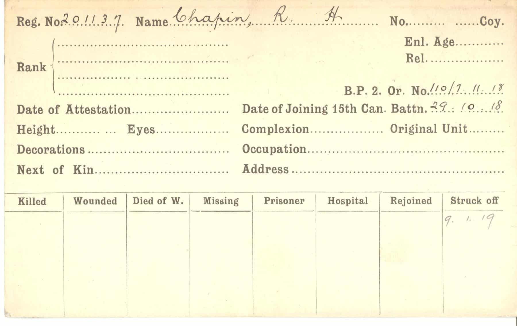 Record of Service Cards – C