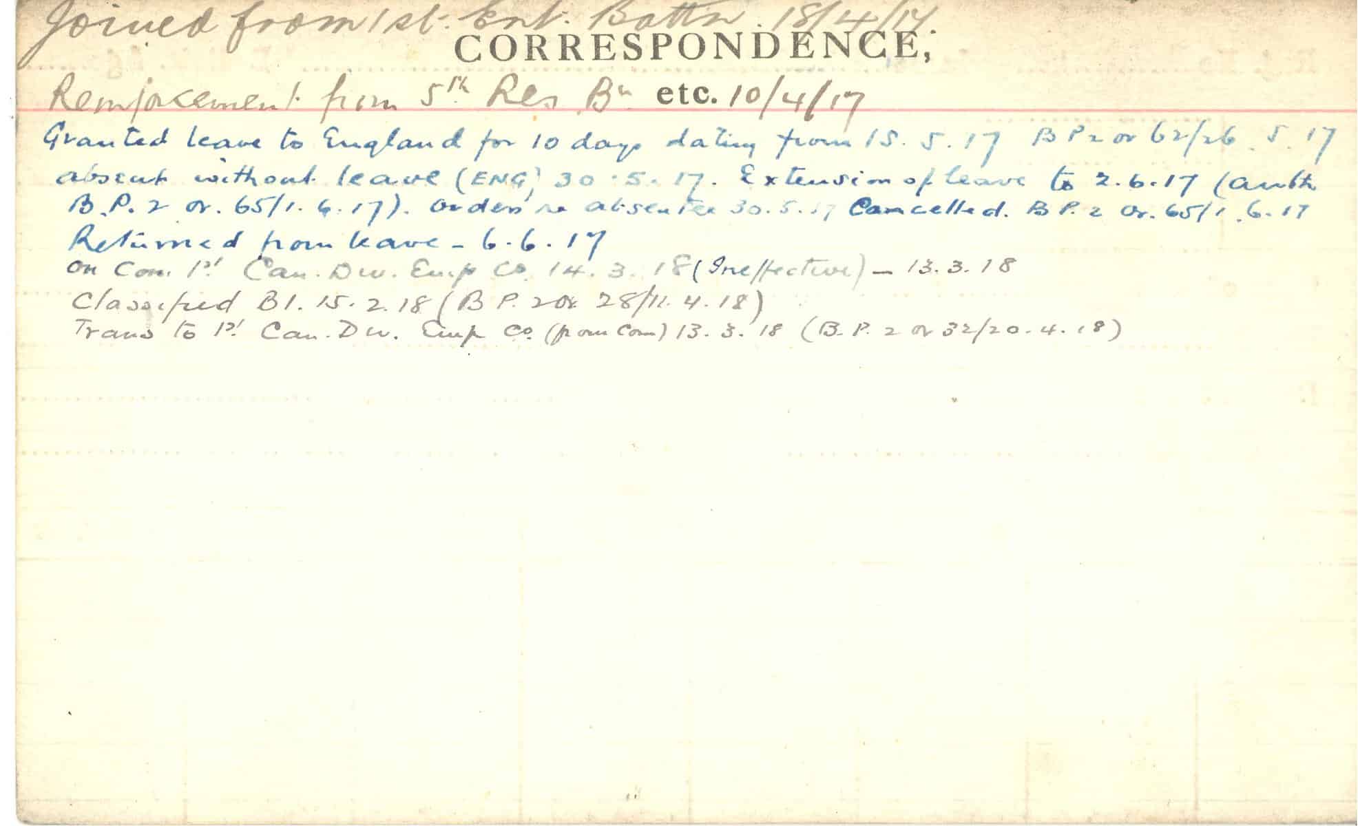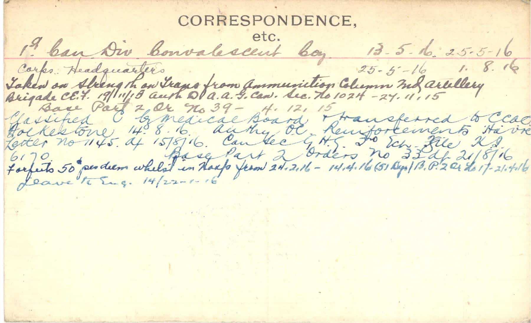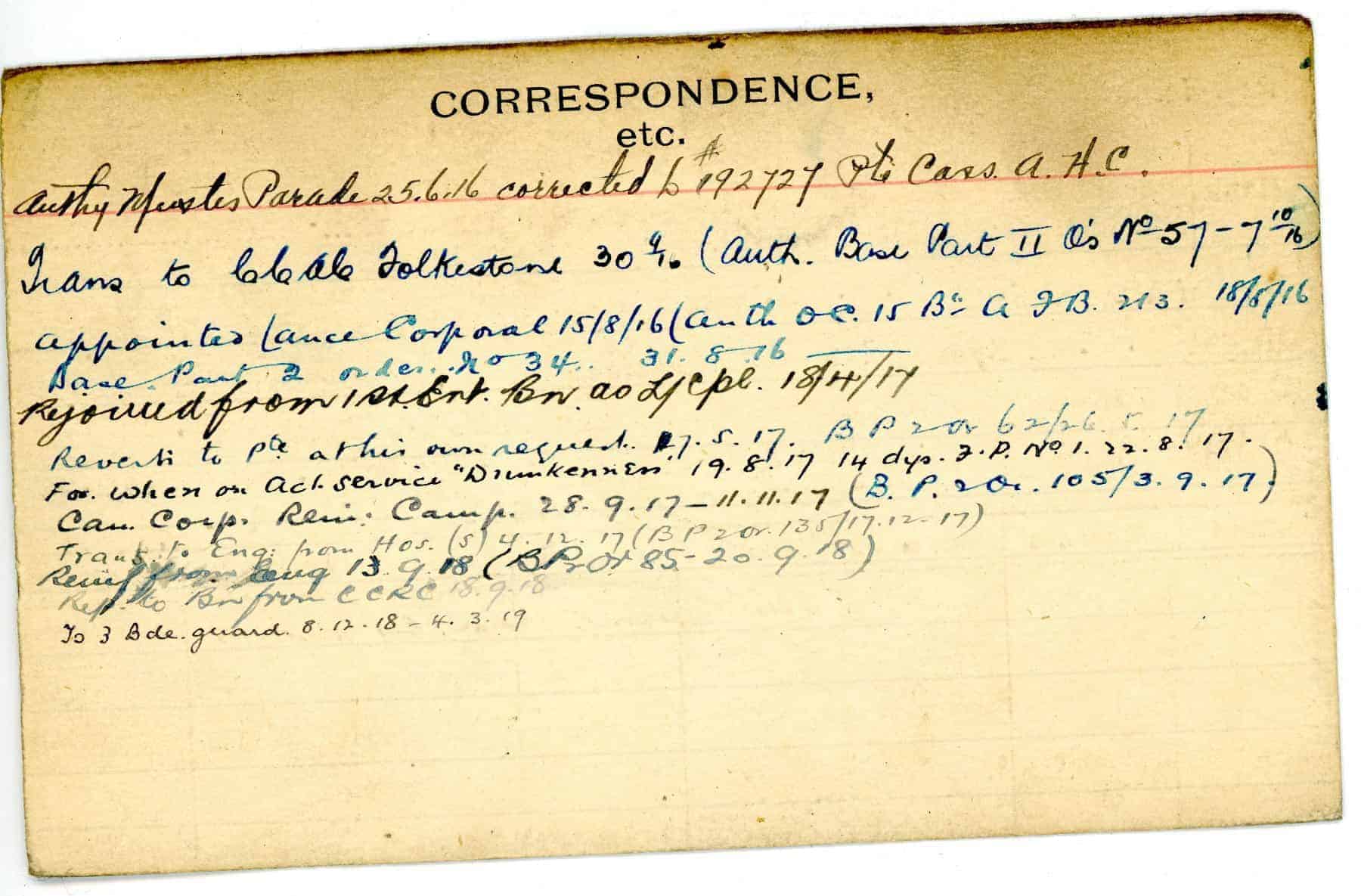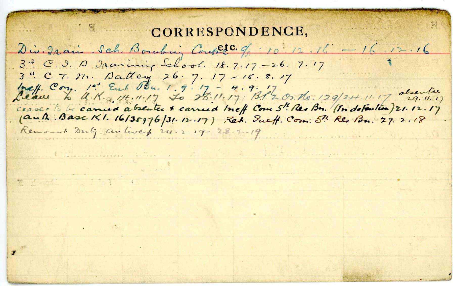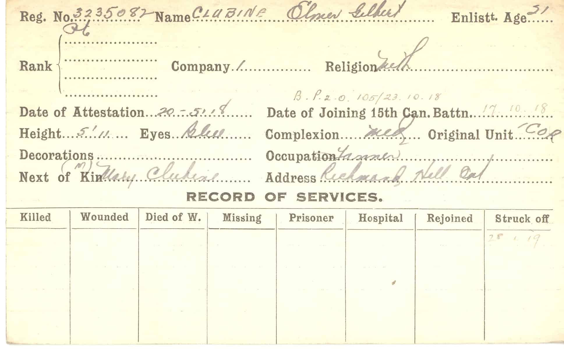 Record of Service Cards – C