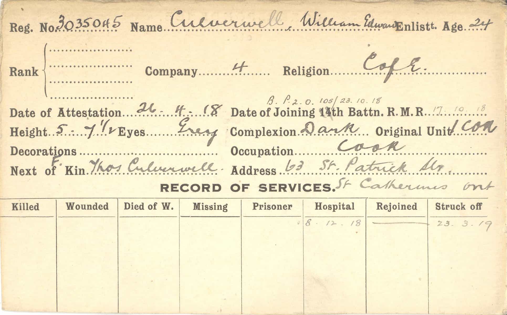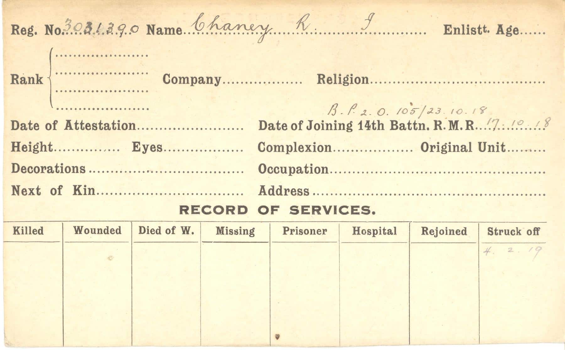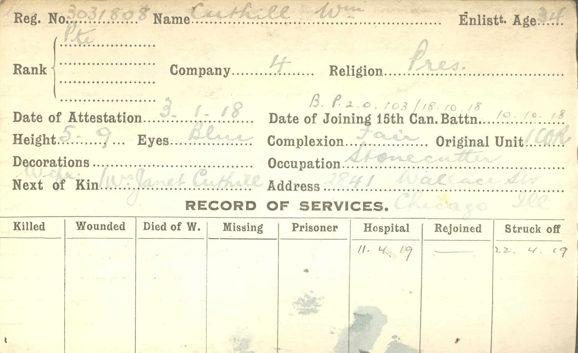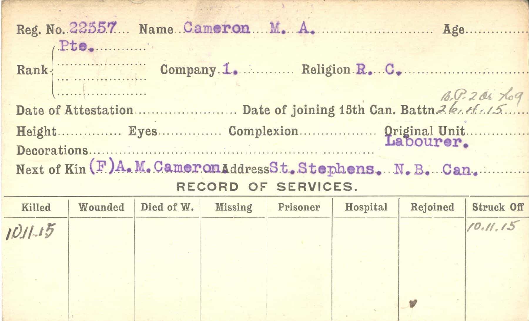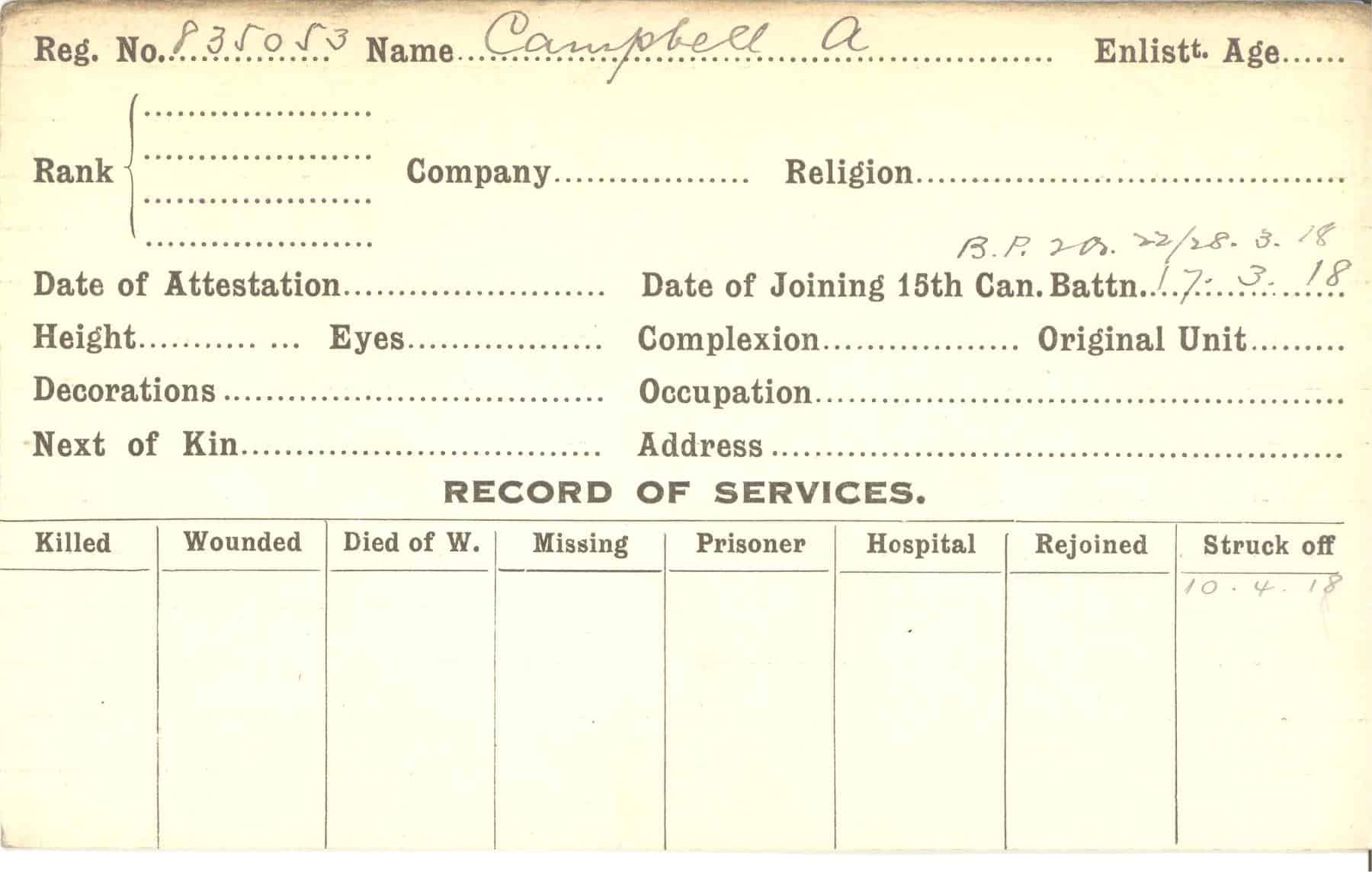 Record of Service Cards – C