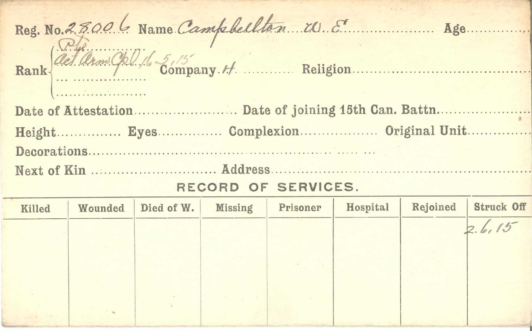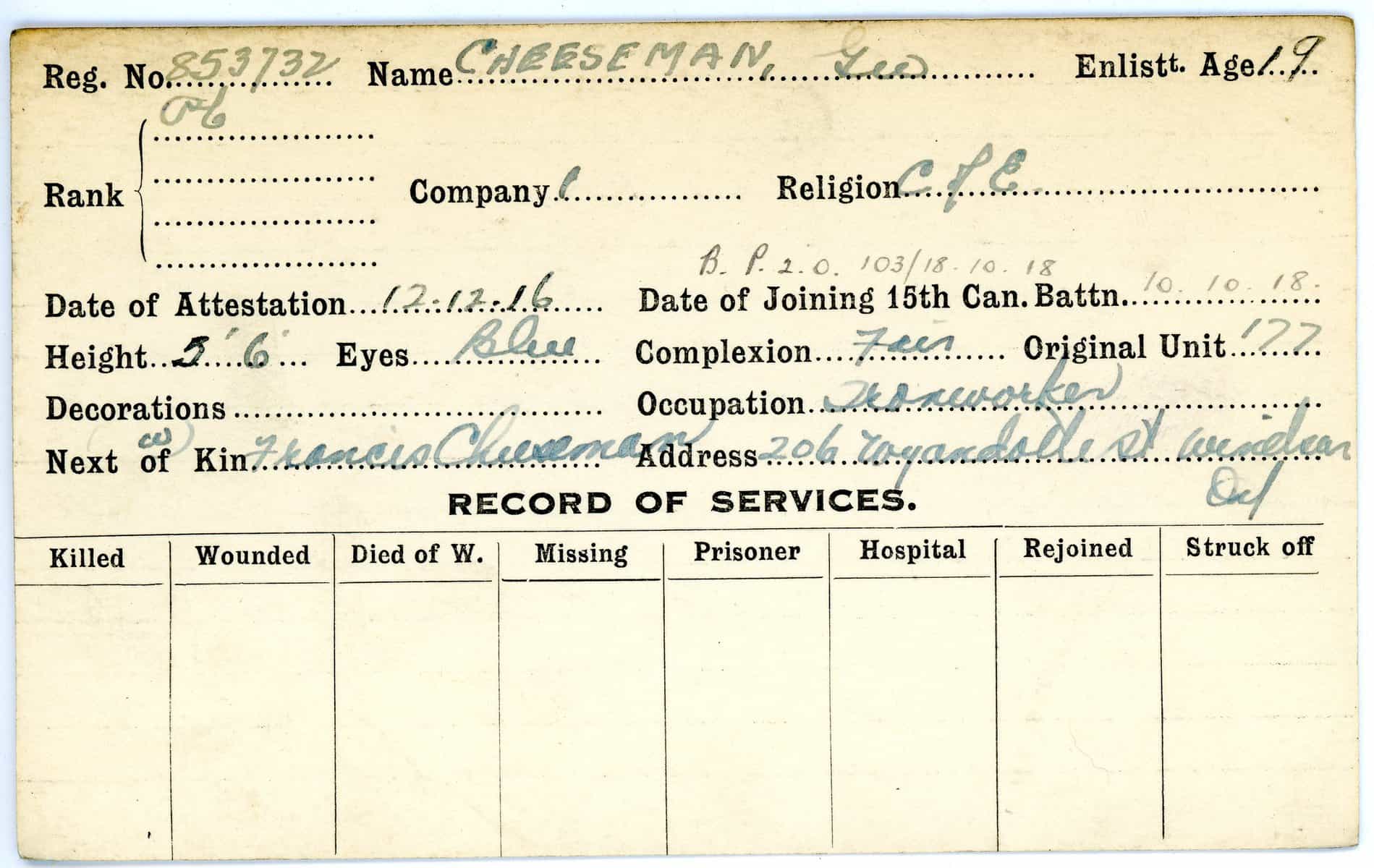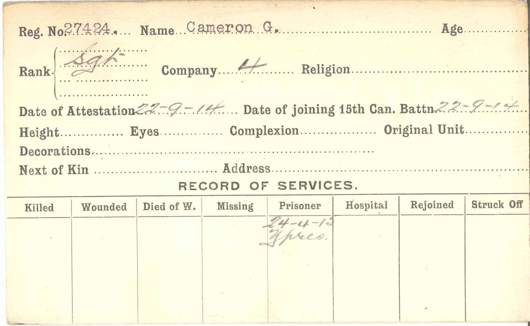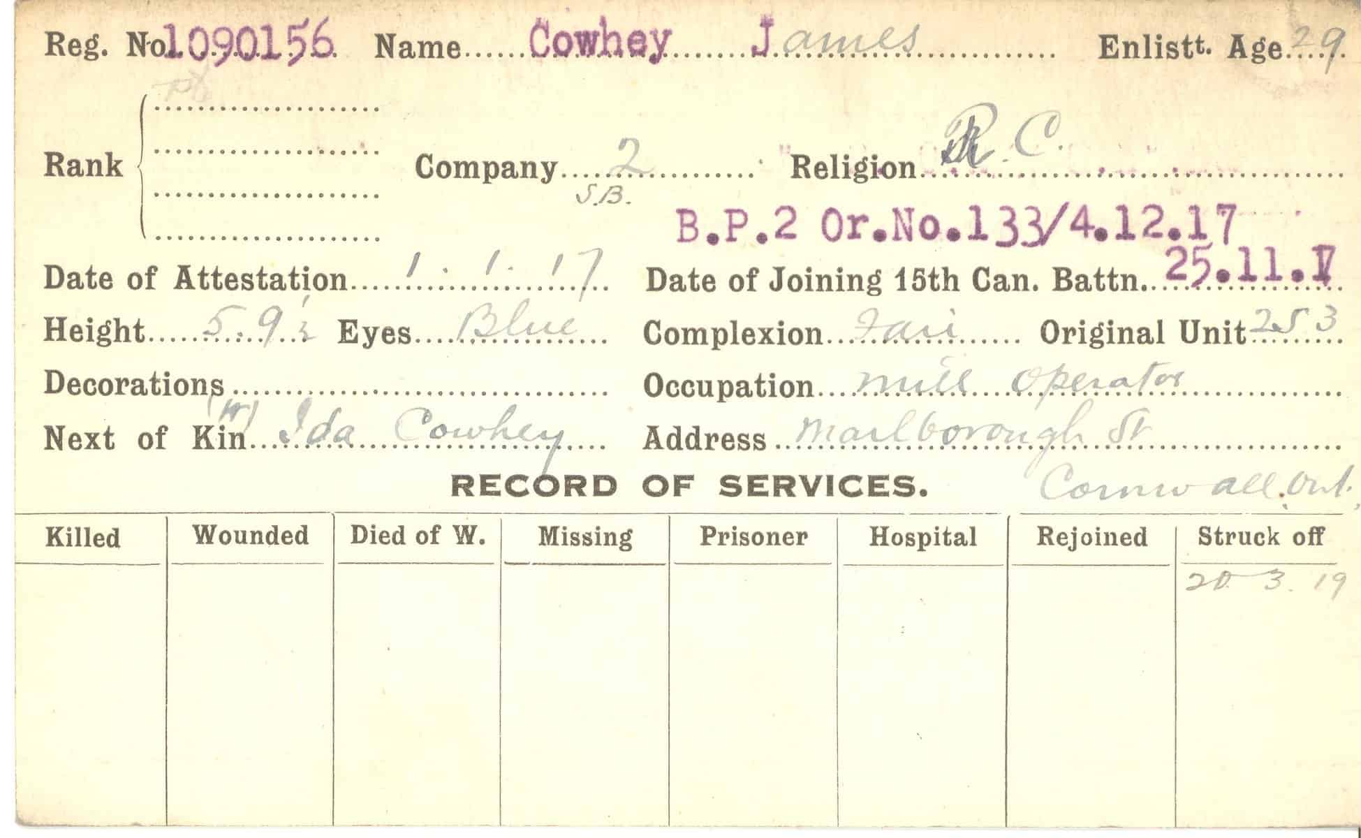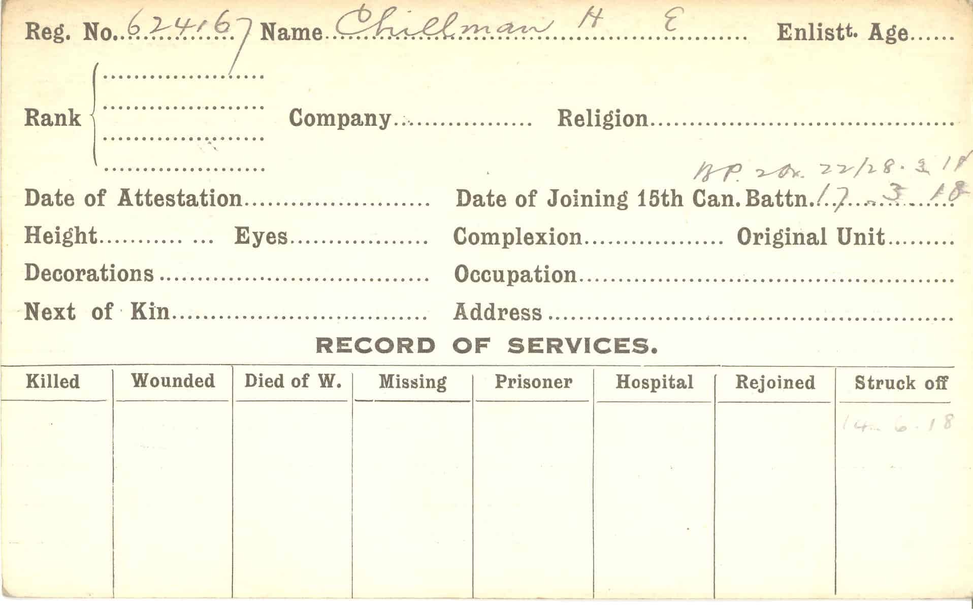 Record of Service Cards – C