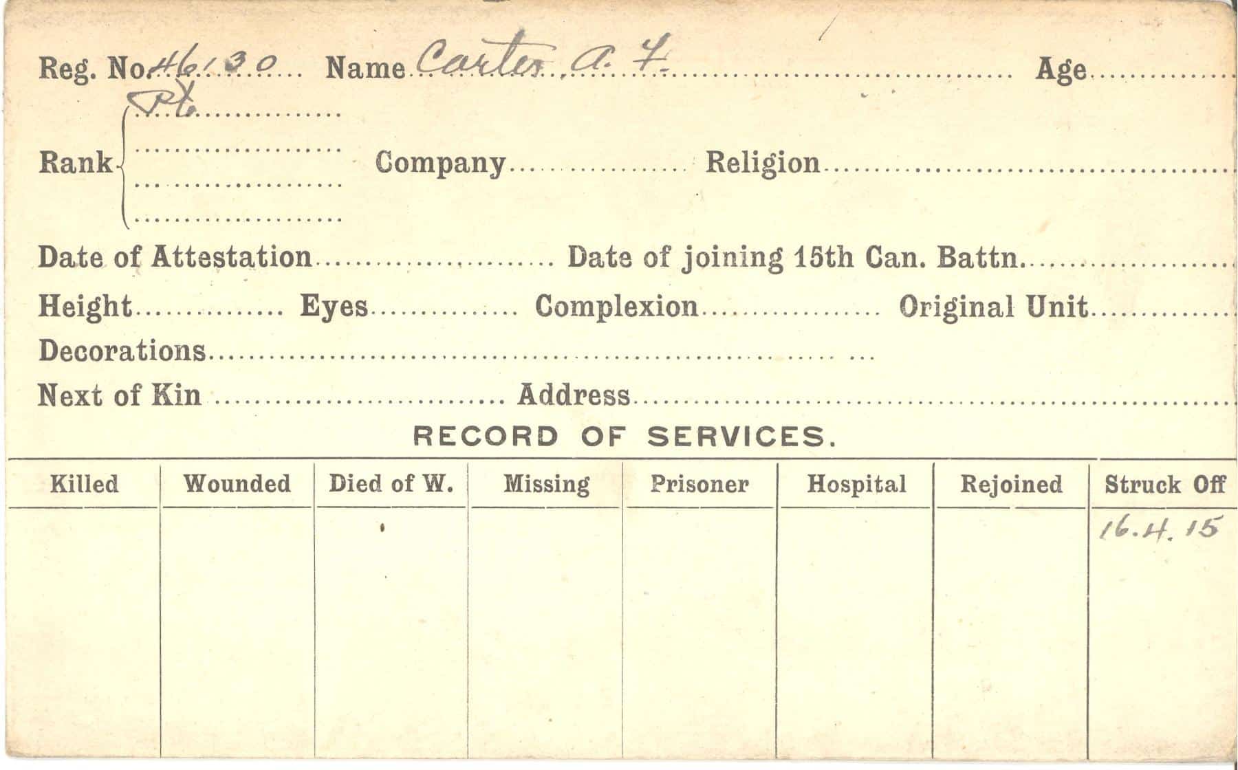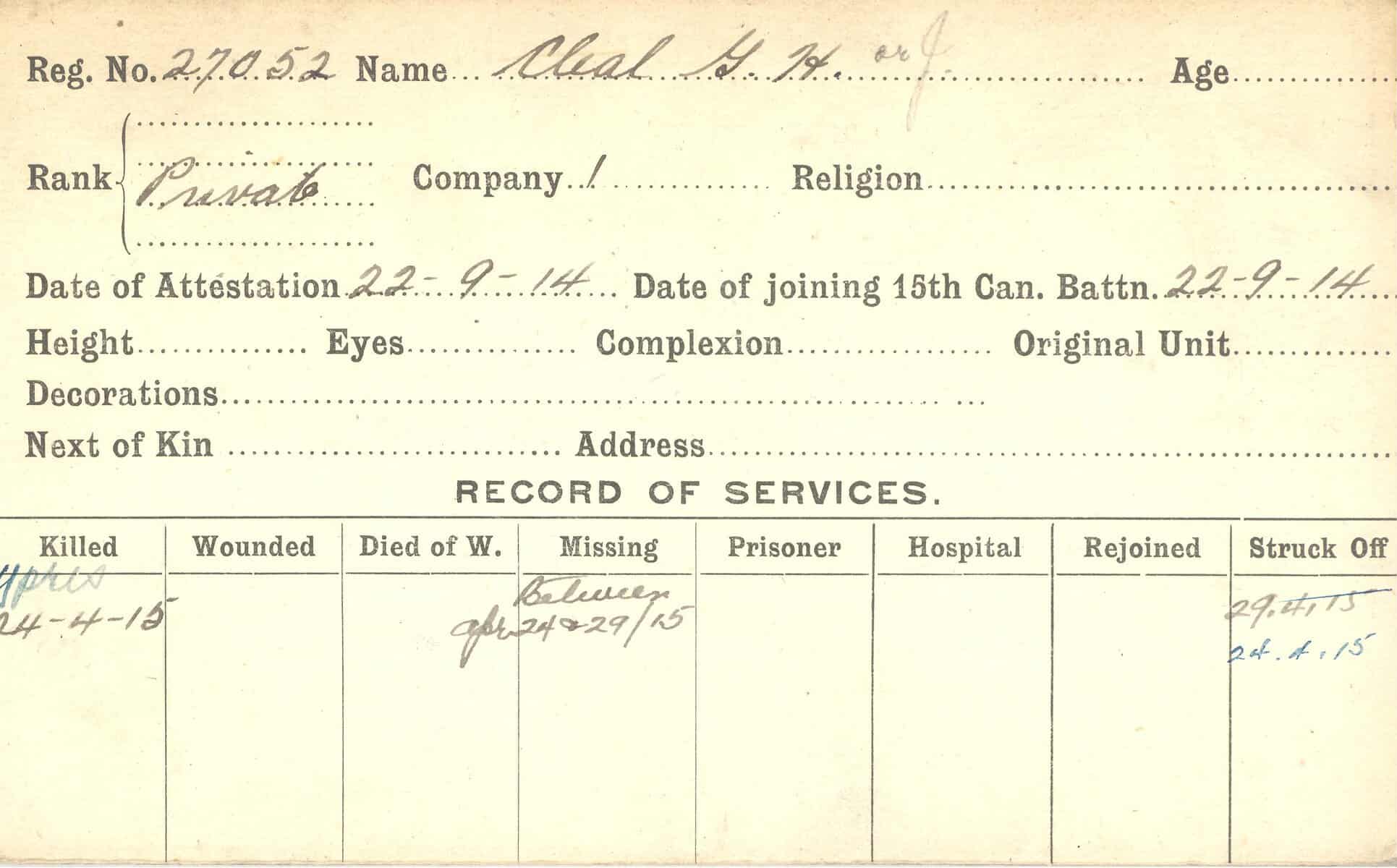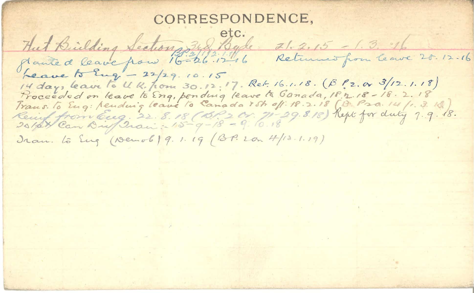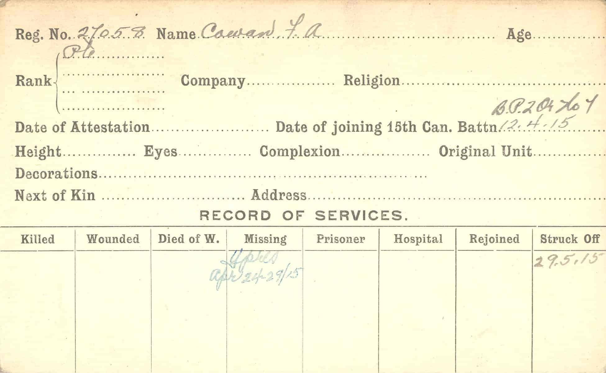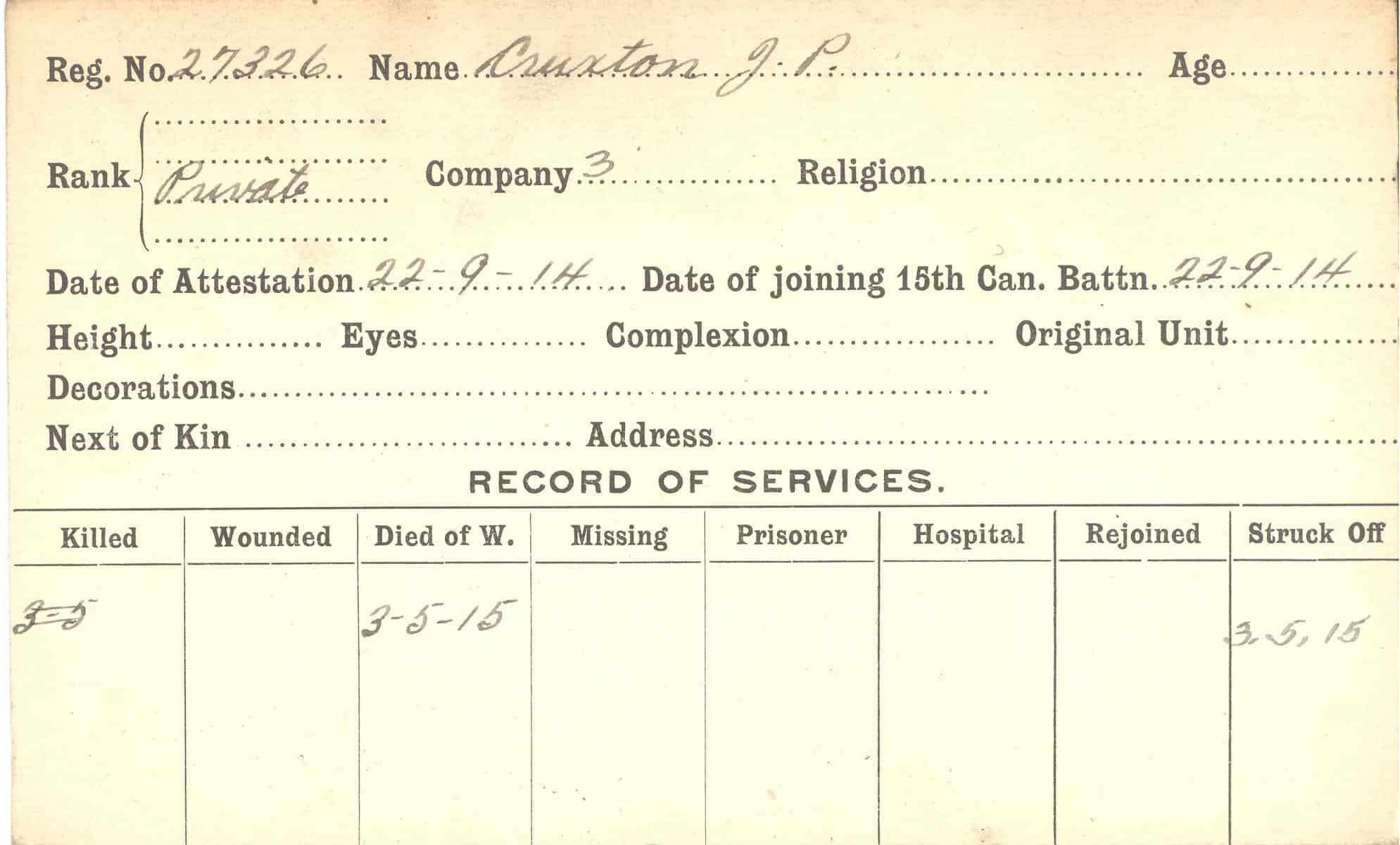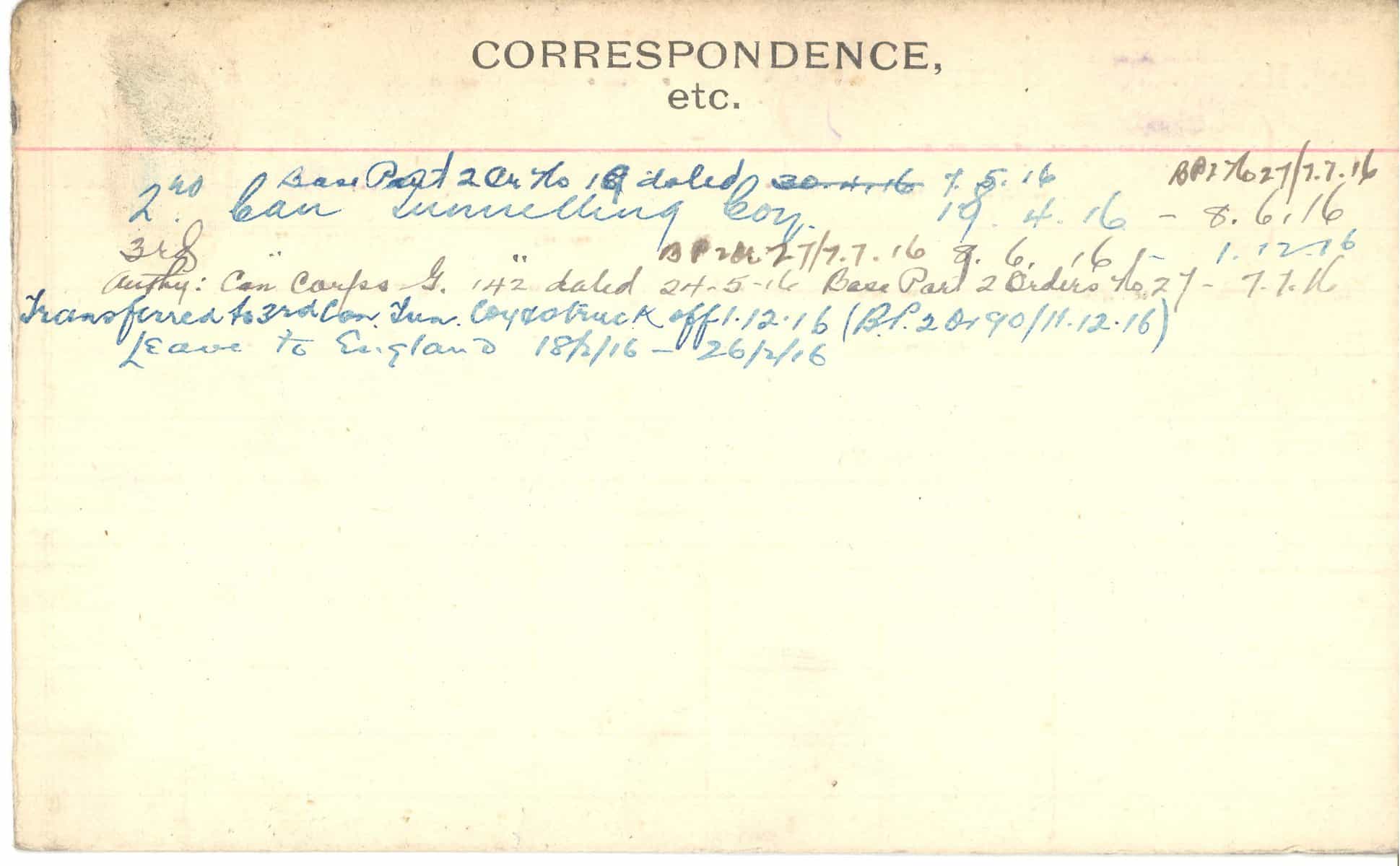 Record of Service Cards – C