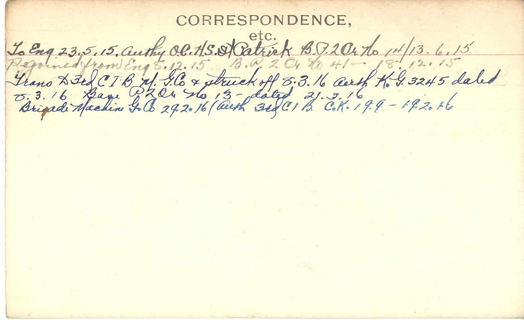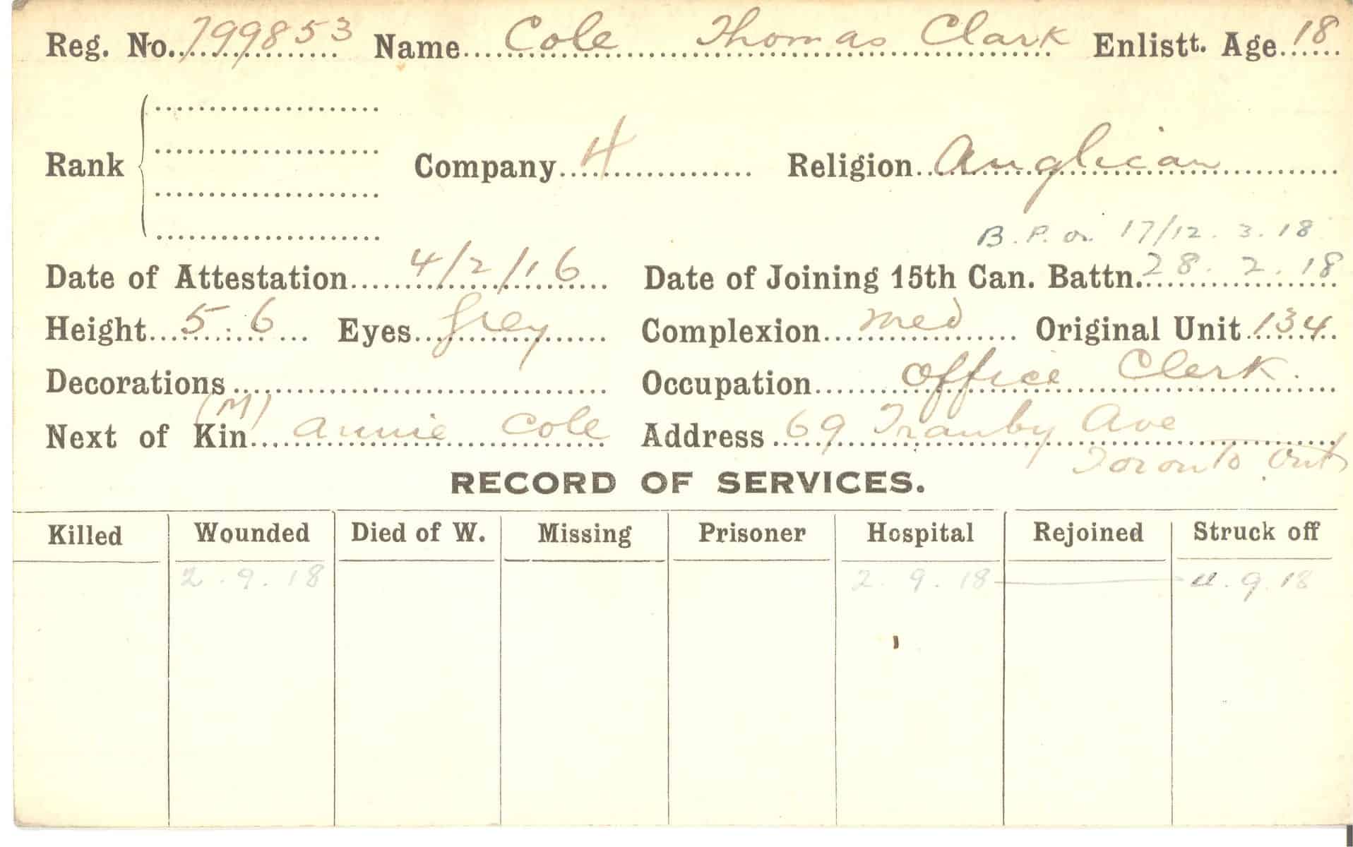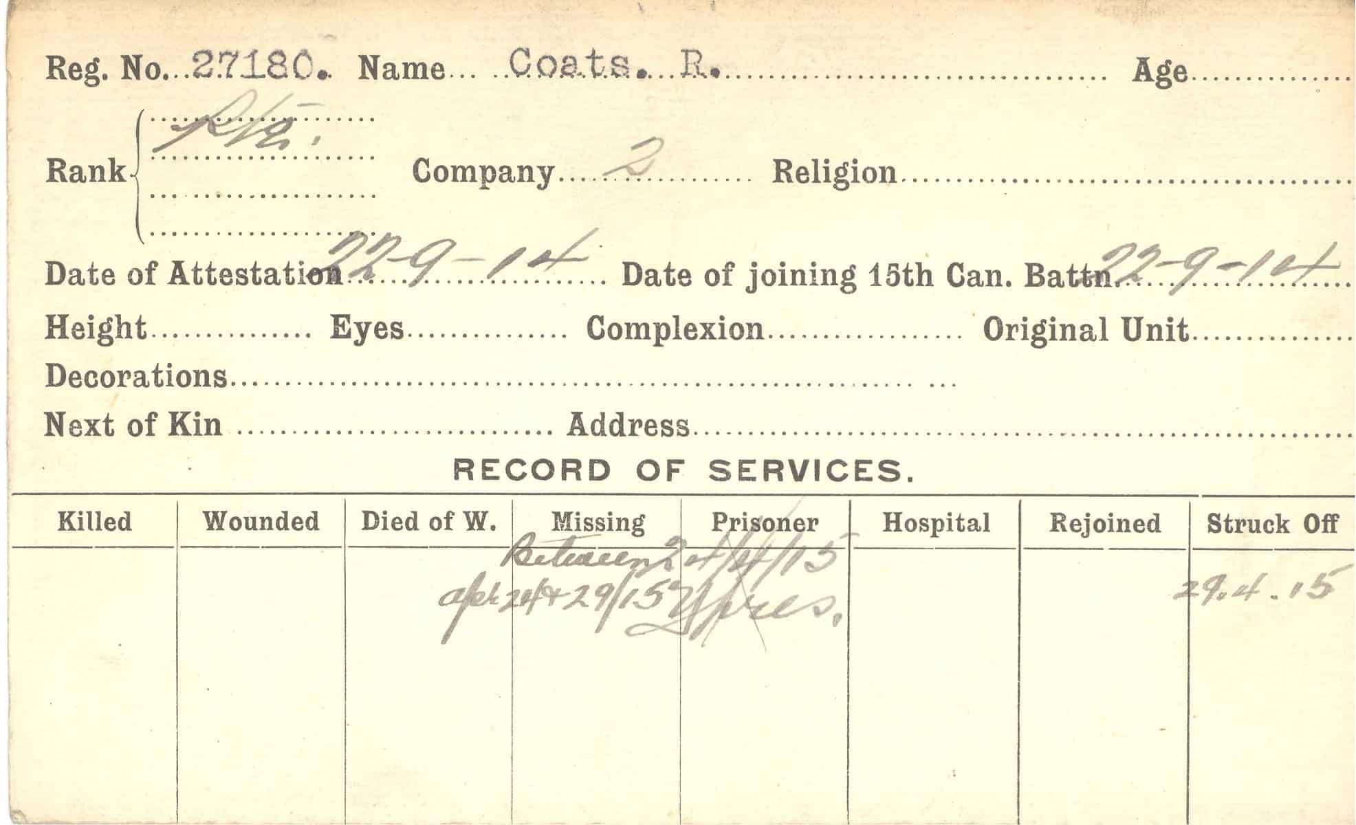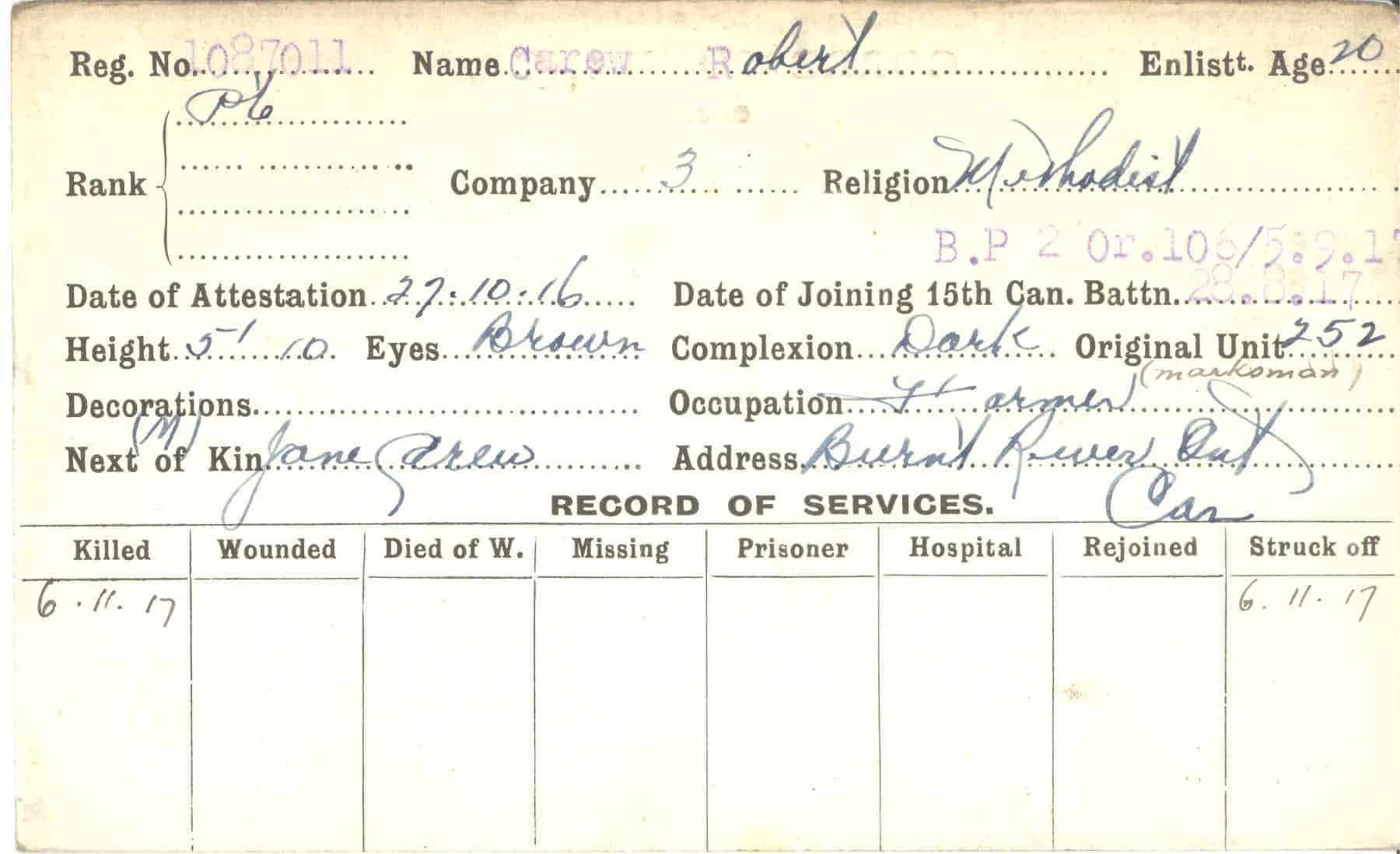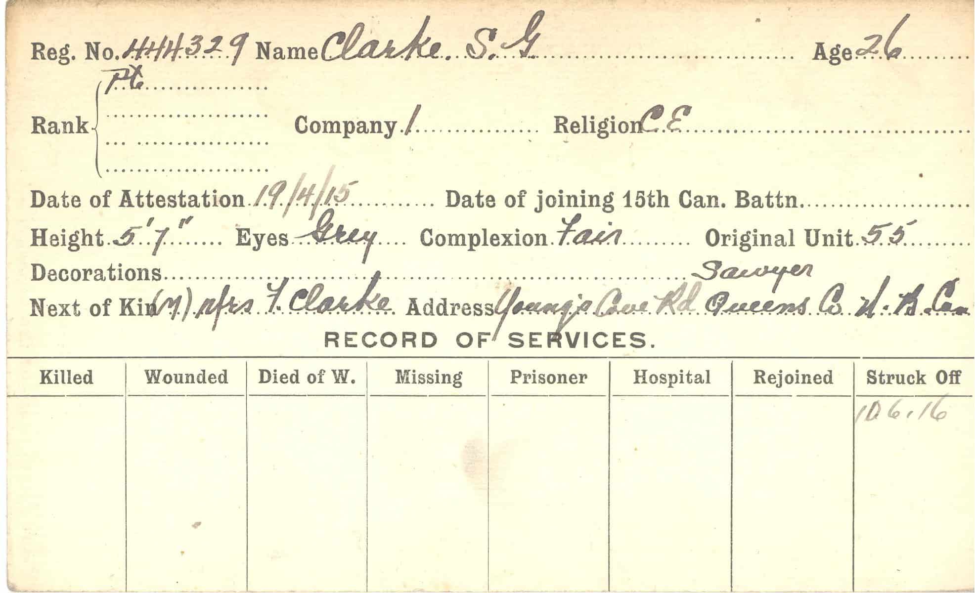 Record of Service Cards – C