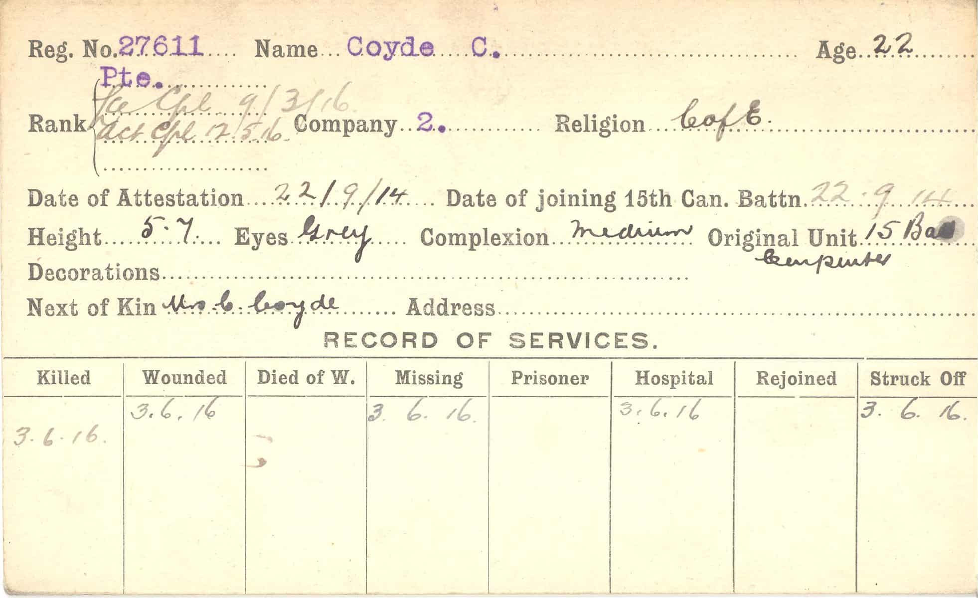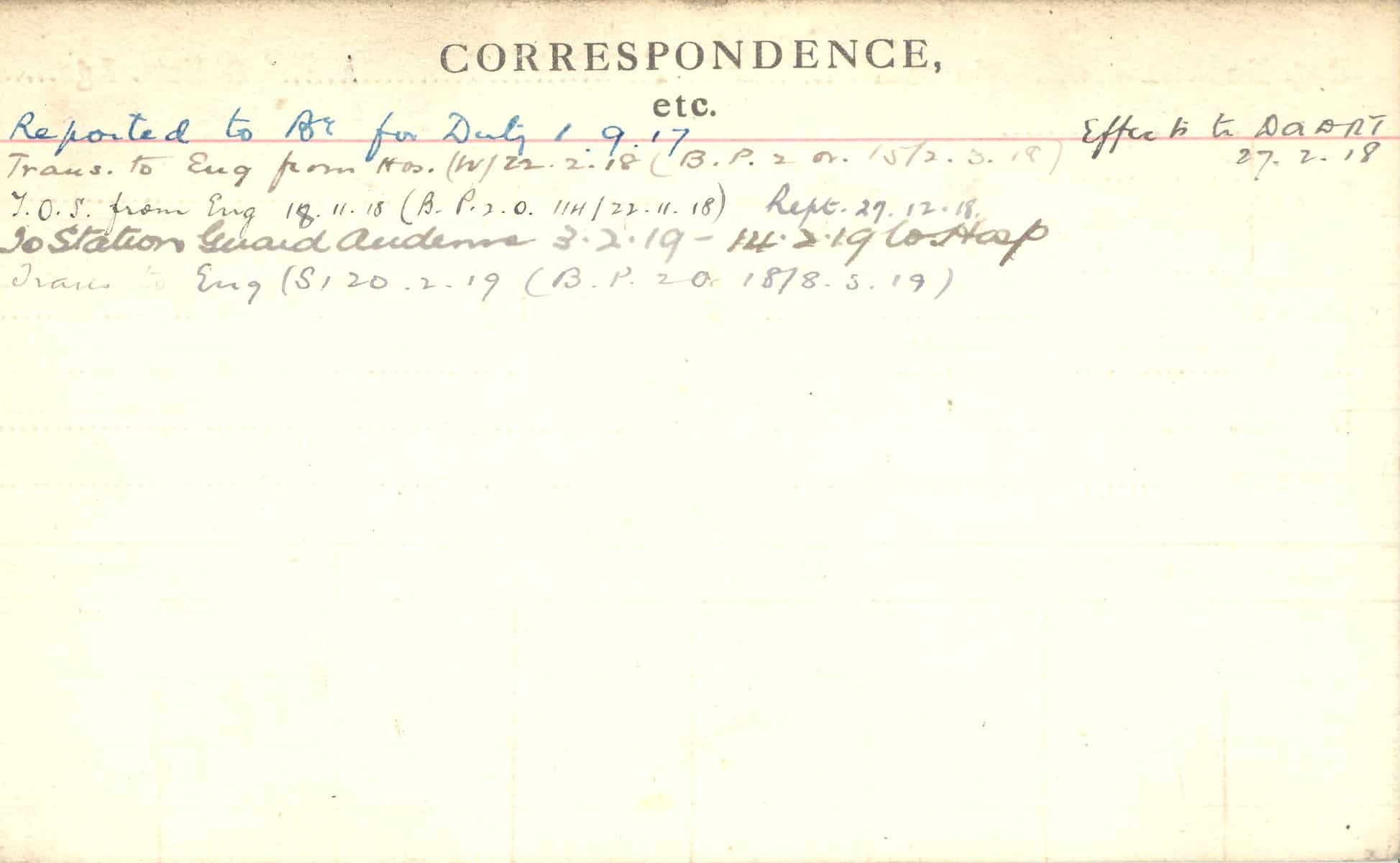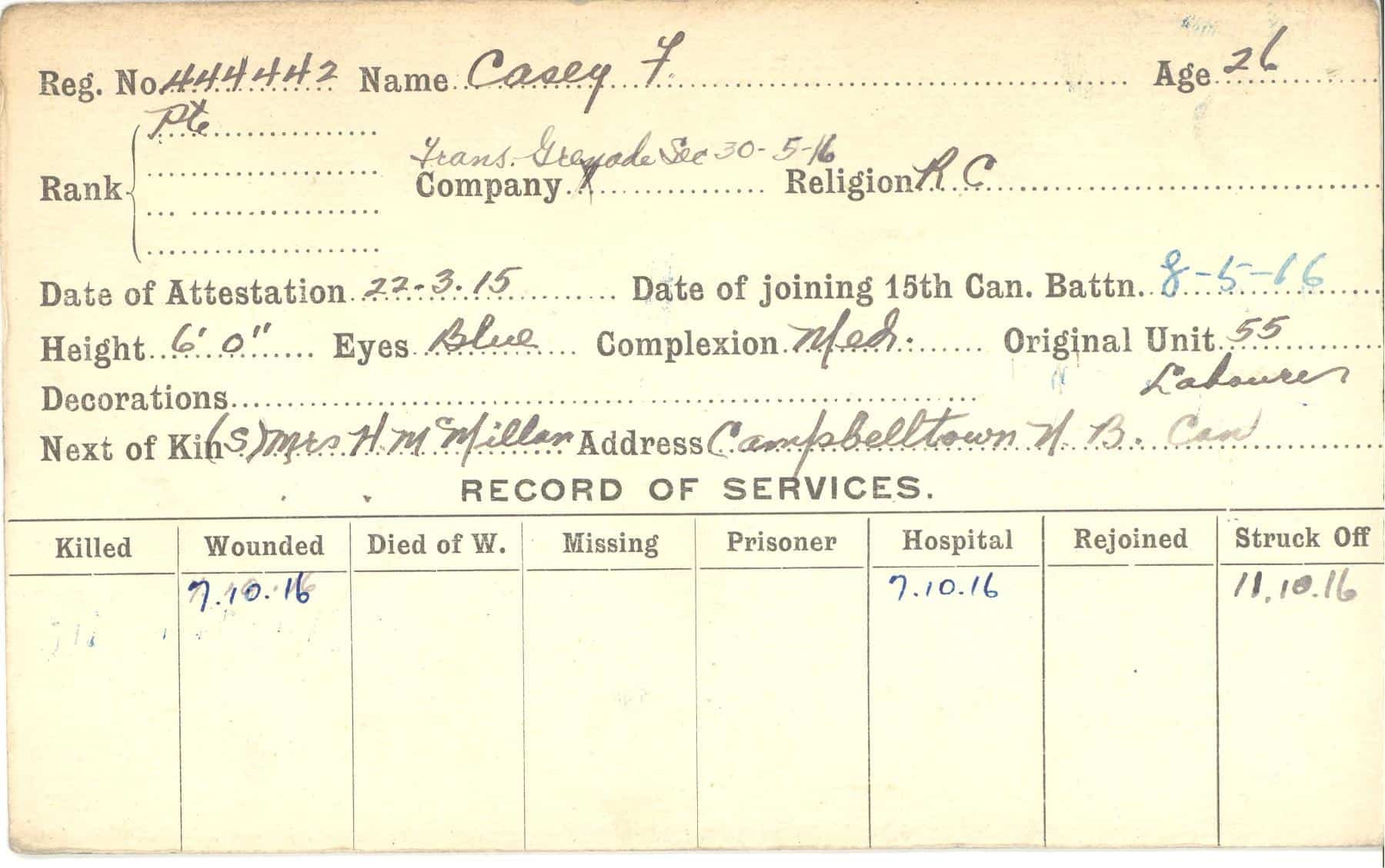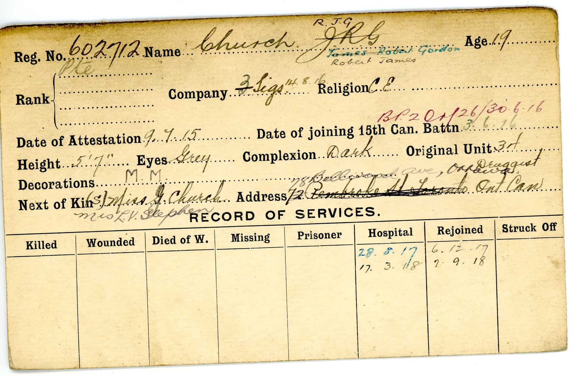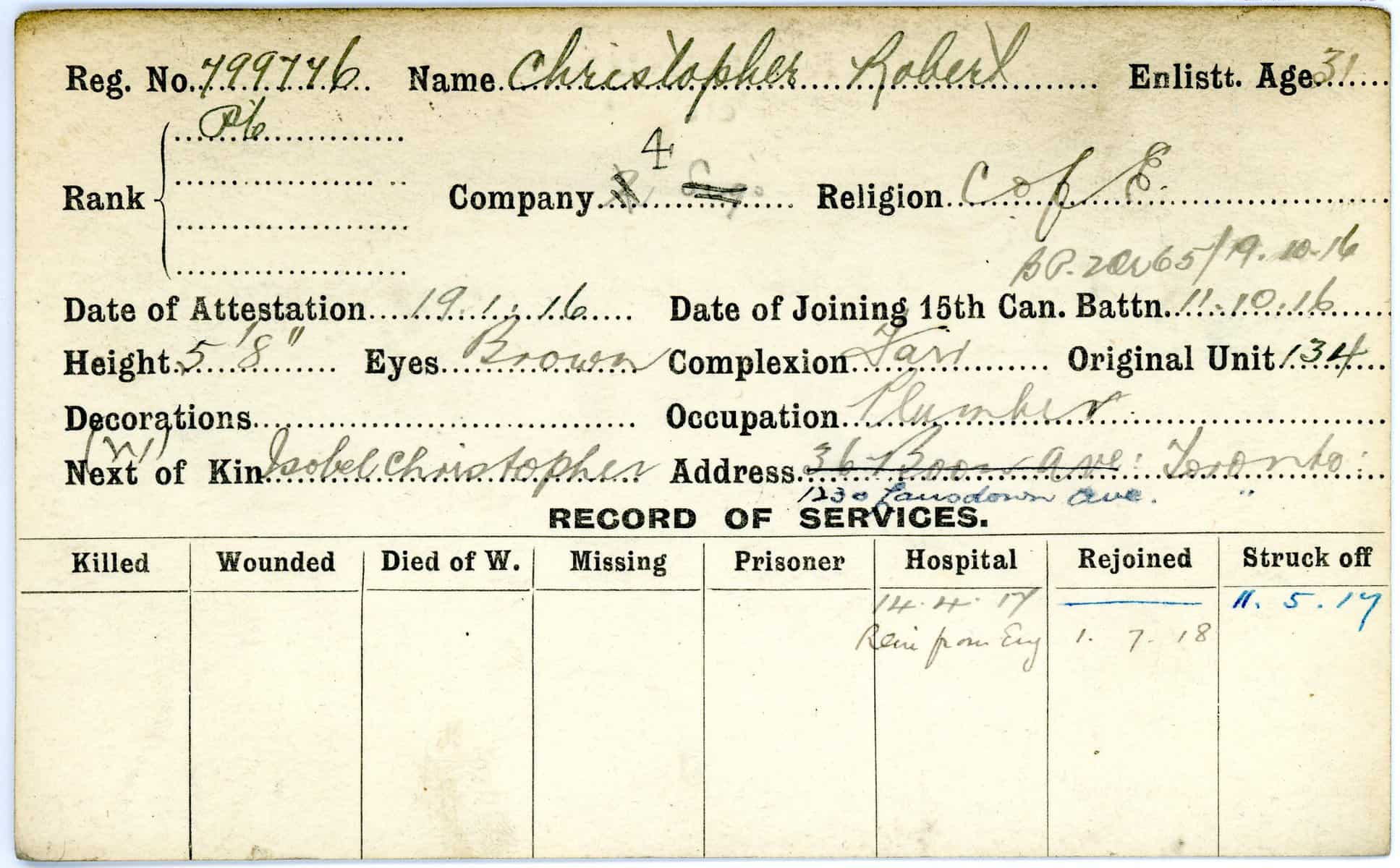 Record of Service Cards – C
