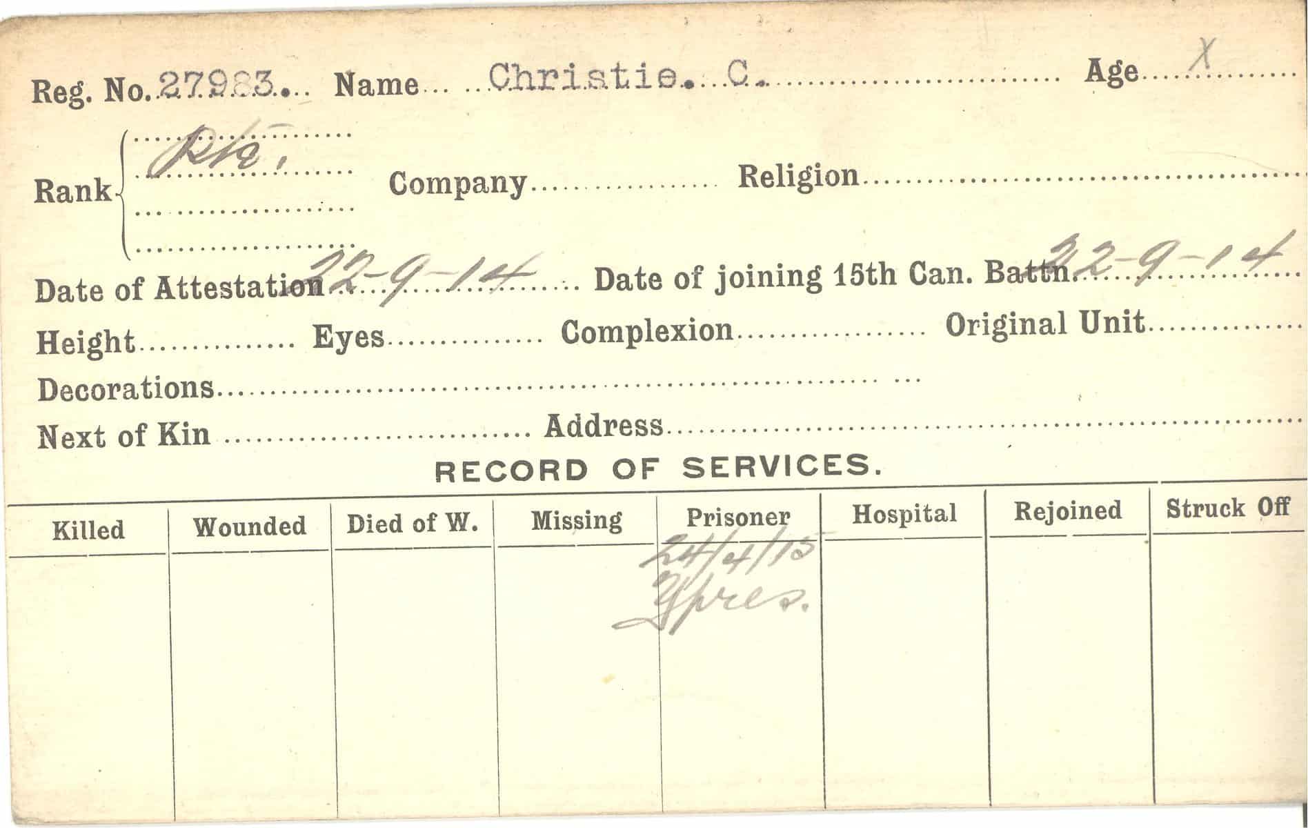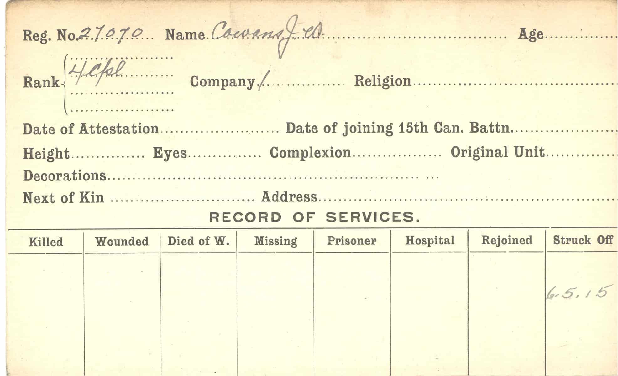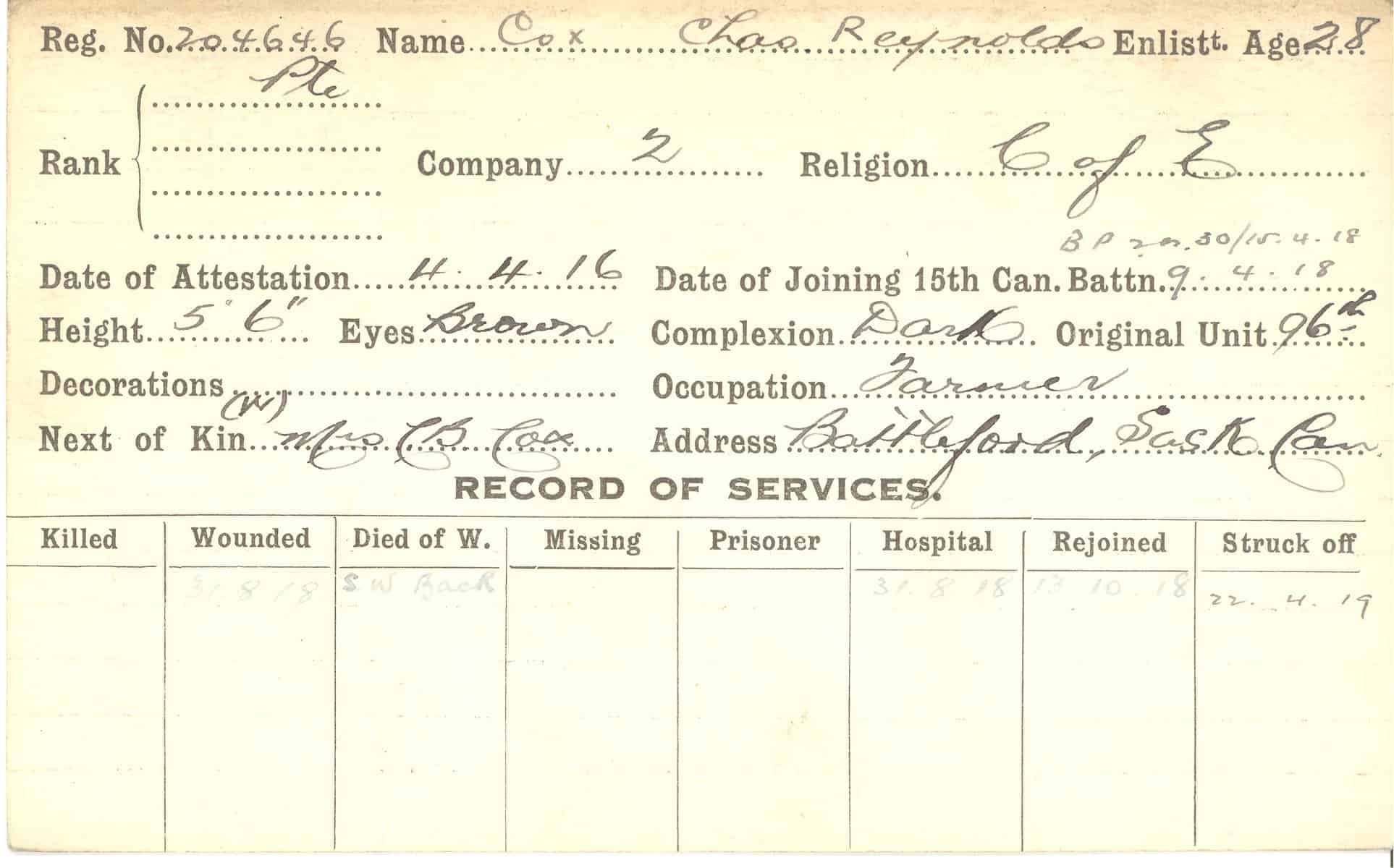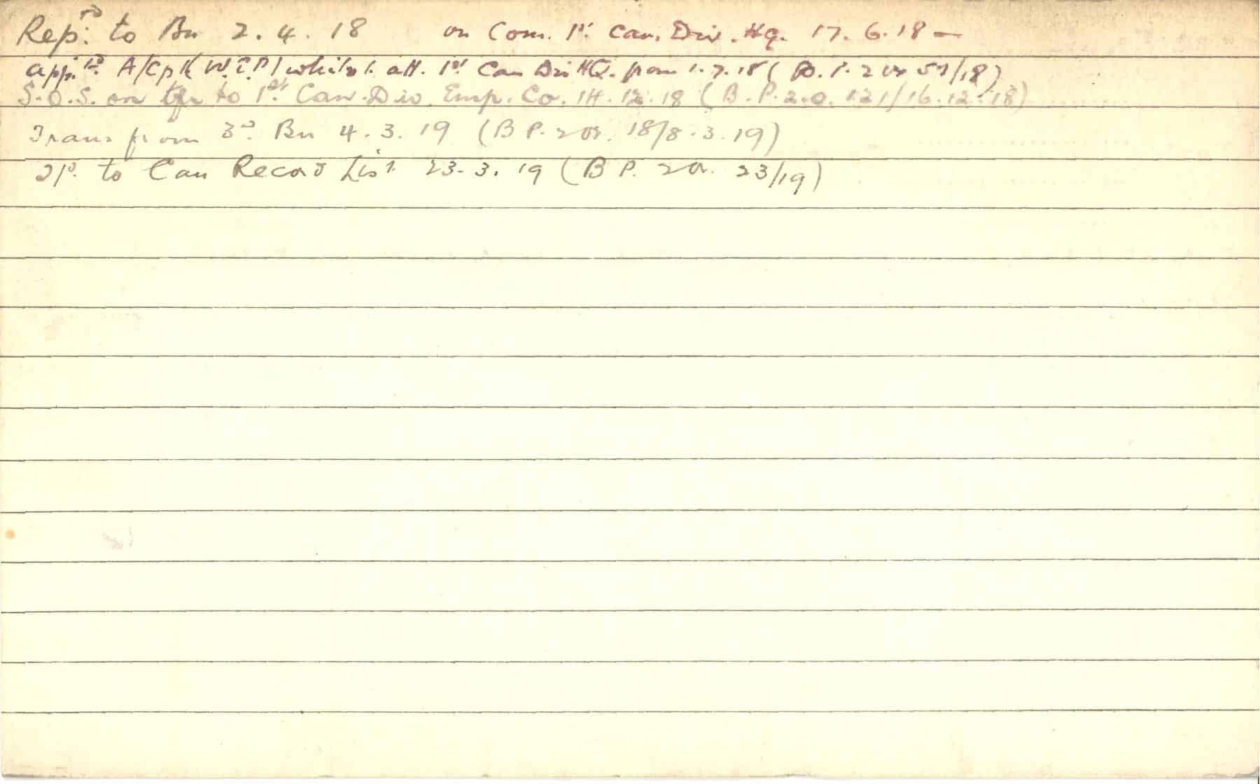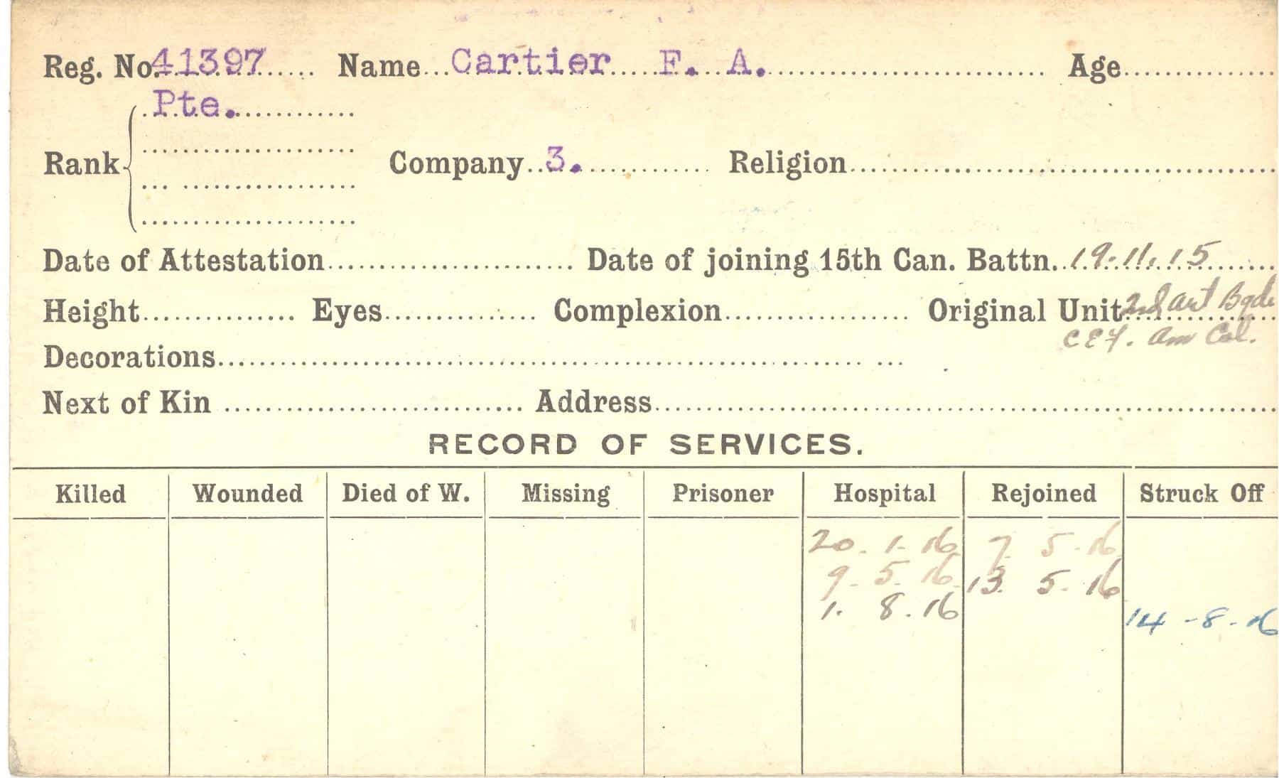 Record of Service Cards – C