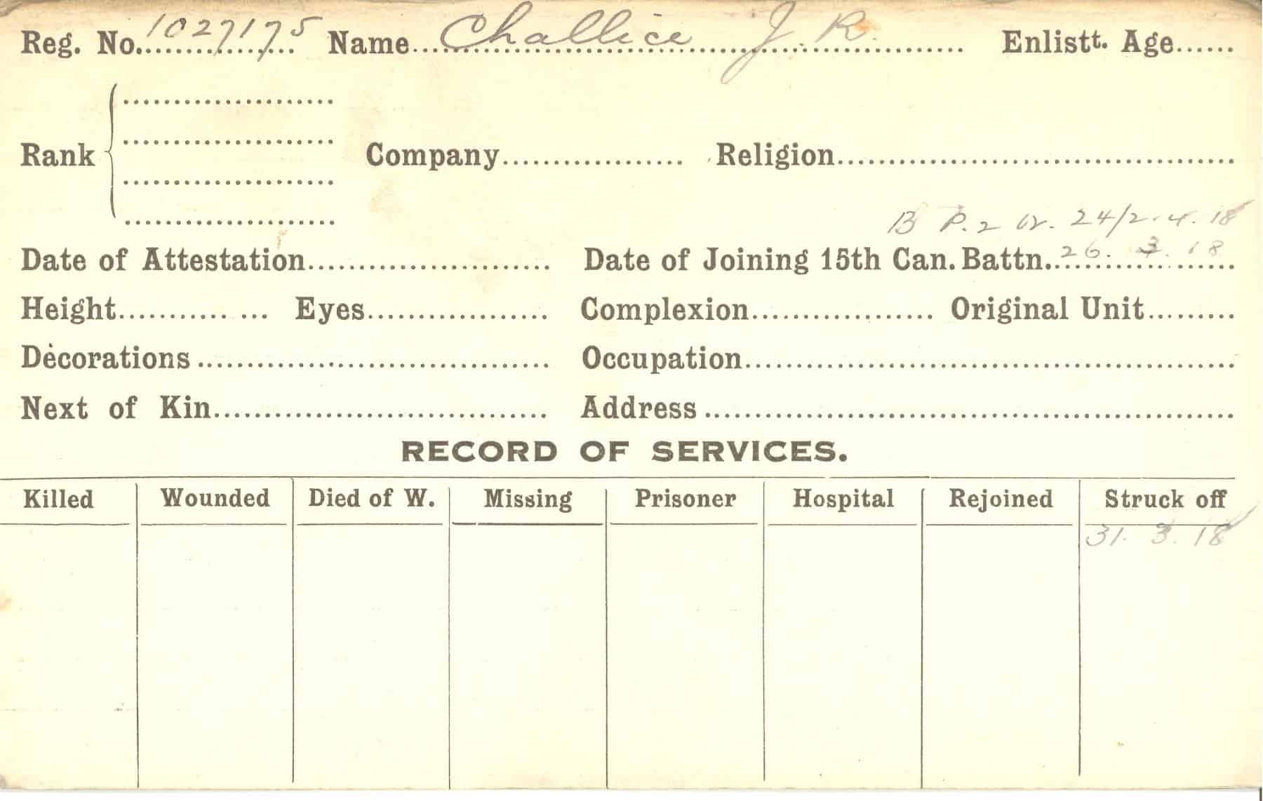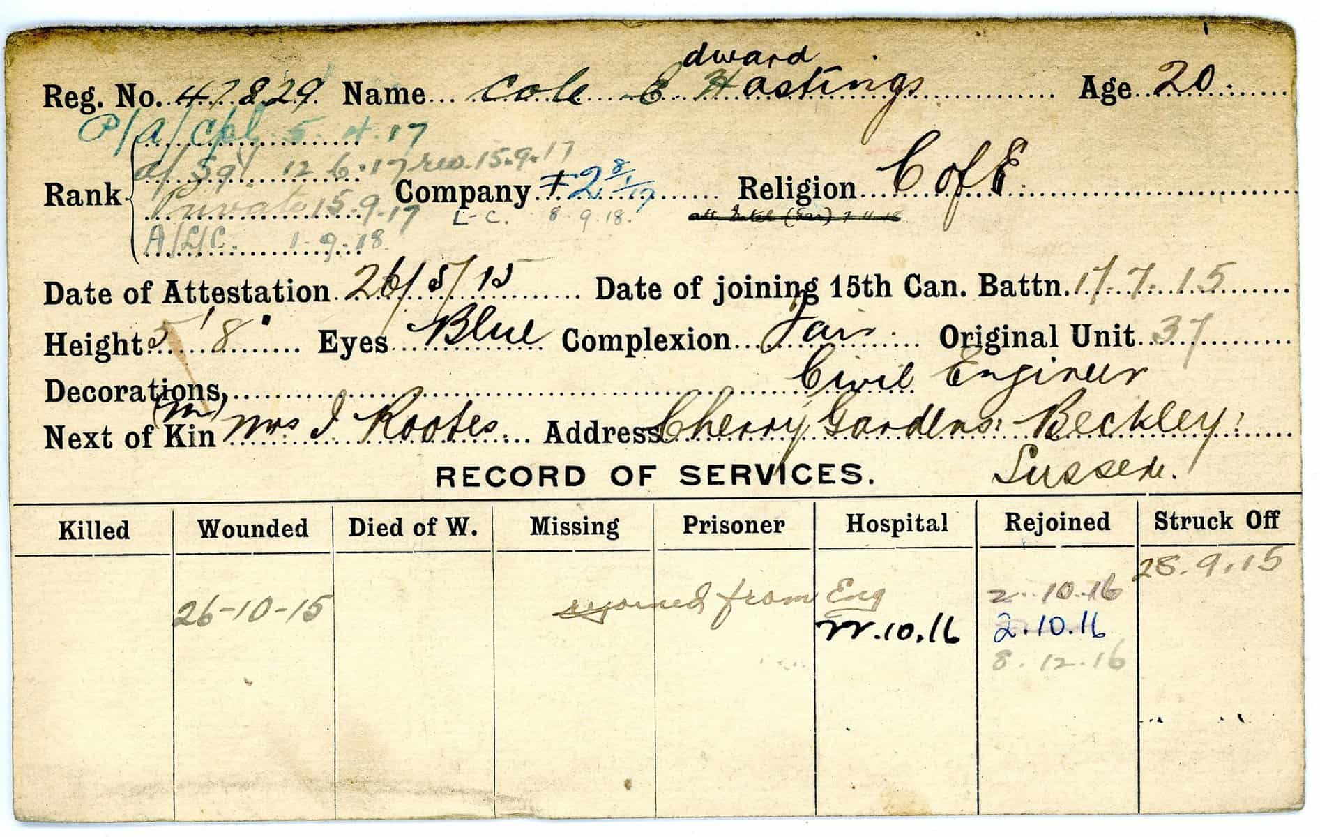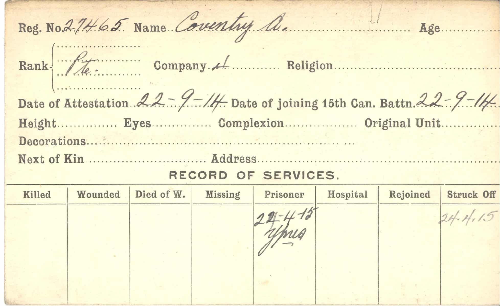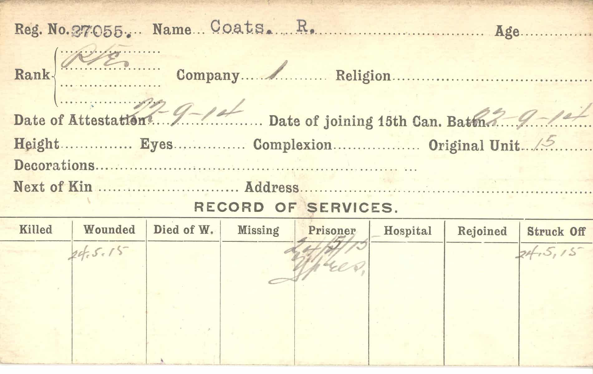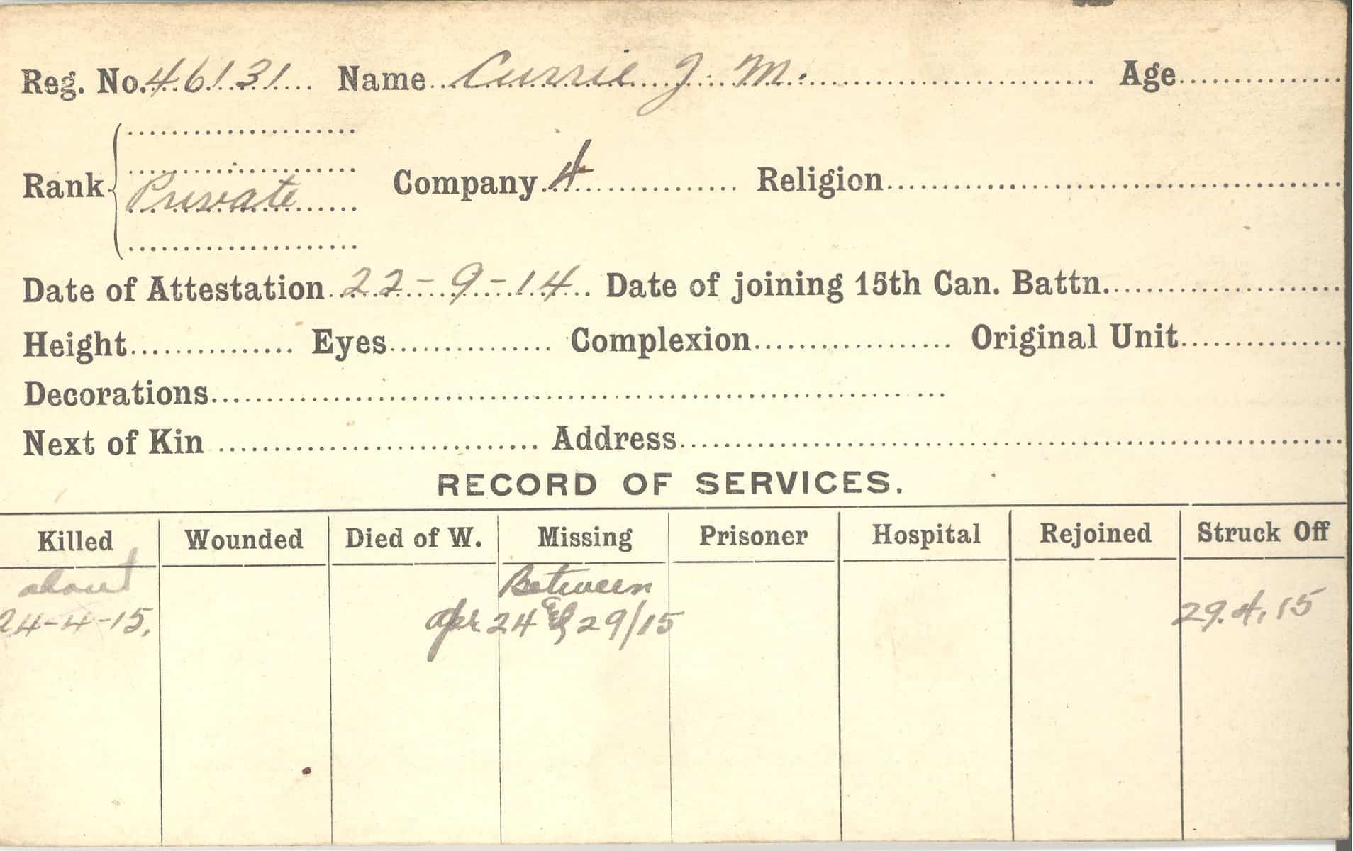 Record of Service Cards – C
