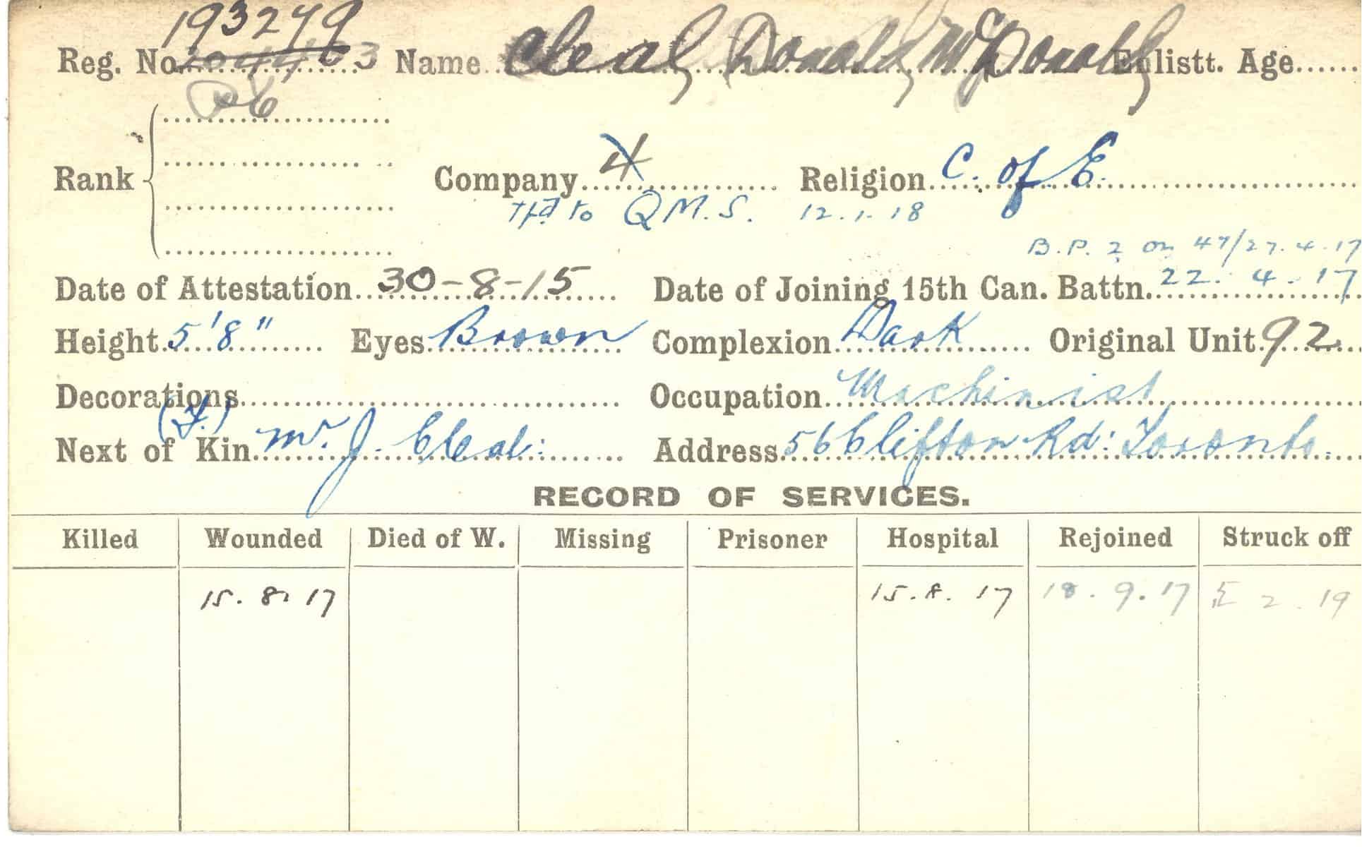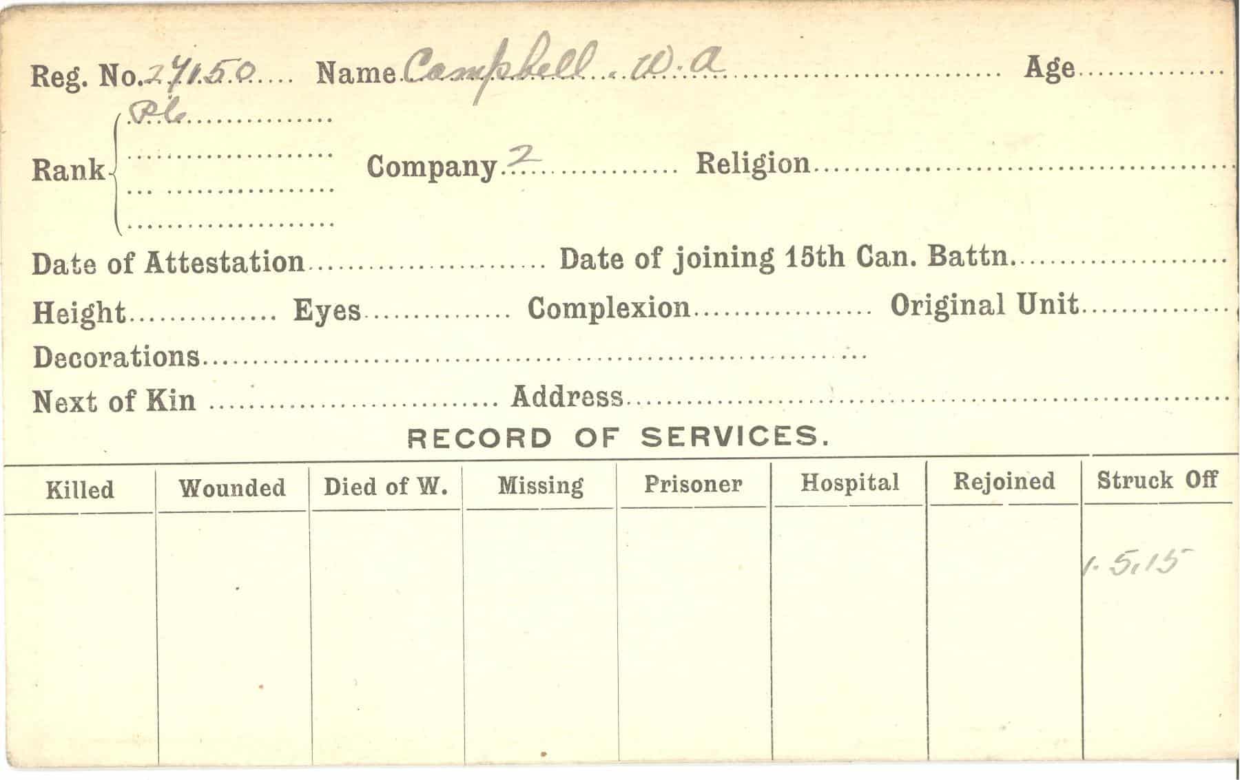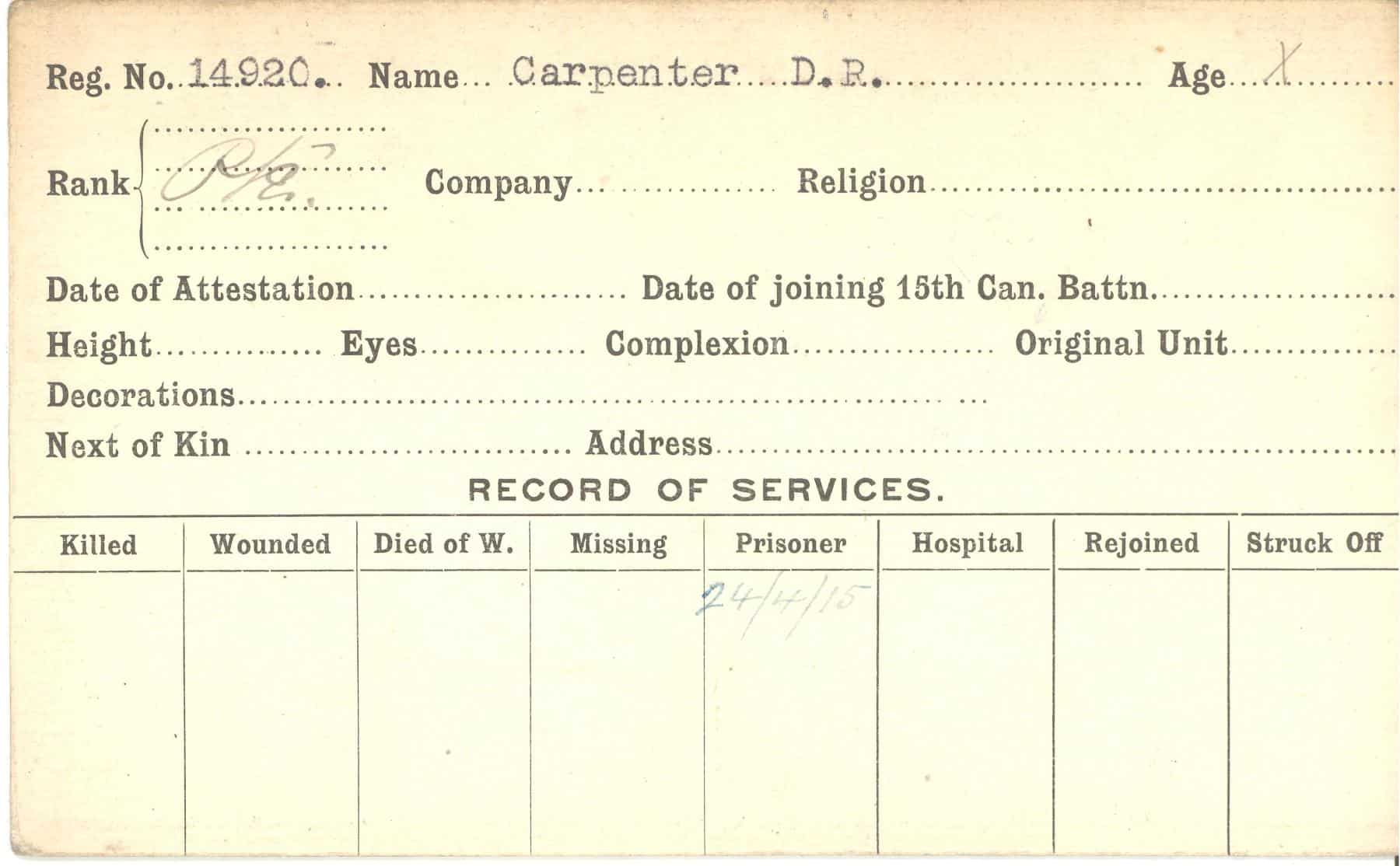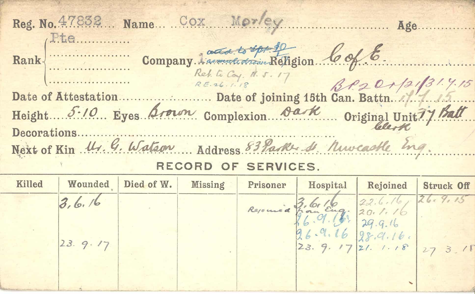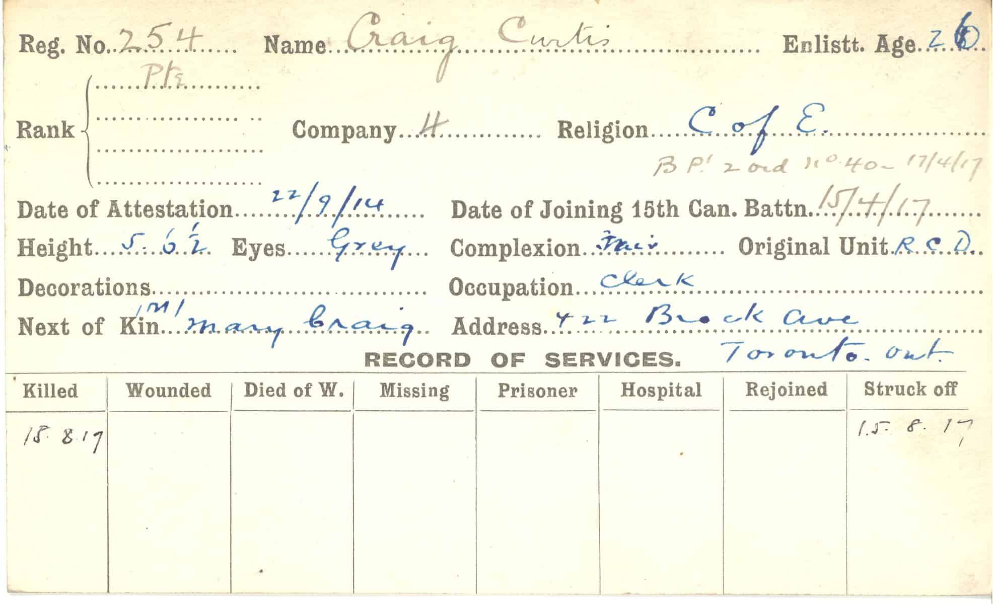 Record of Service Cards – C