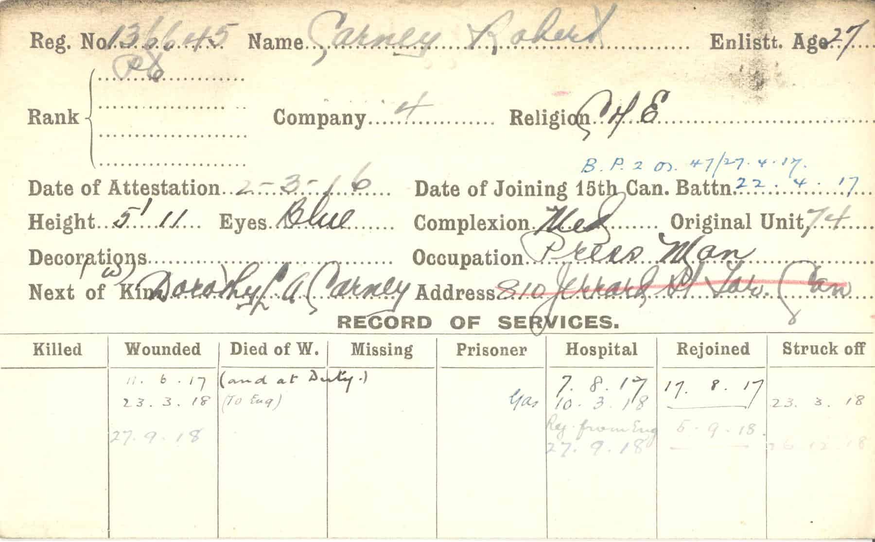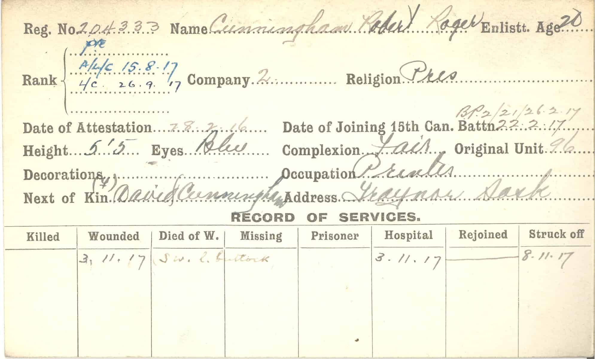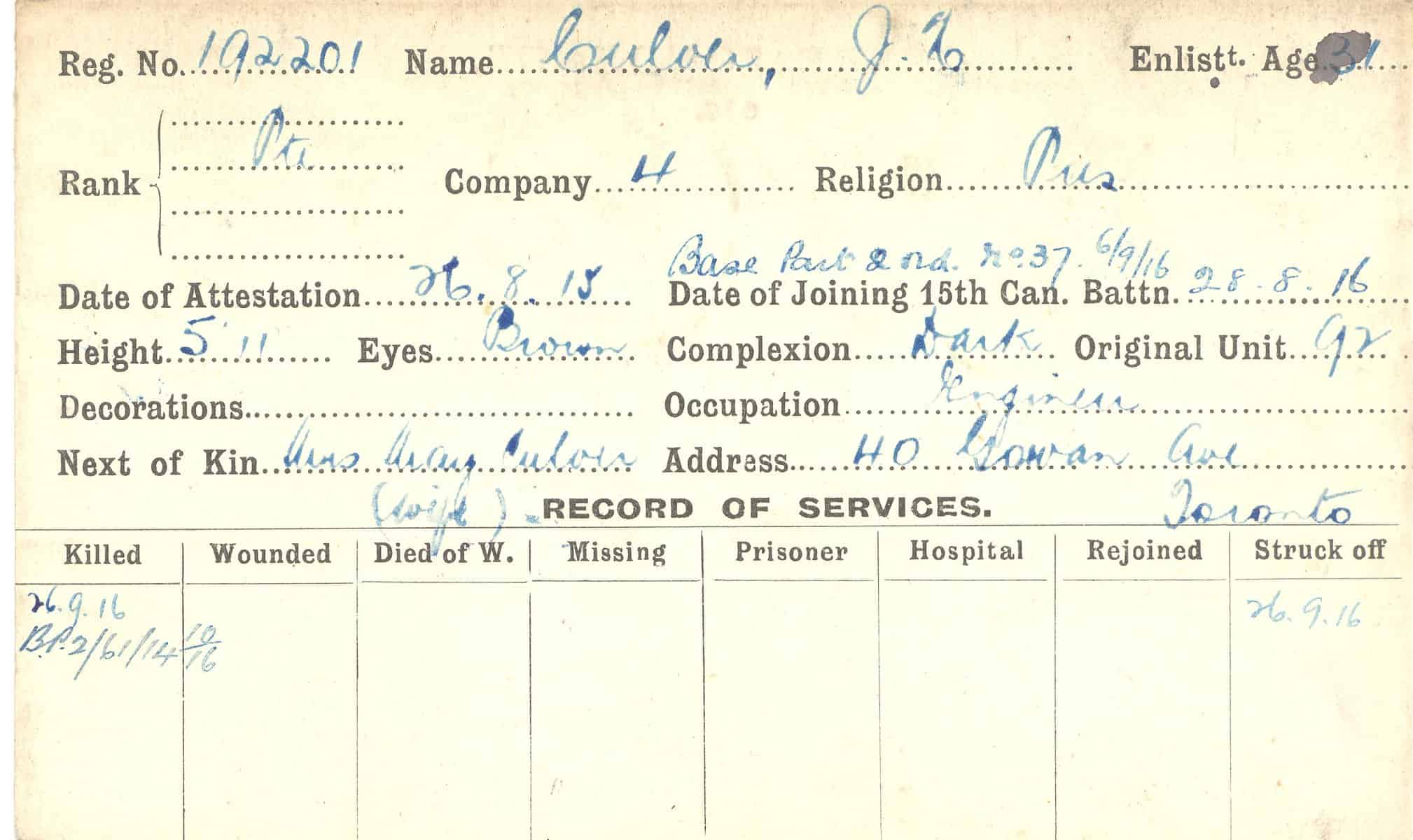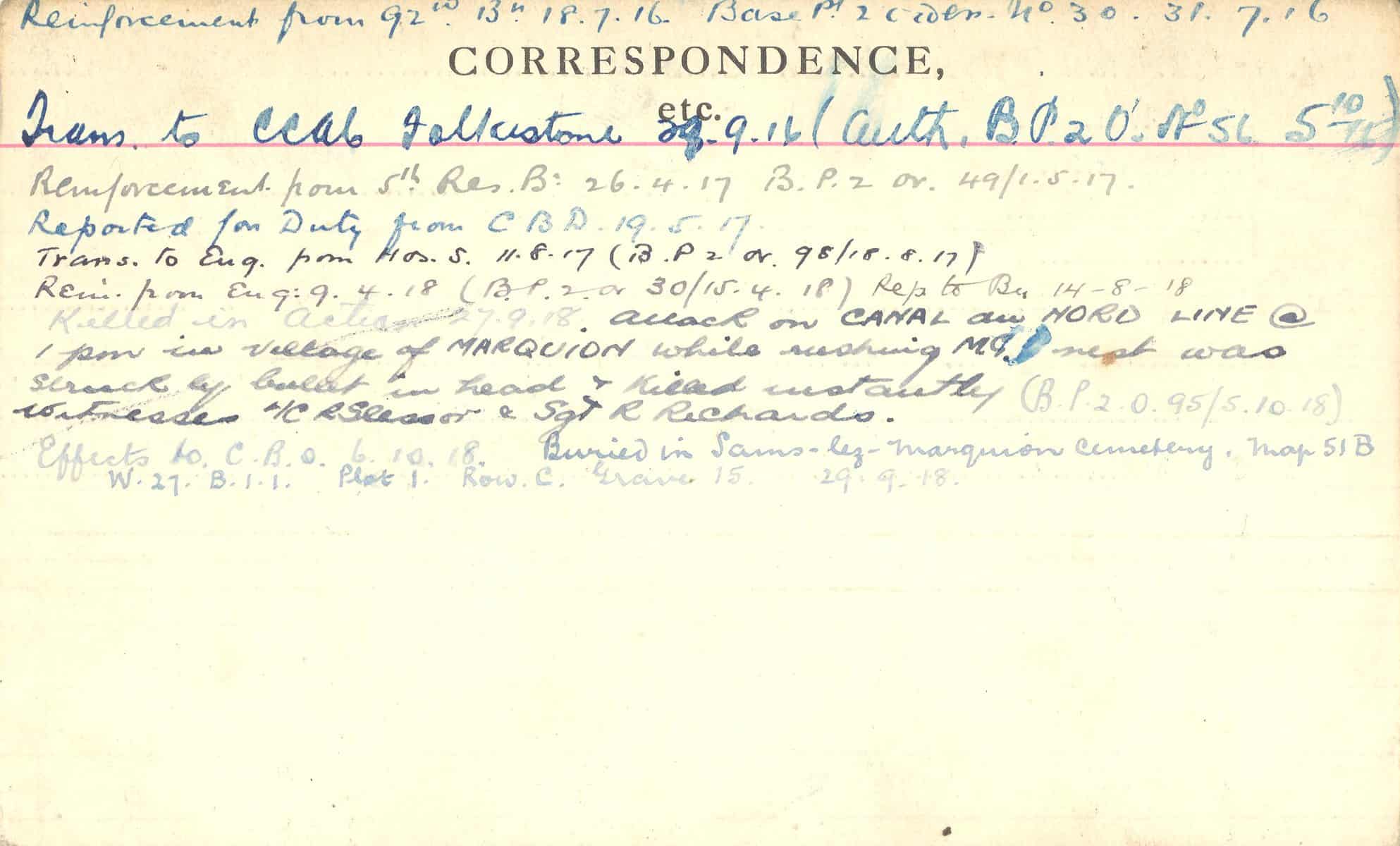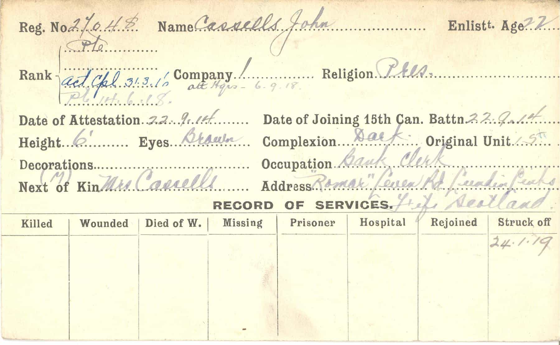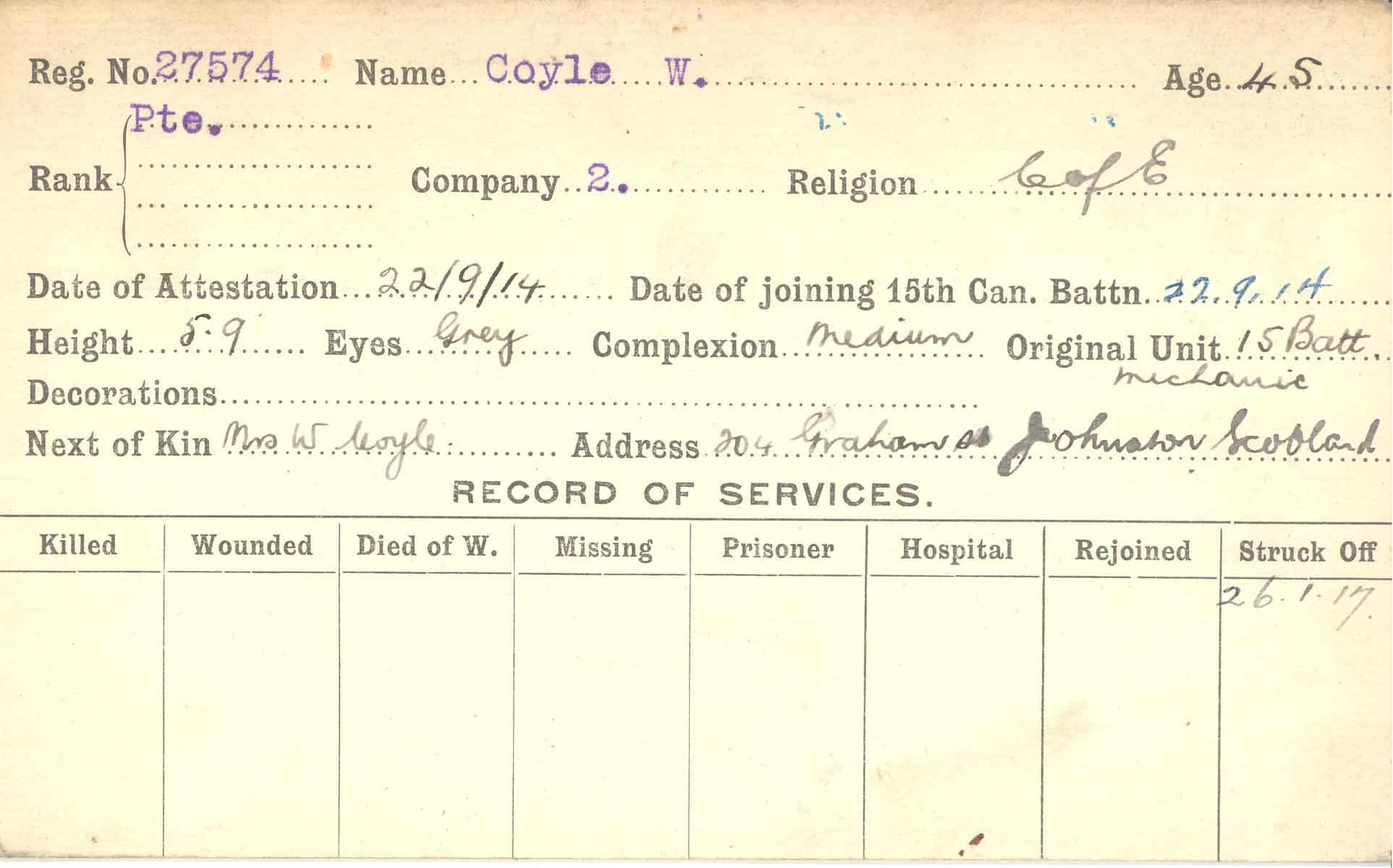 Record of Service Cards – C