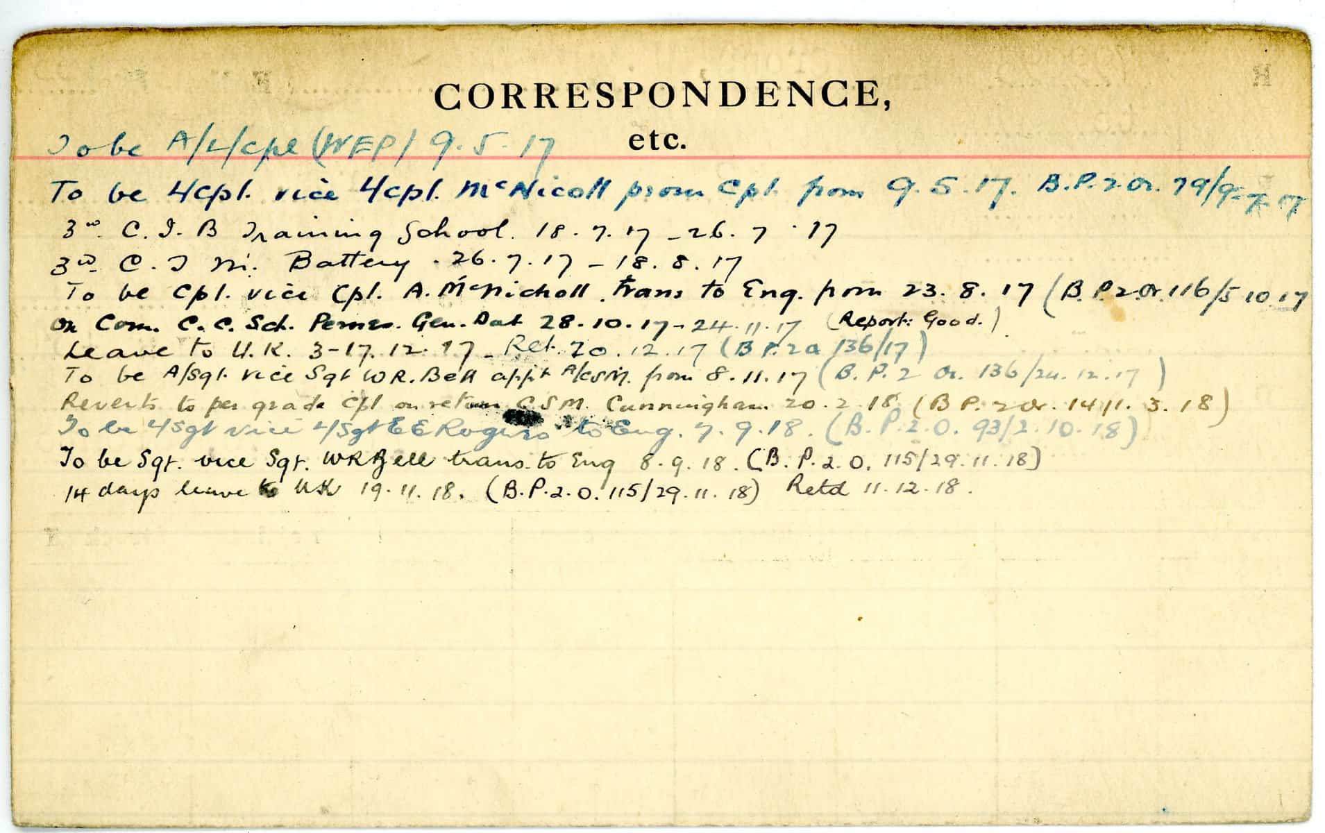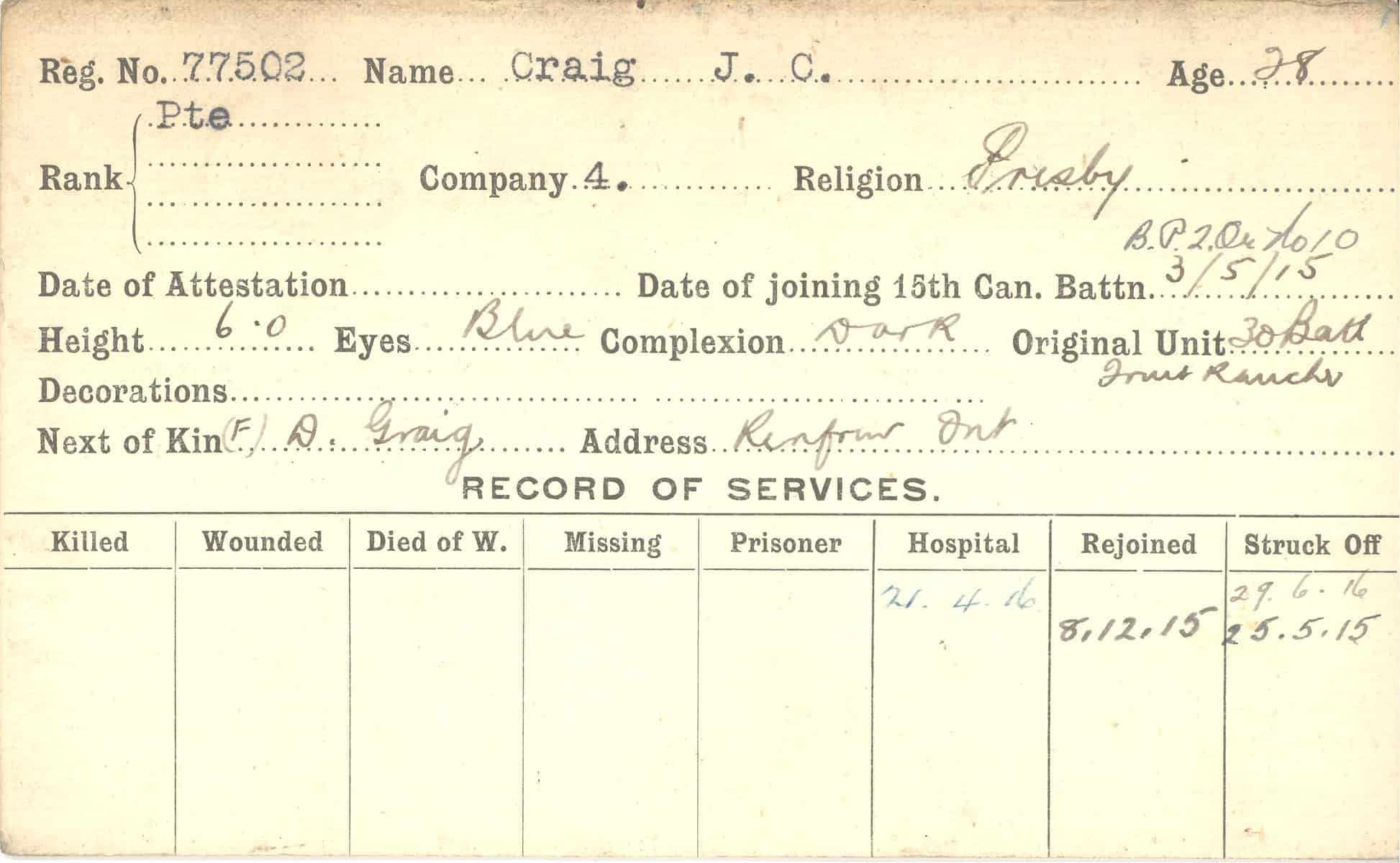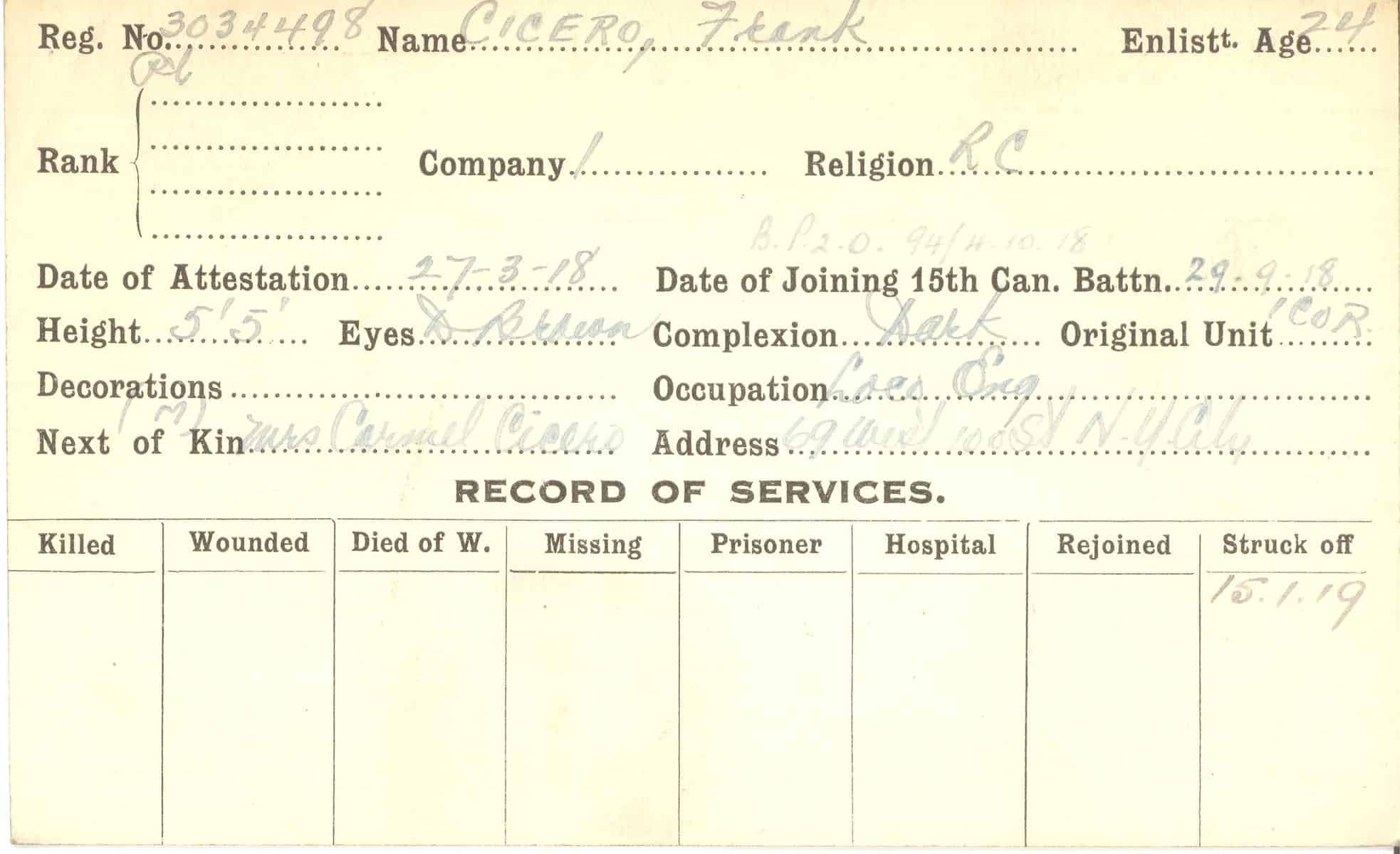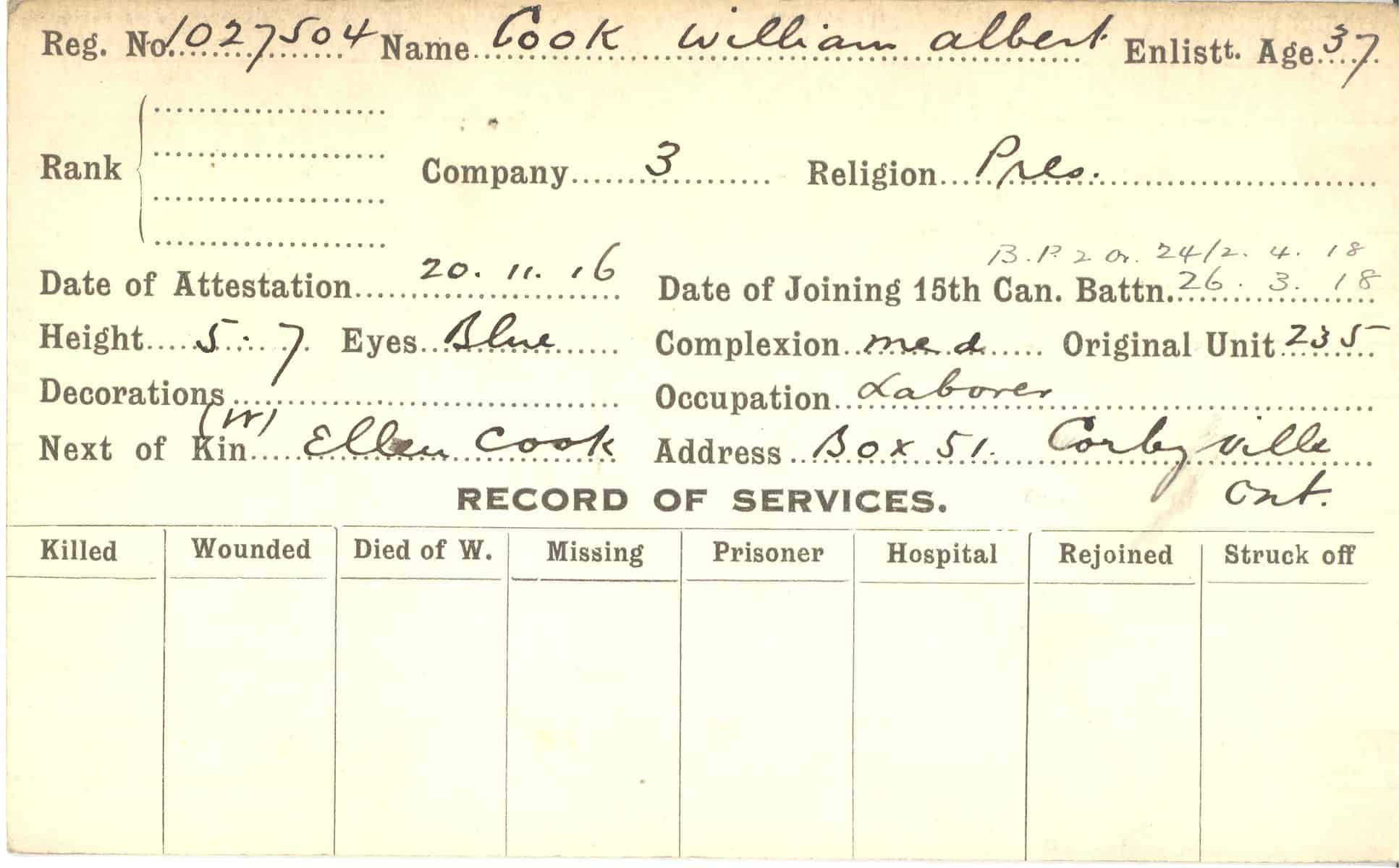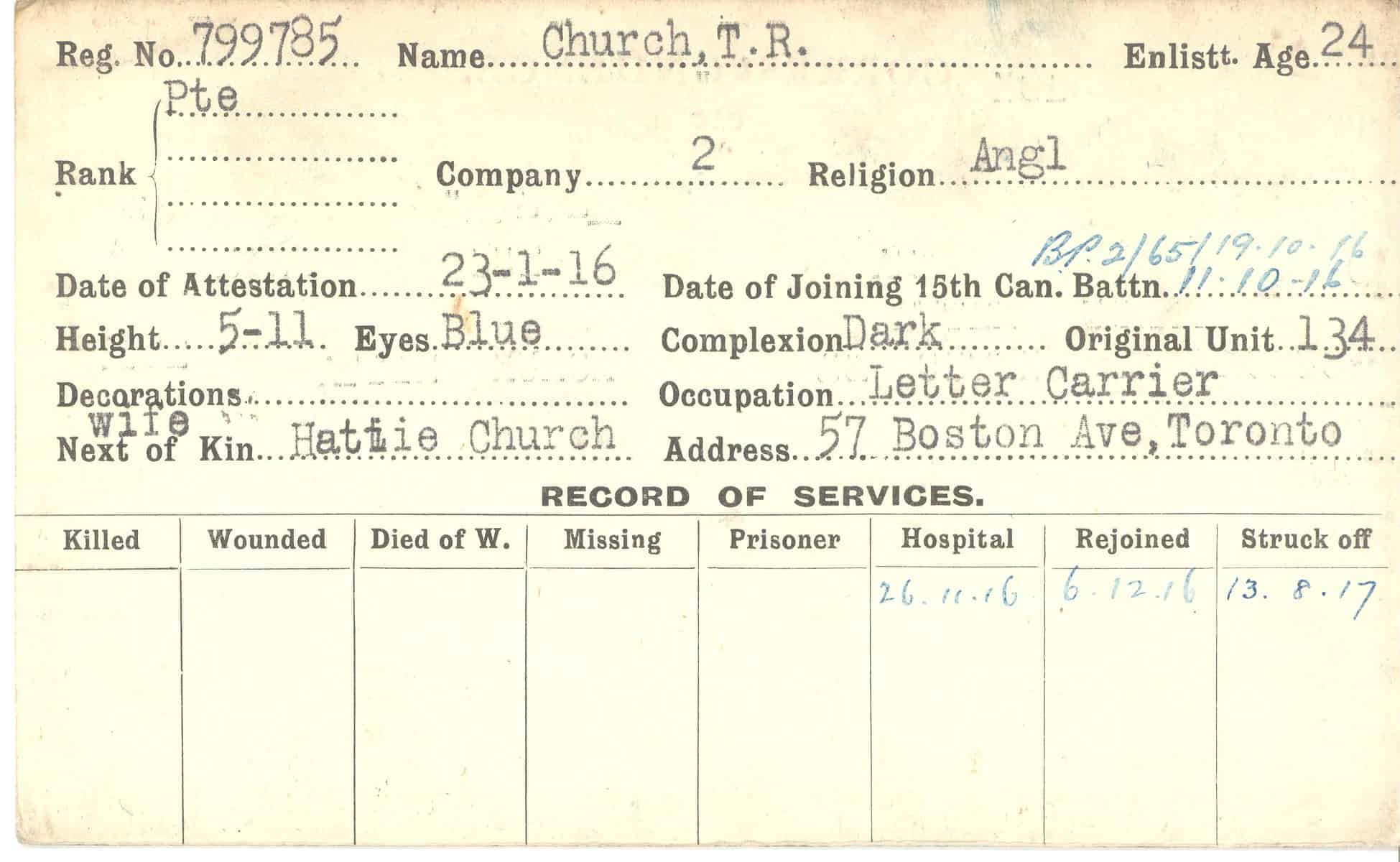 Record of Service Cards – C