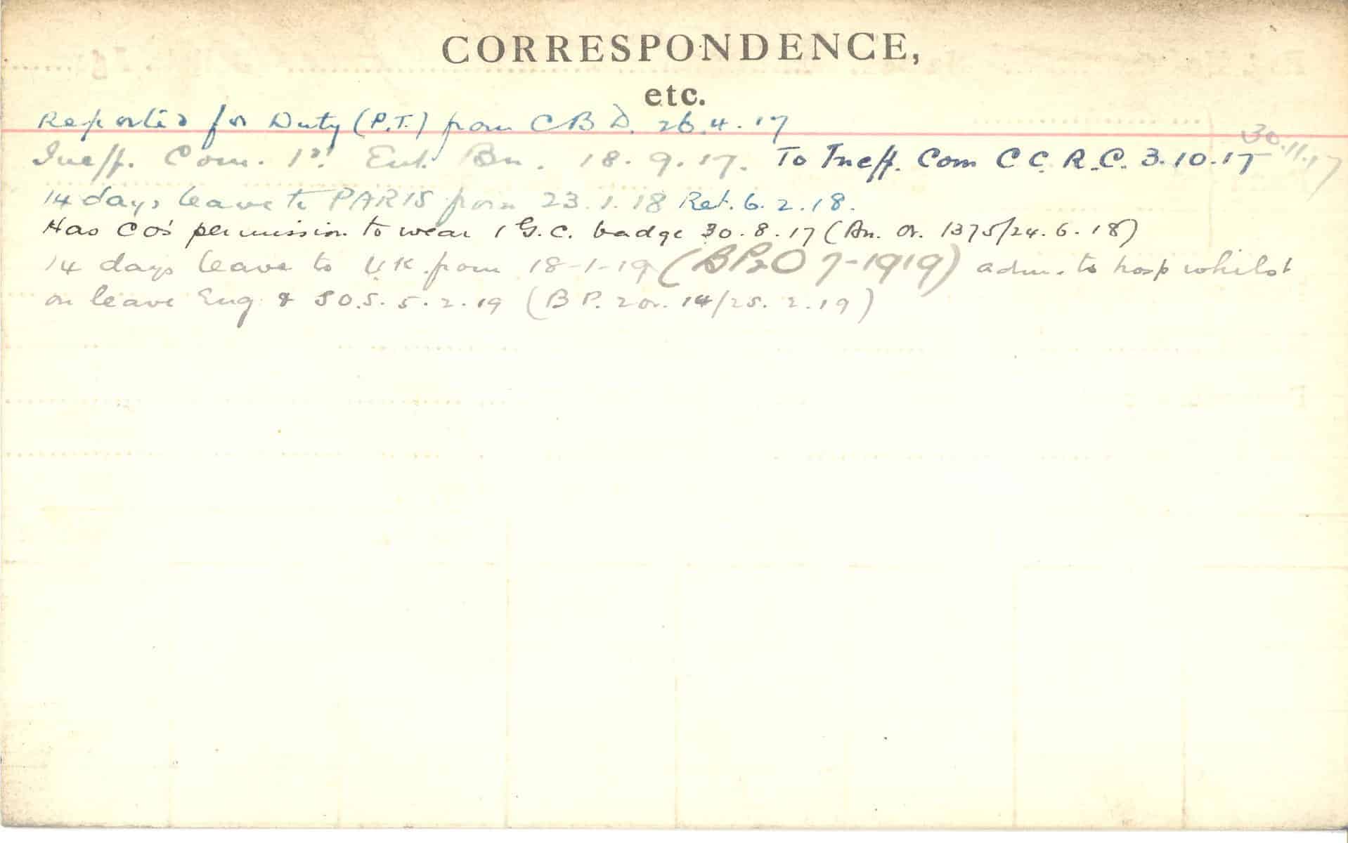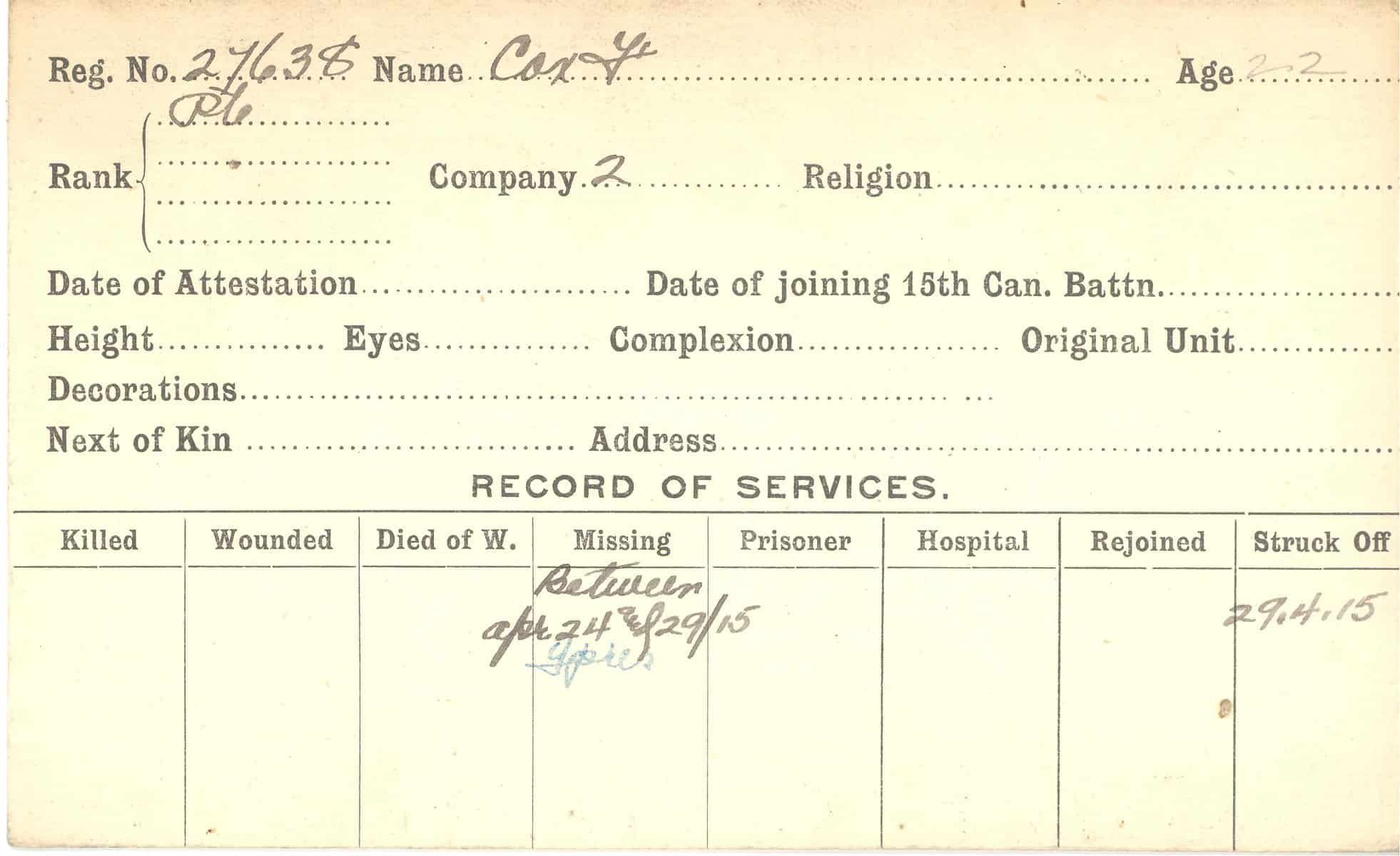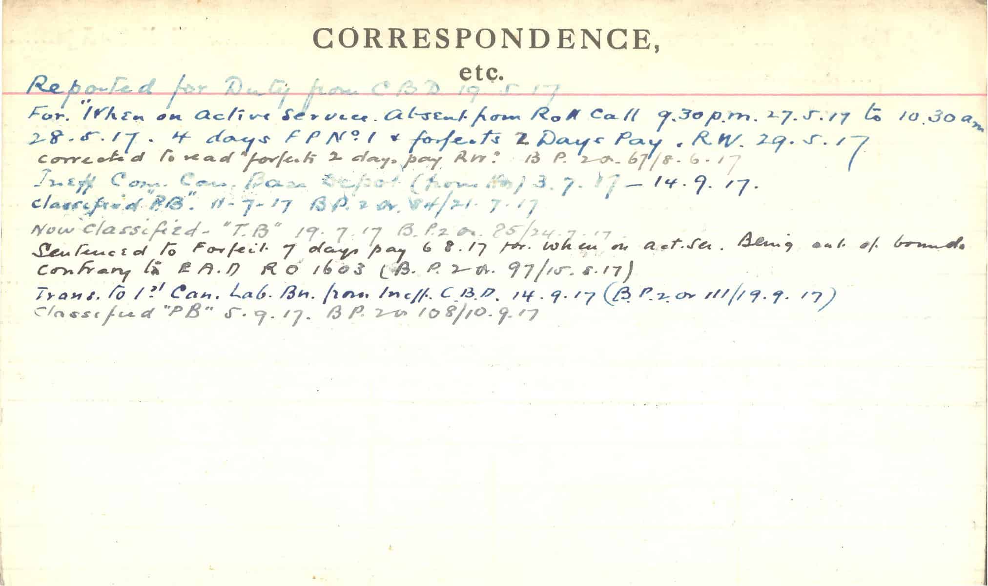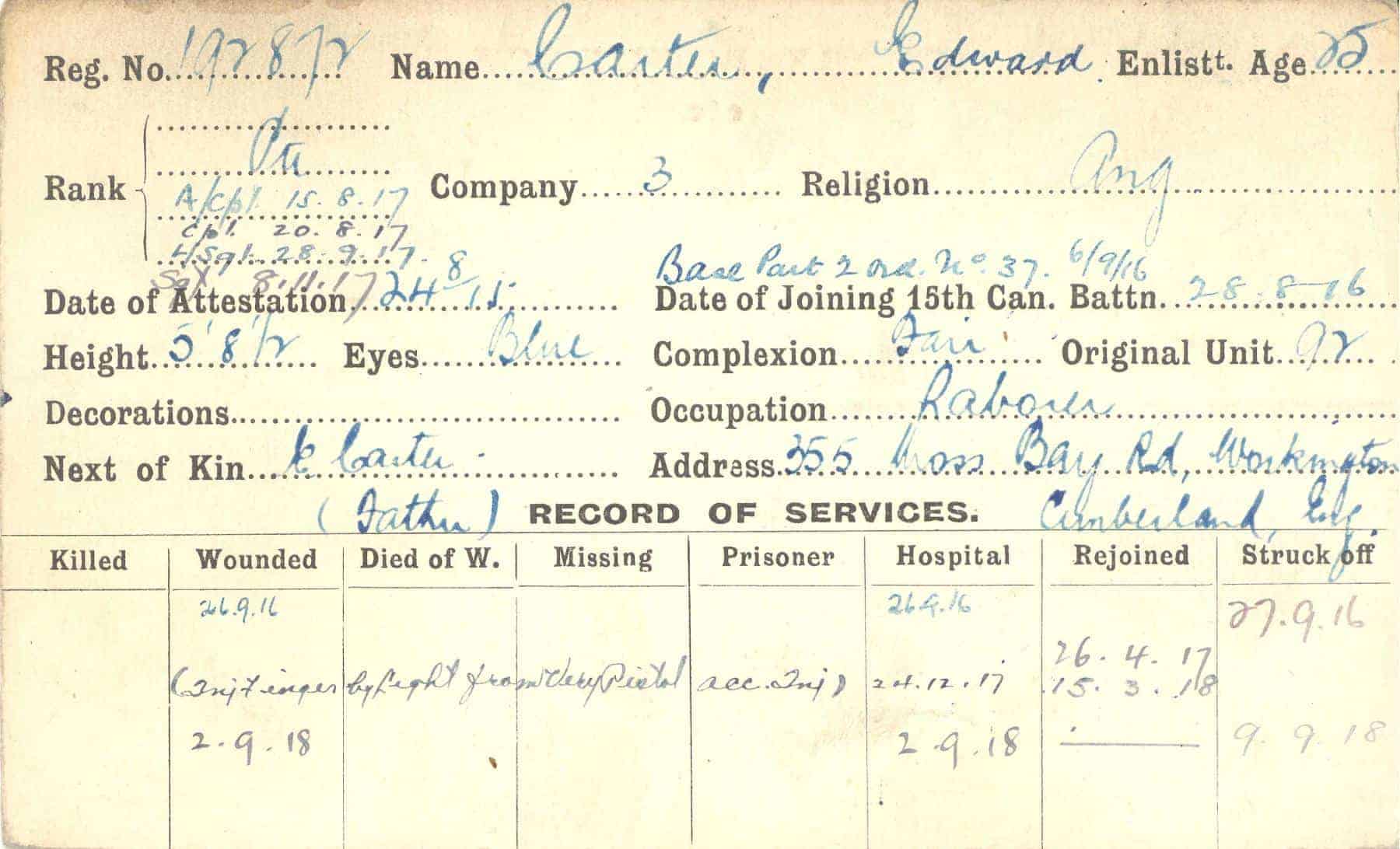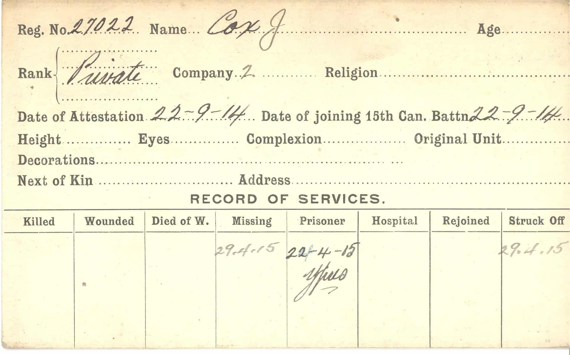 Record of Service Cards – C