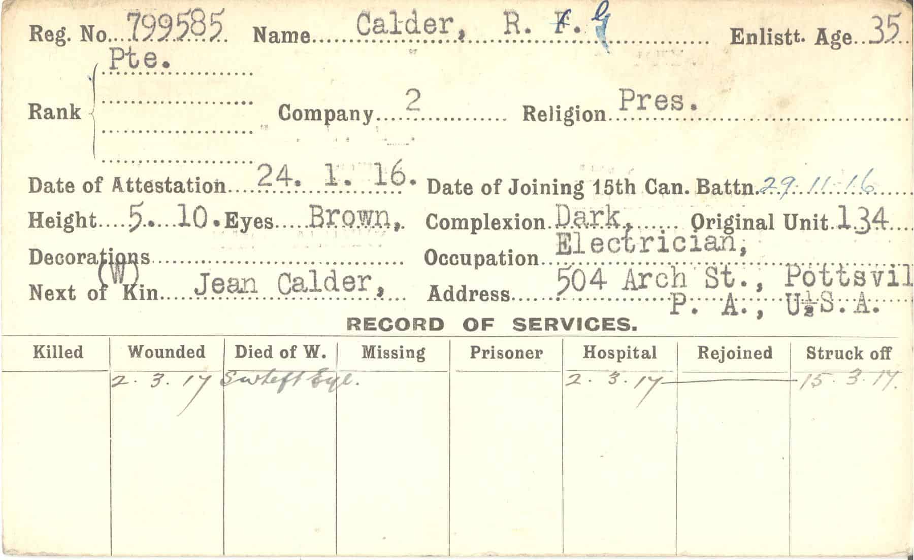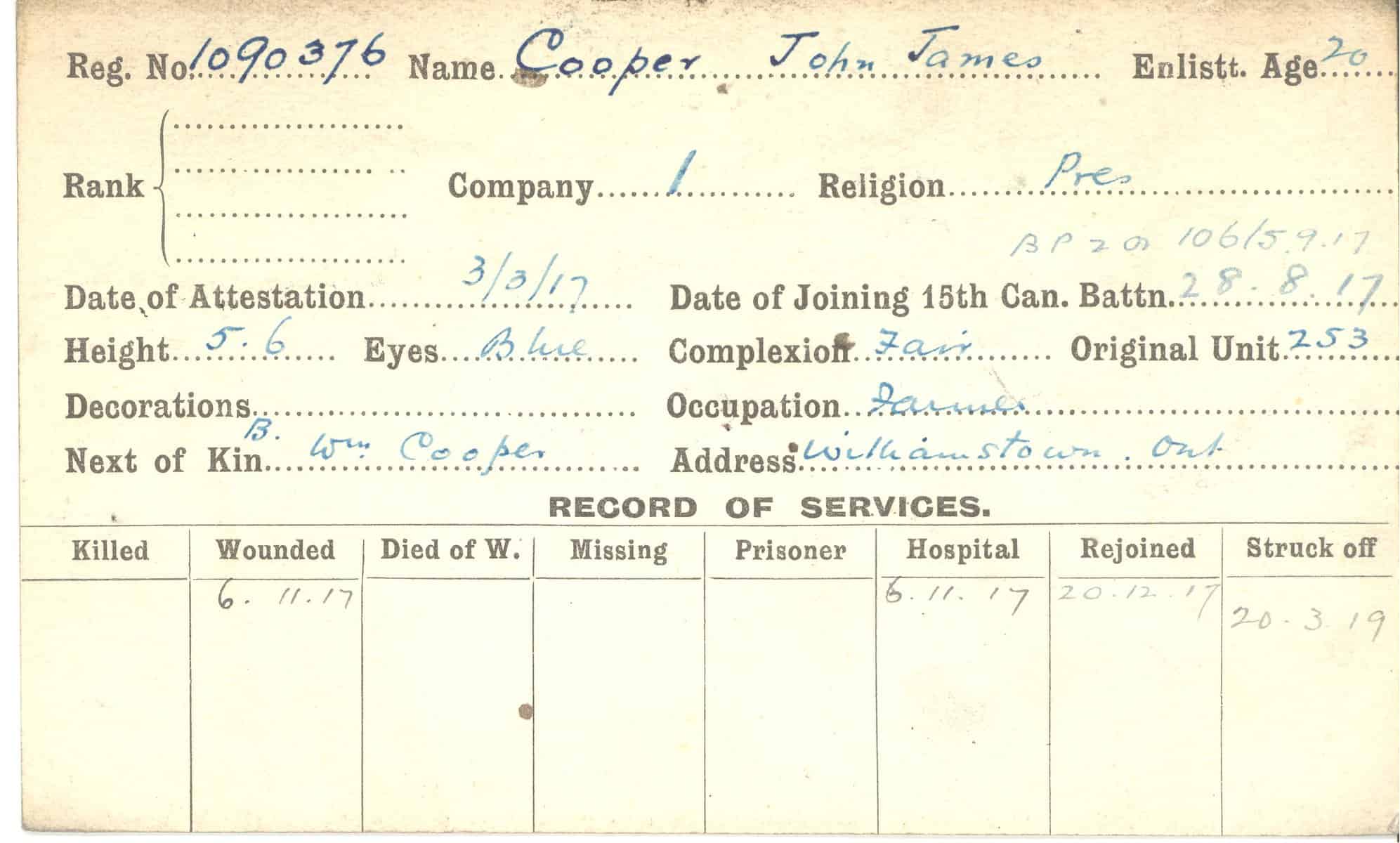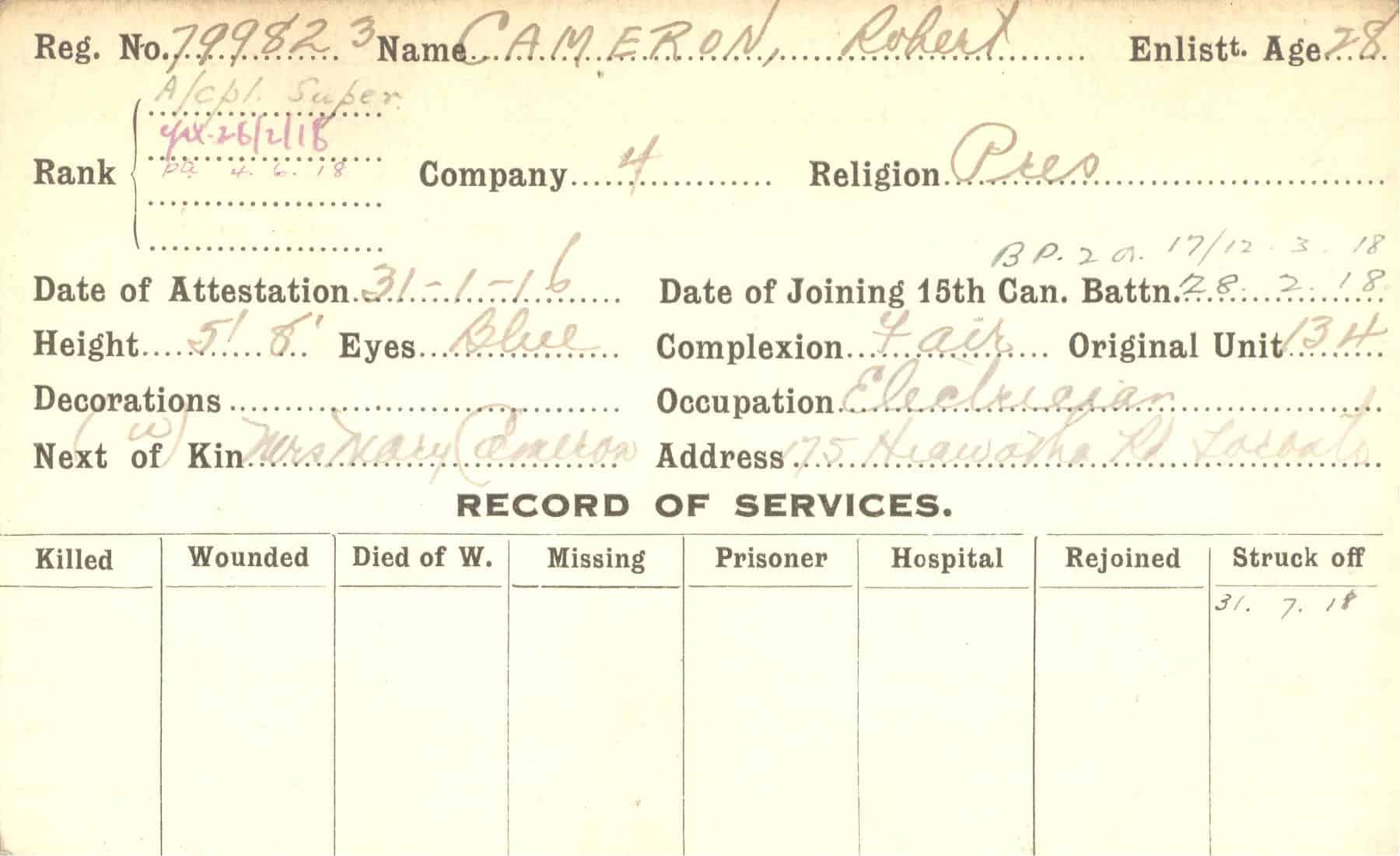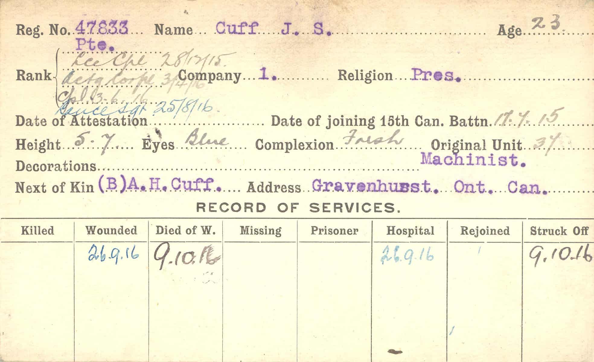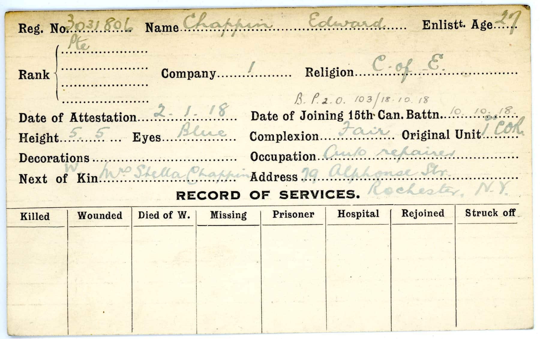 Record of Service Cards – C