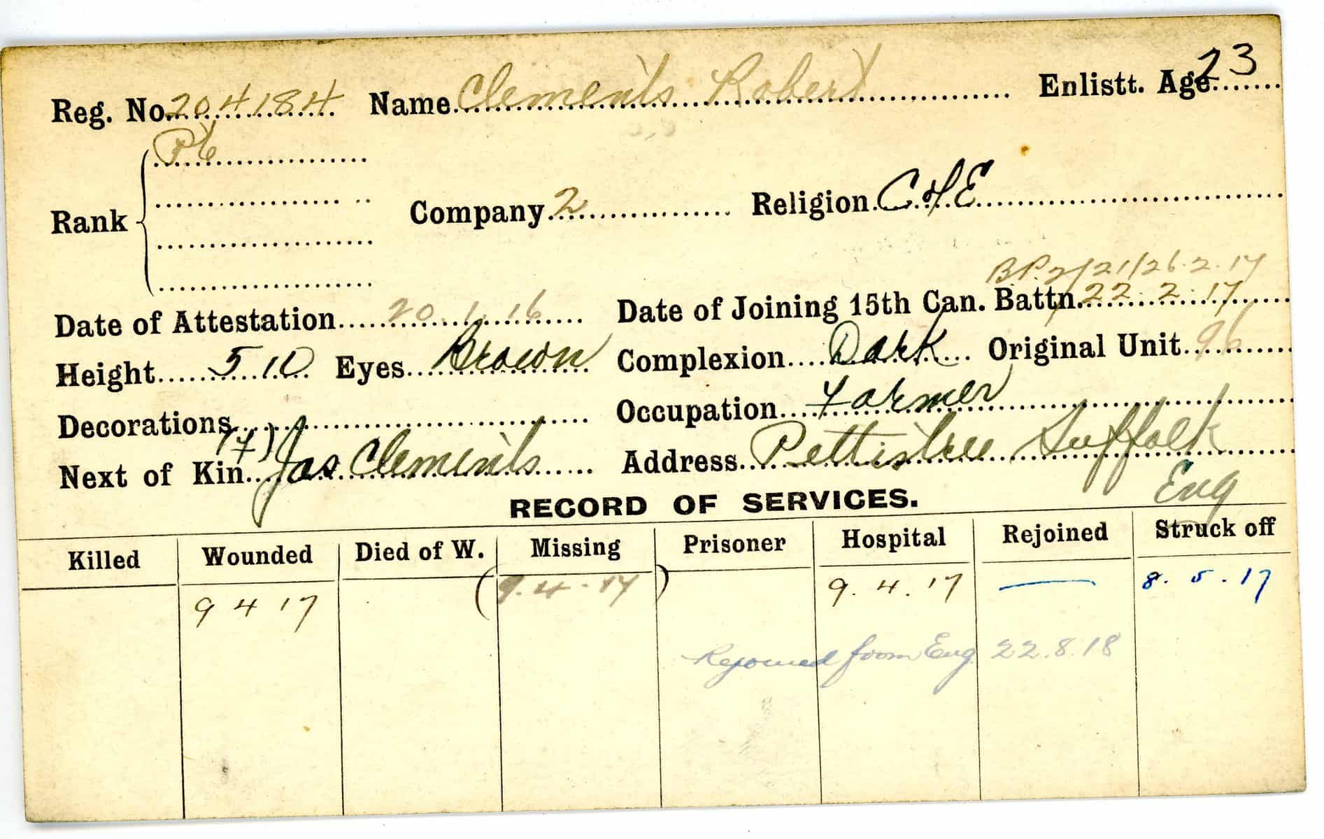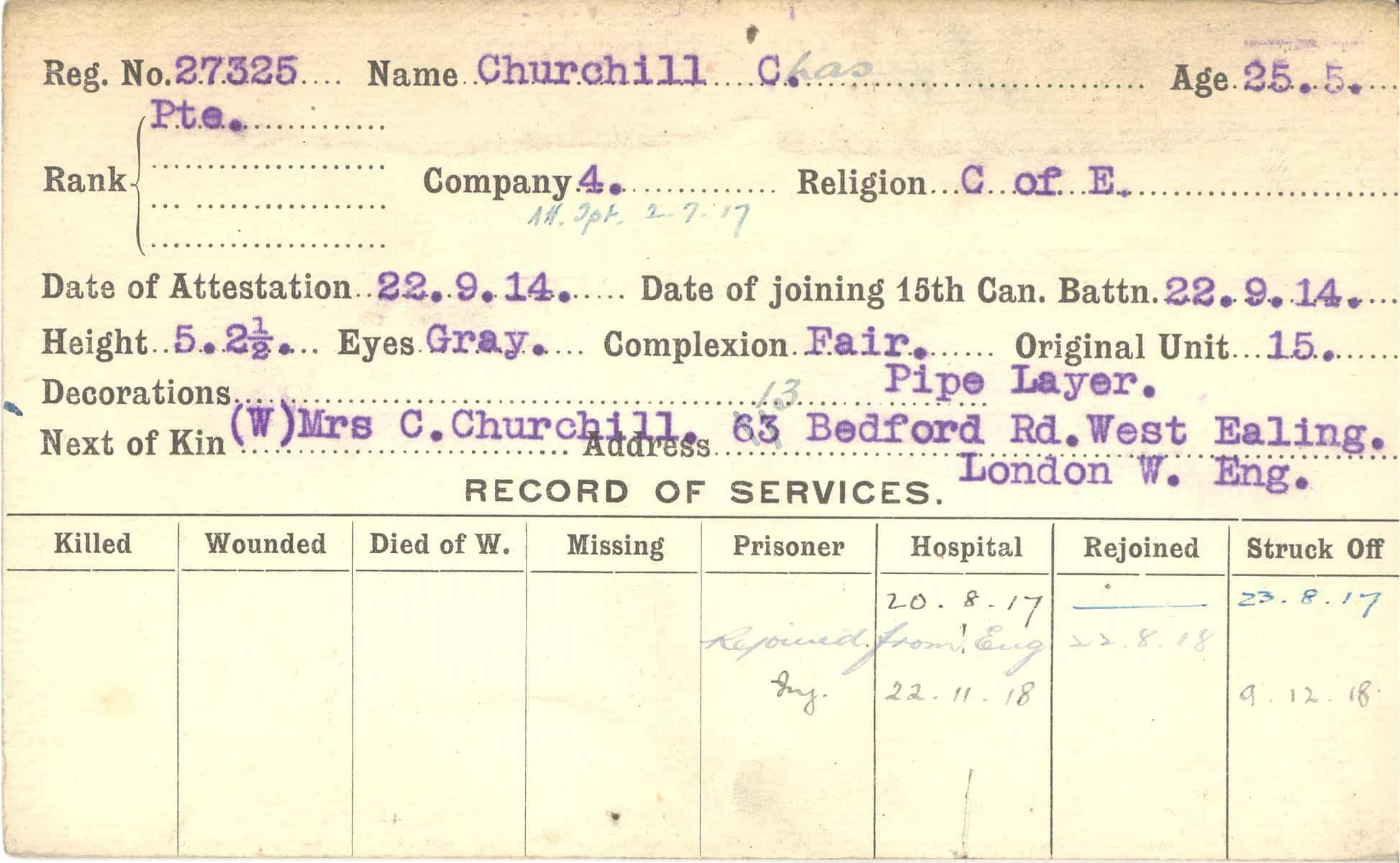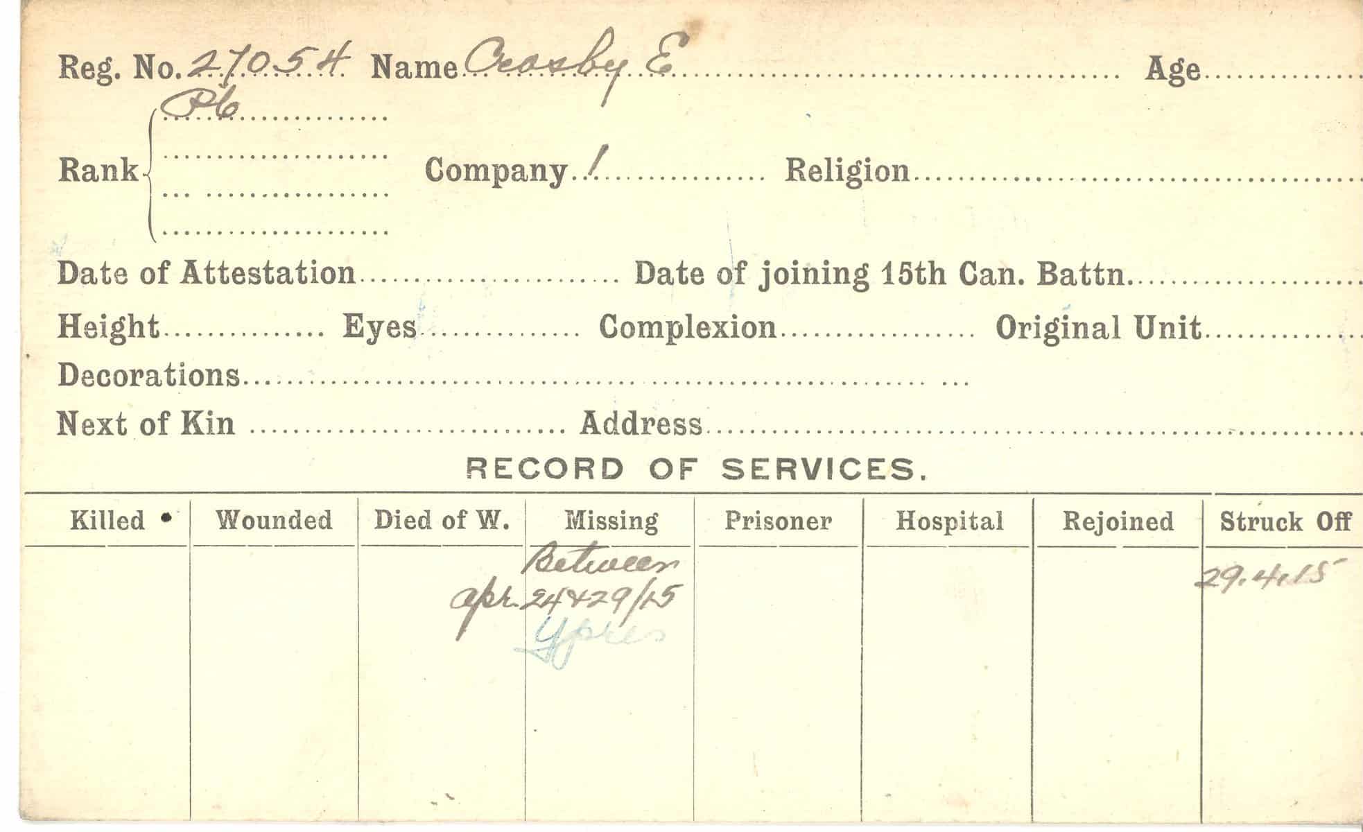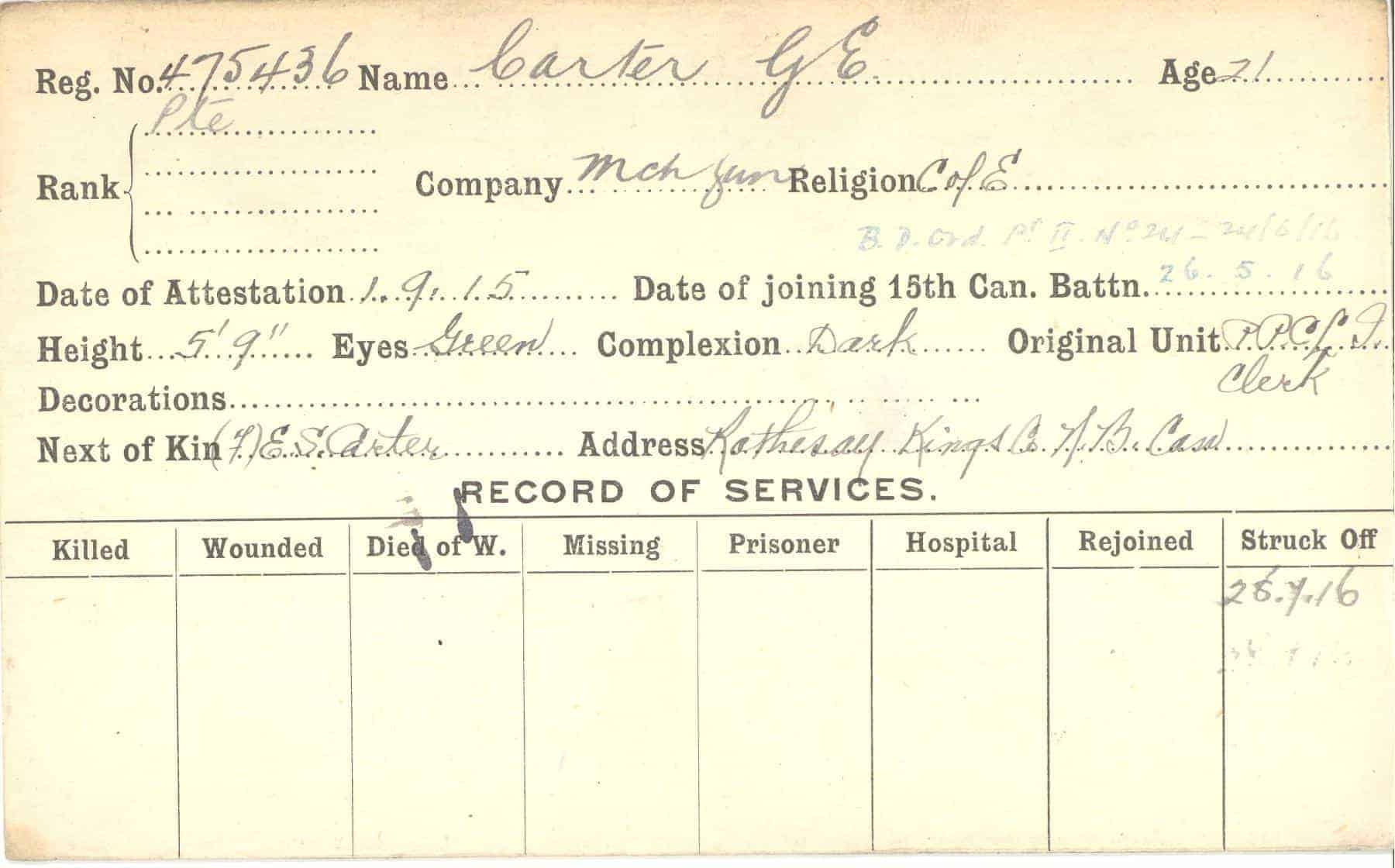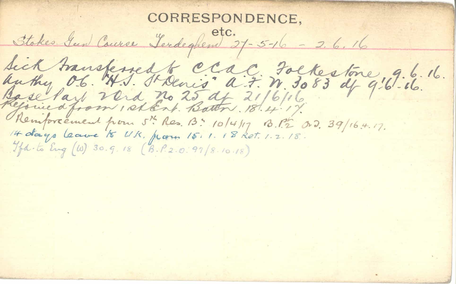 Record of Service Cards – C