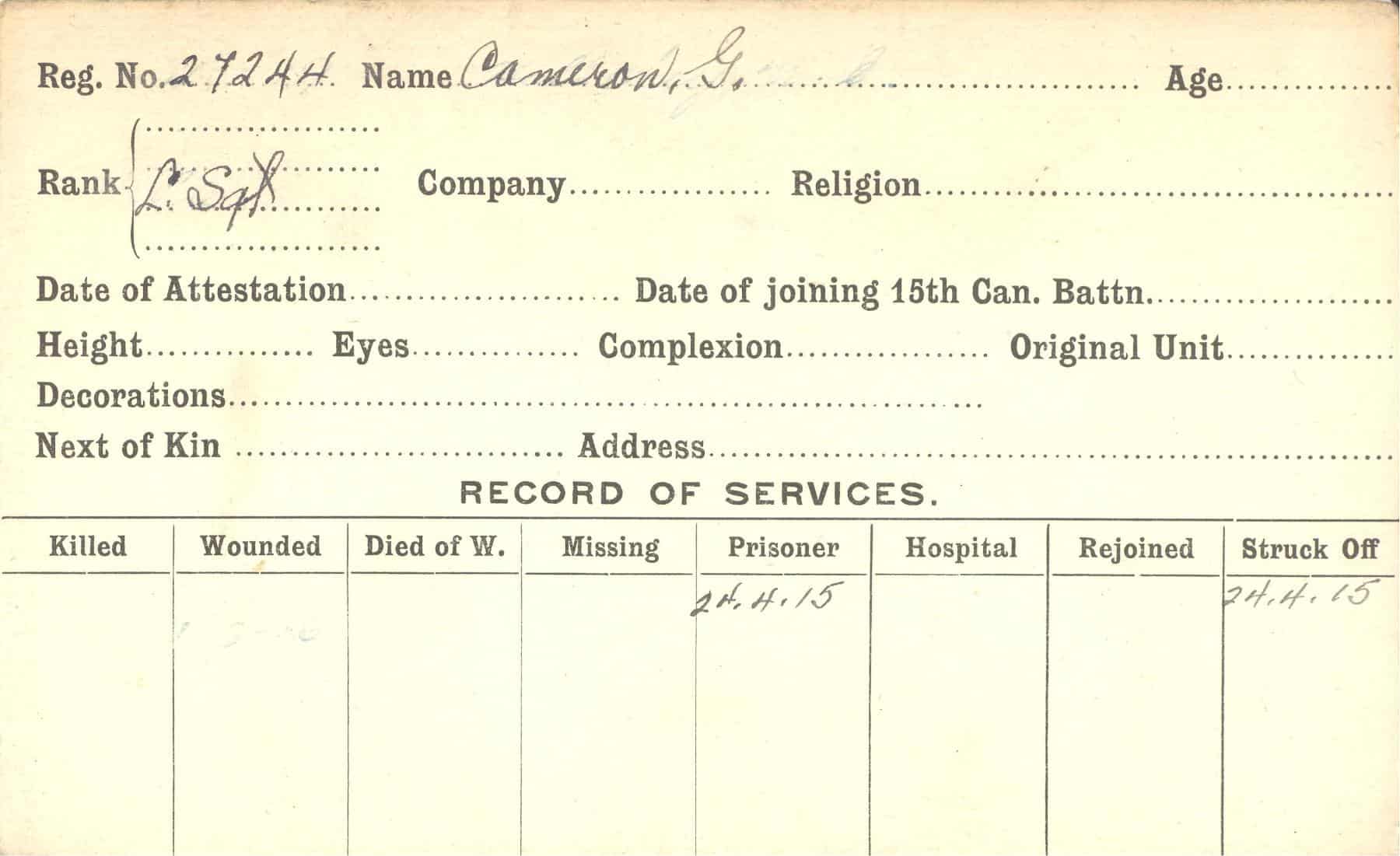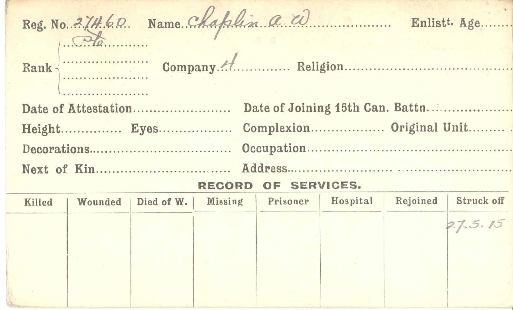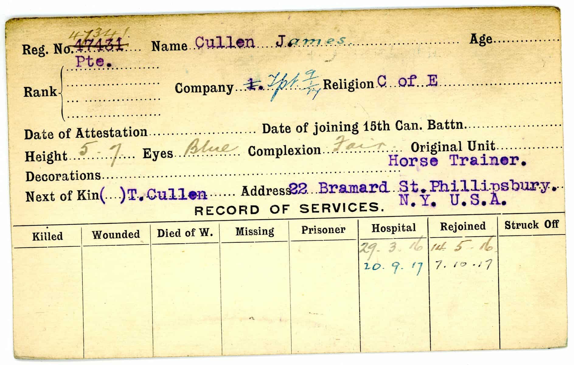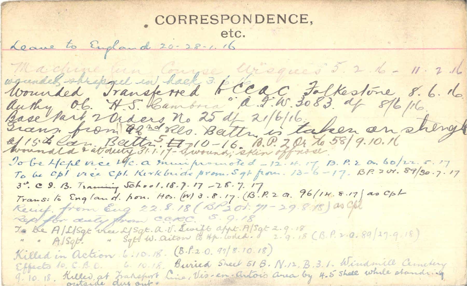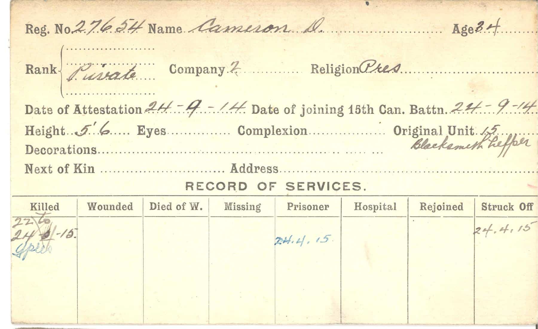 Record of Service Cards – C