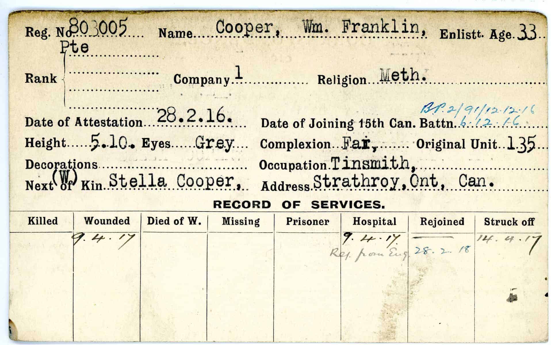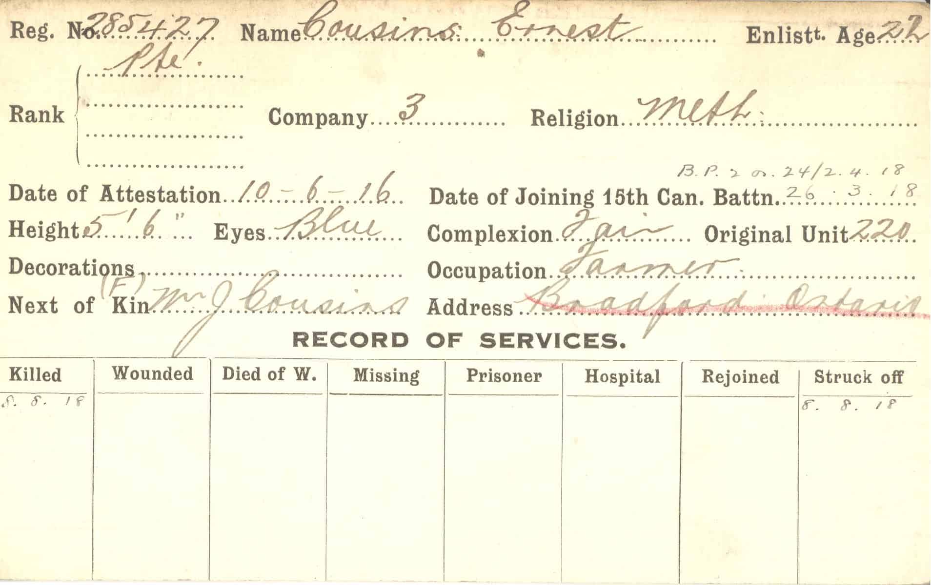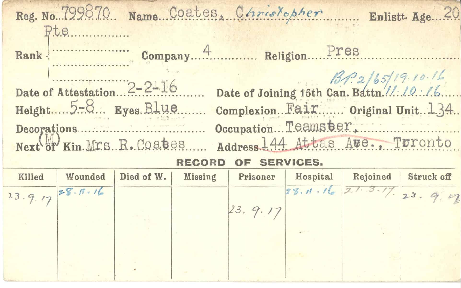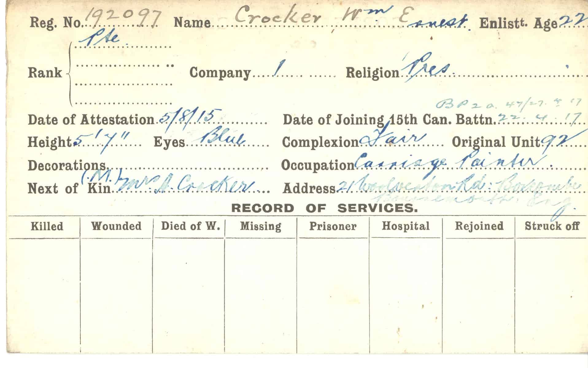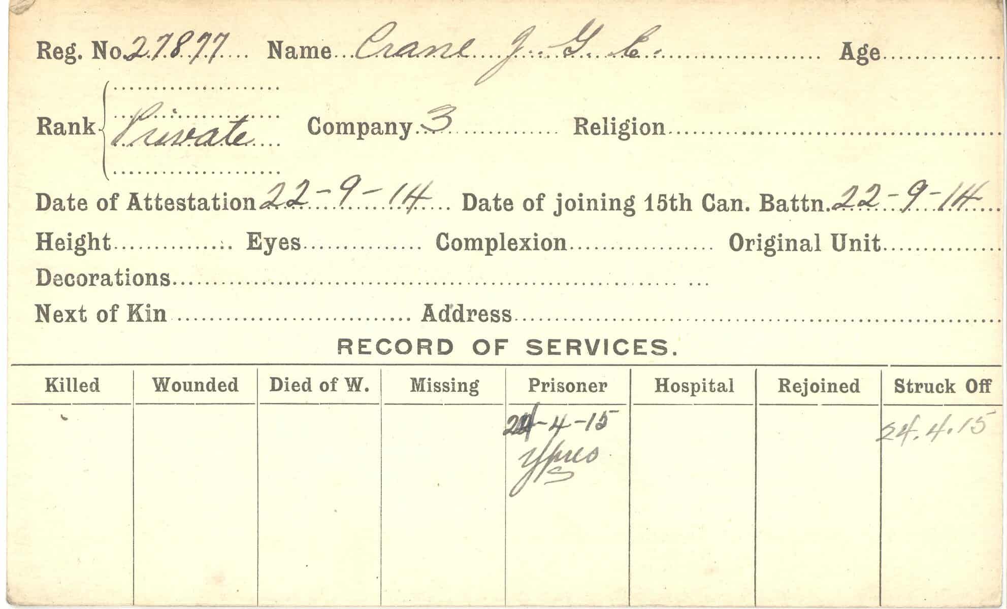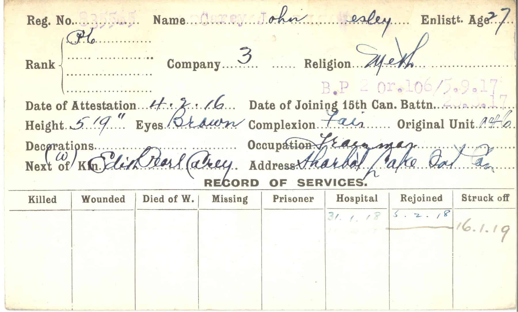 Record of Service Cards – C