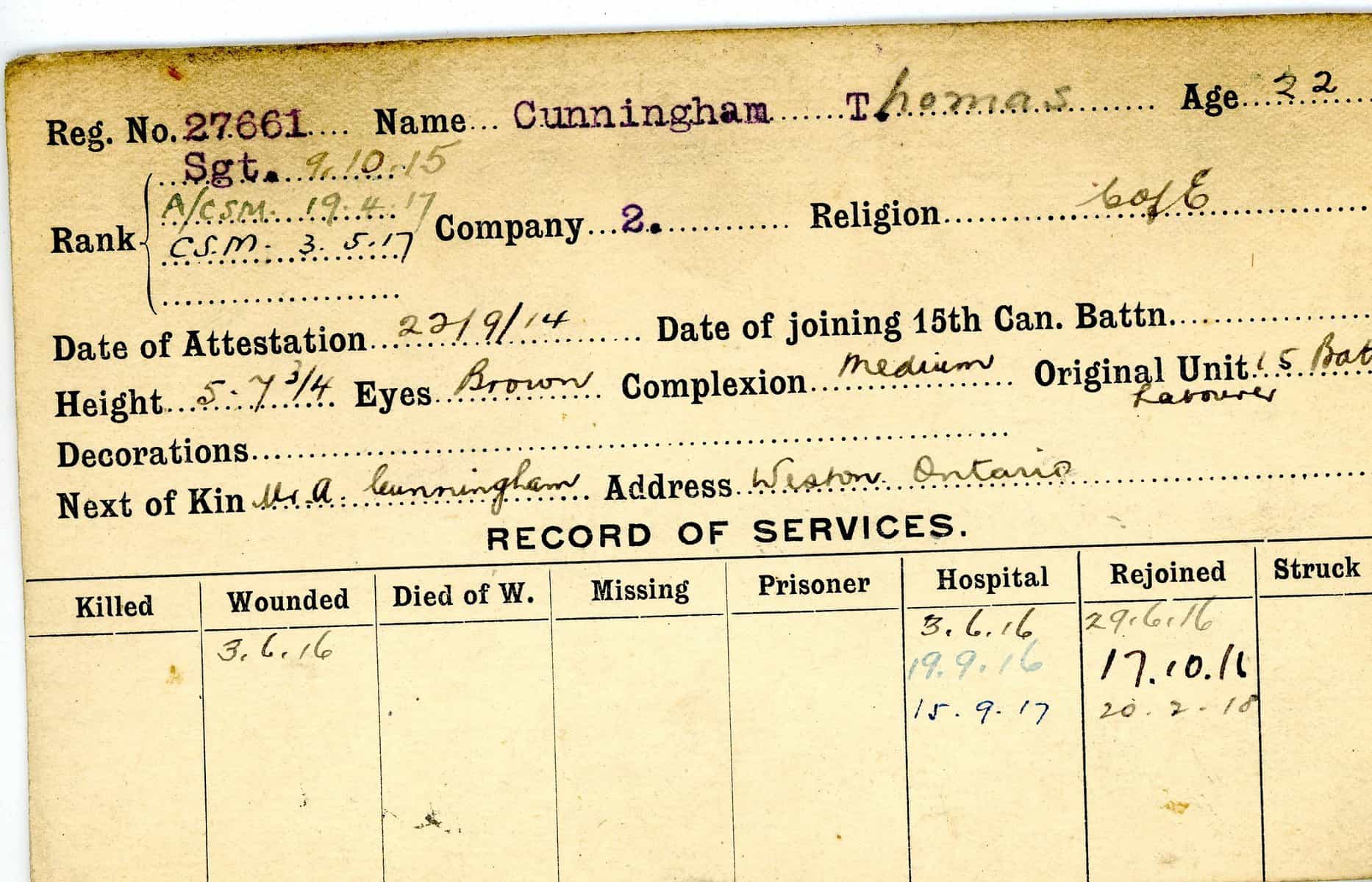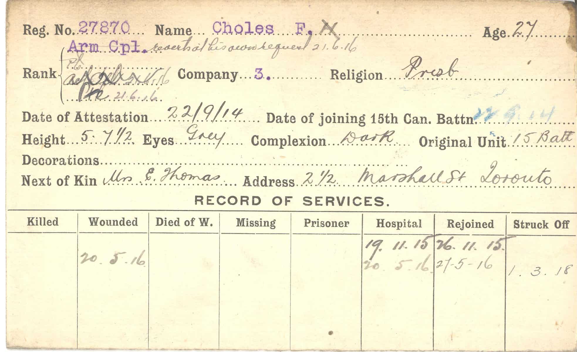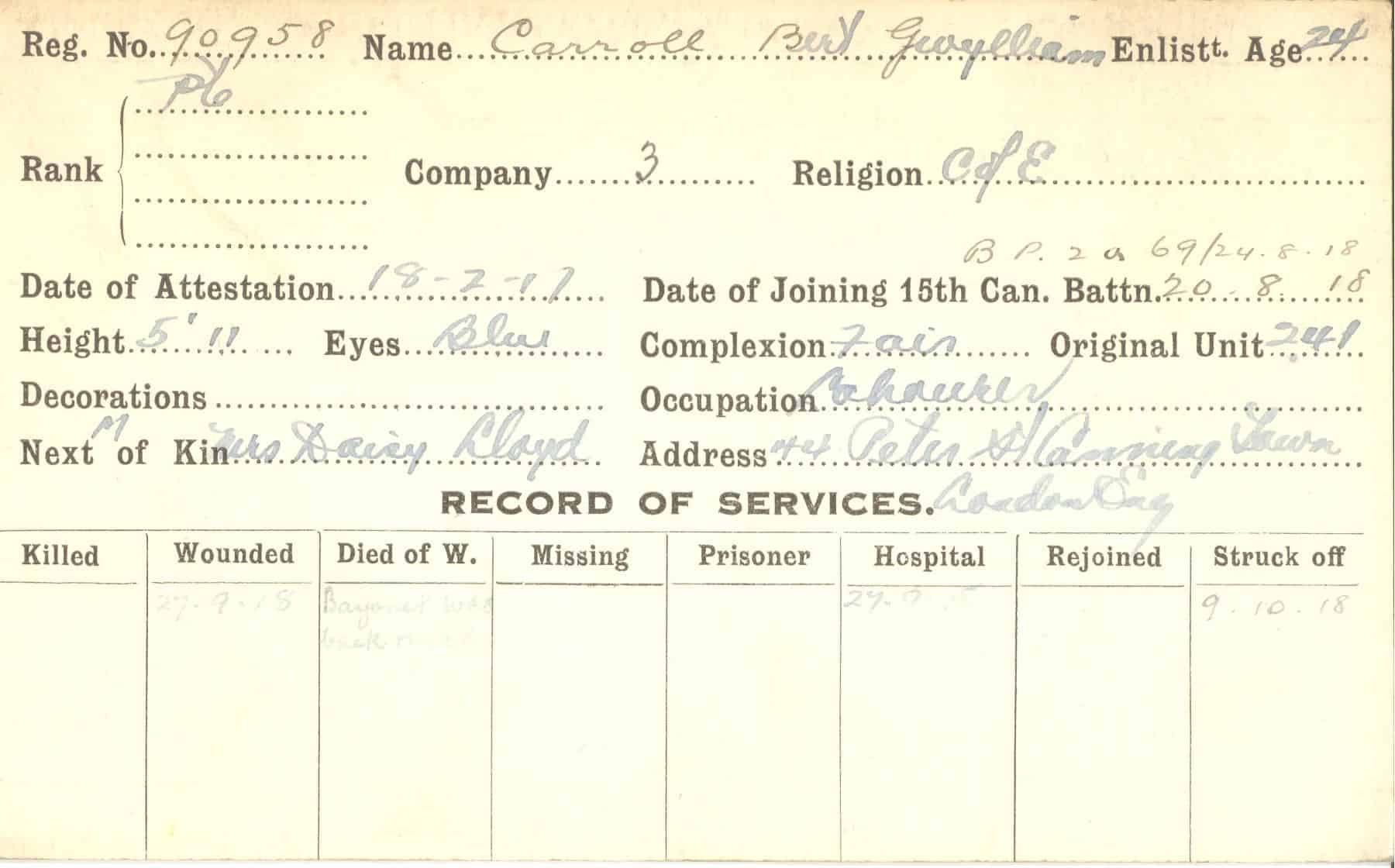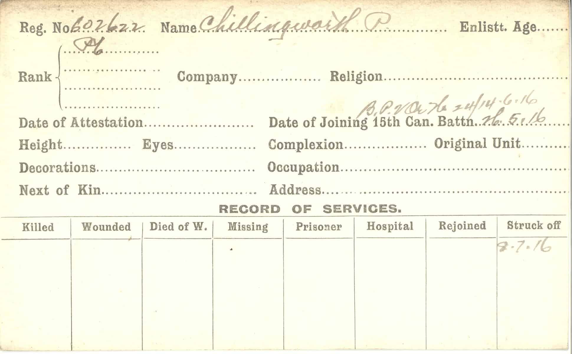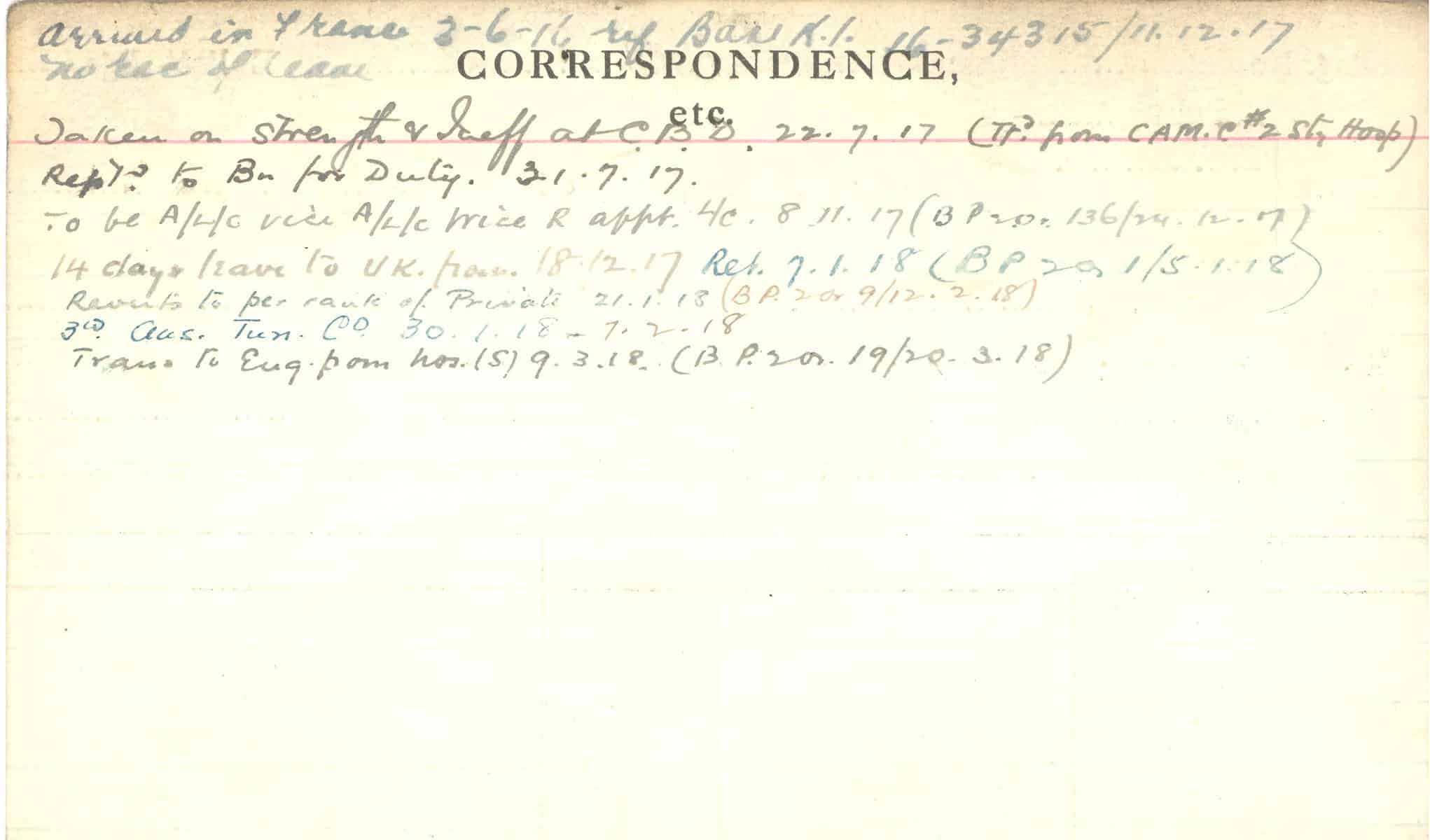 Record of Service Cards – C