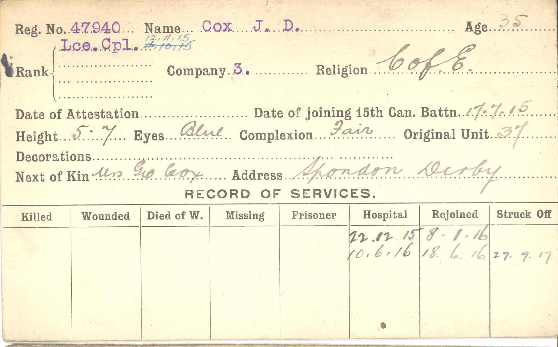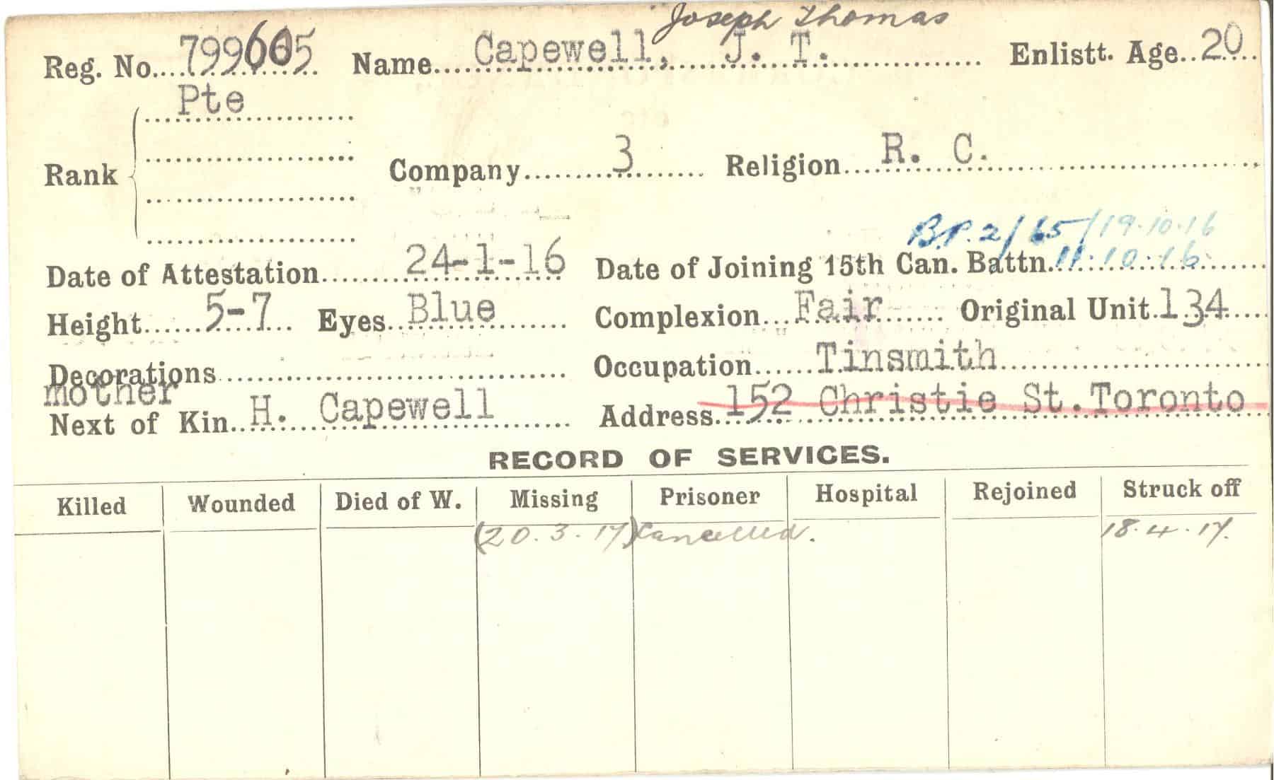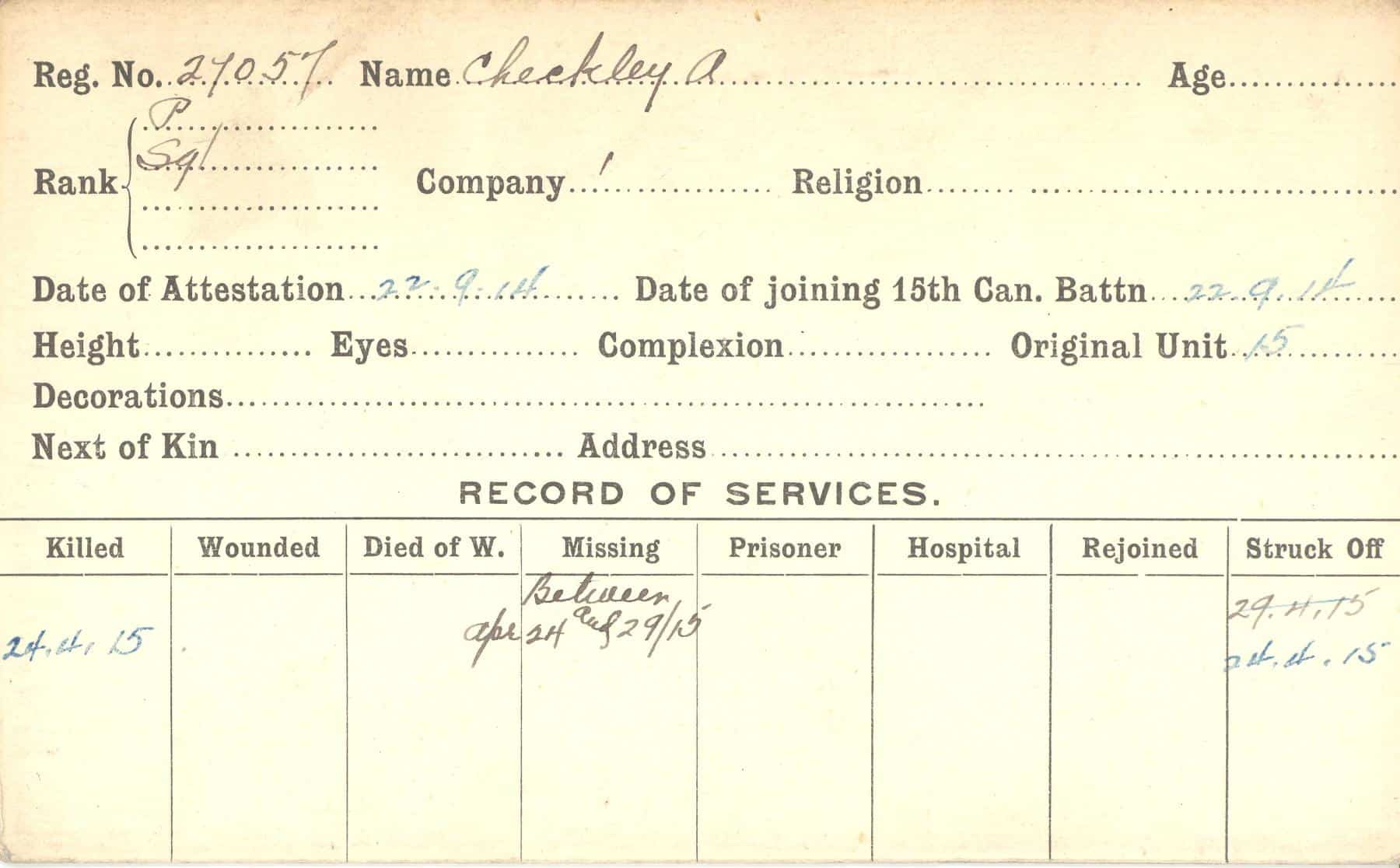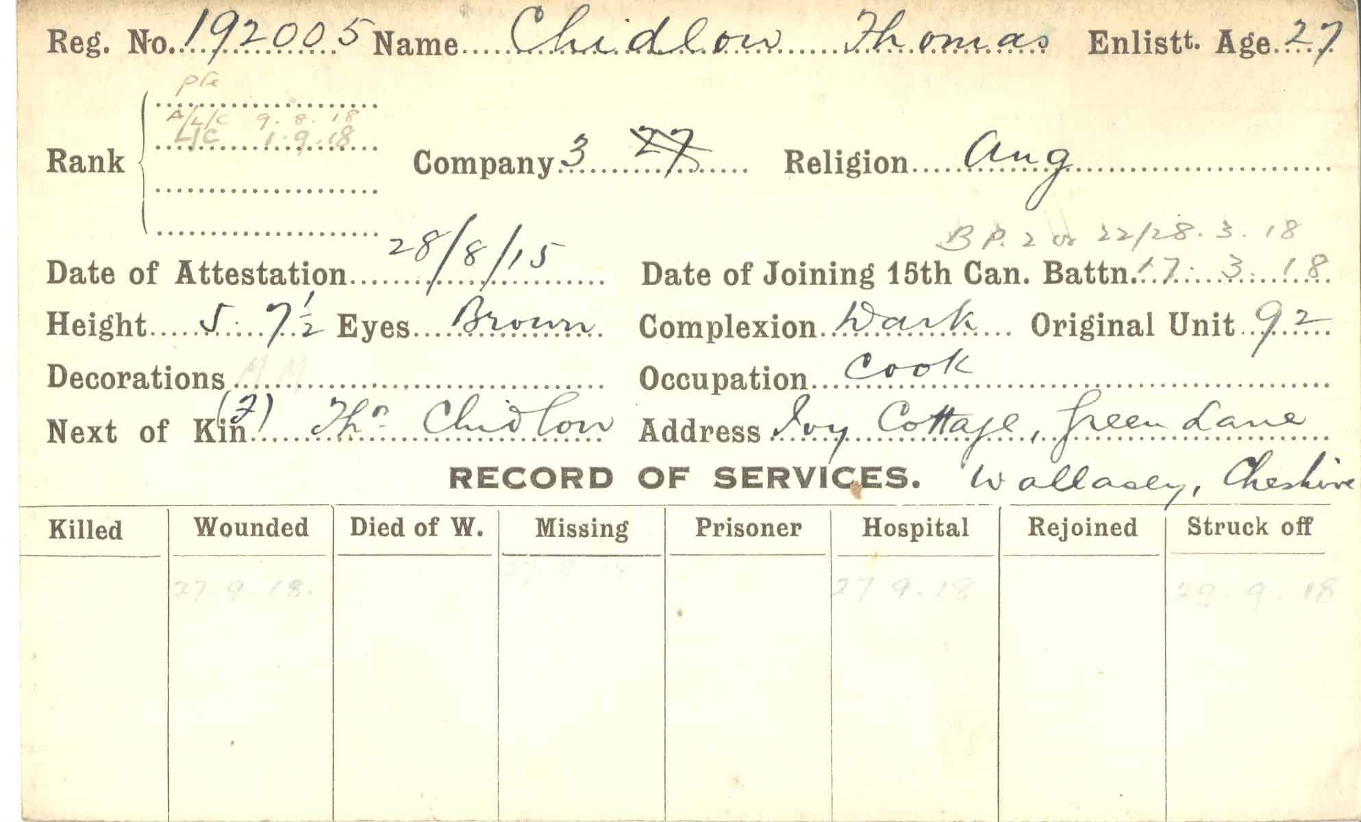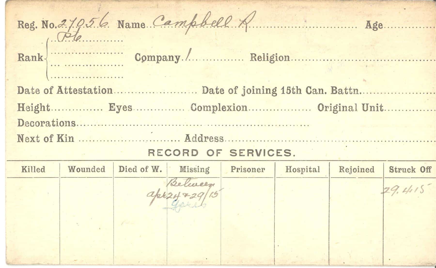 Record of Service Cards – C
