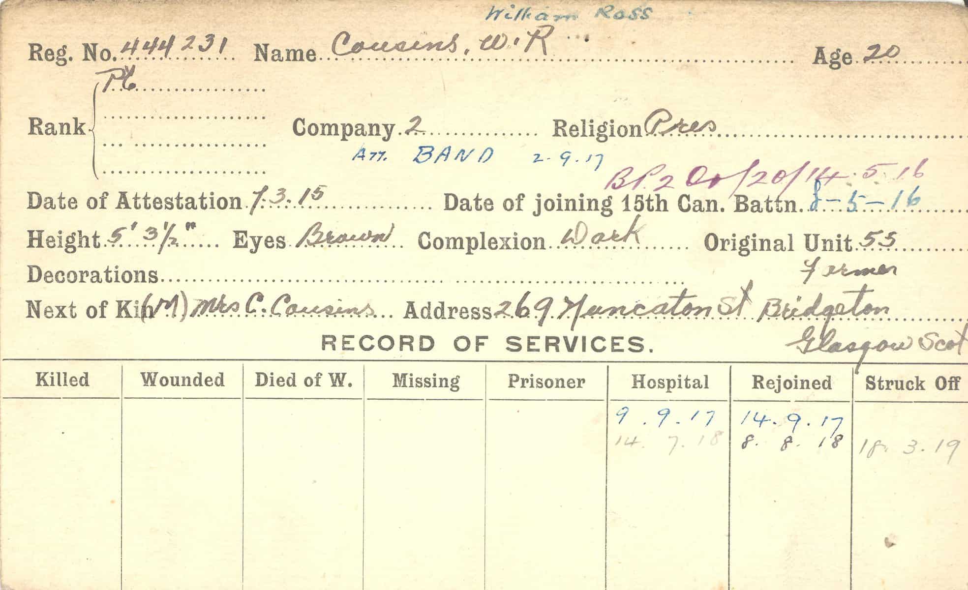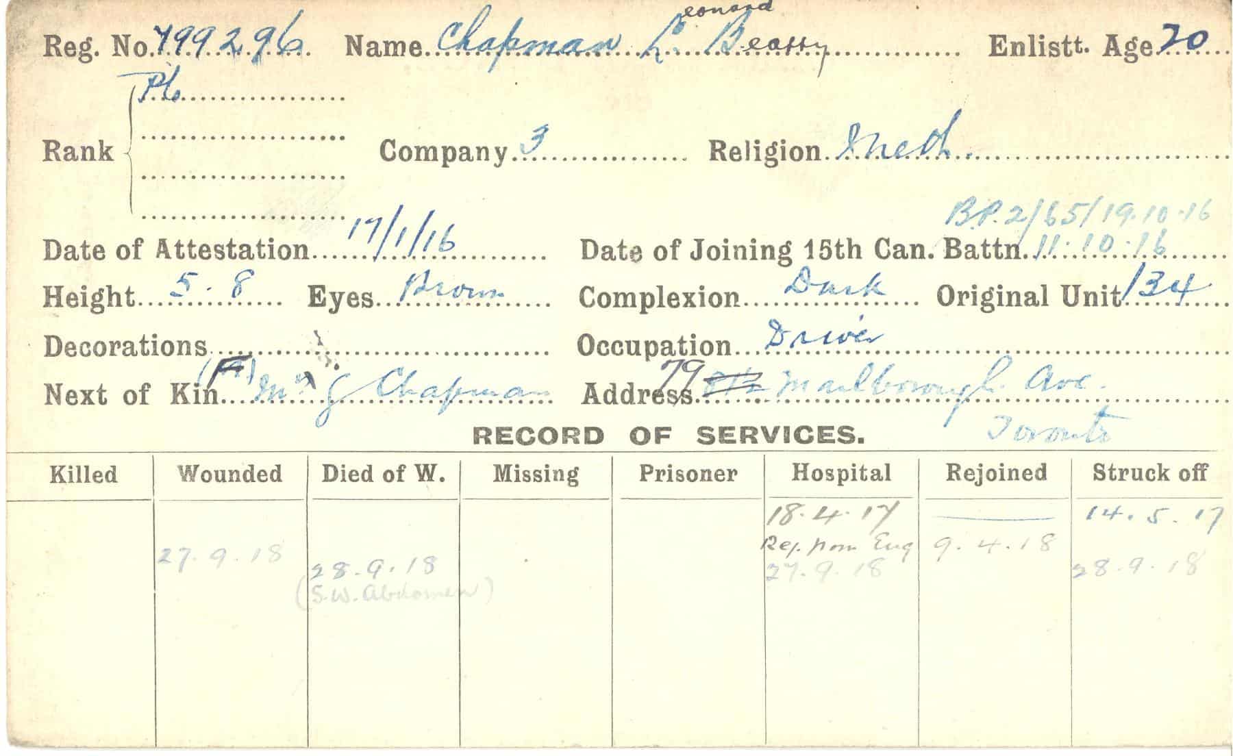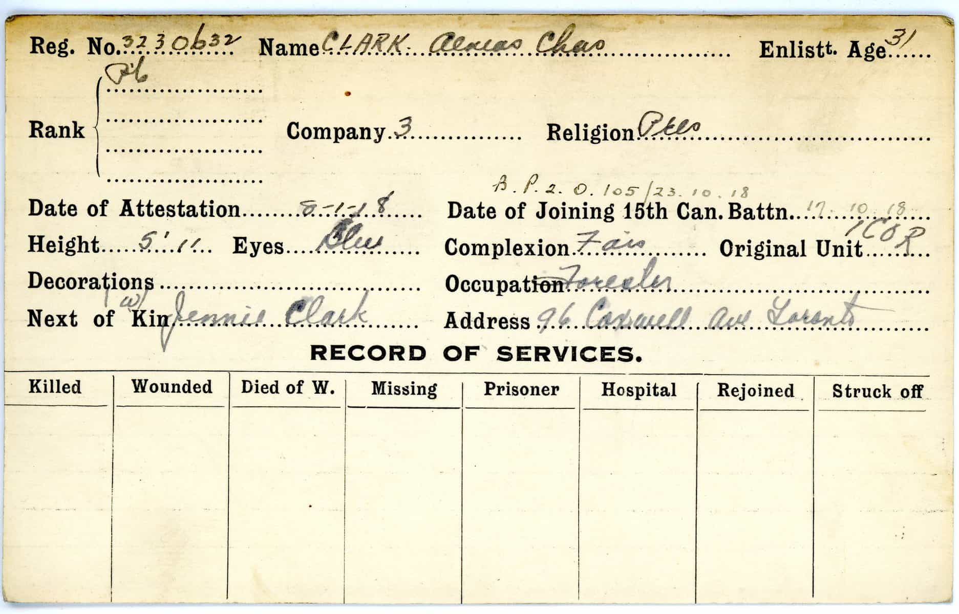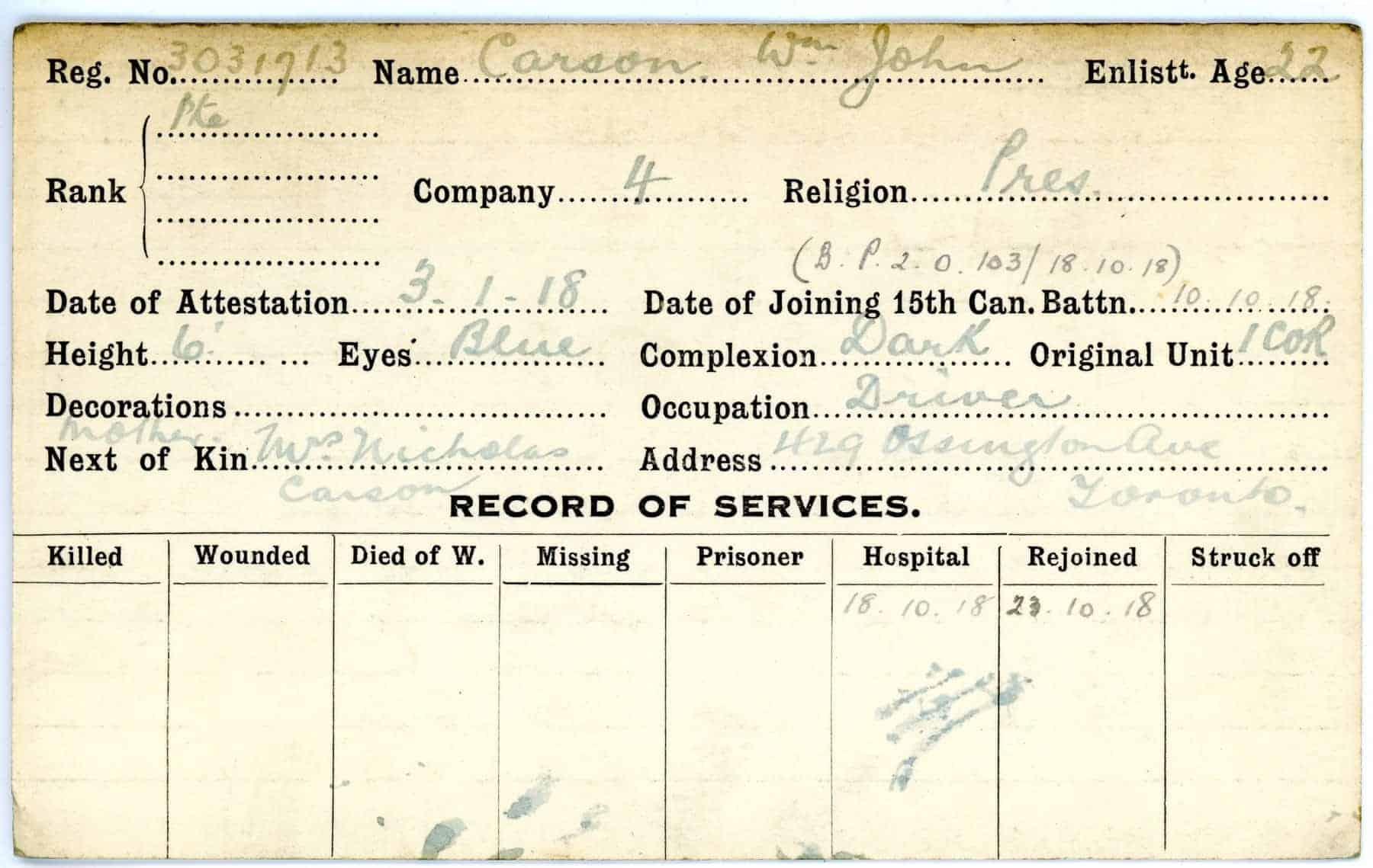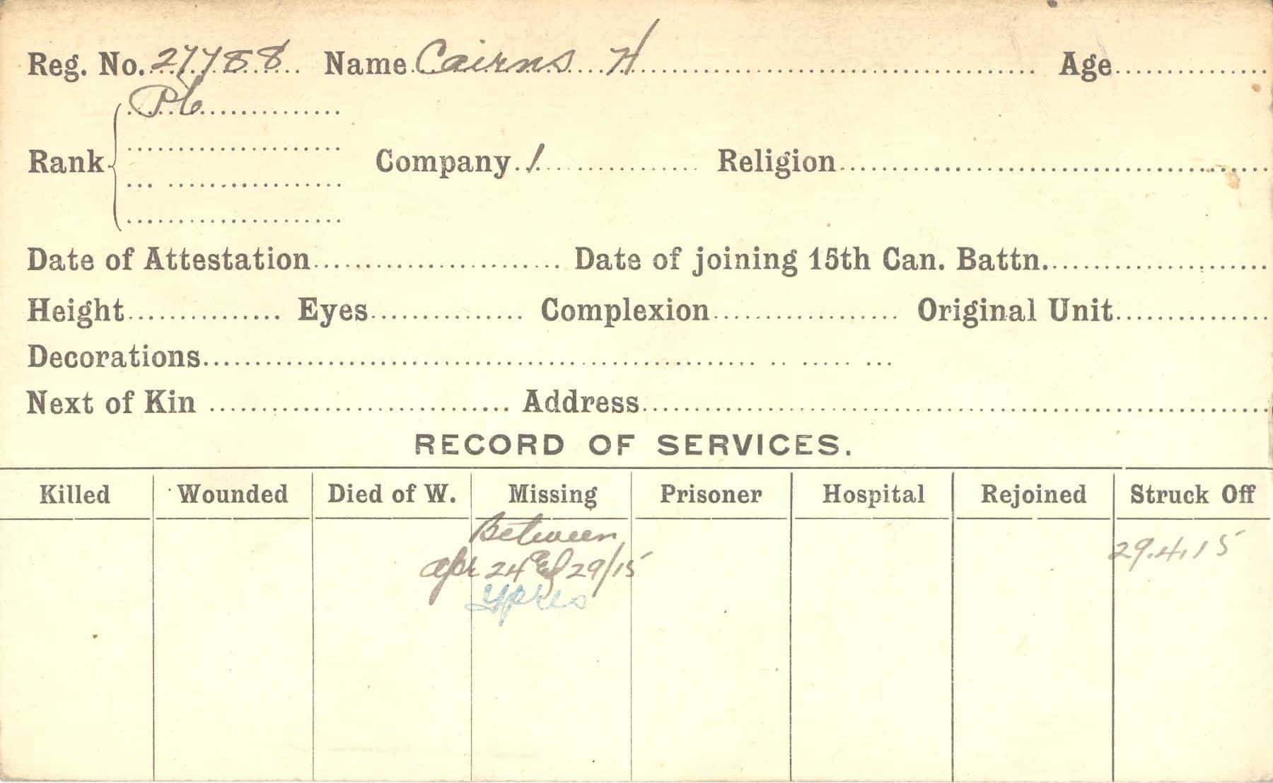 Record of Service Cards – C