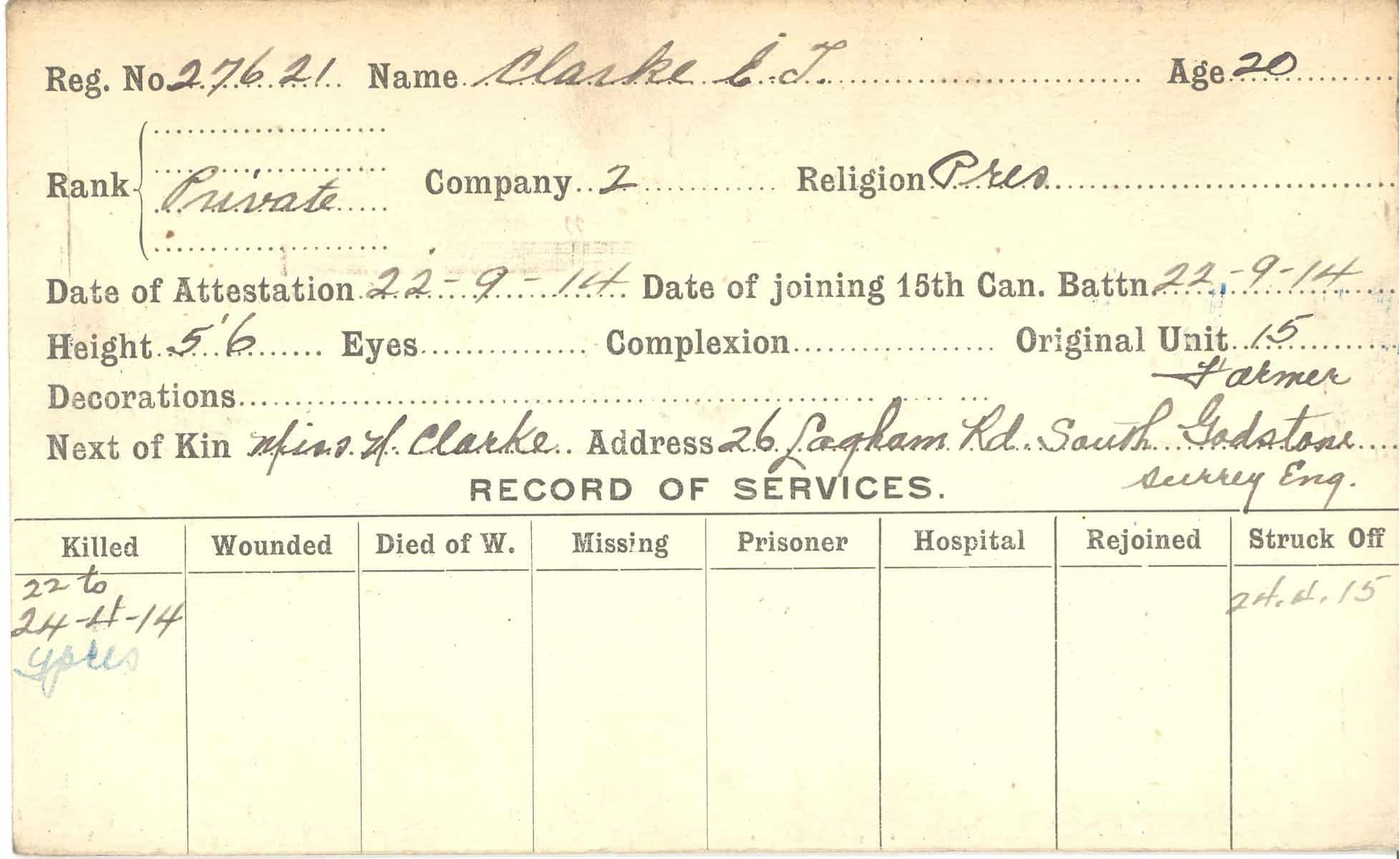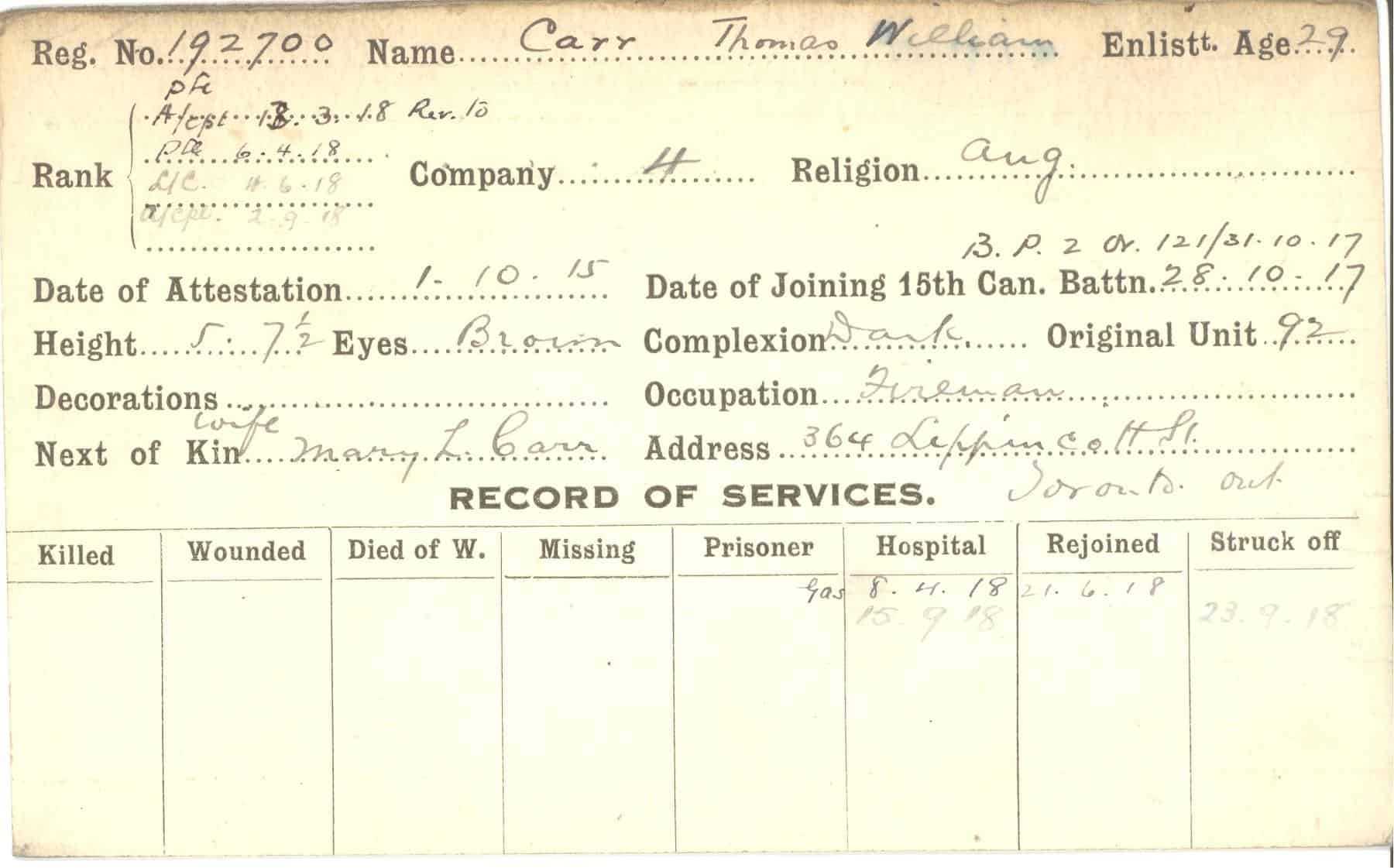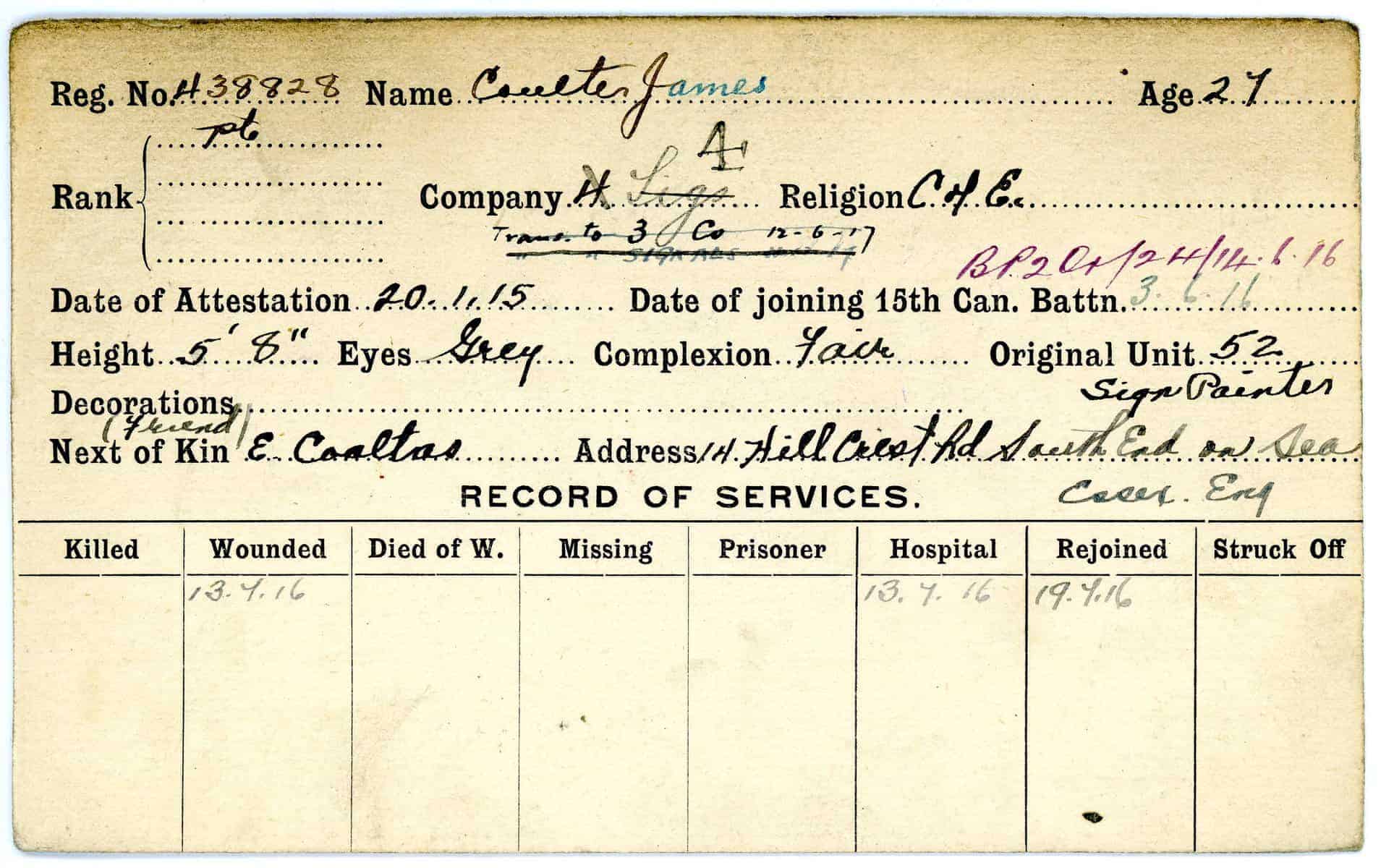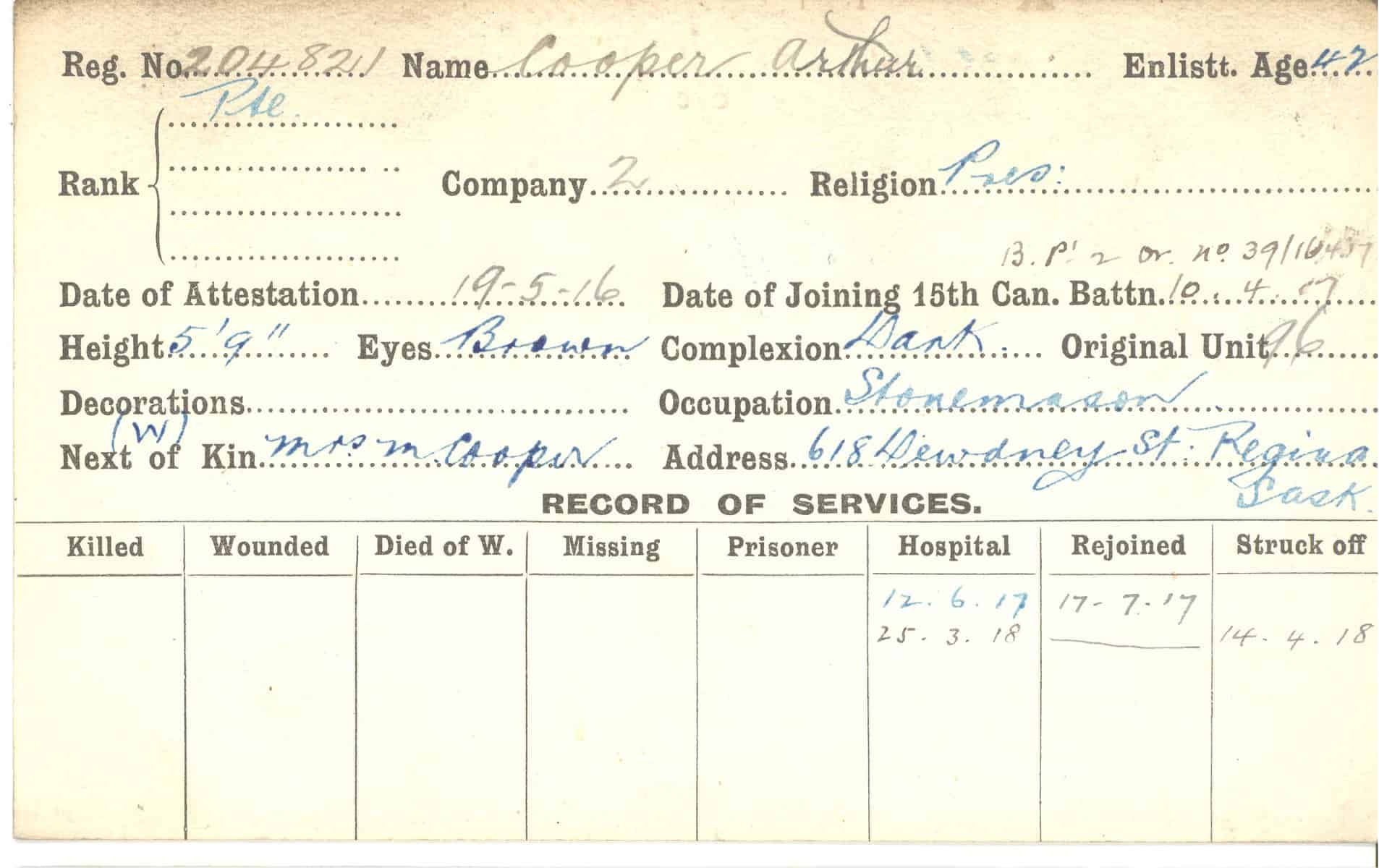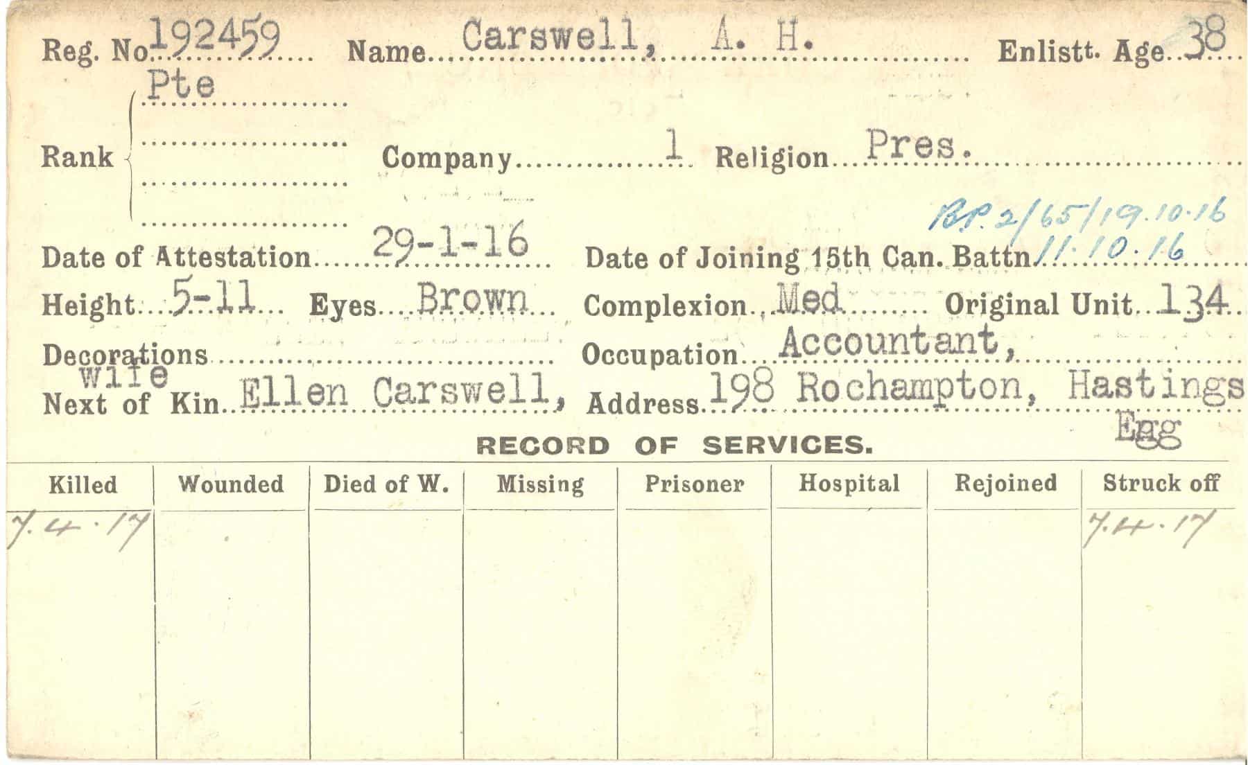 Record of Service Cards – C