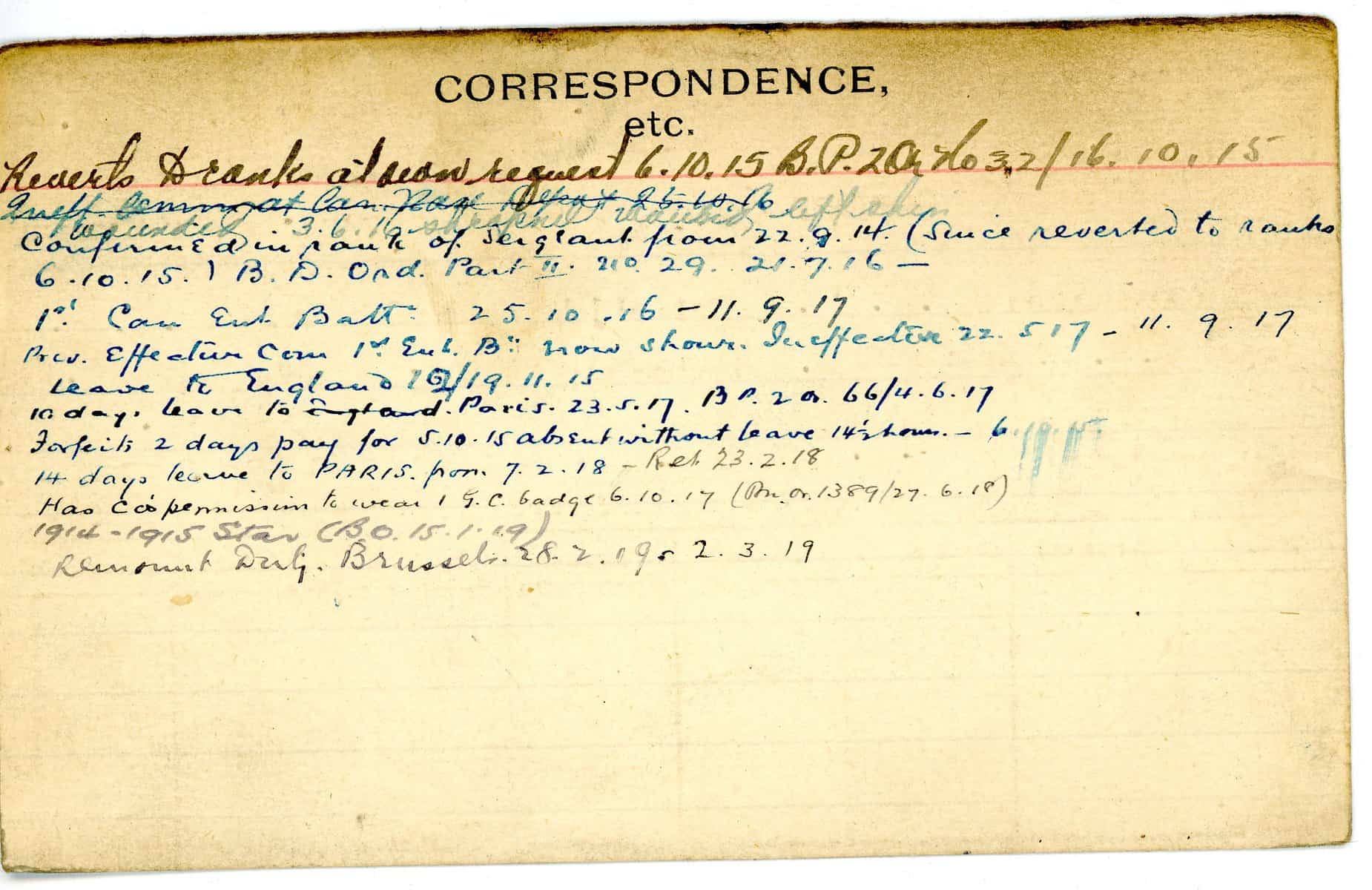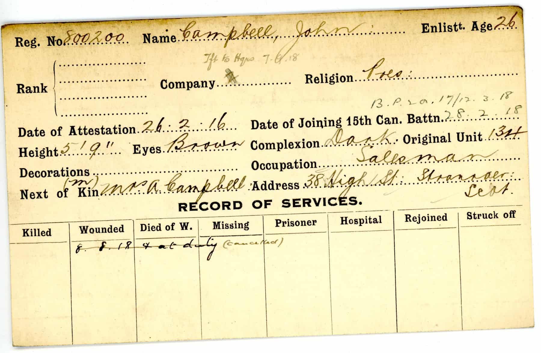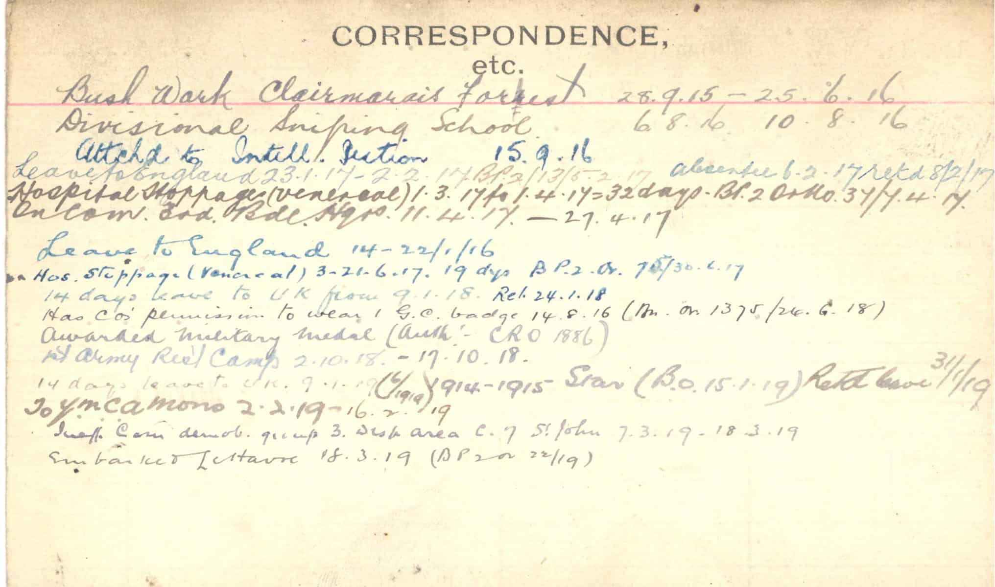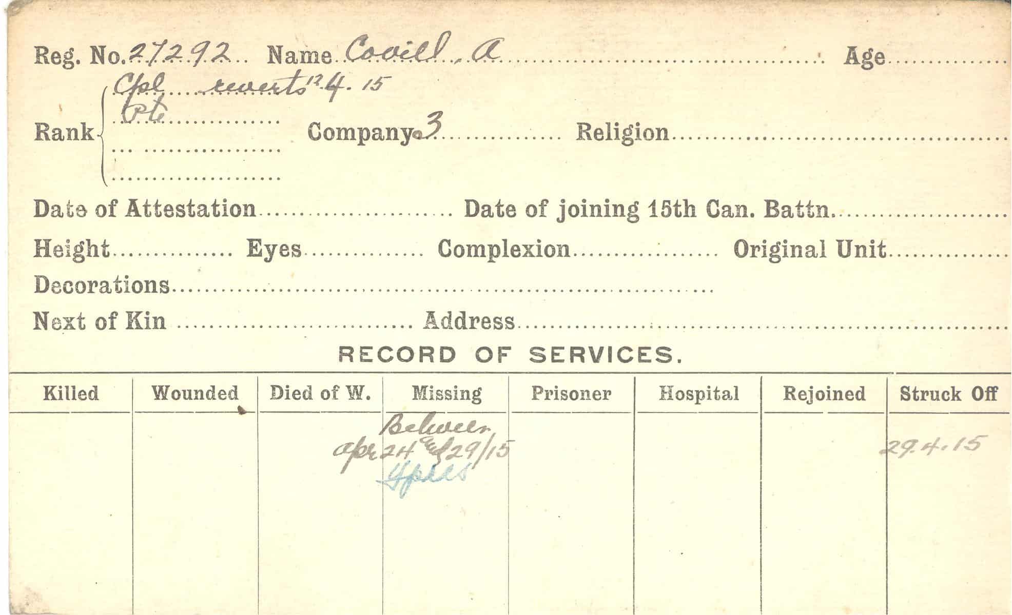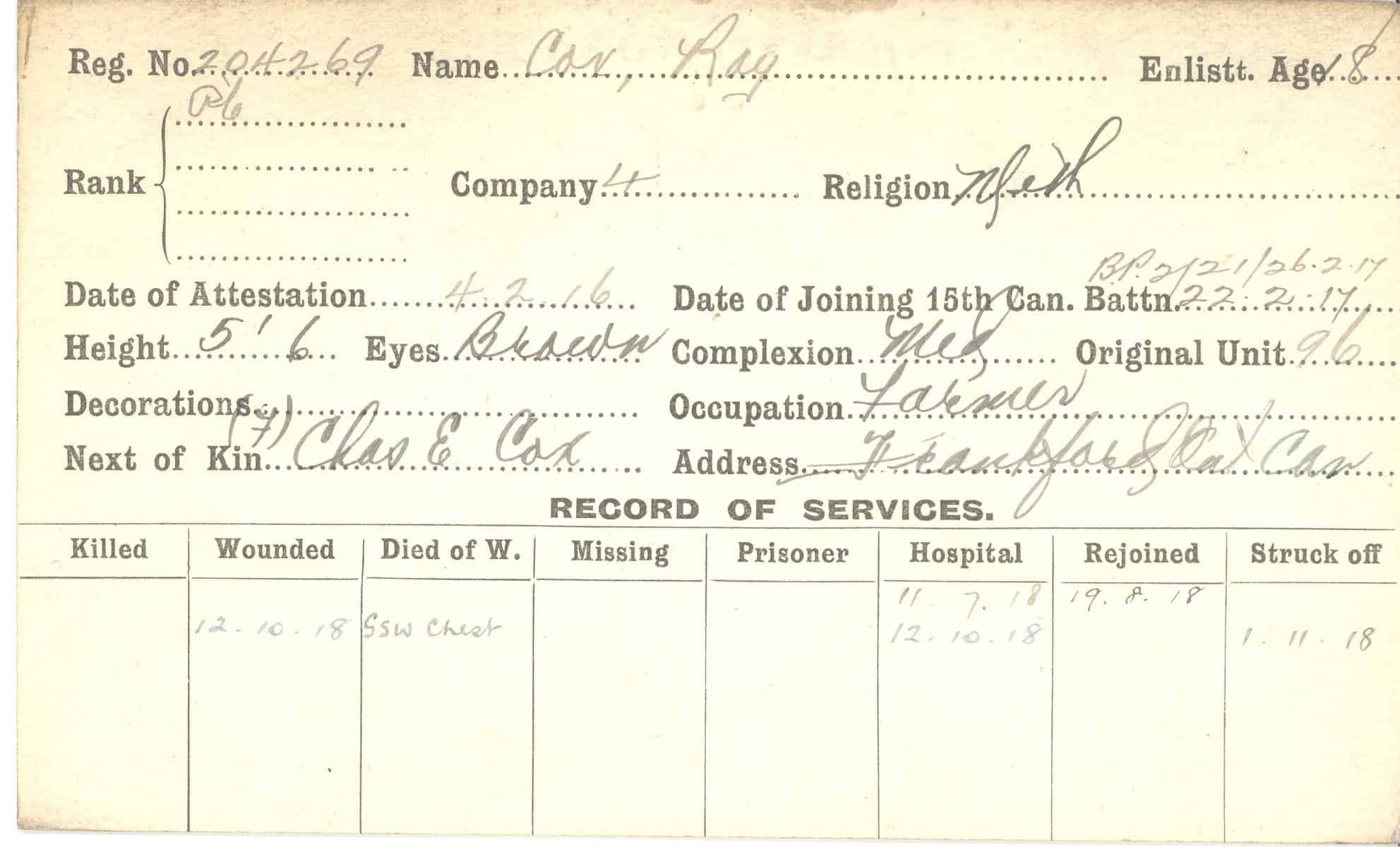 Record of Service Cards – C