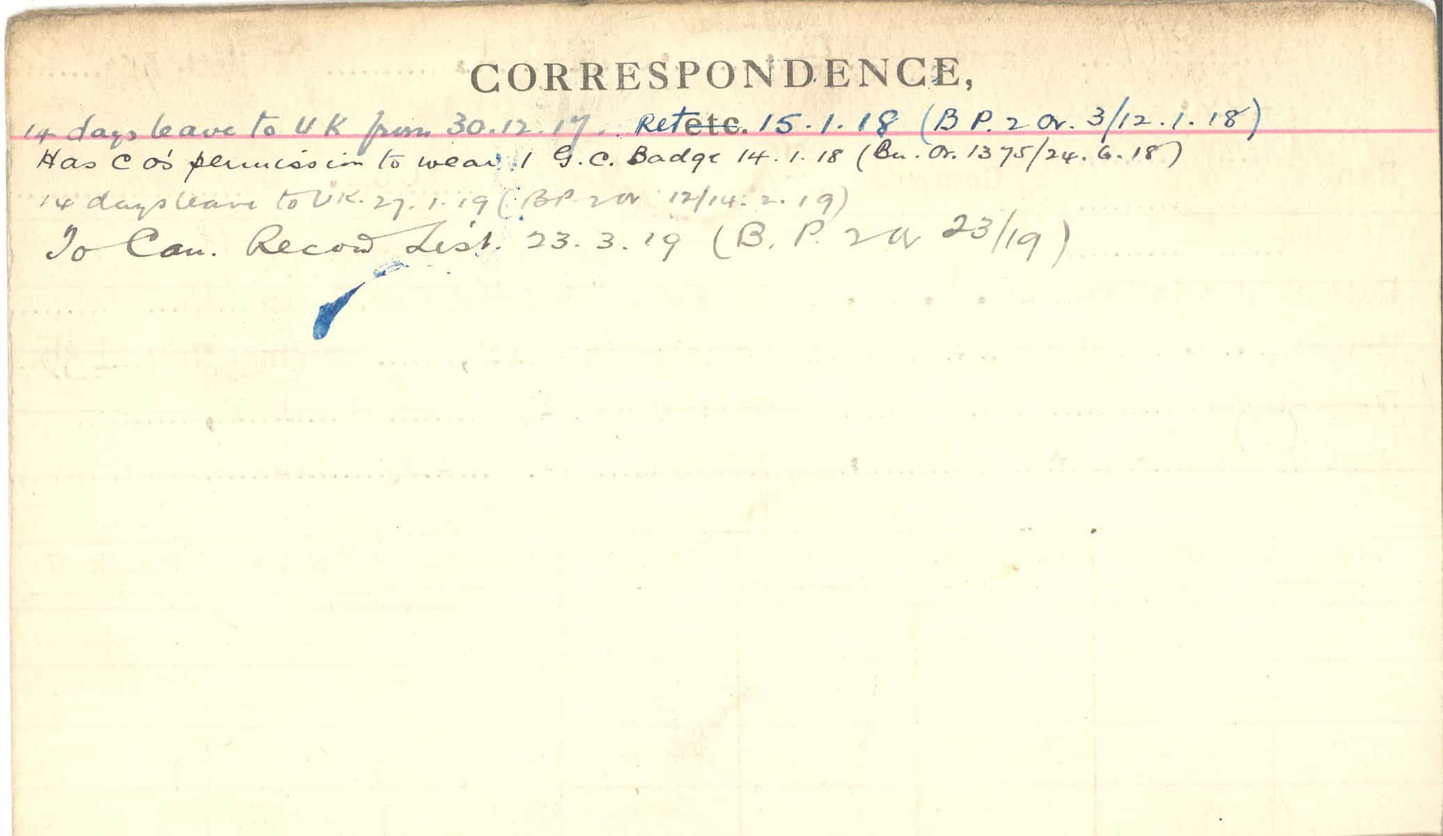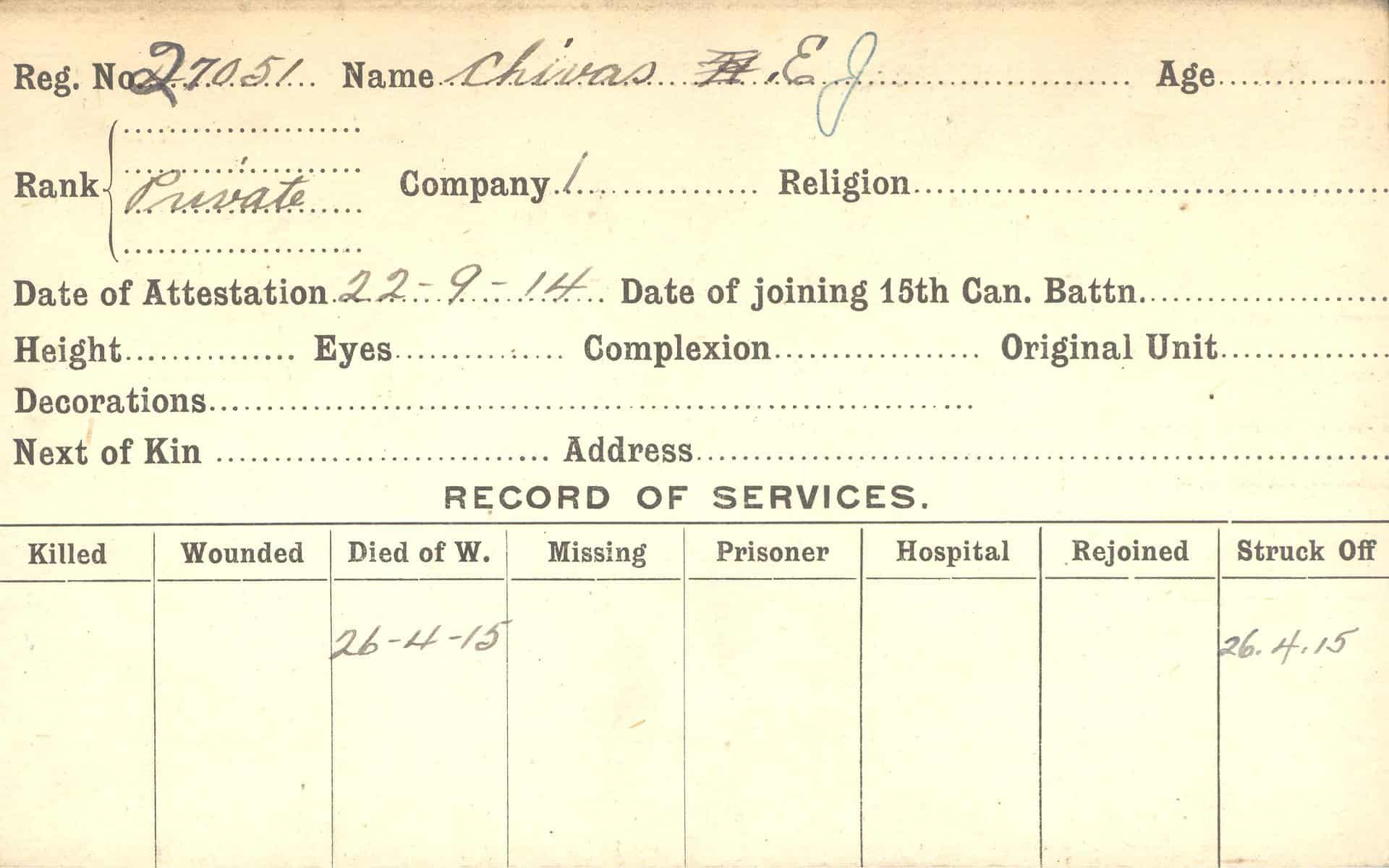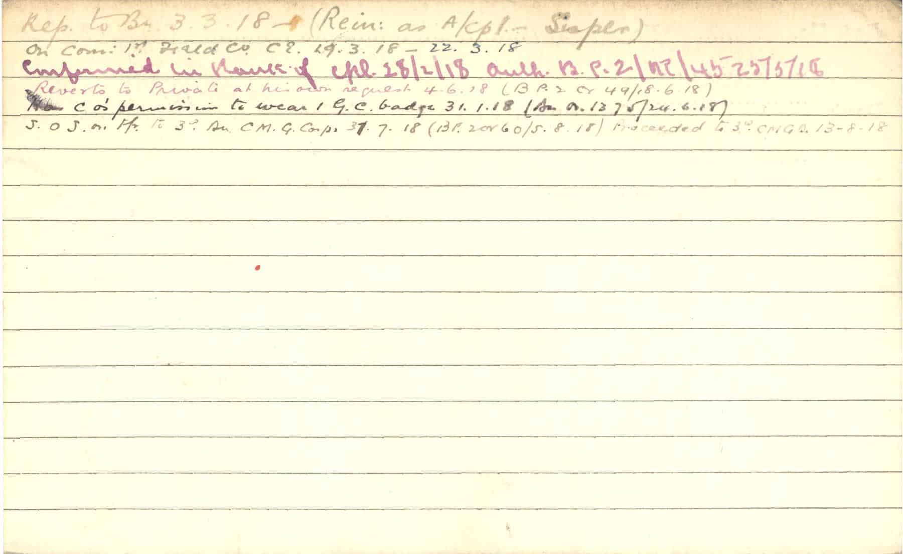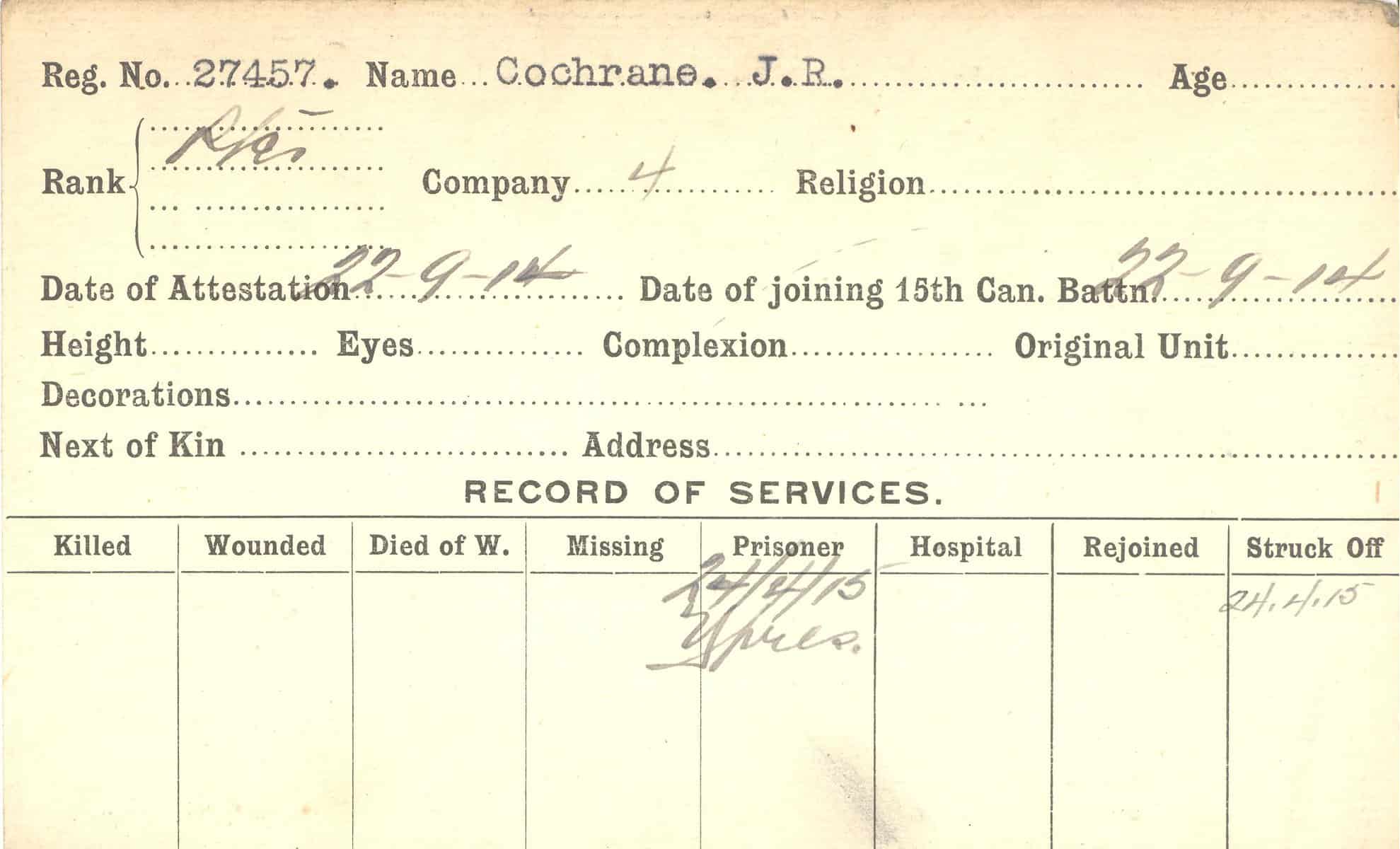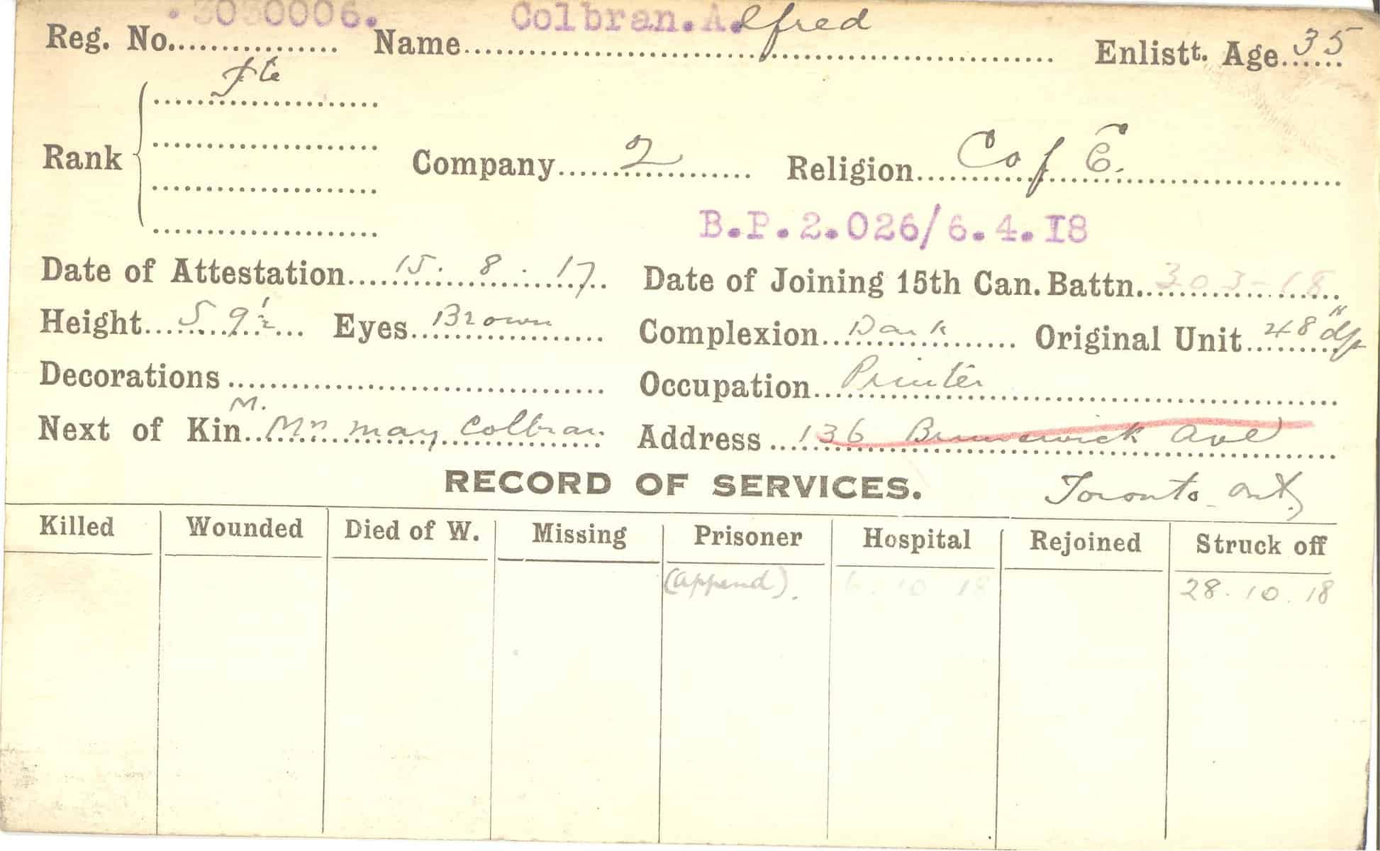 Record of Service Cards – C