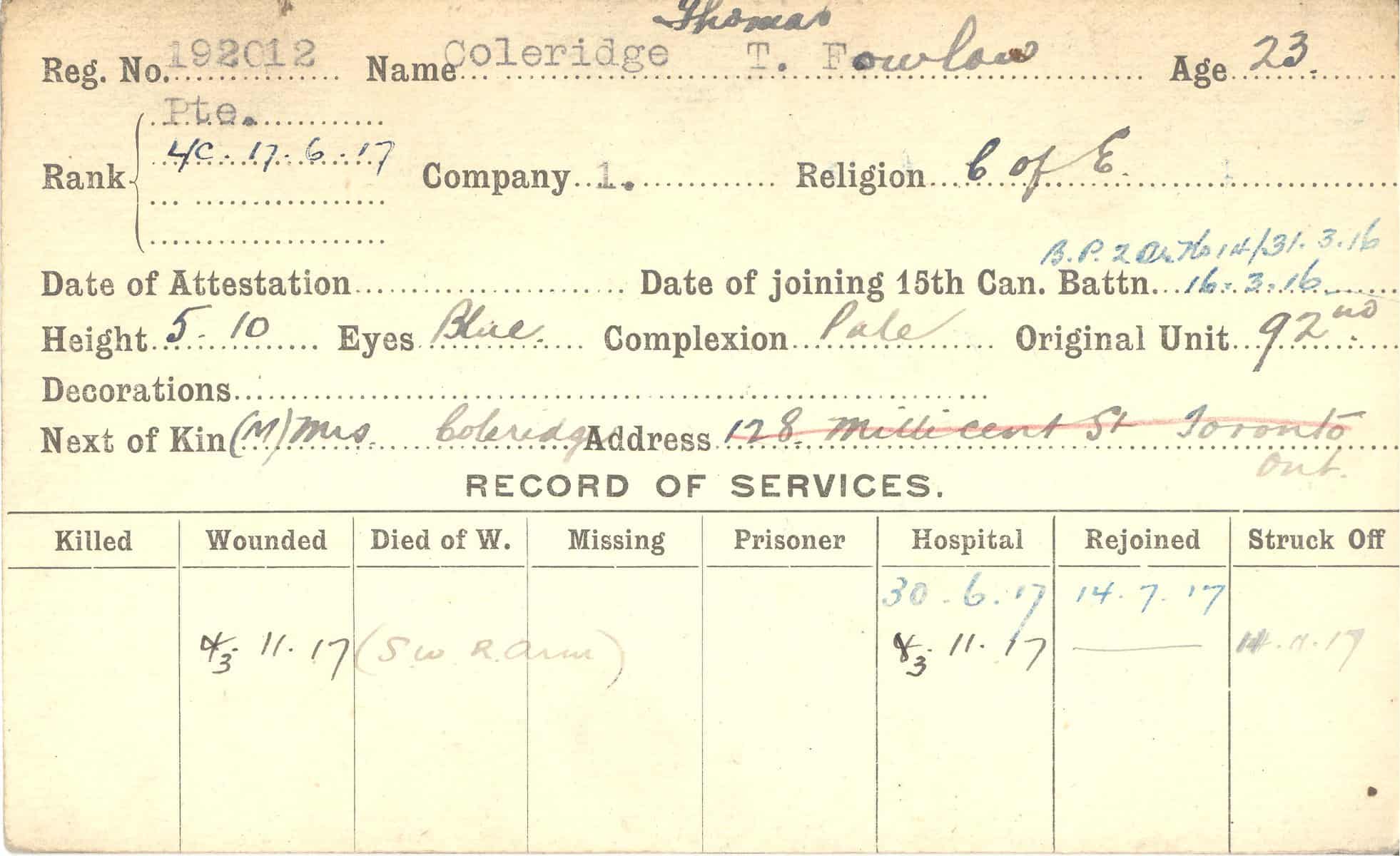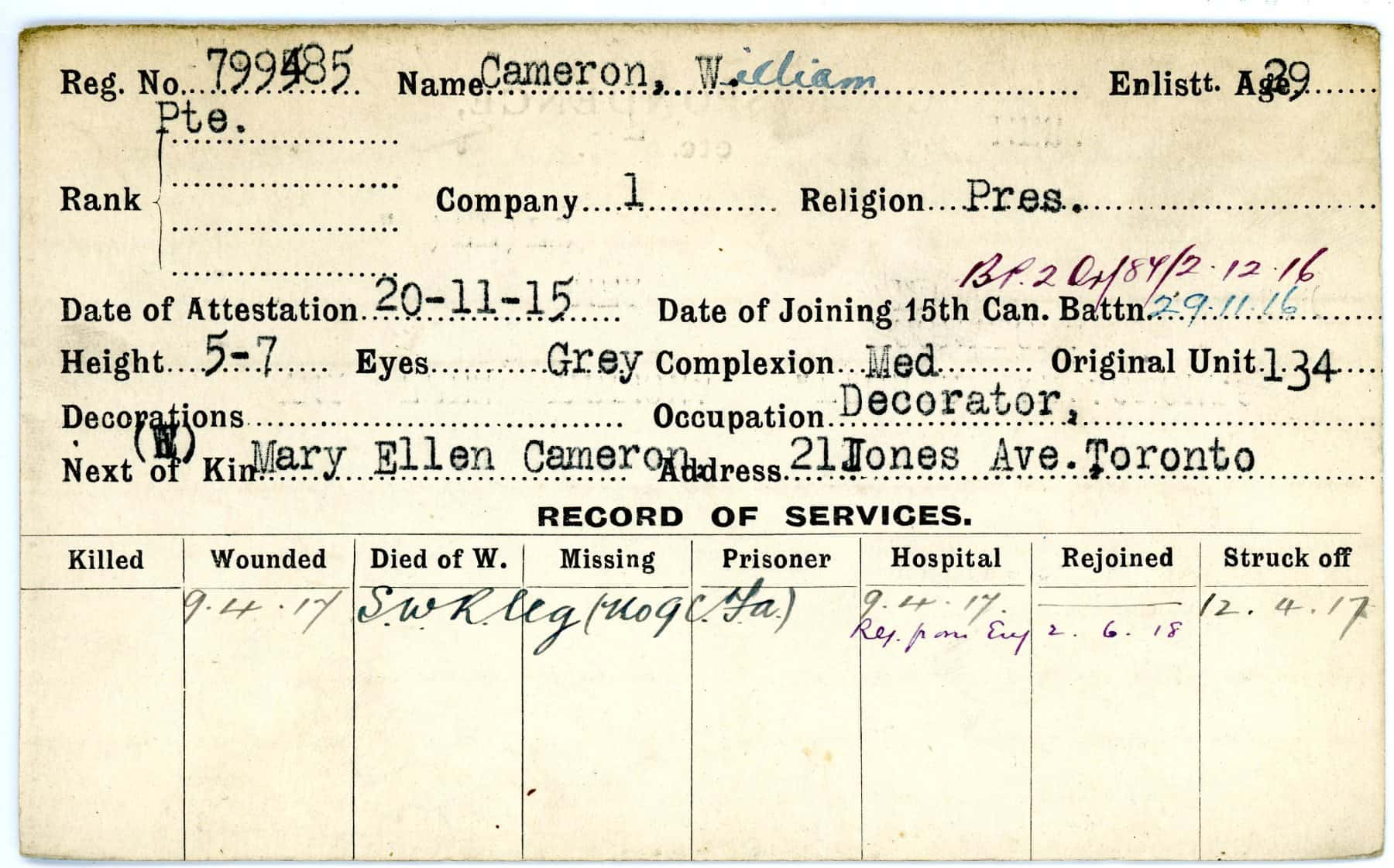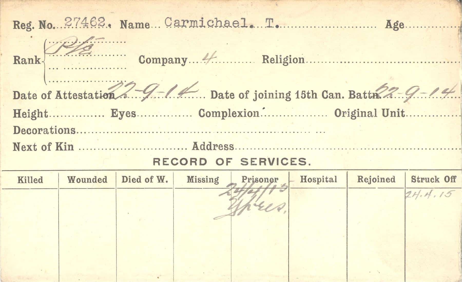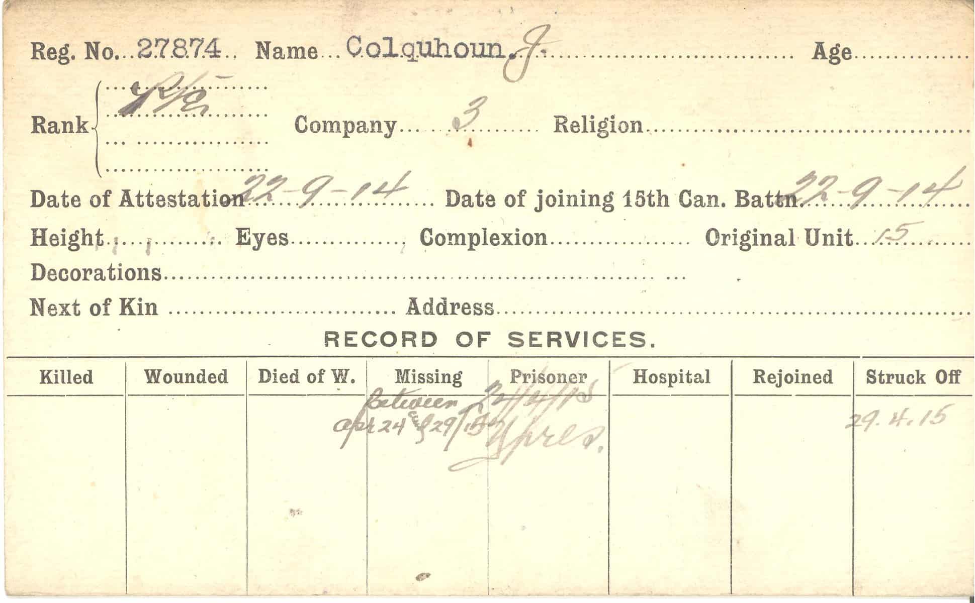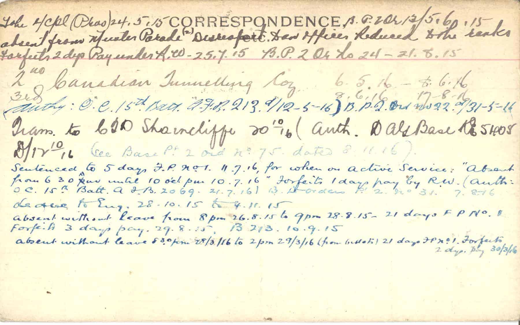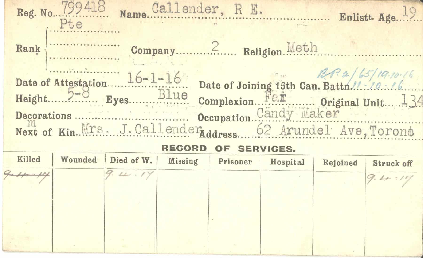 Record of Service Cards – C