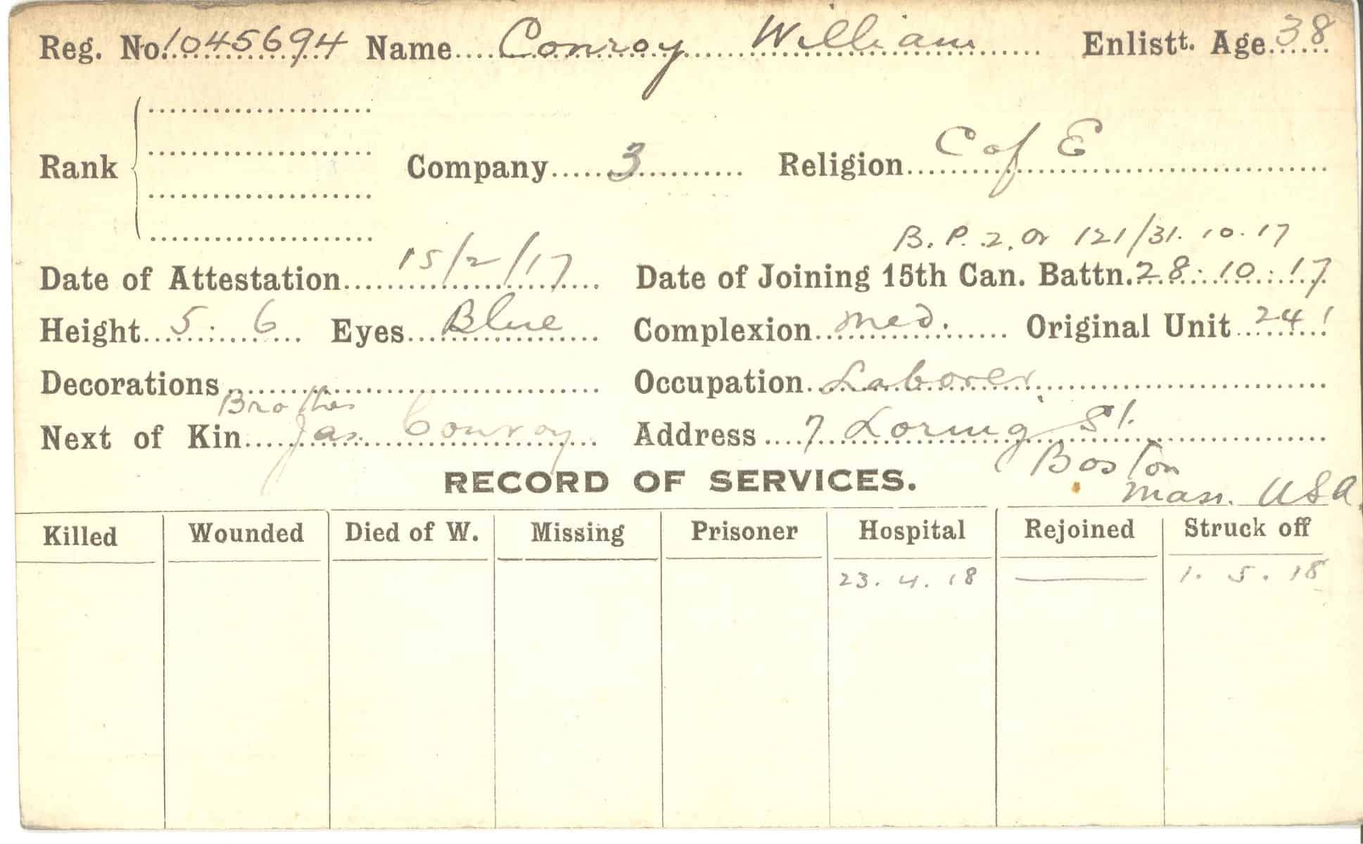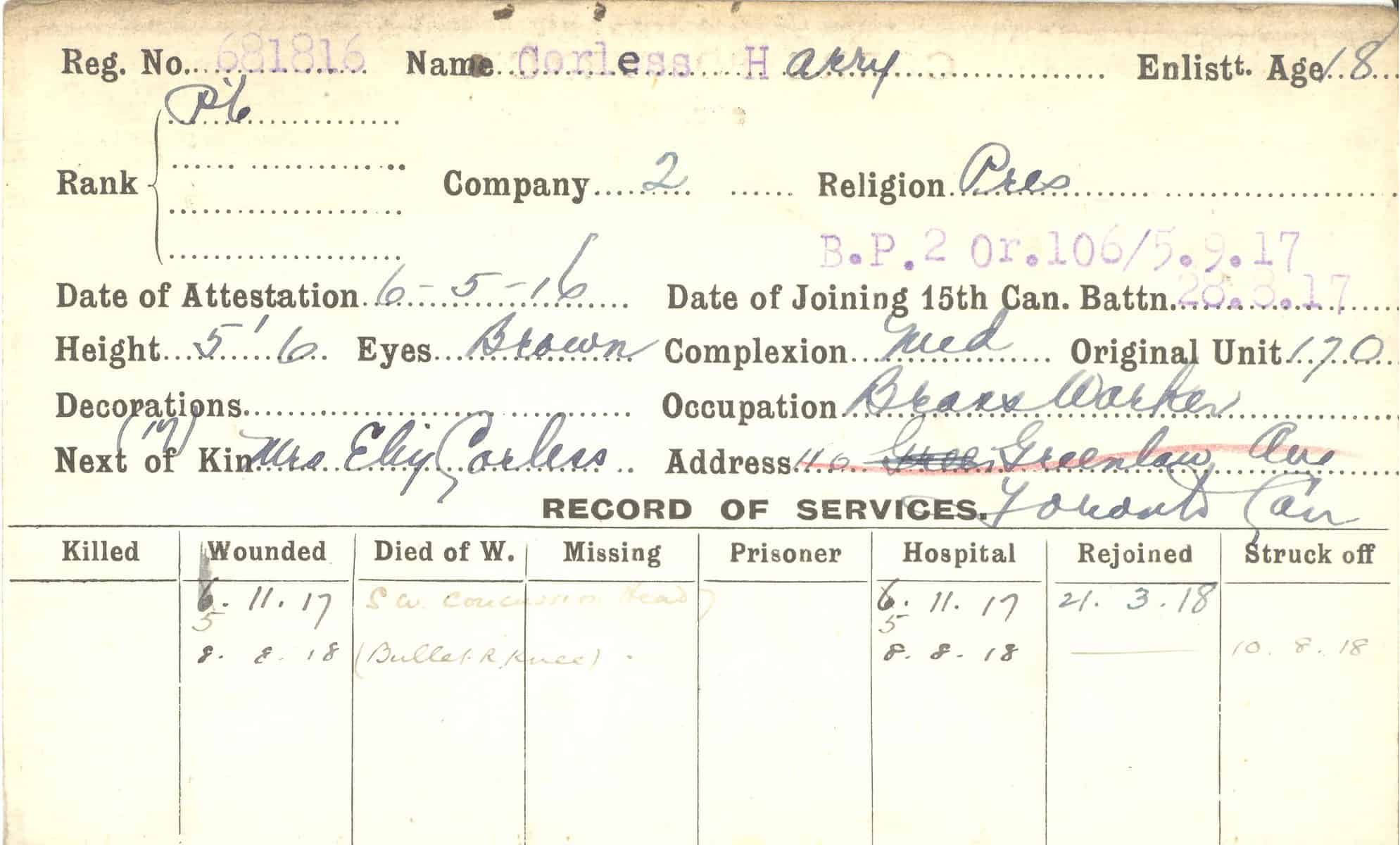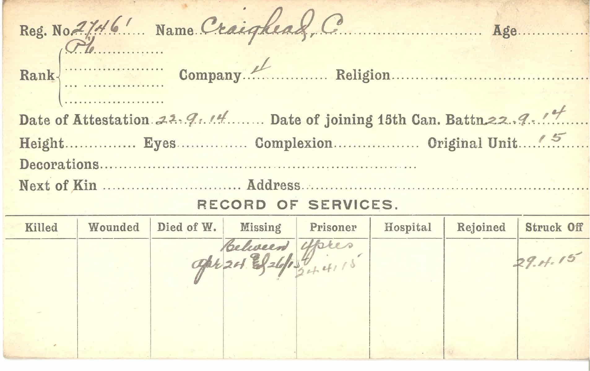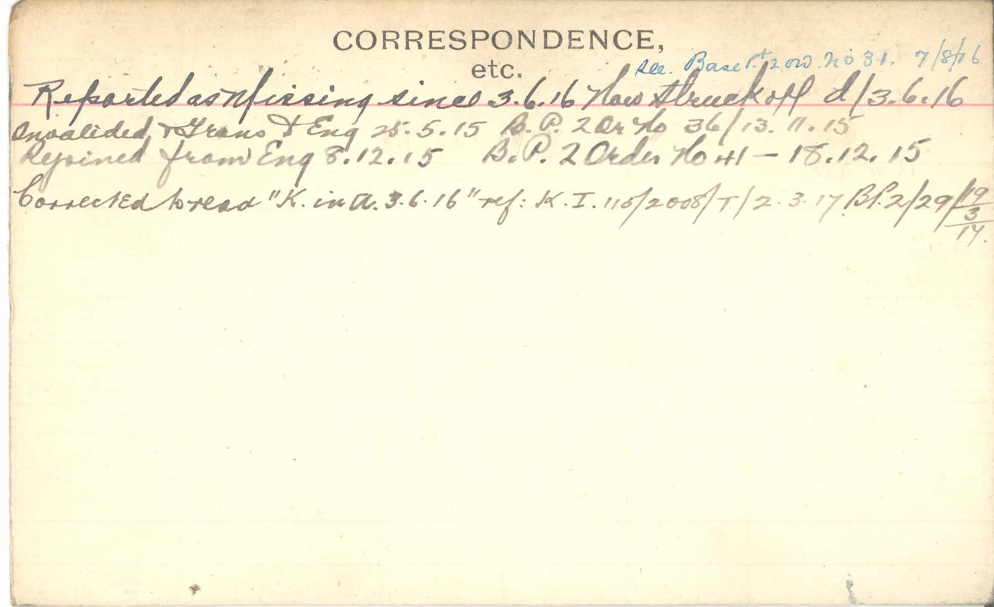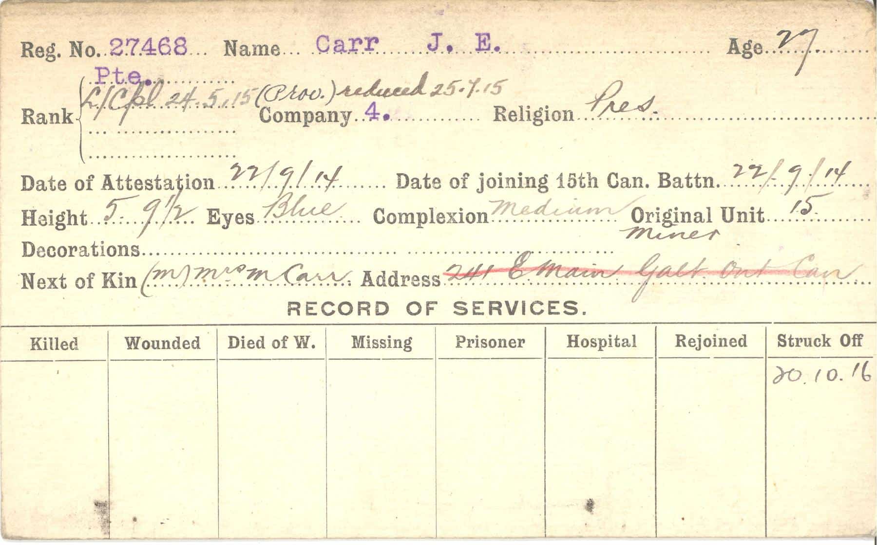 Record of Service Cards – C