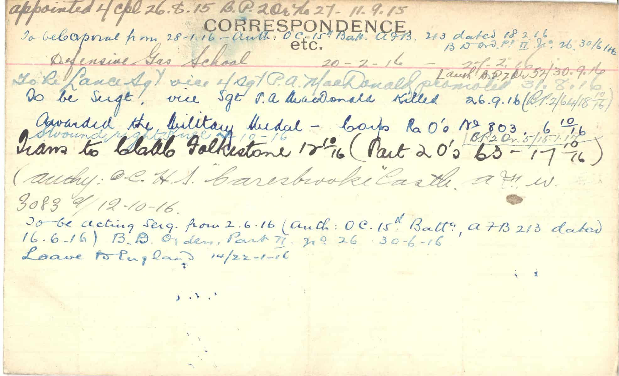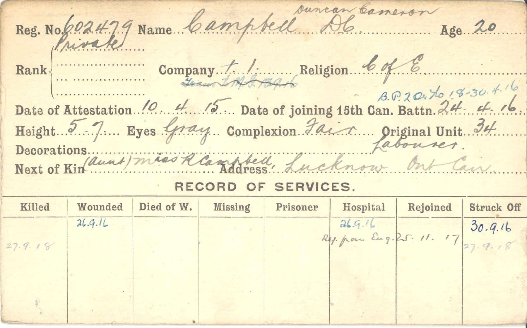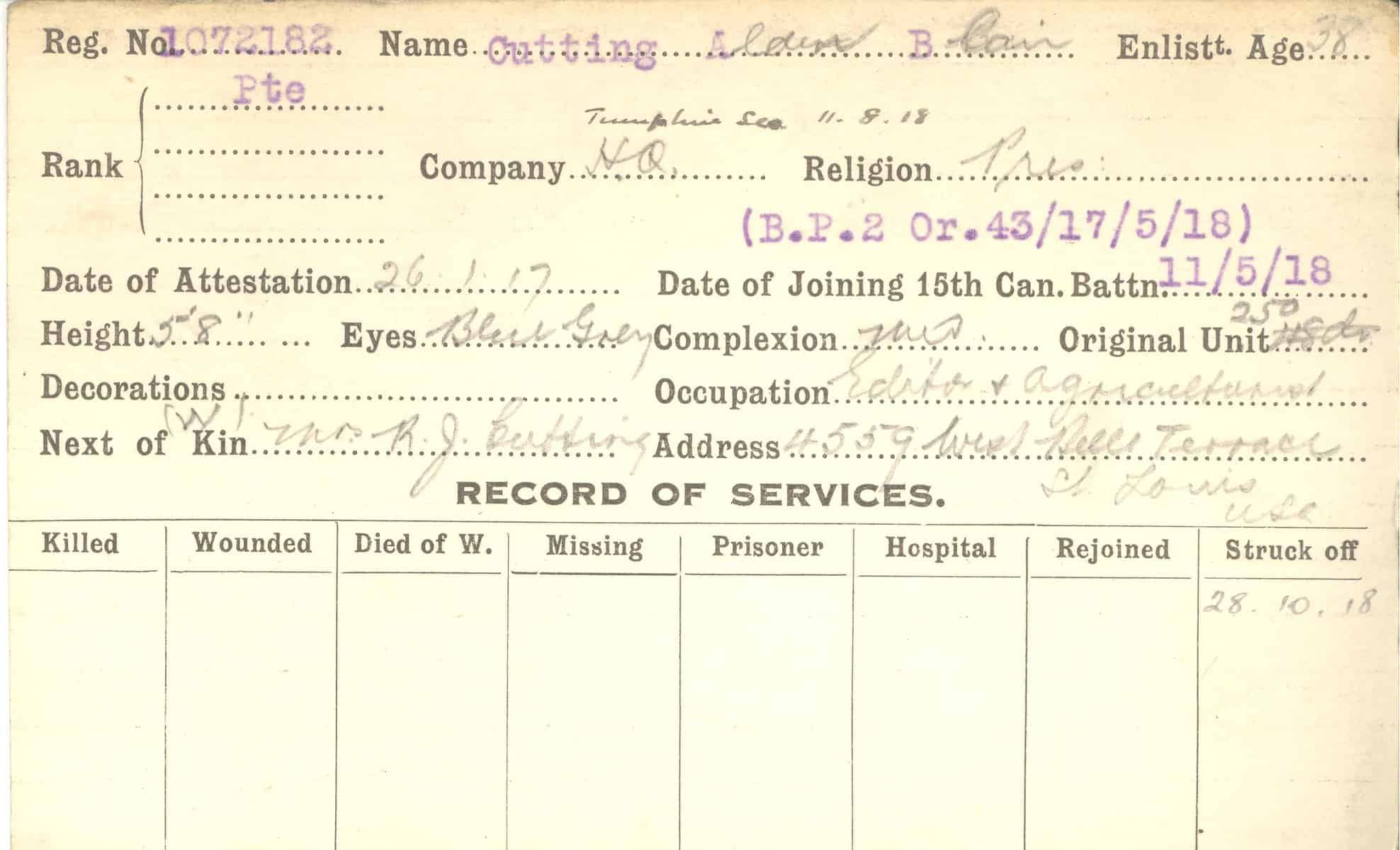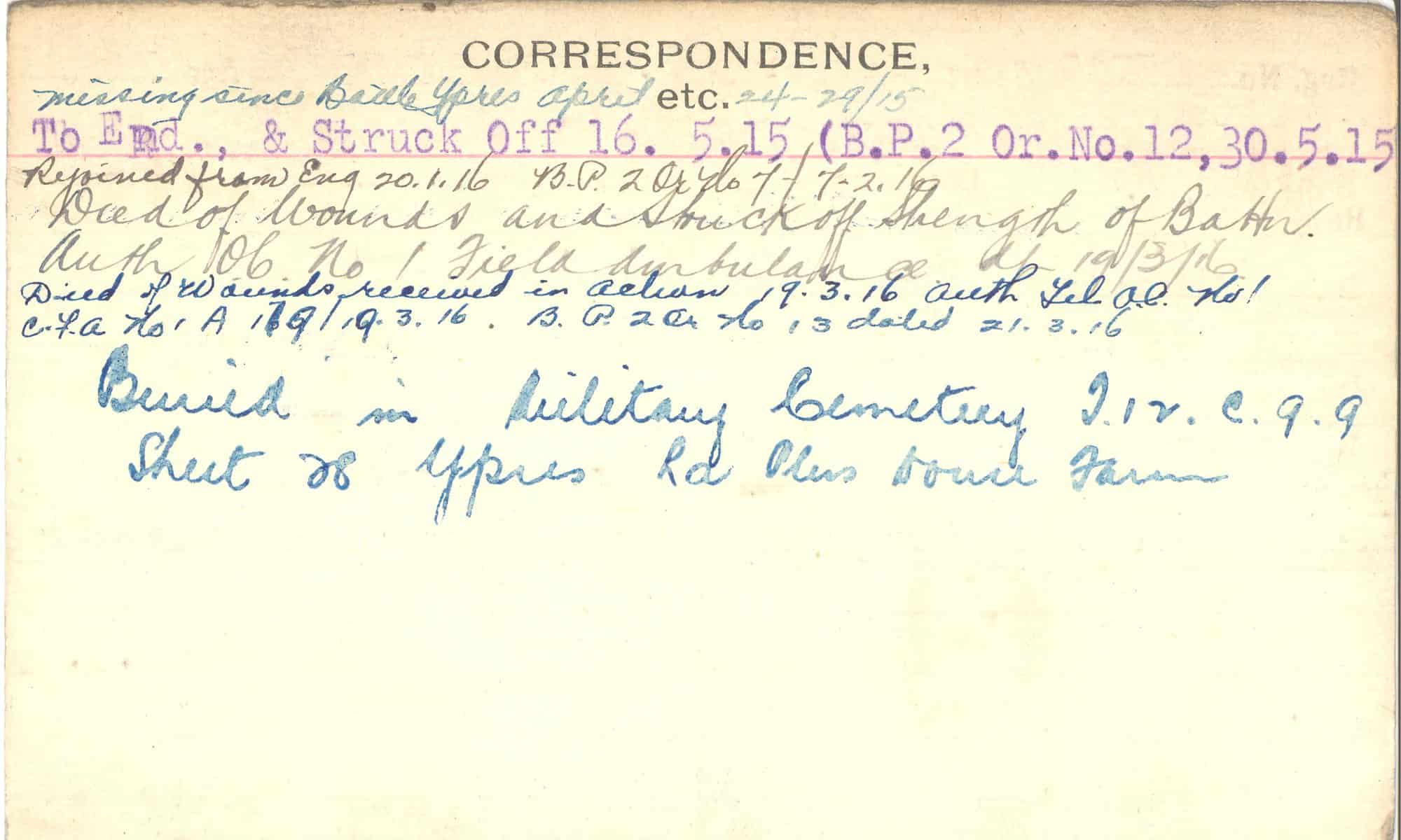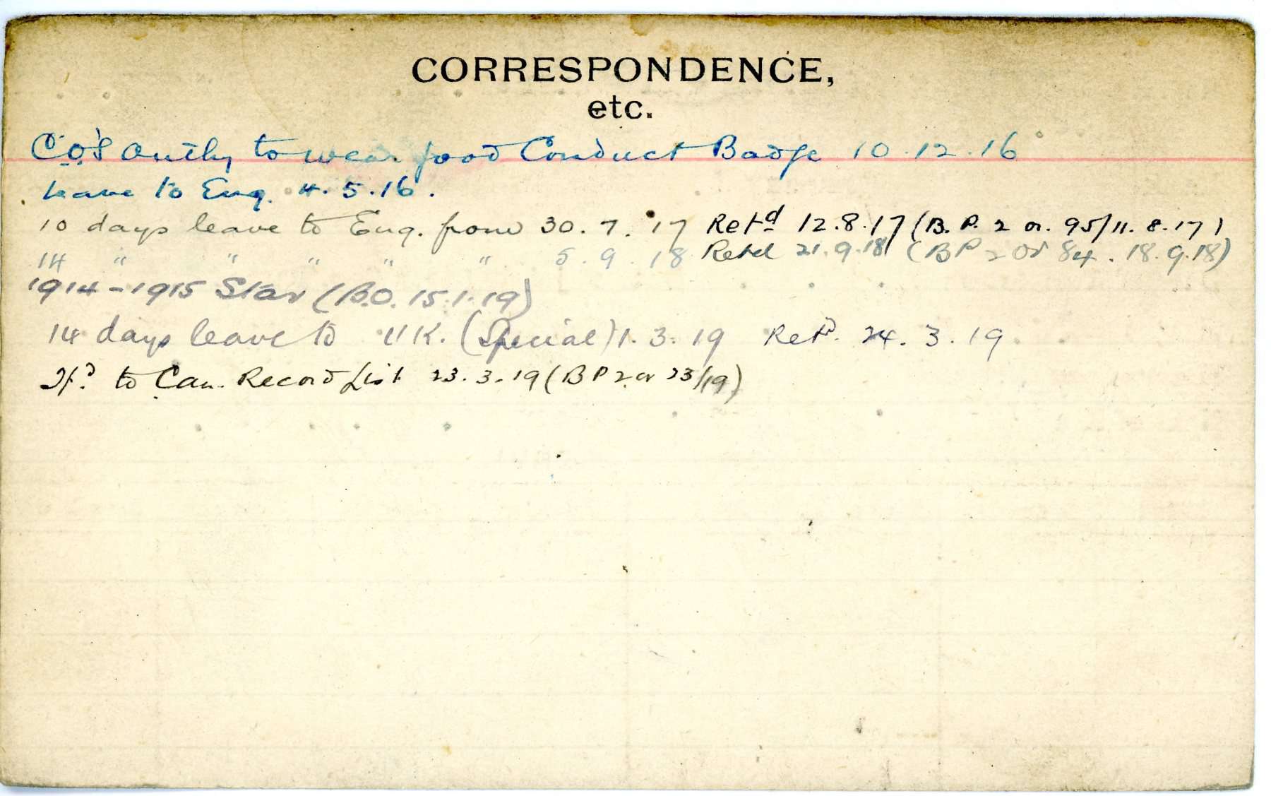 Record of Service Cards – C