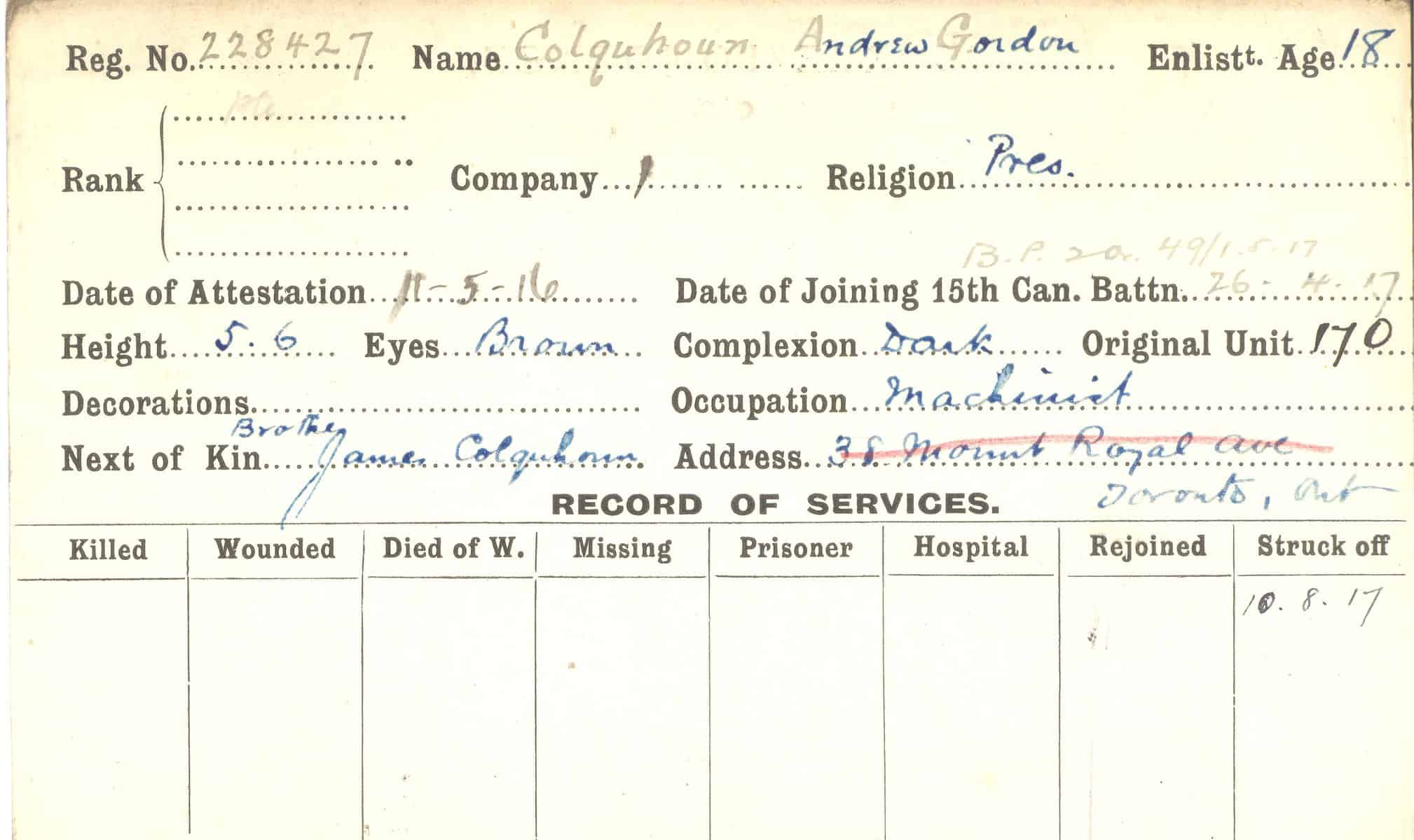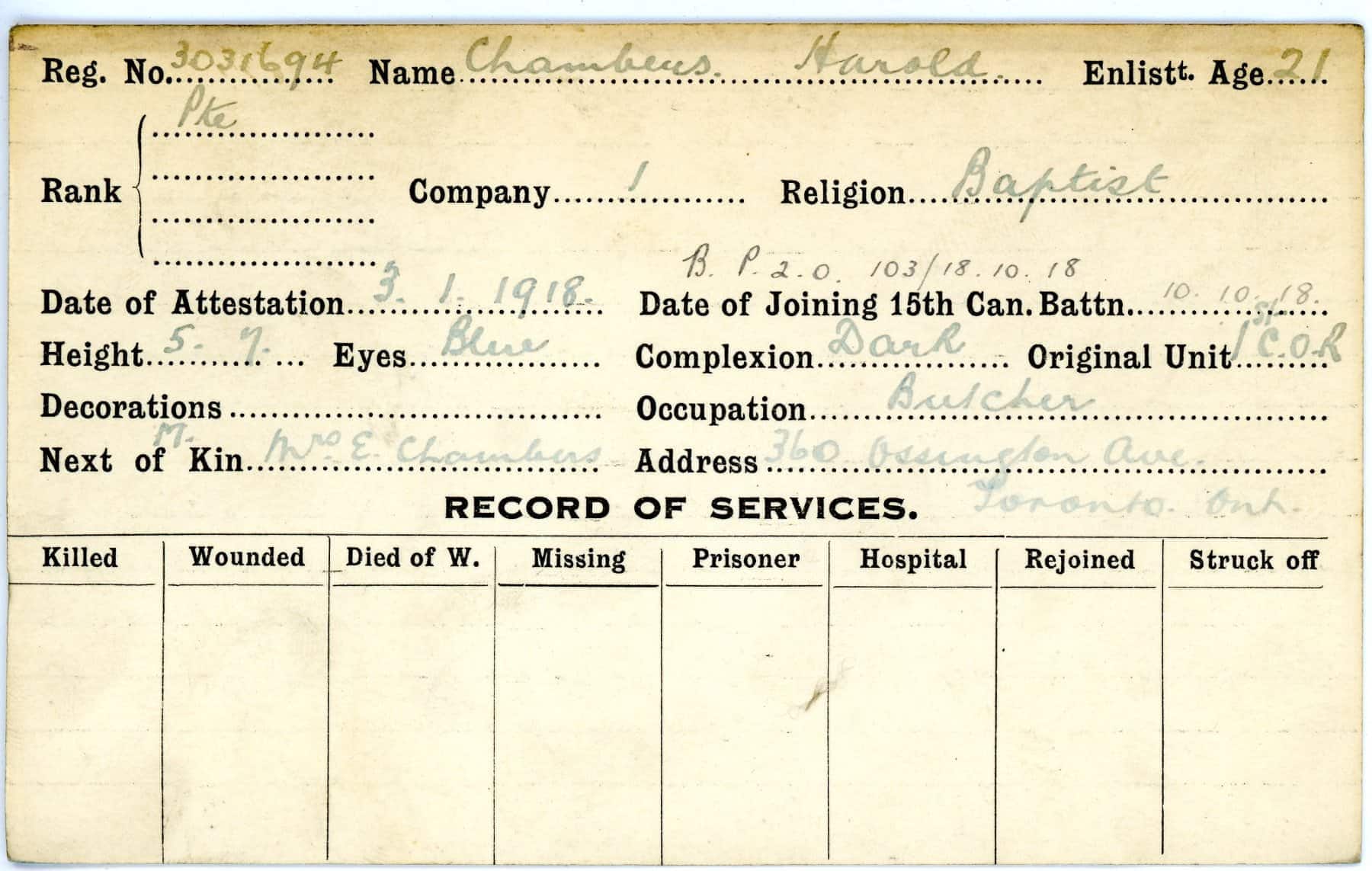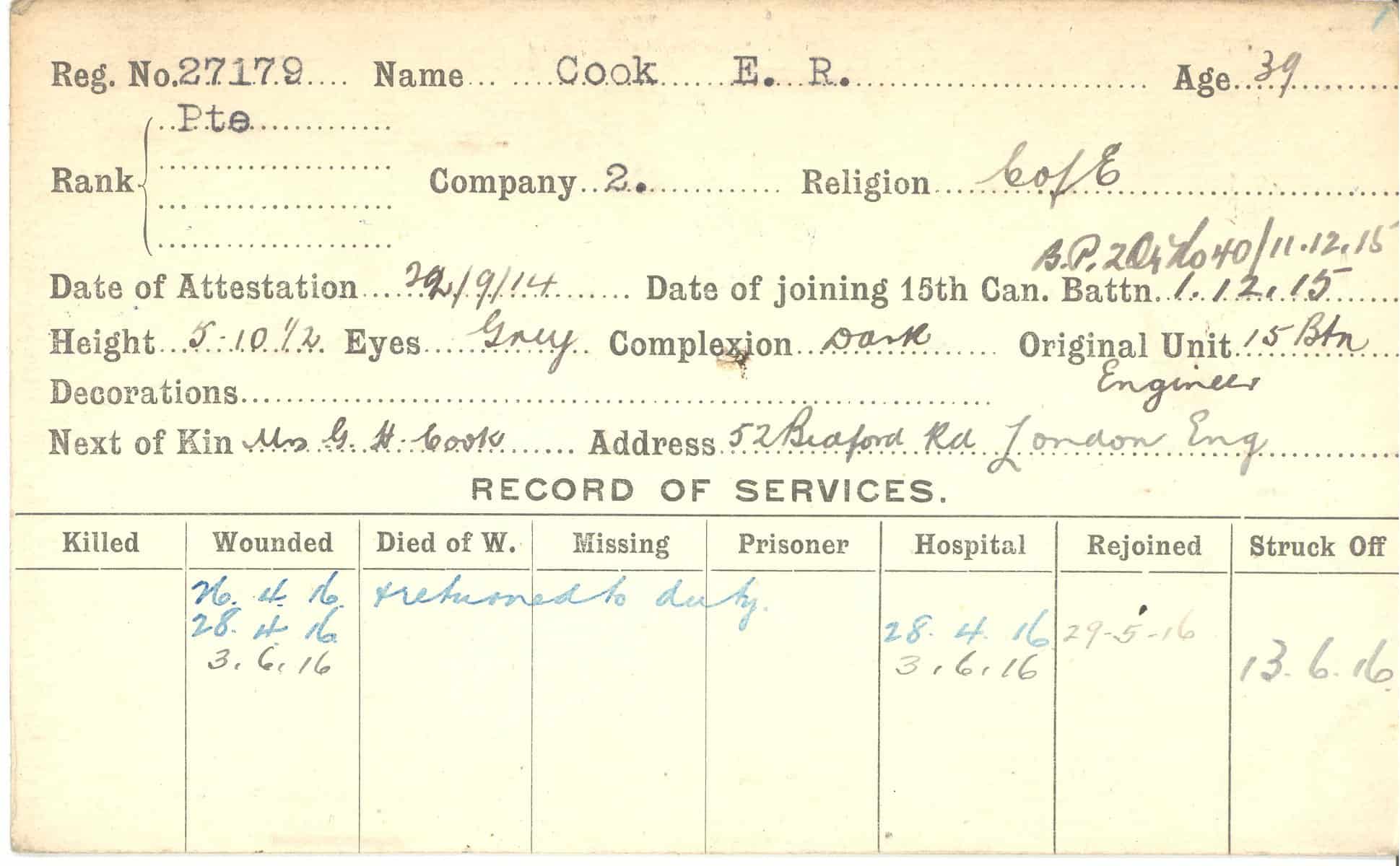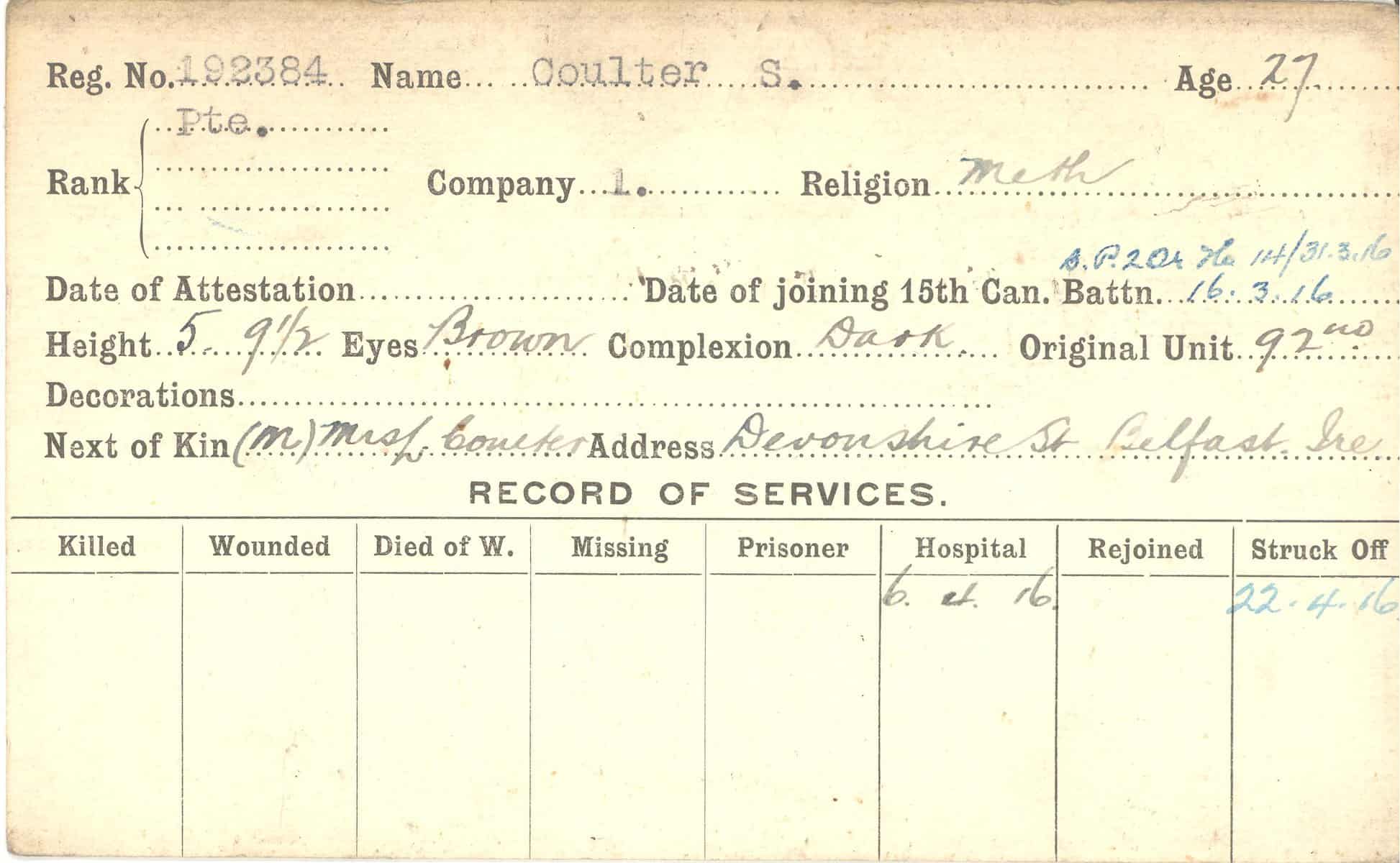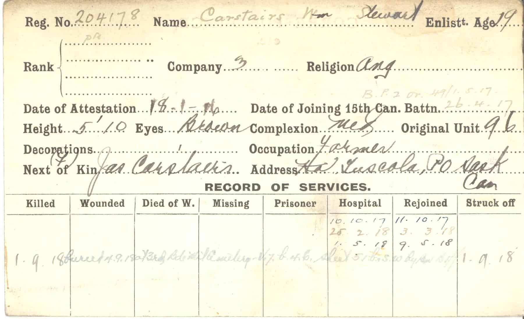 Record of Service Cards – C