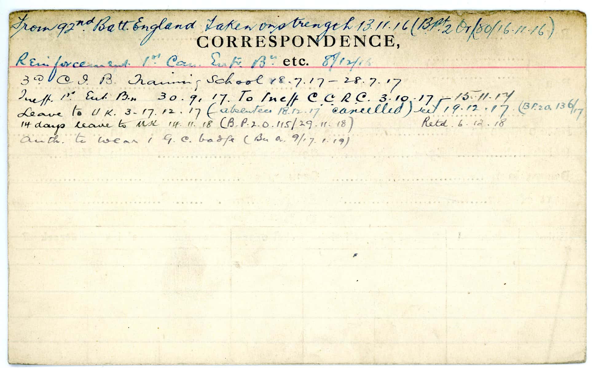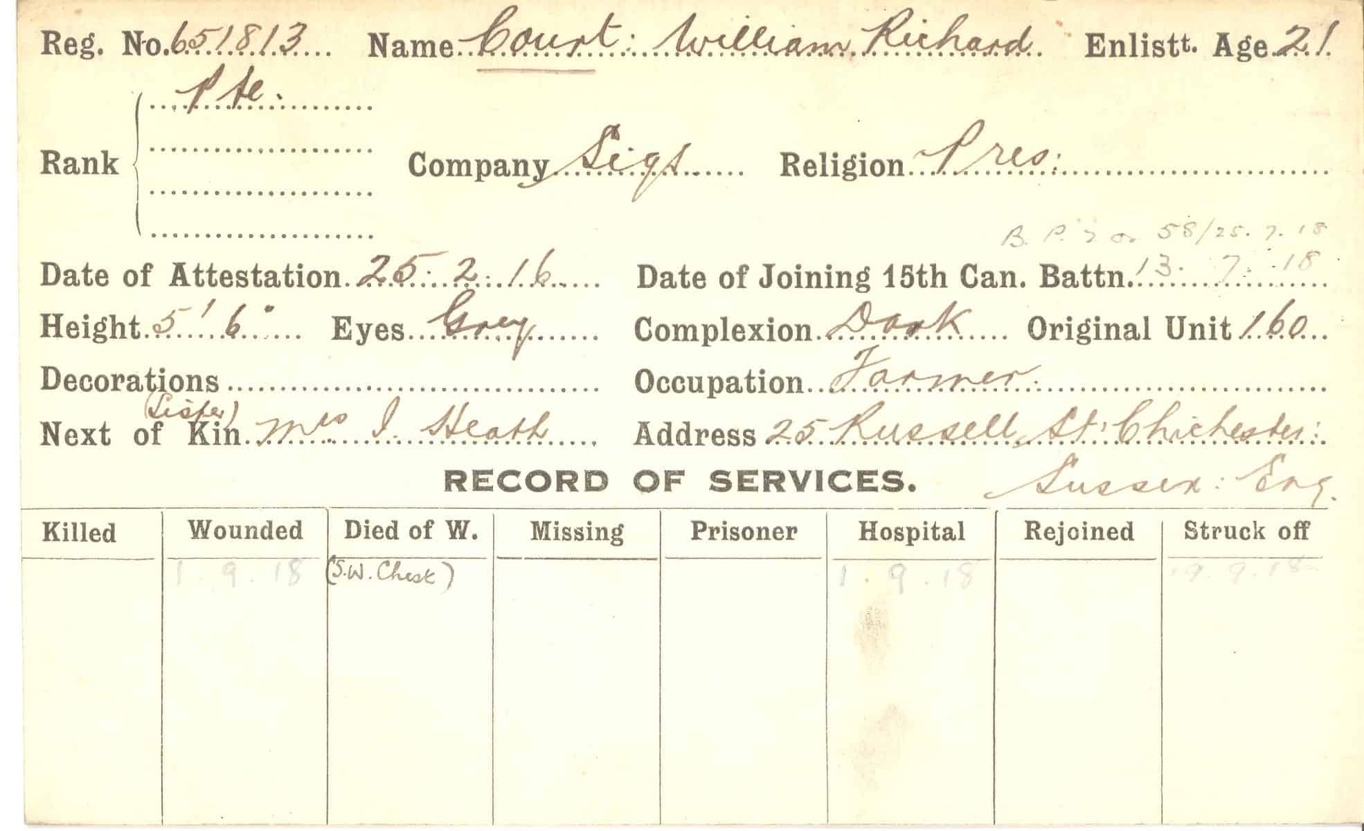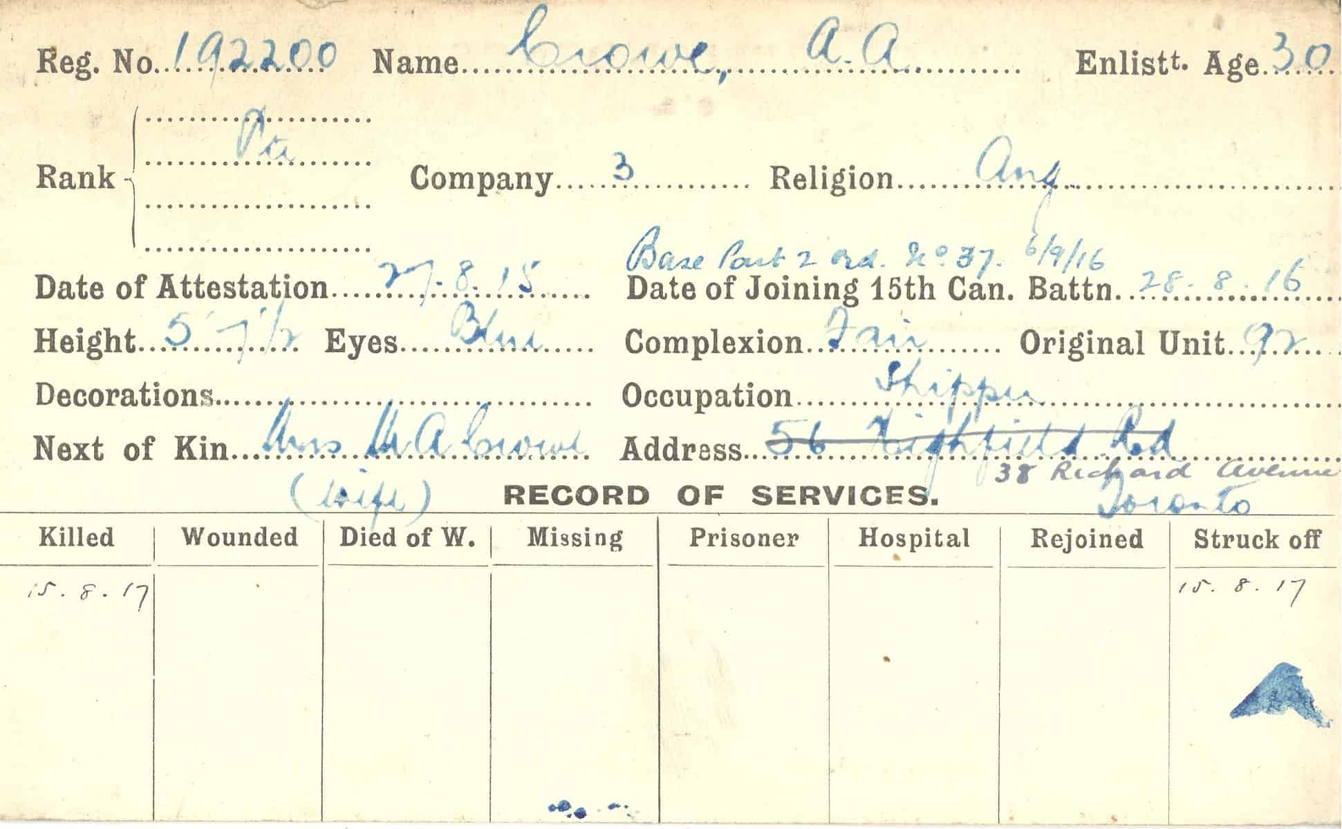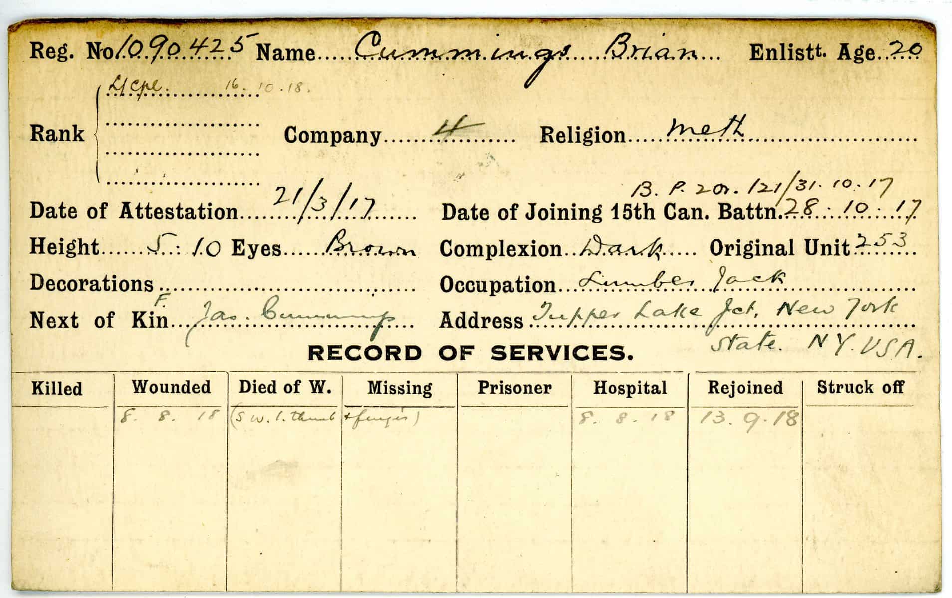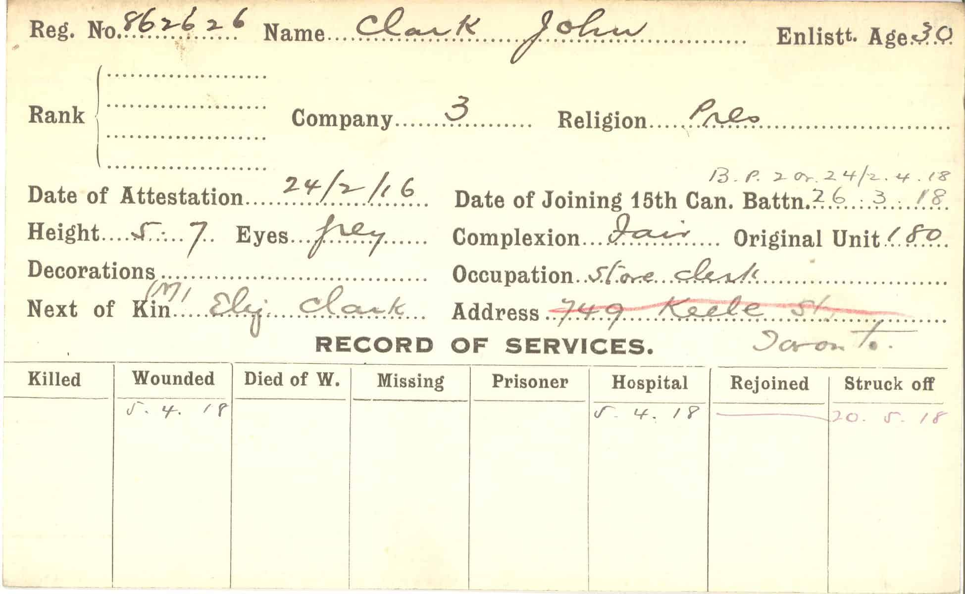 Record of Service Cards – C