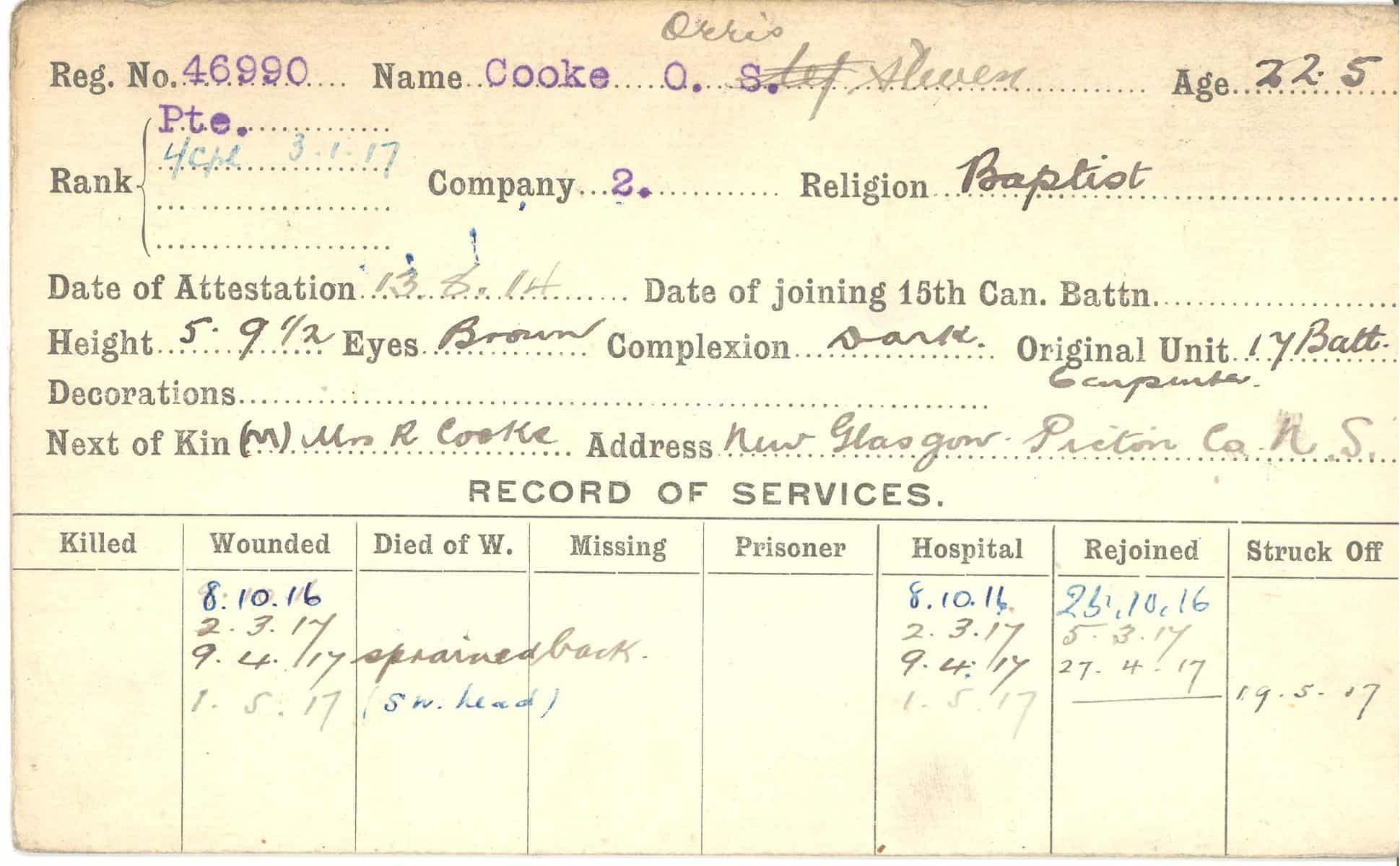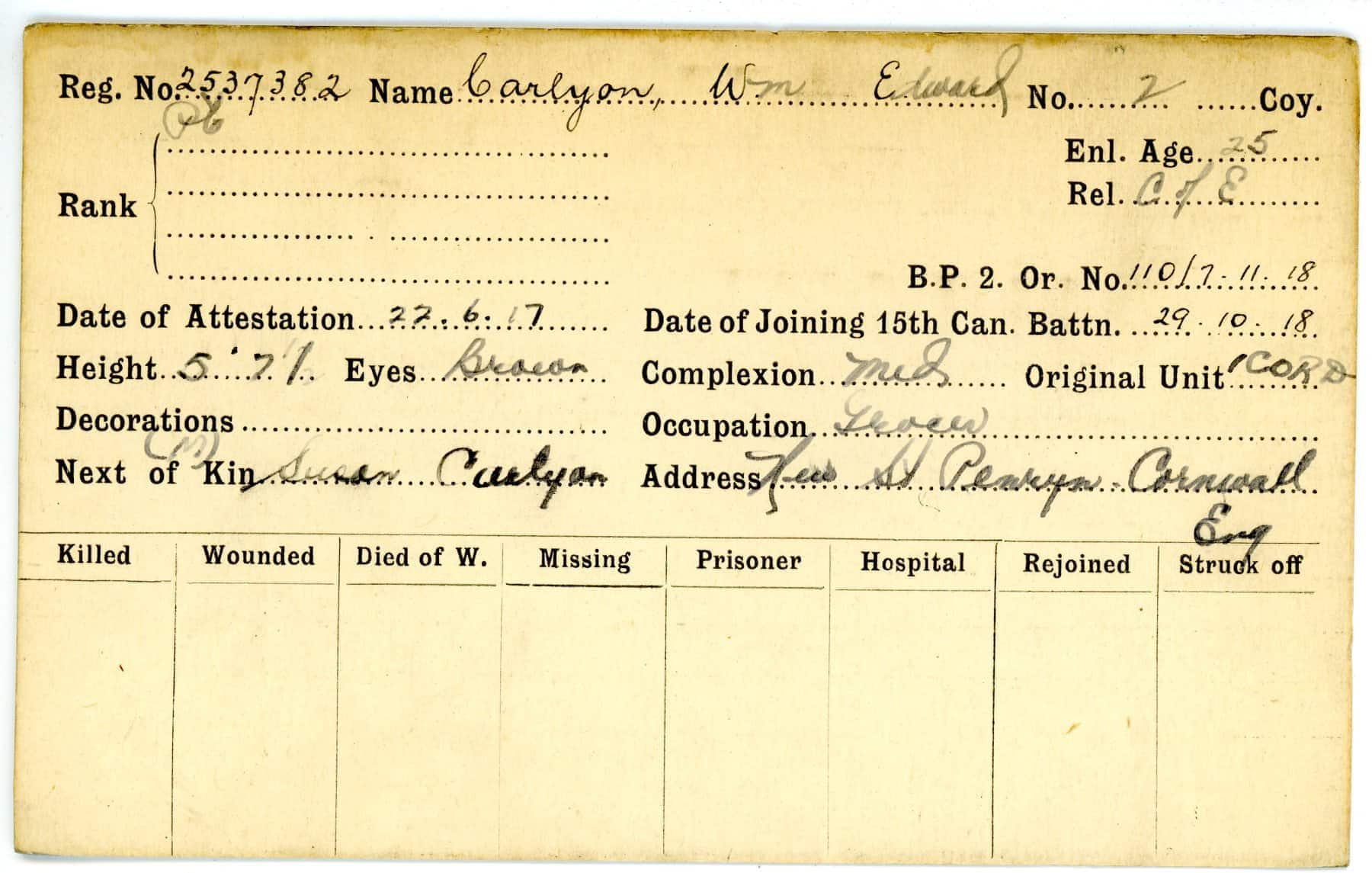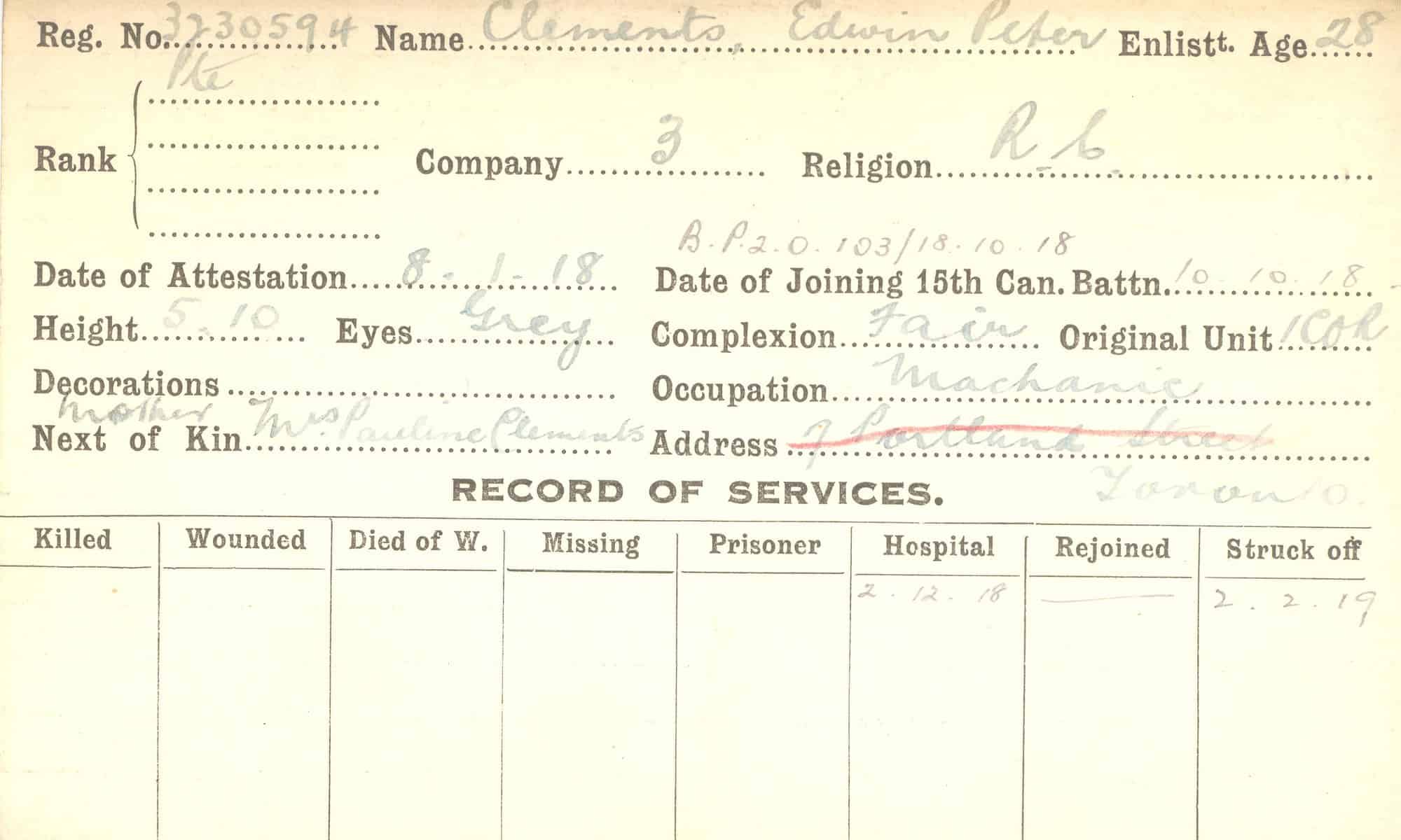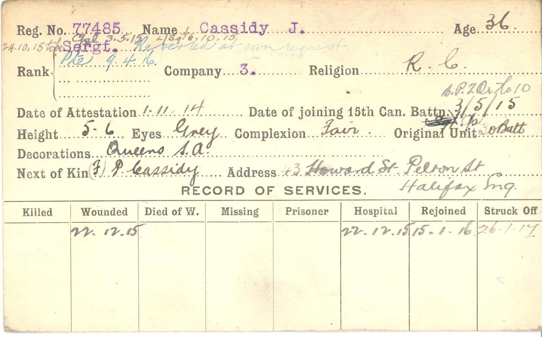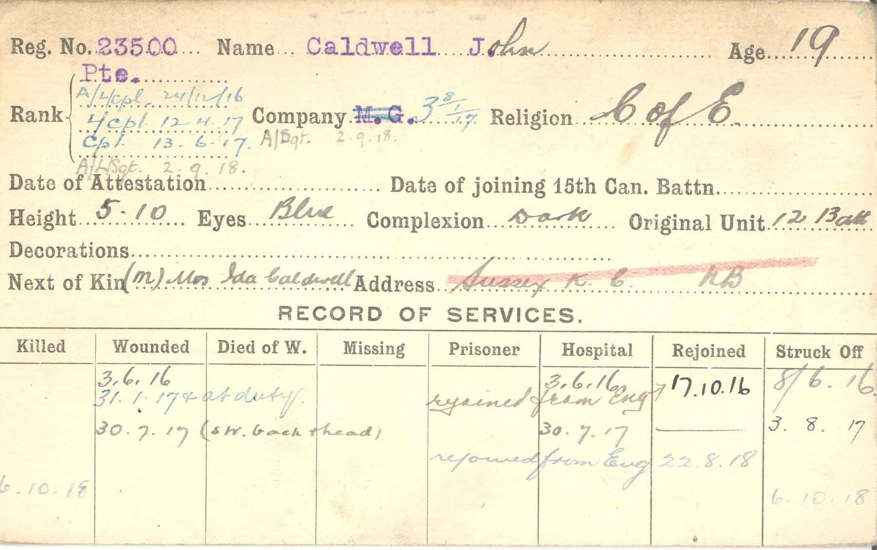 Record of Service Cards – C