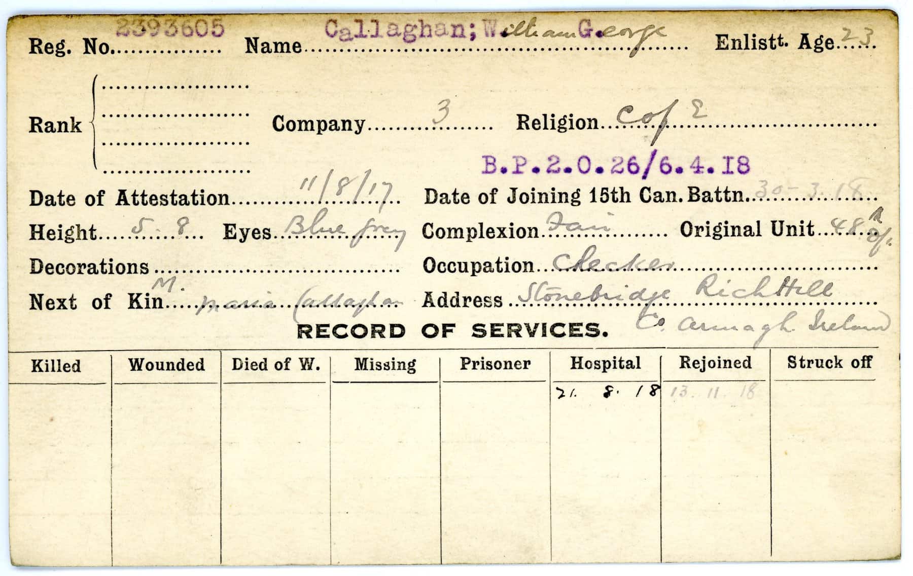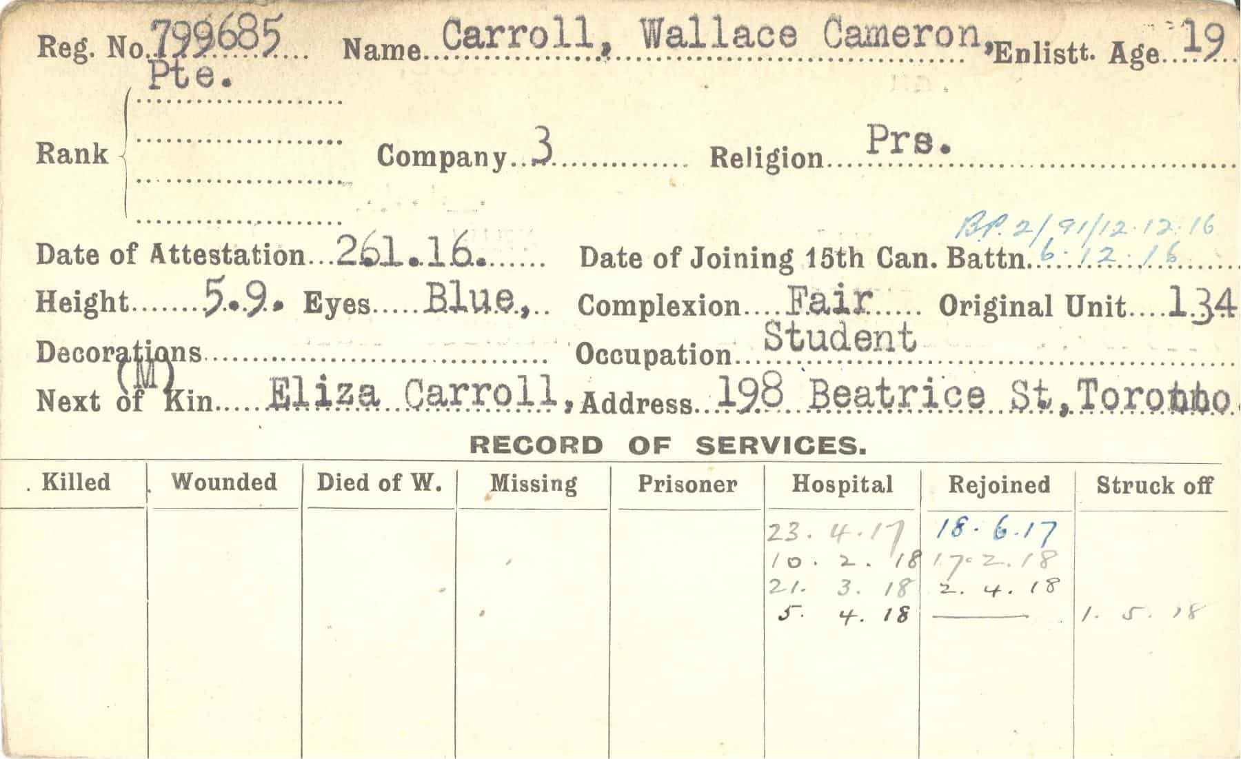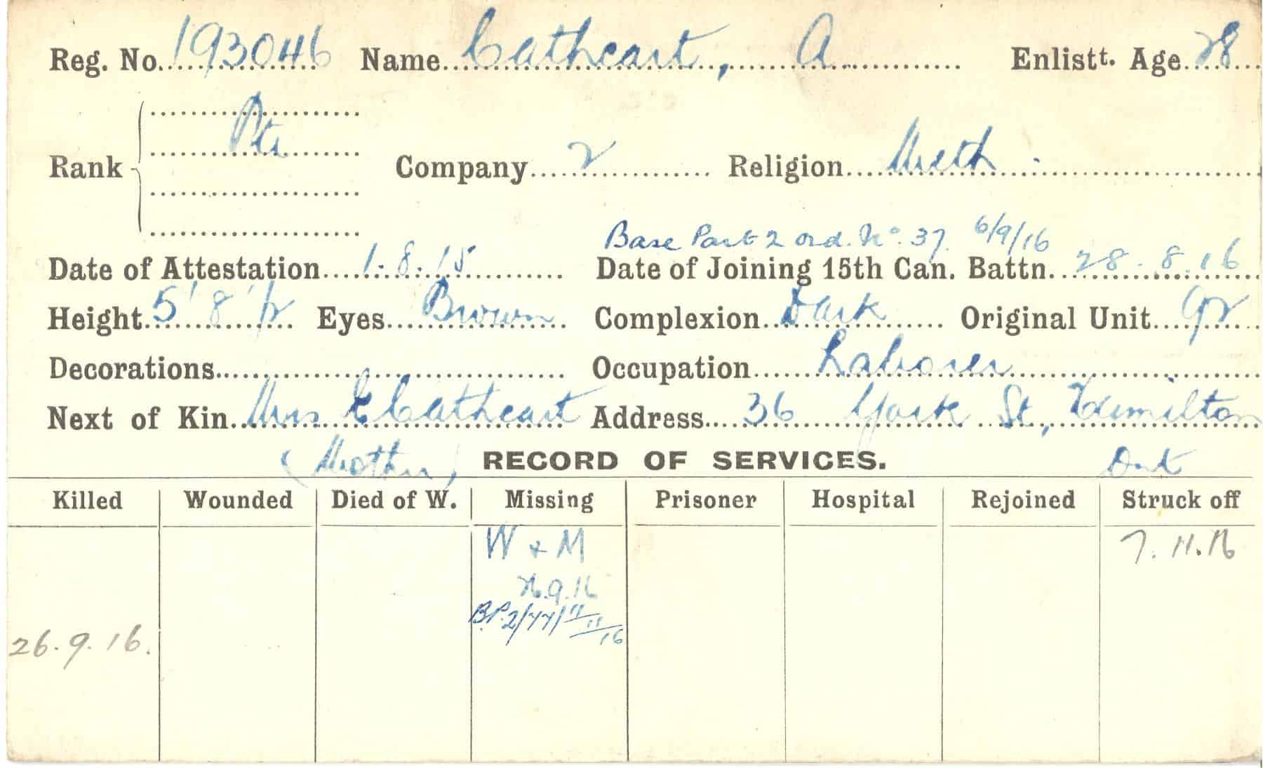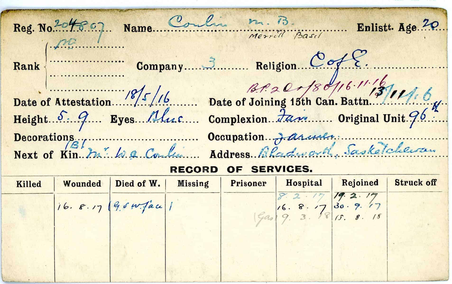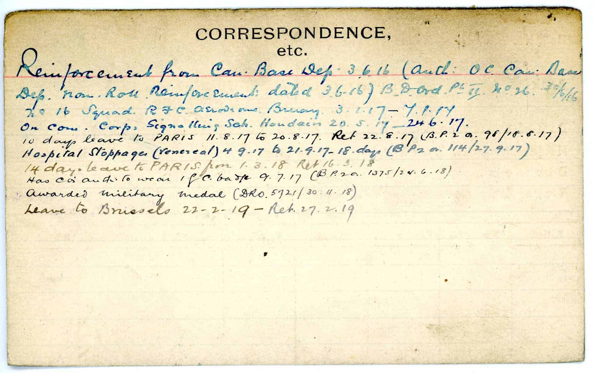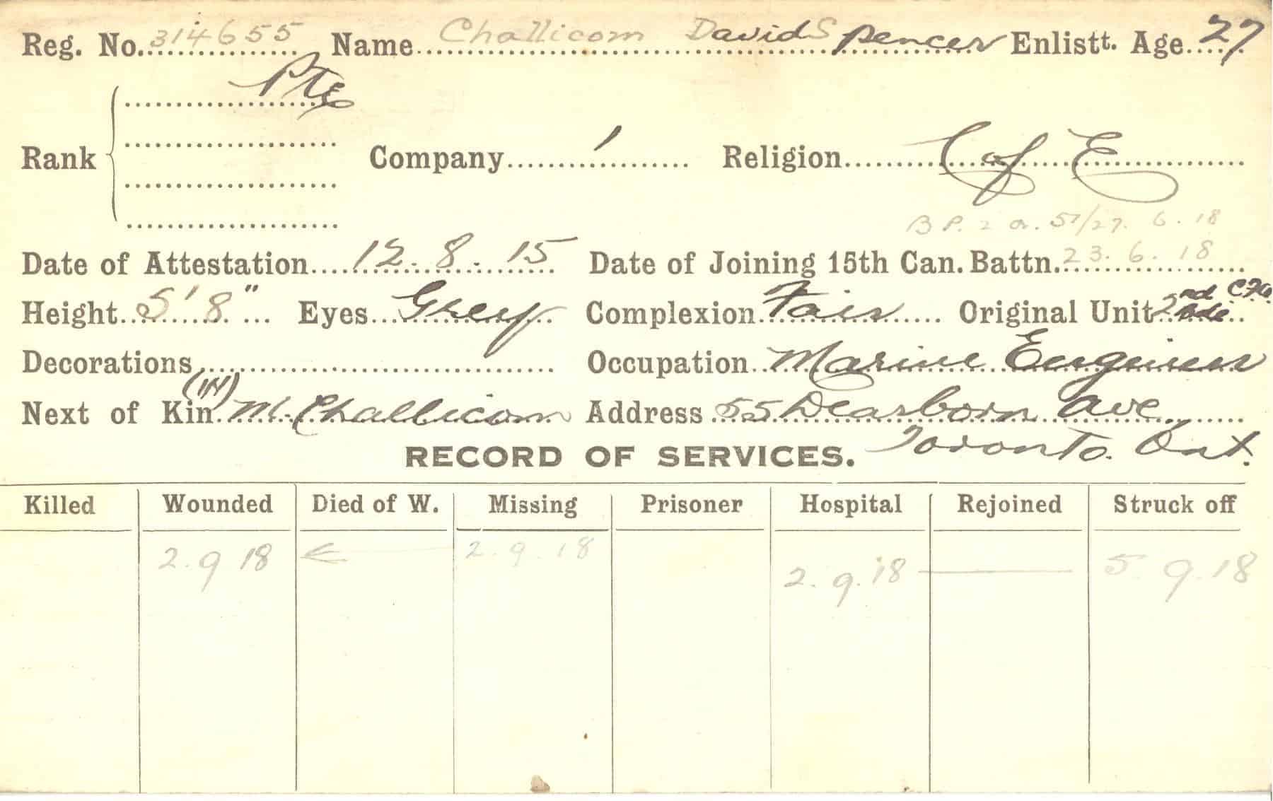 Record of Service Cards – C
