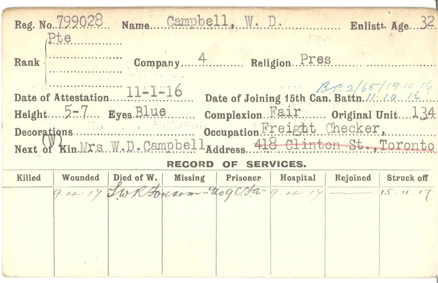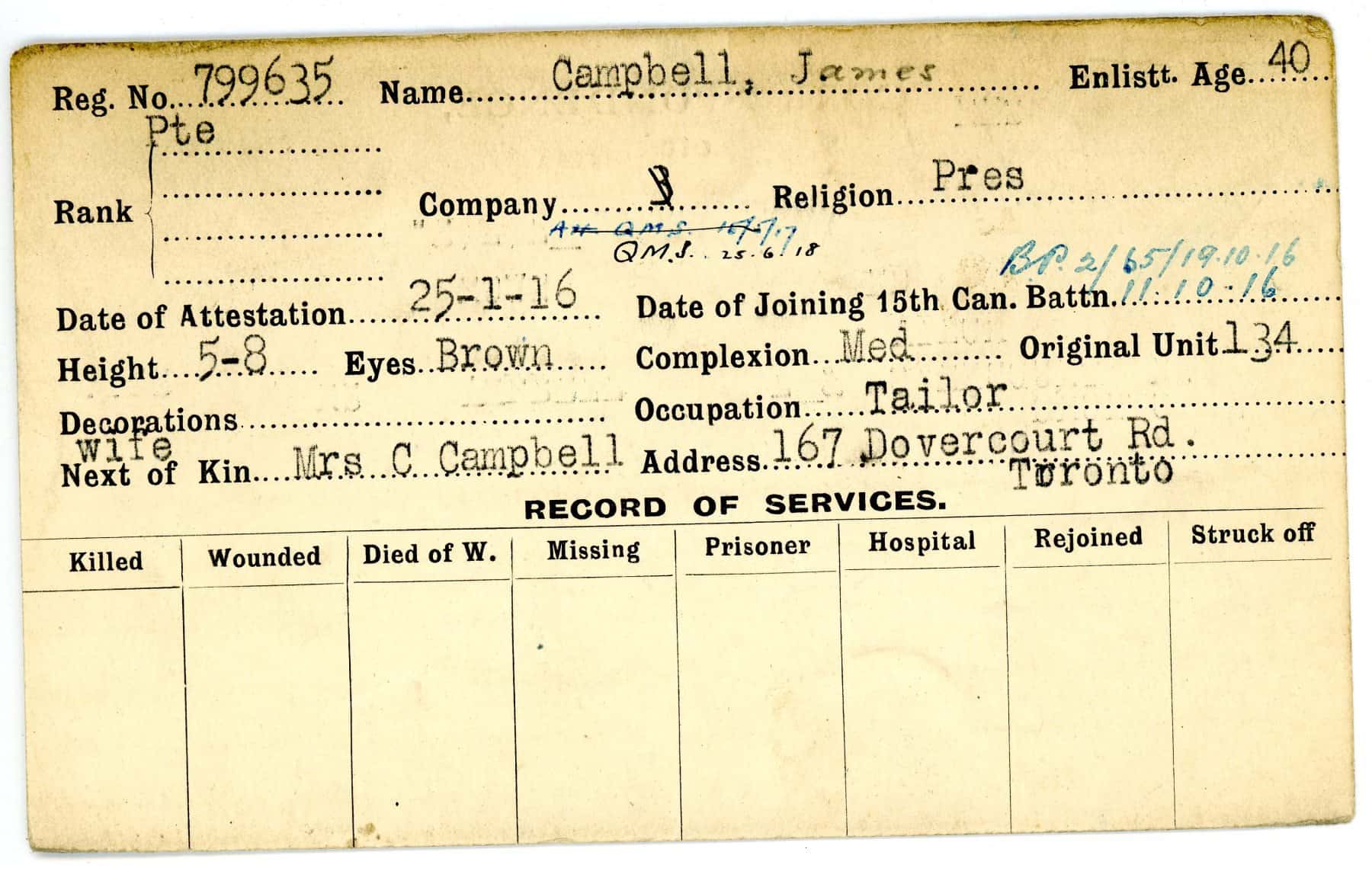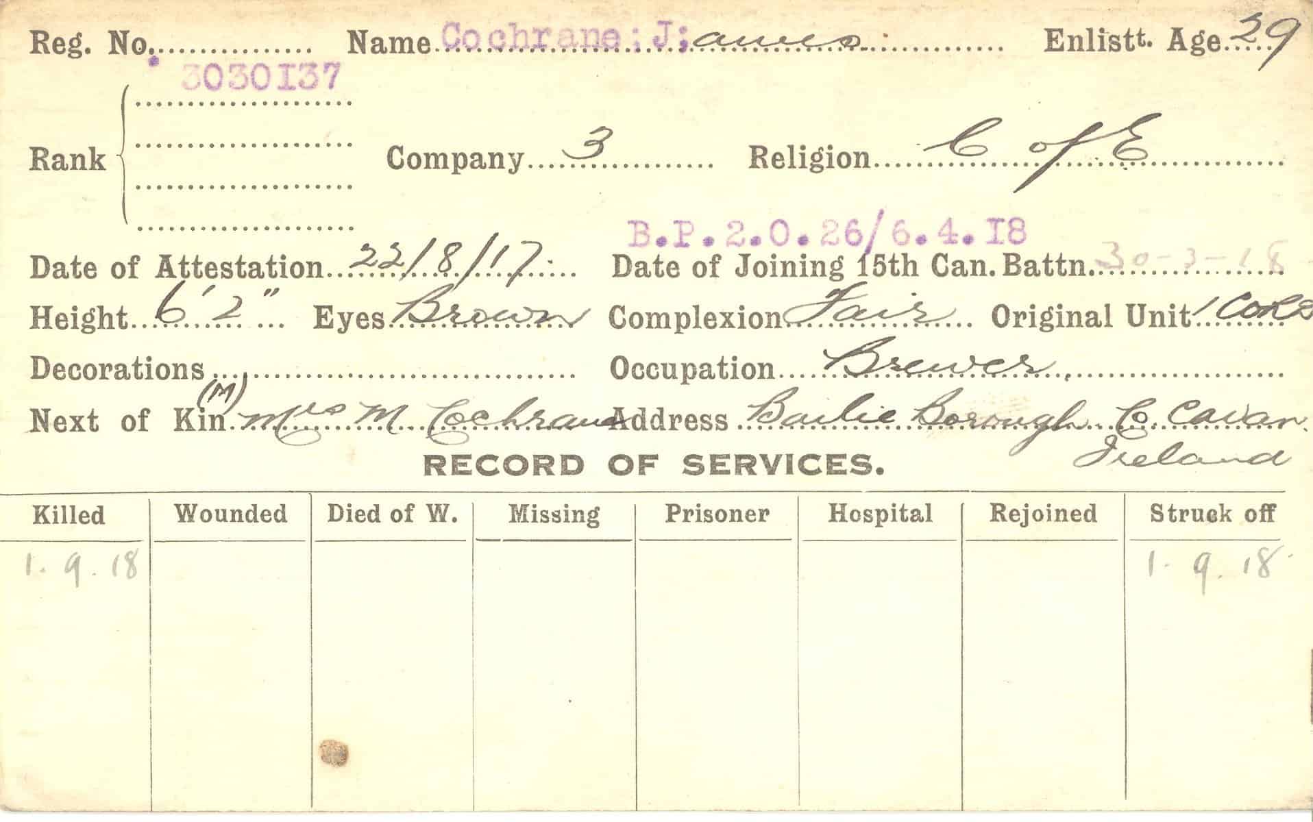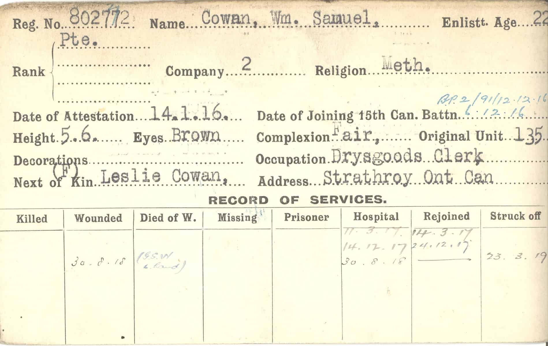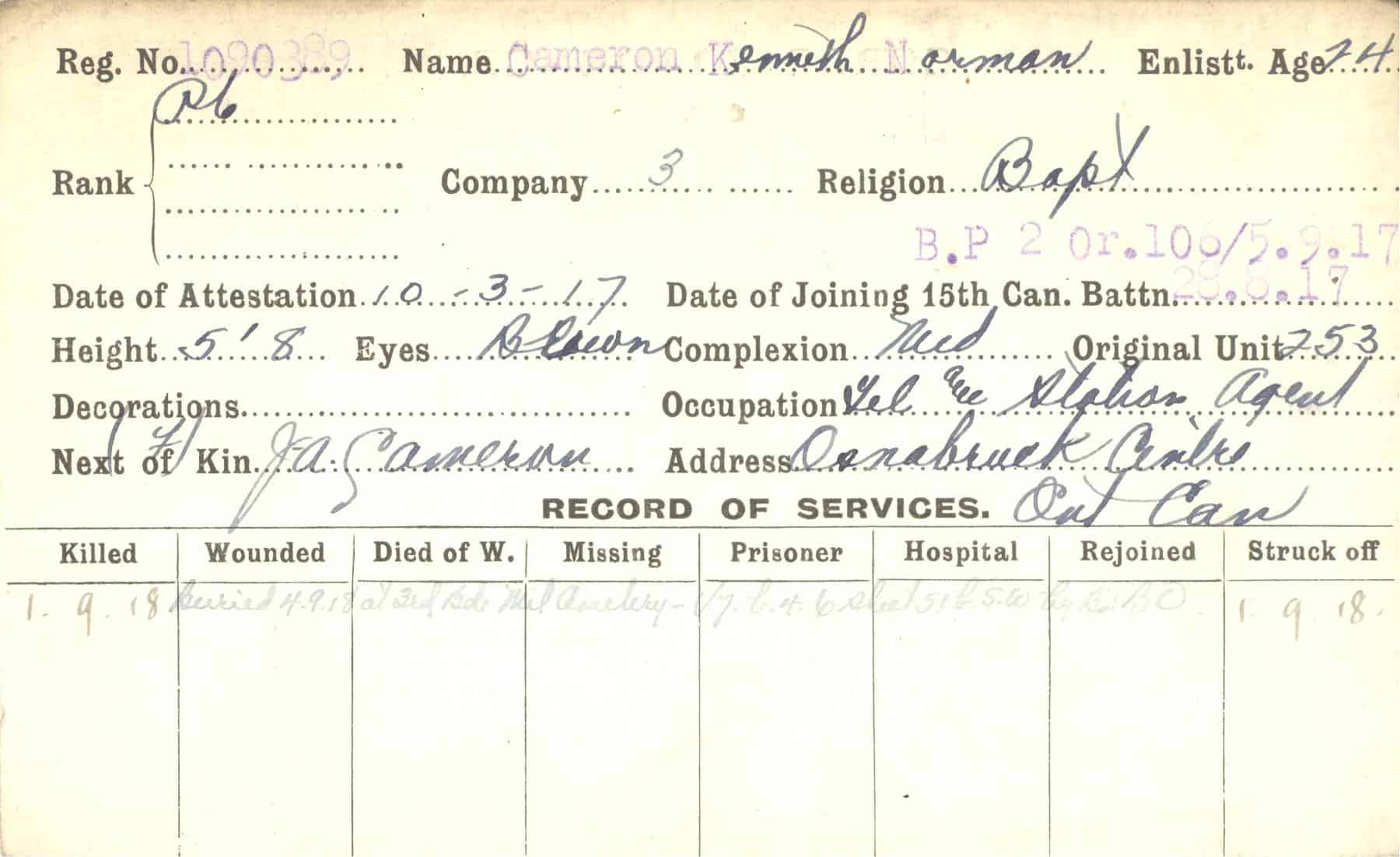 Record of Service Cards – C