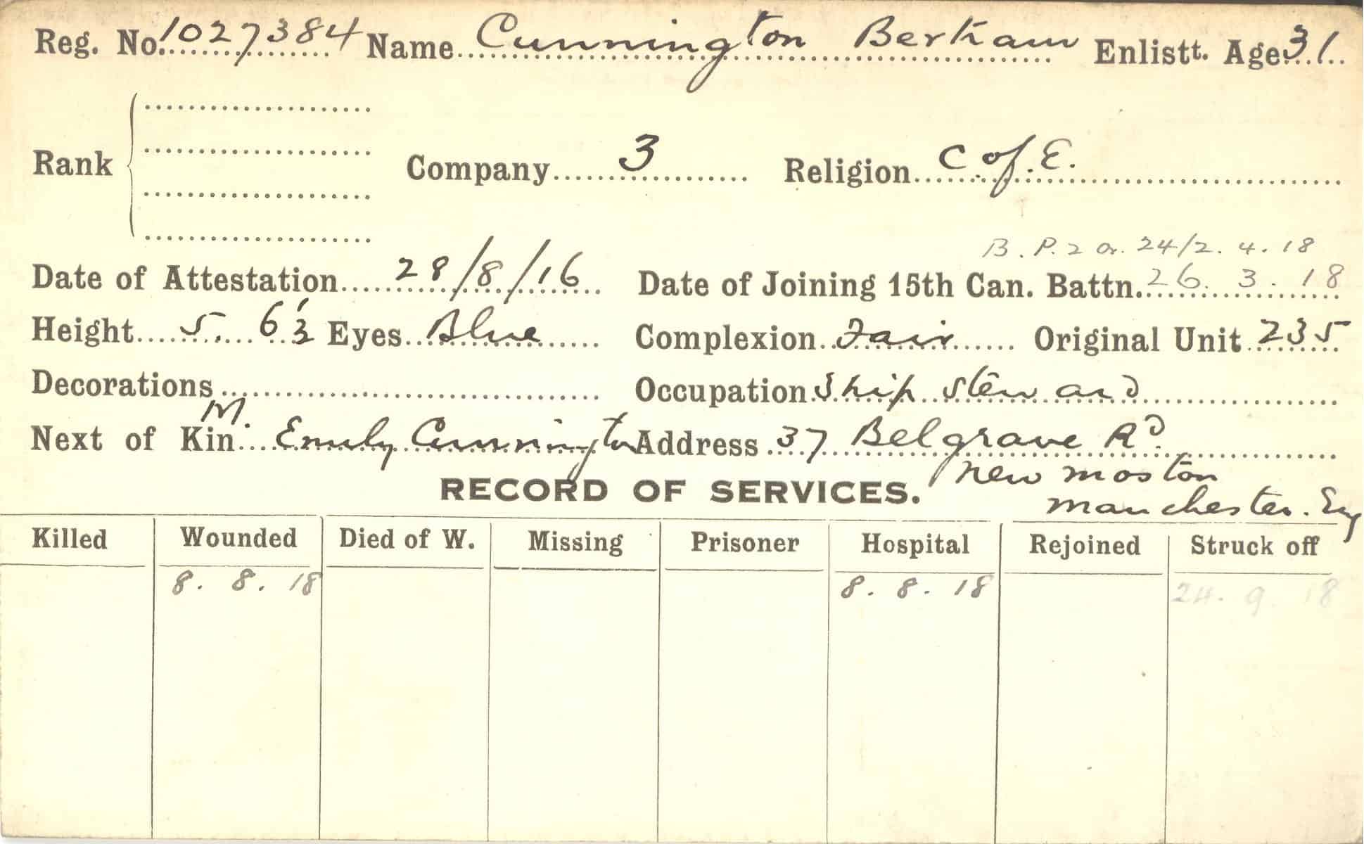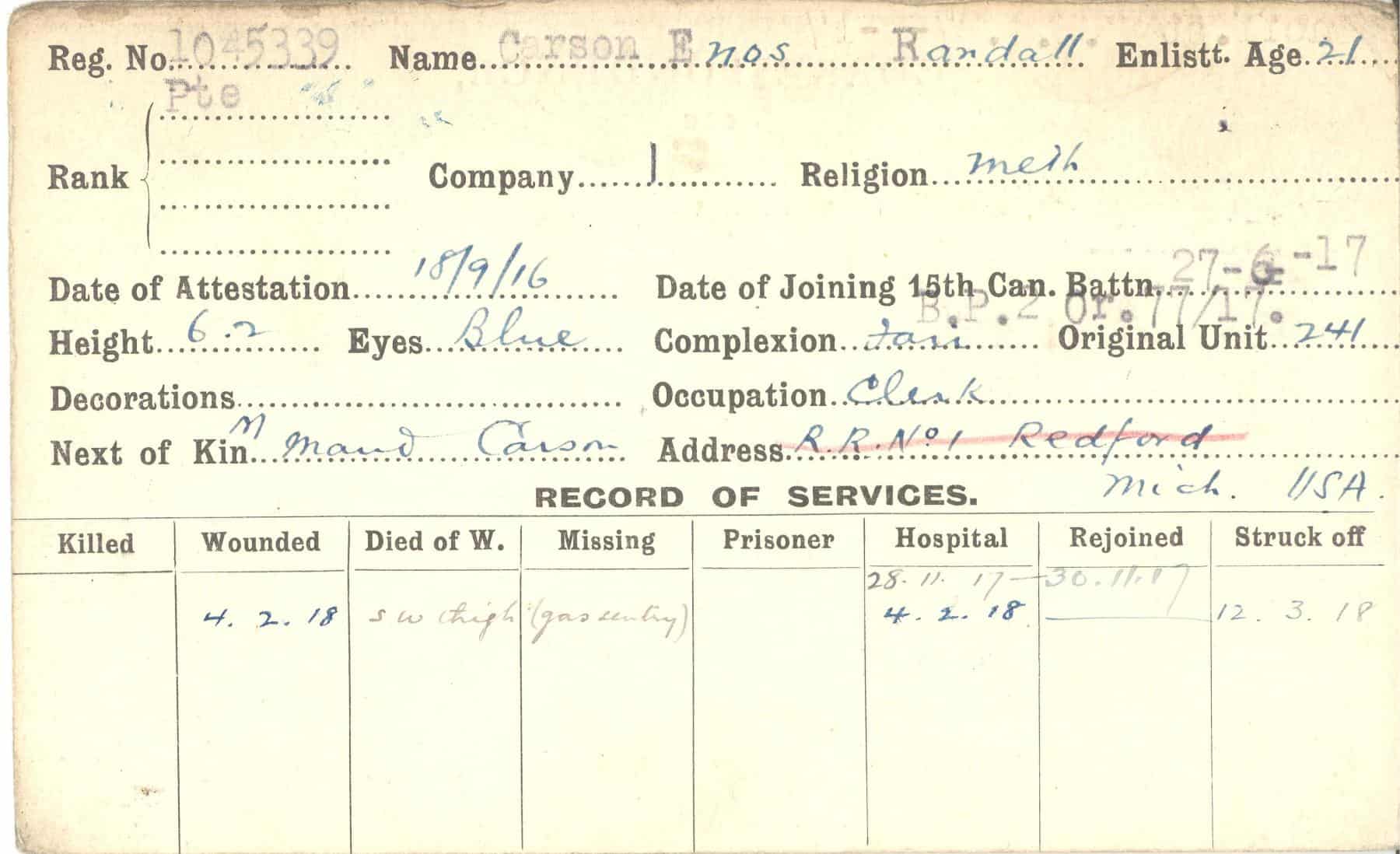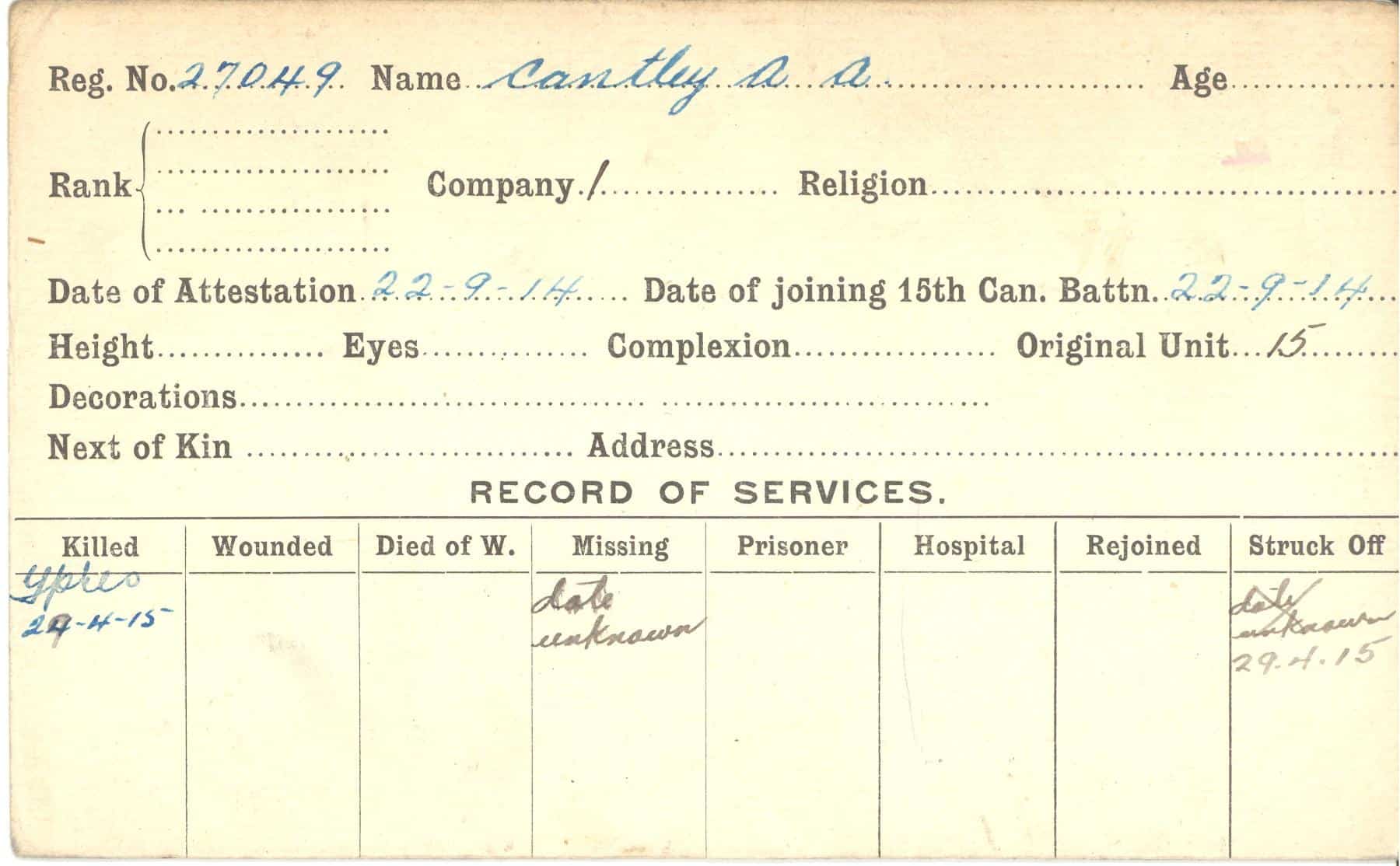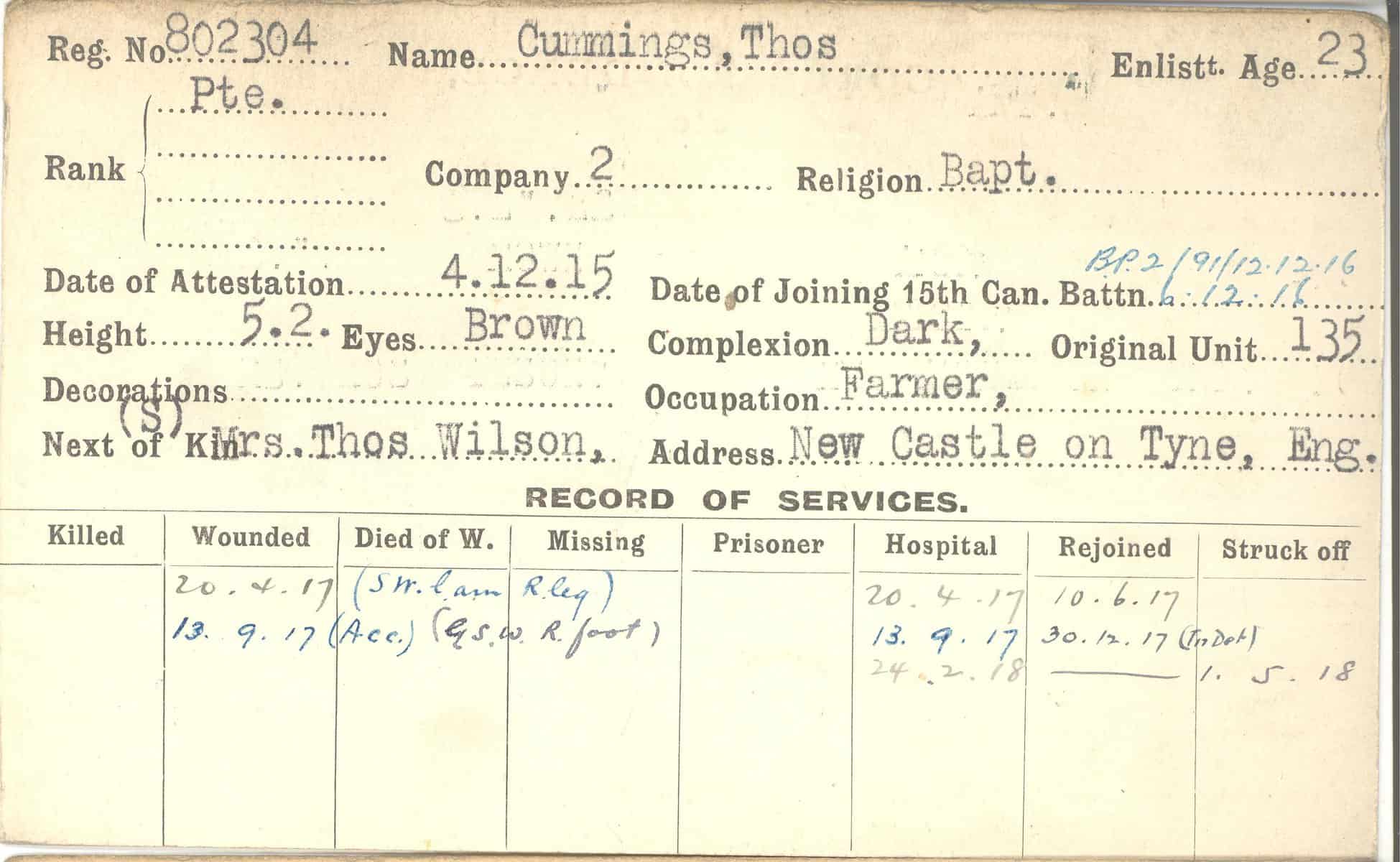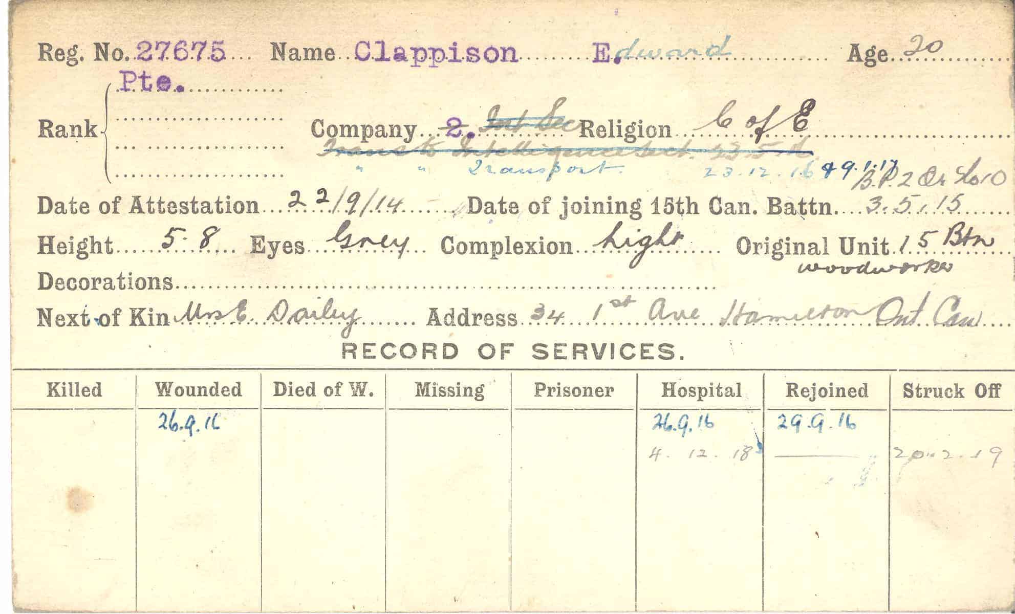 Record of Service Cards – C
