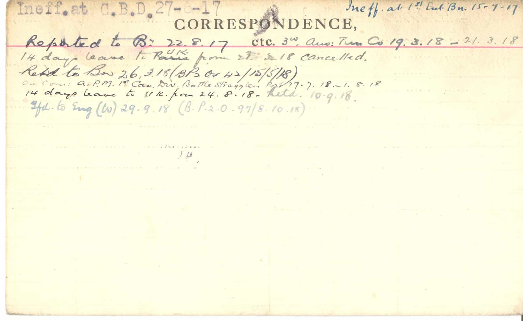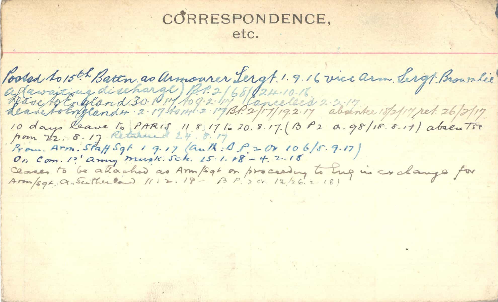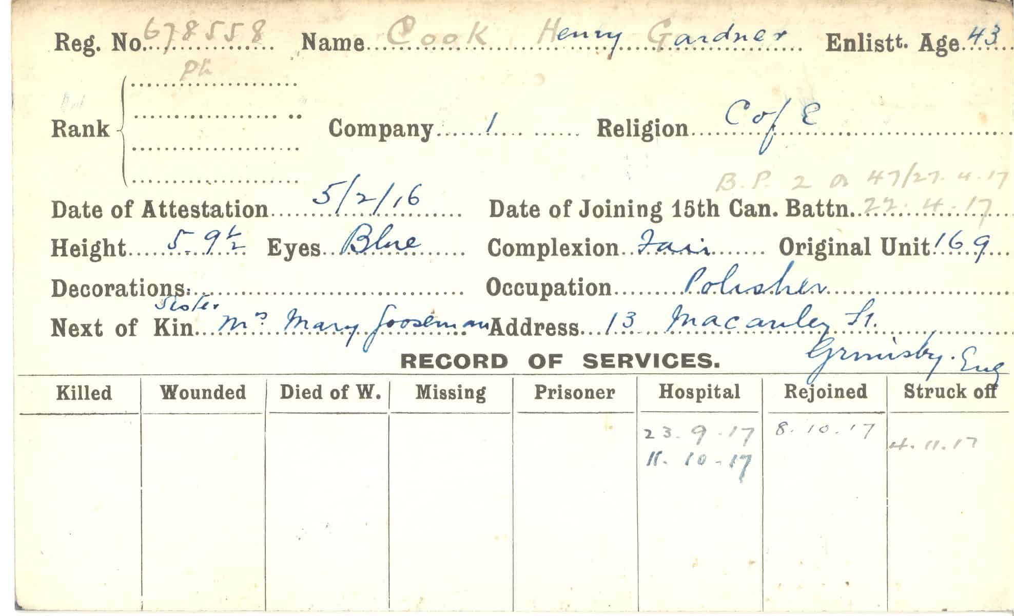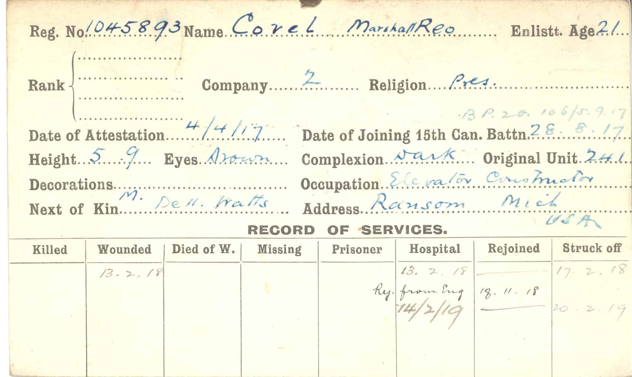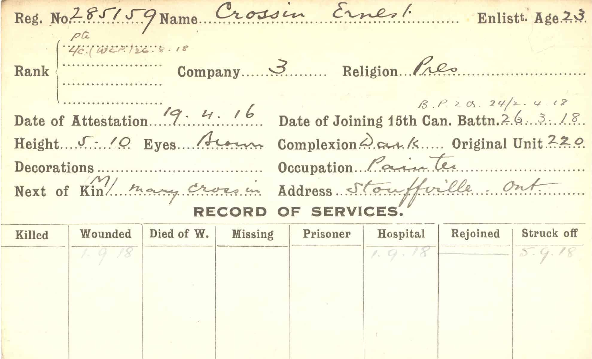 Record of Service Cards – C