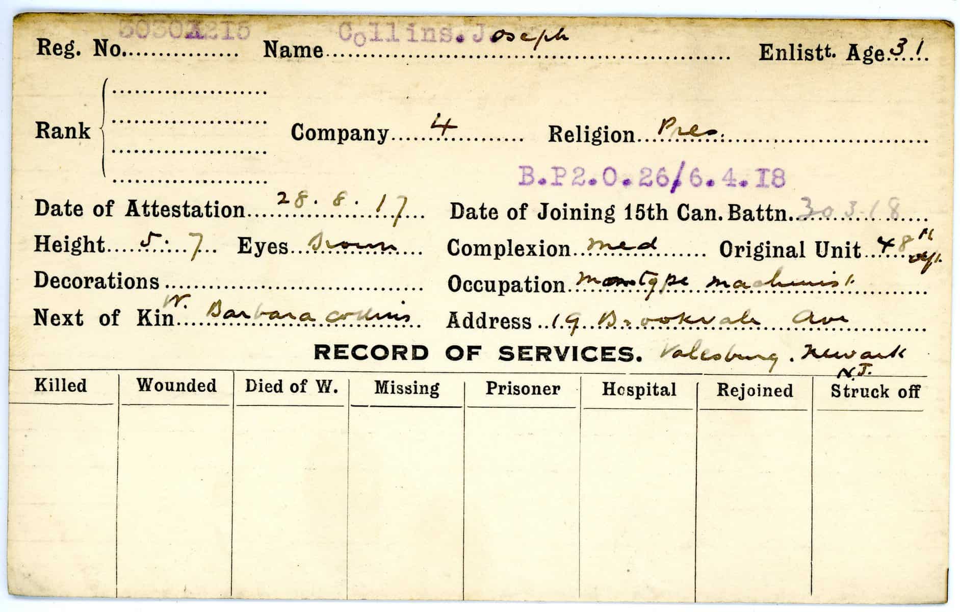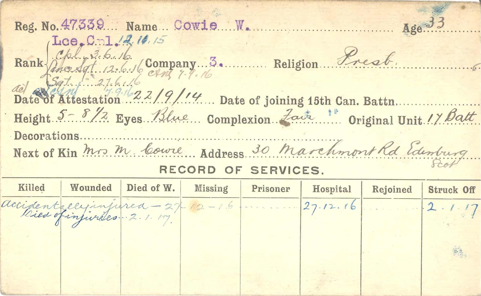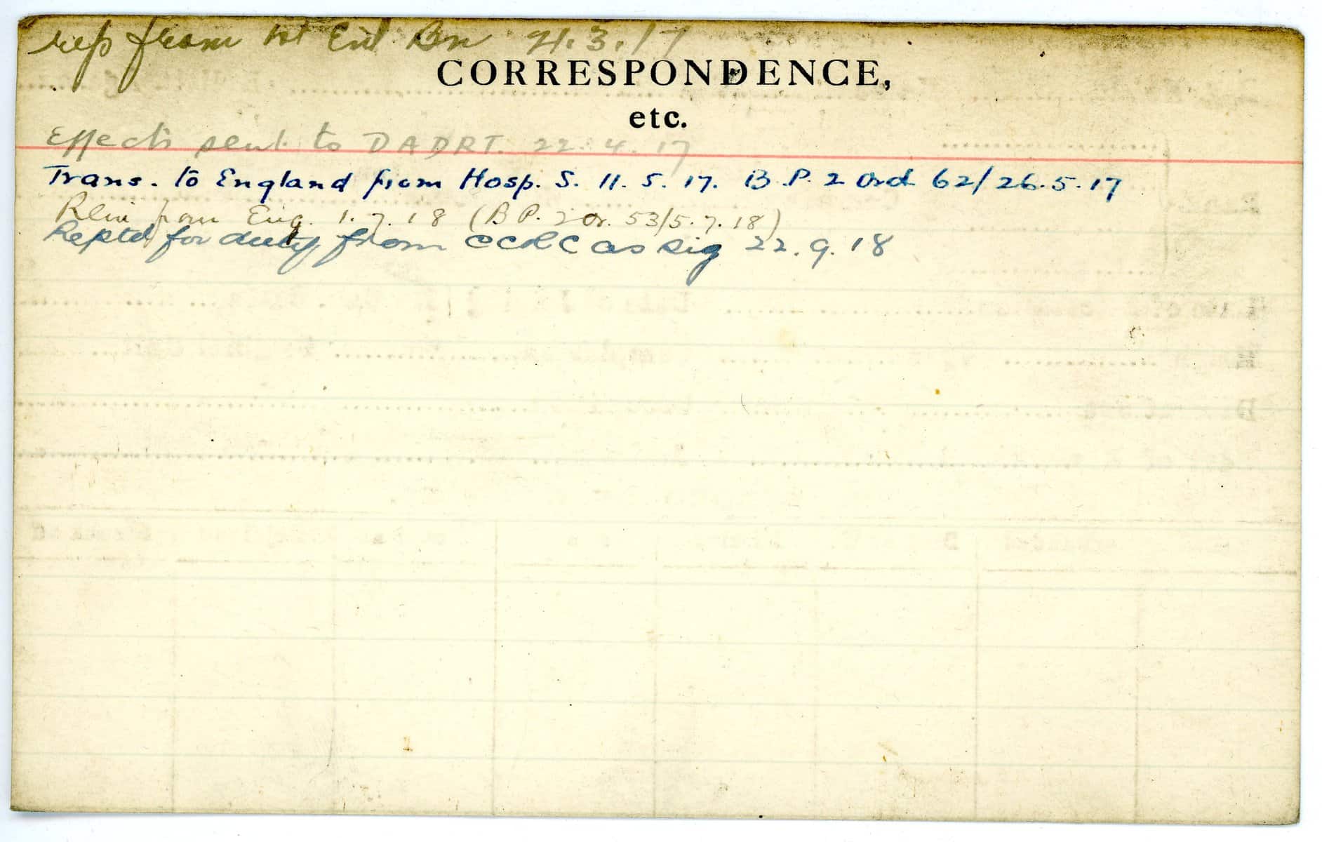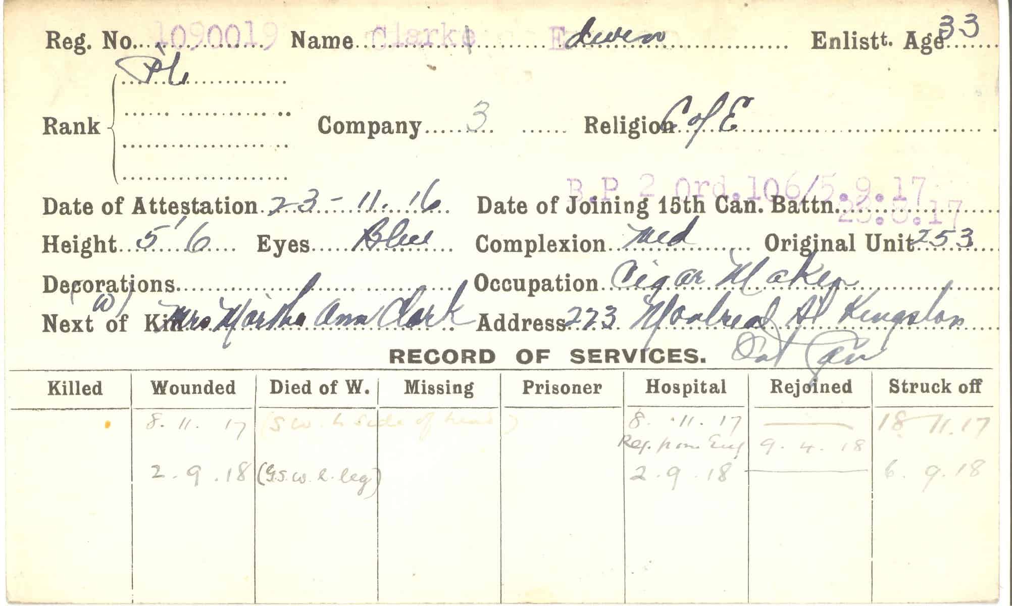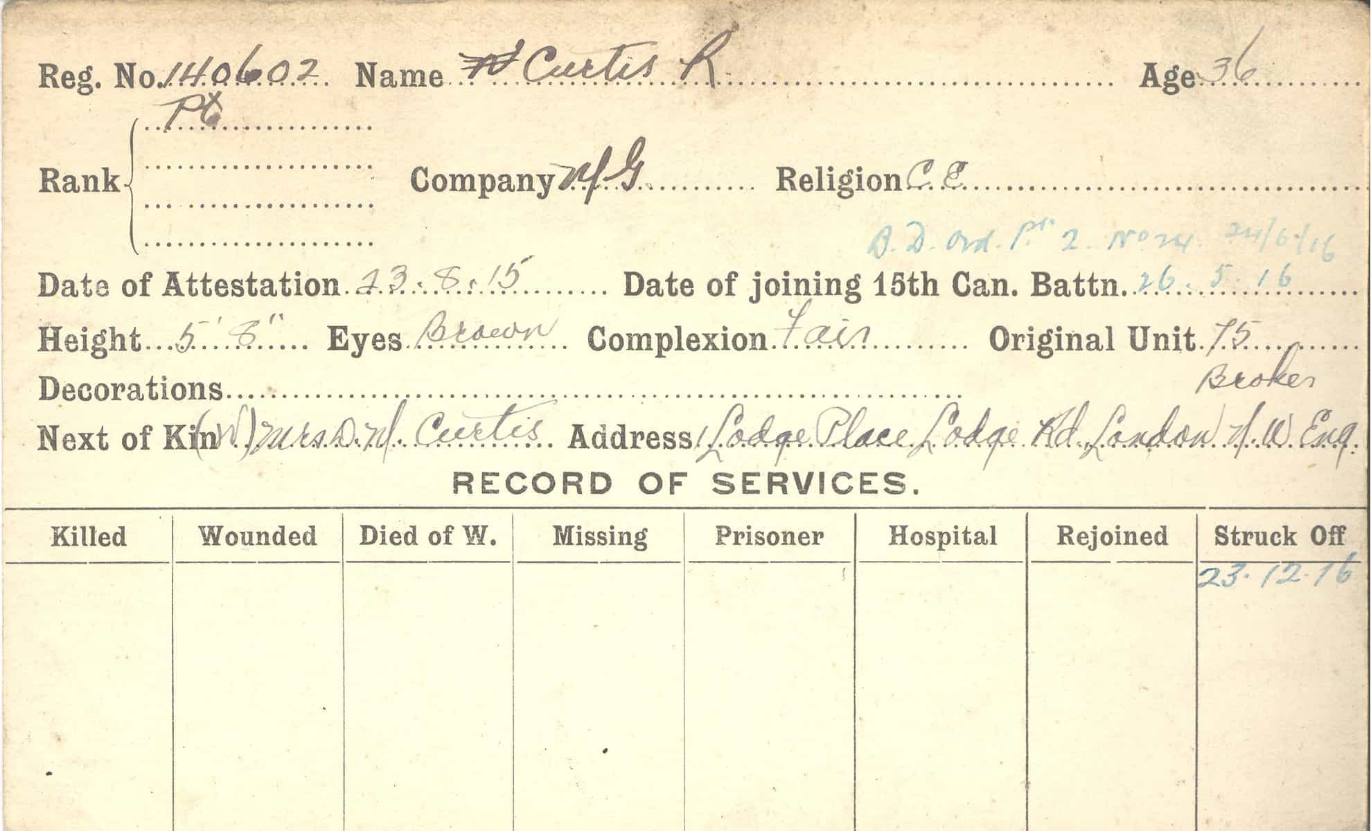 Record of Service Cards – C