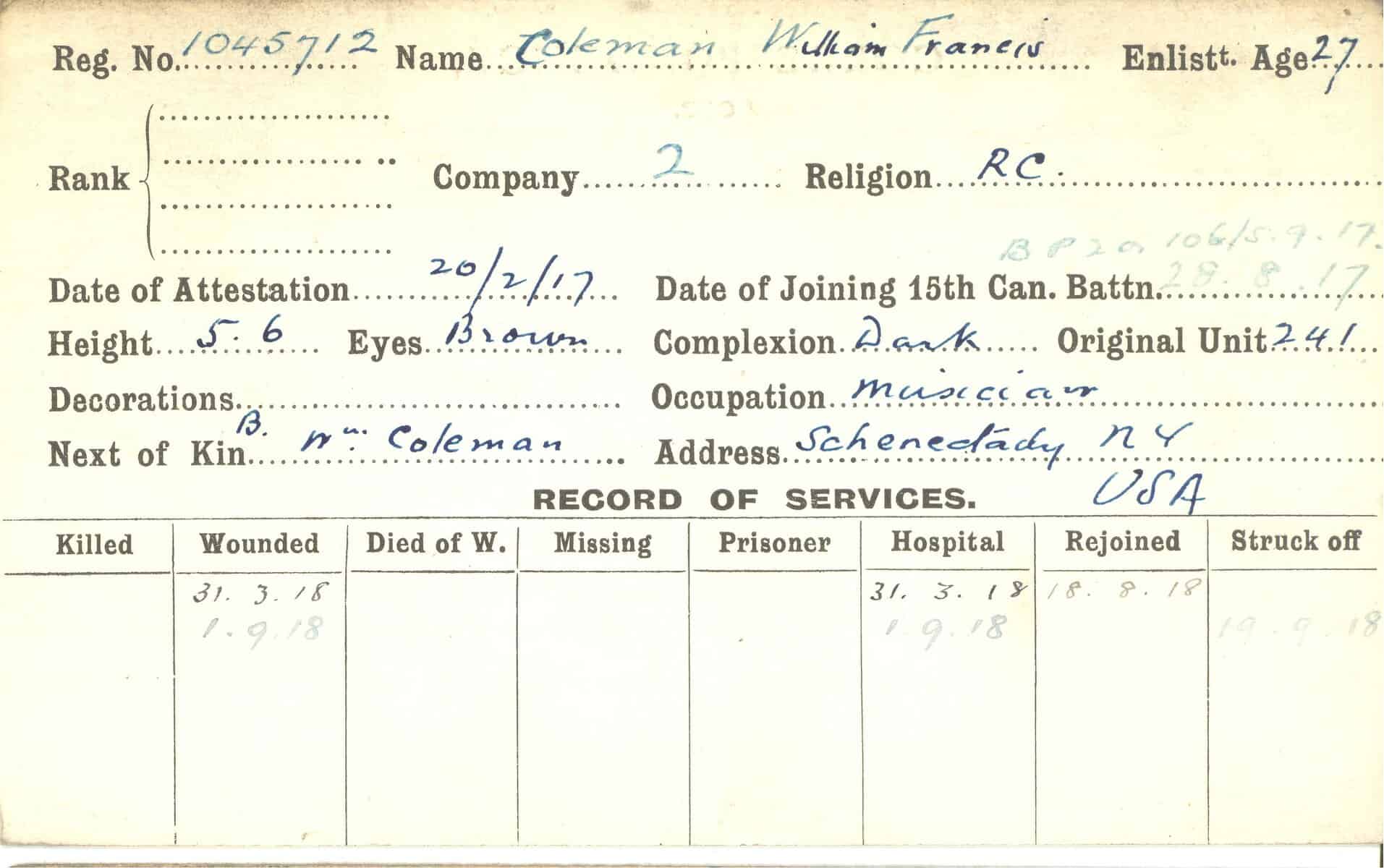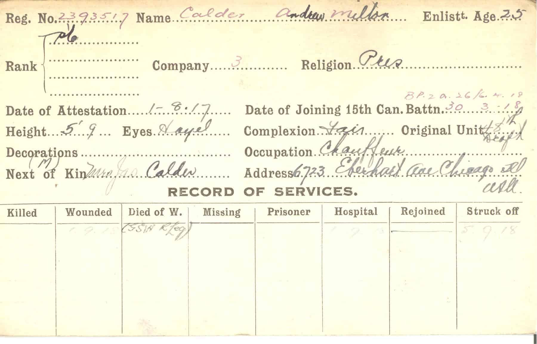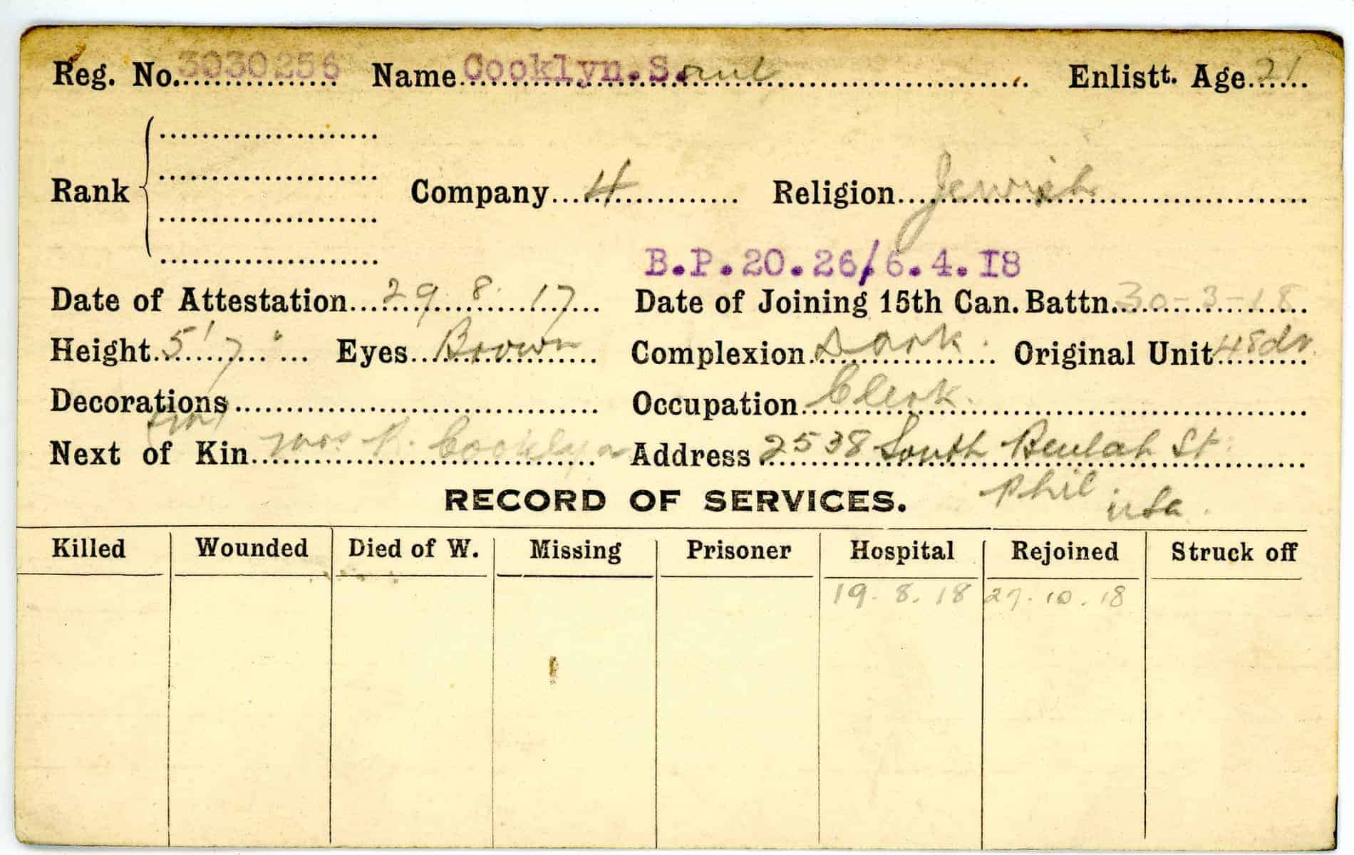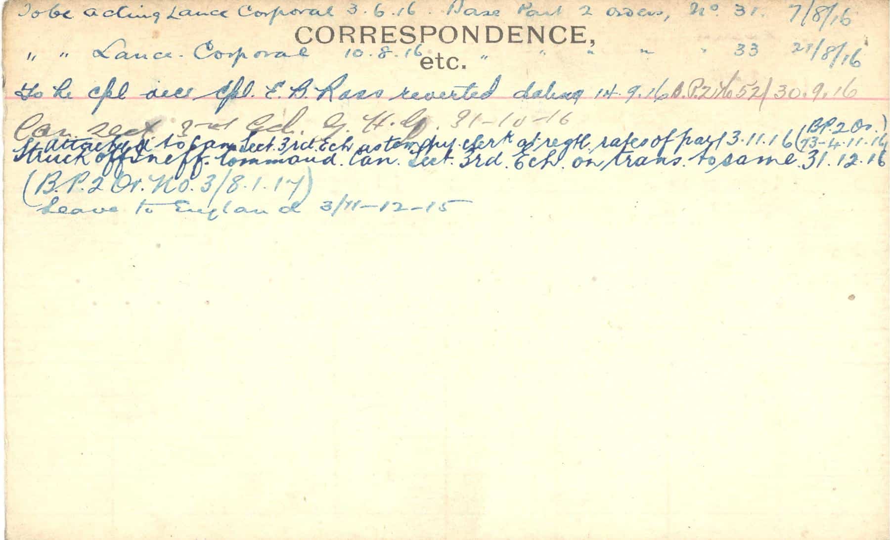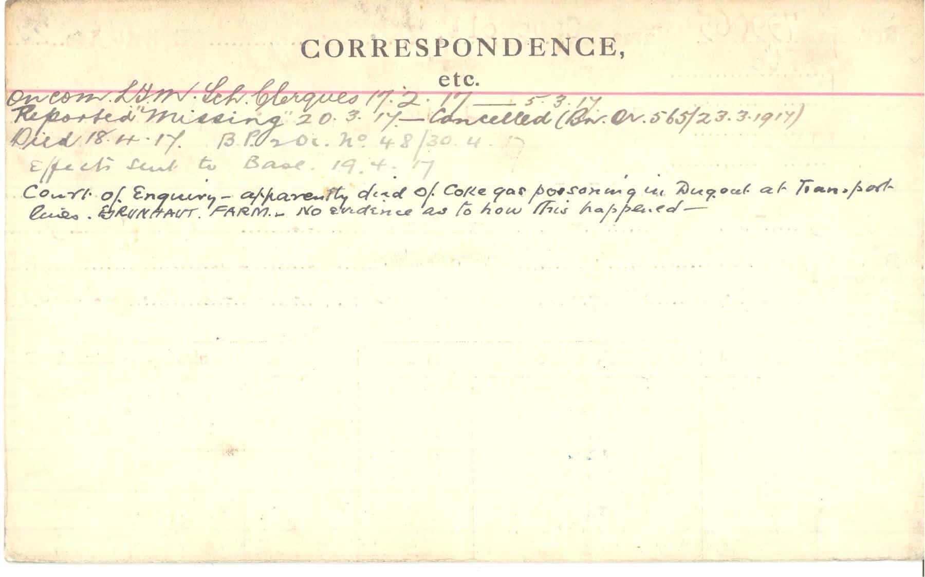 Record of Service Cards – C