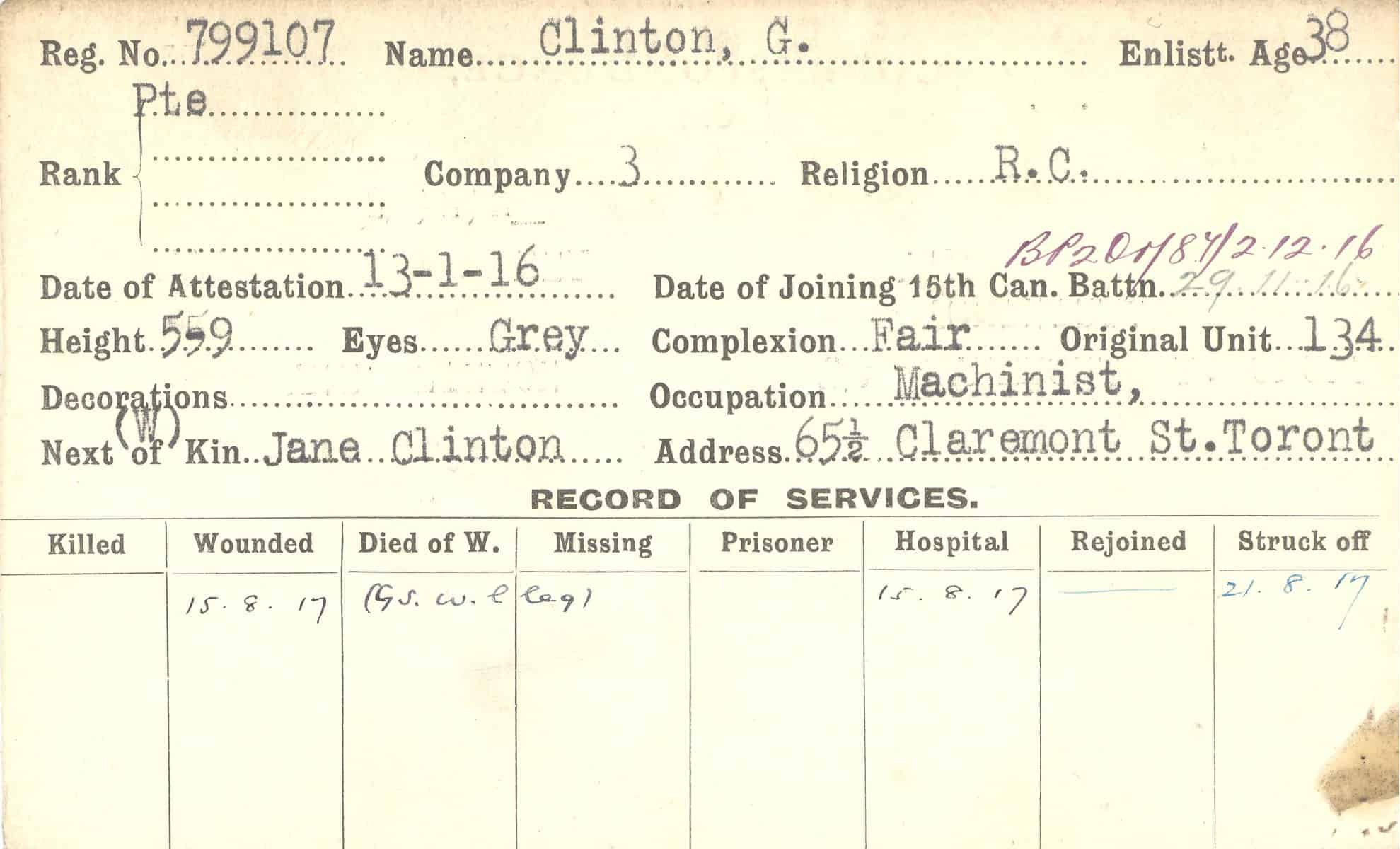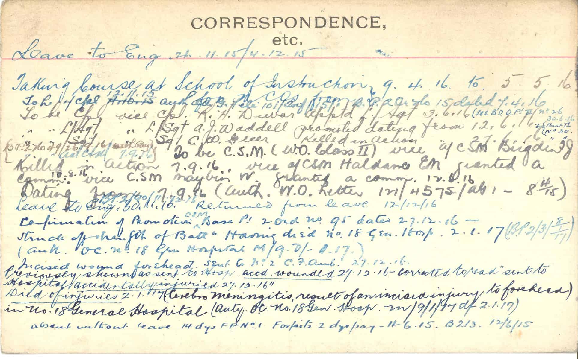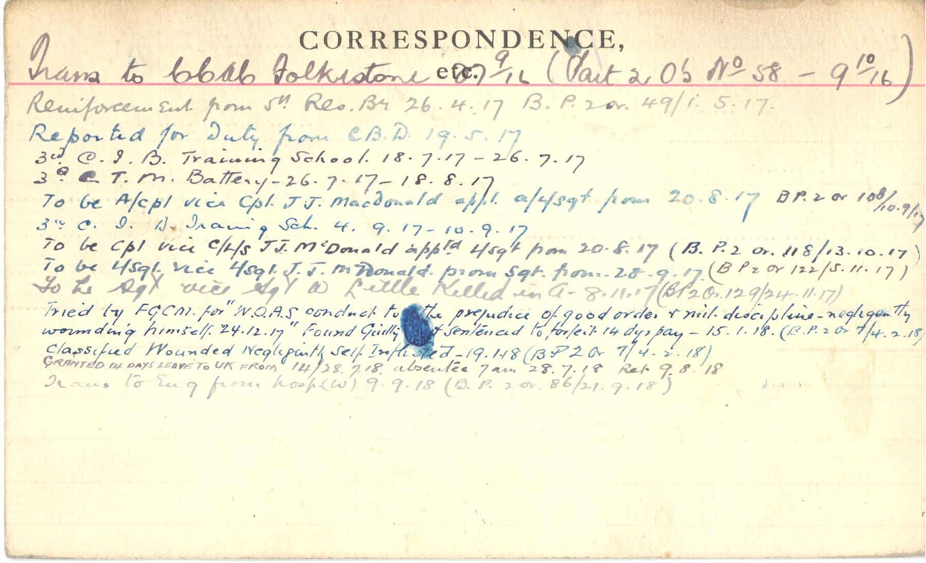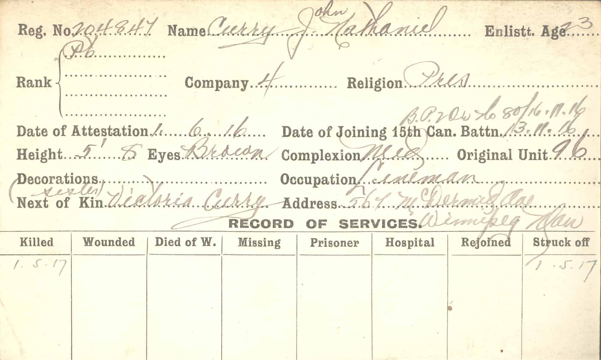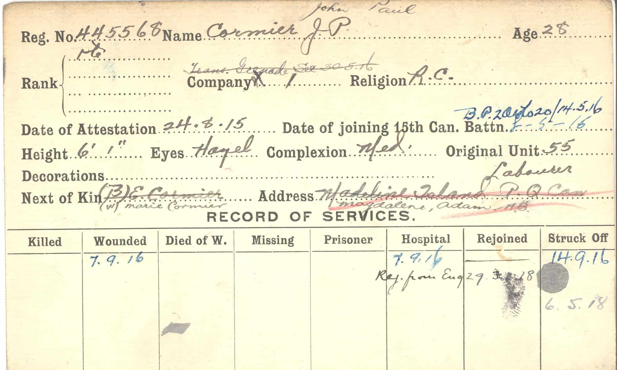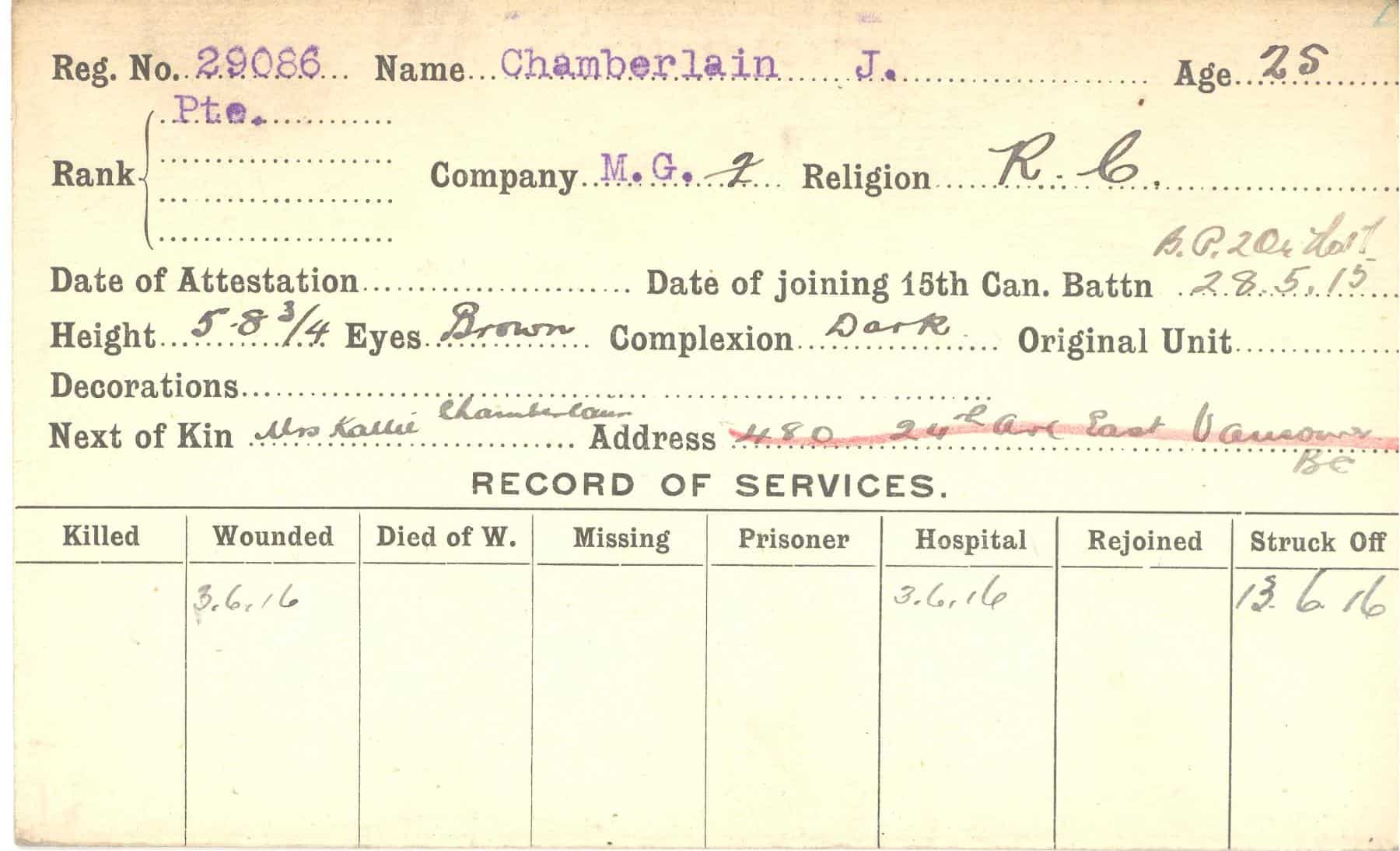 Record of Service Cards – C