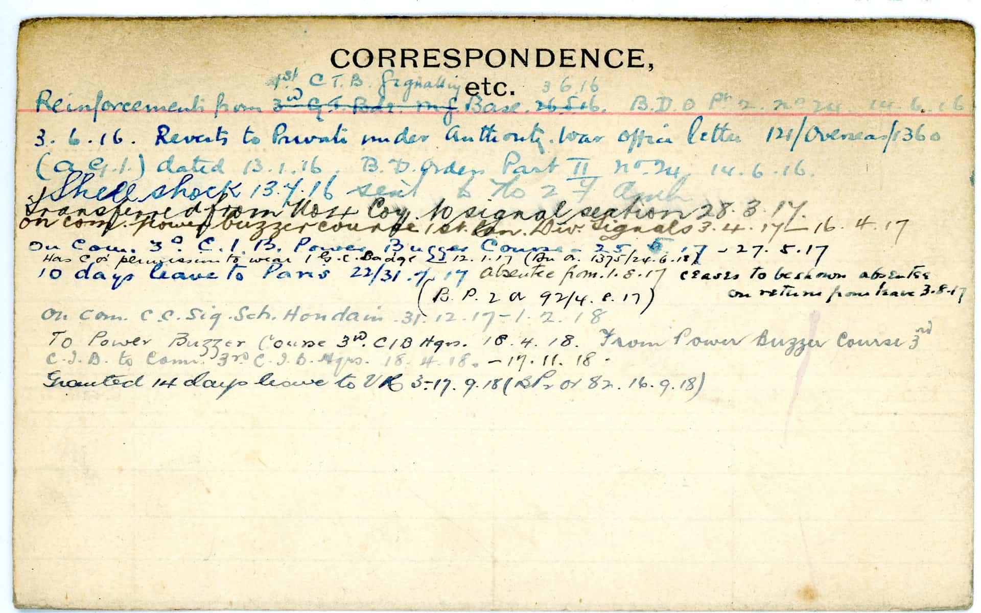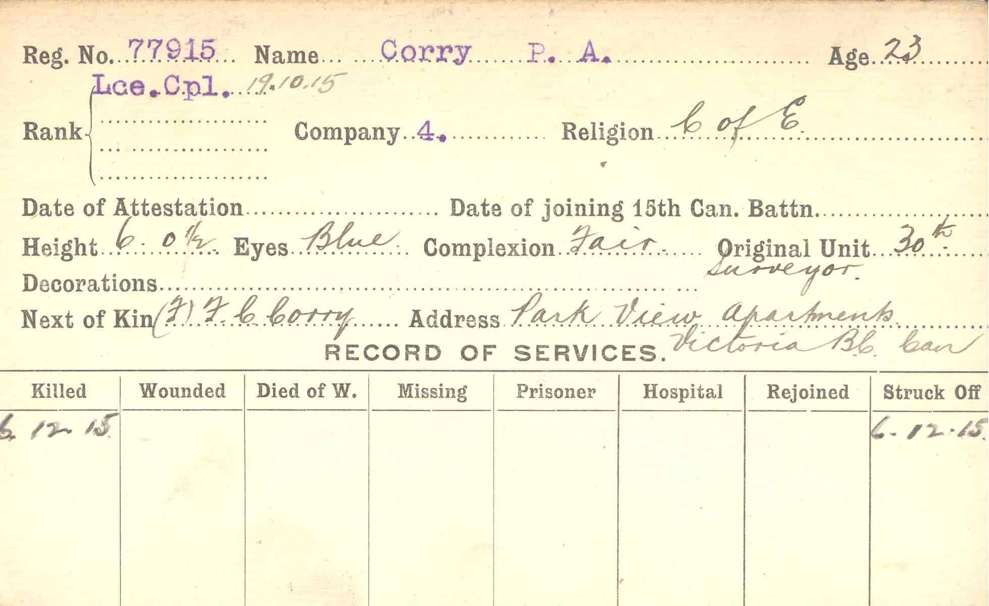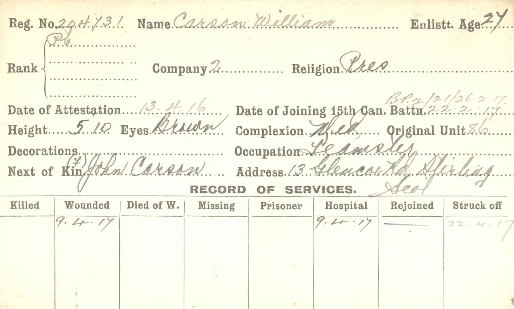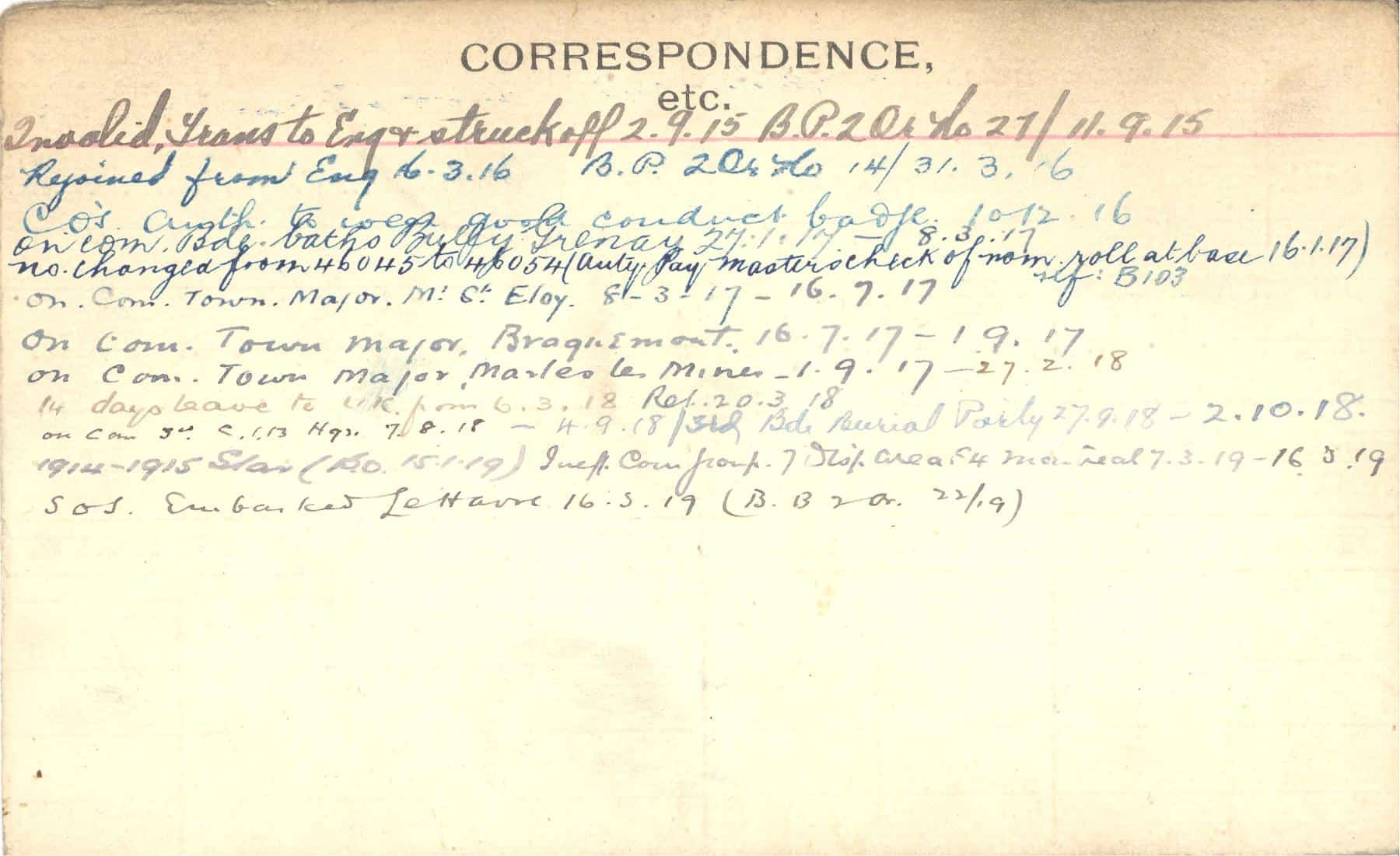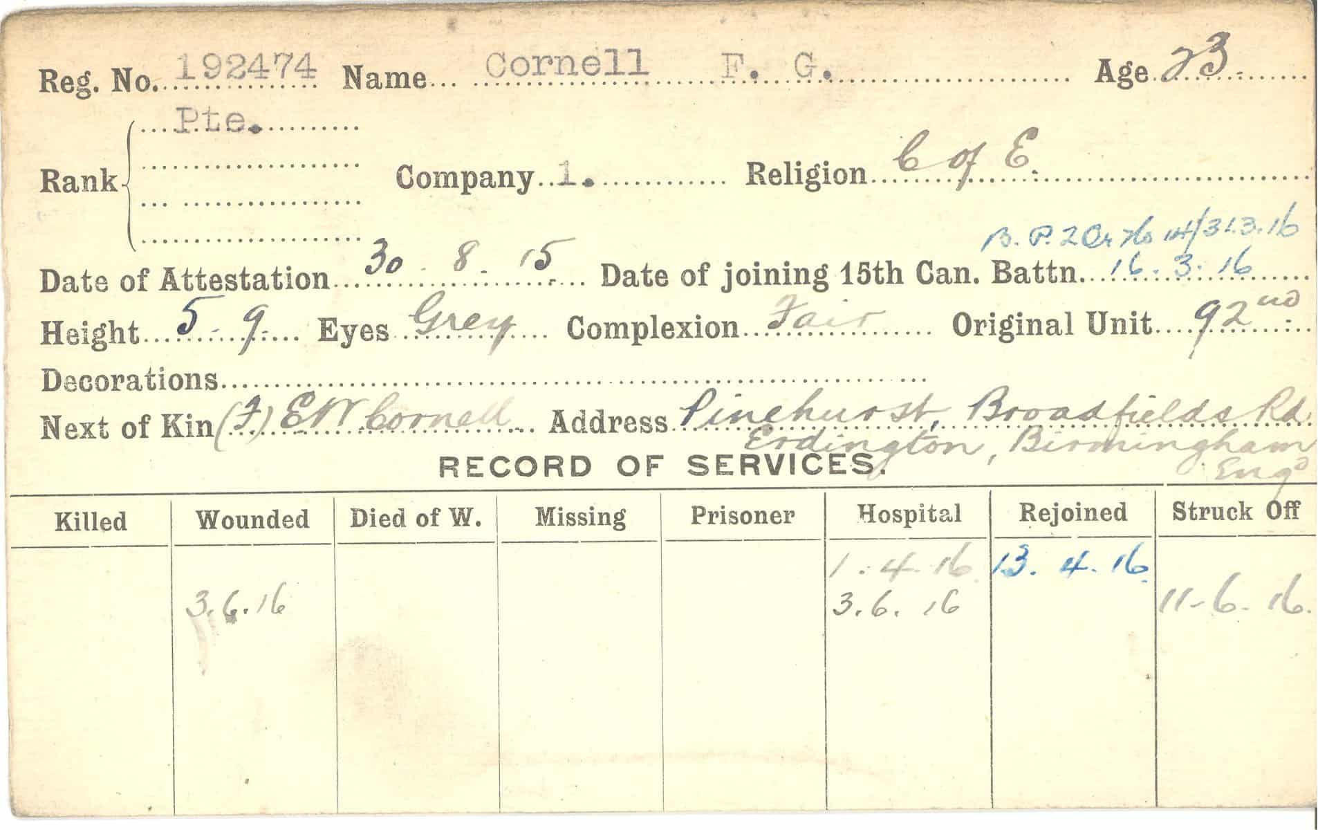 Record of Service Cards – C
