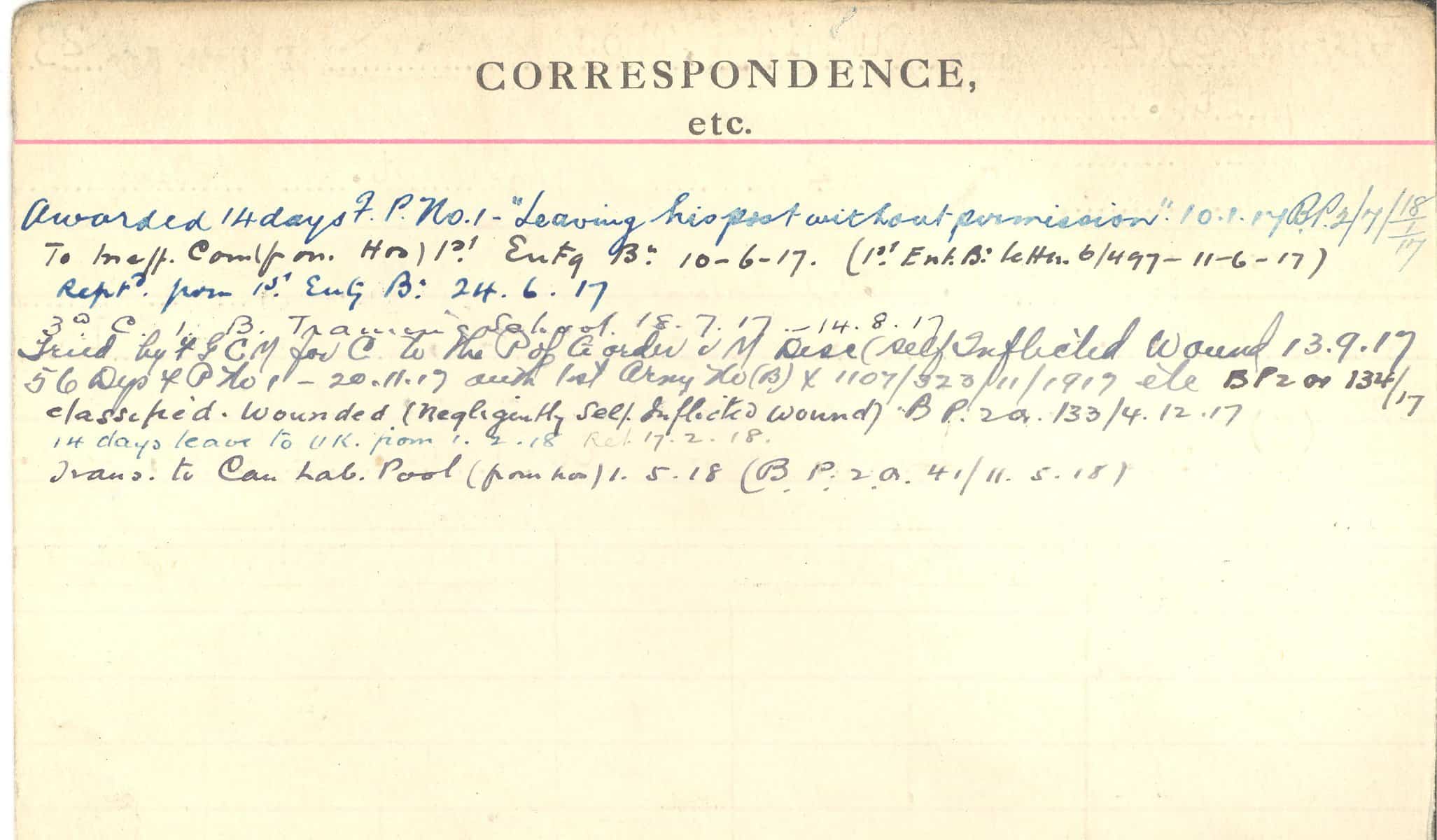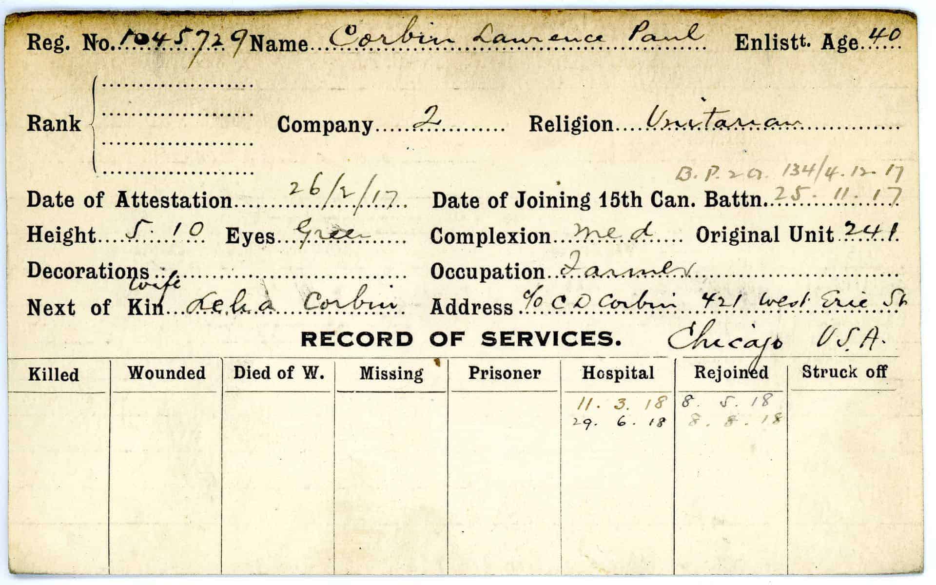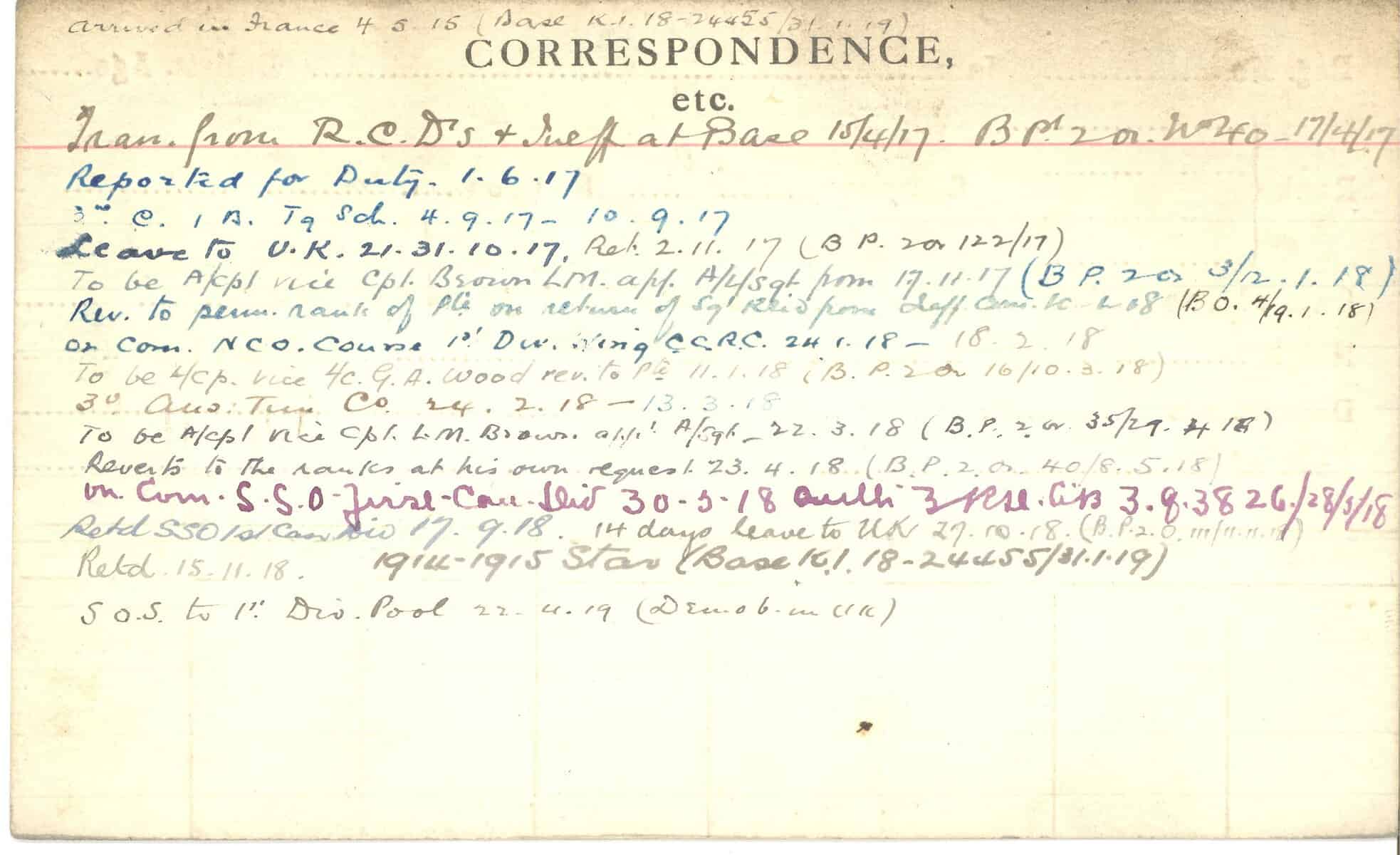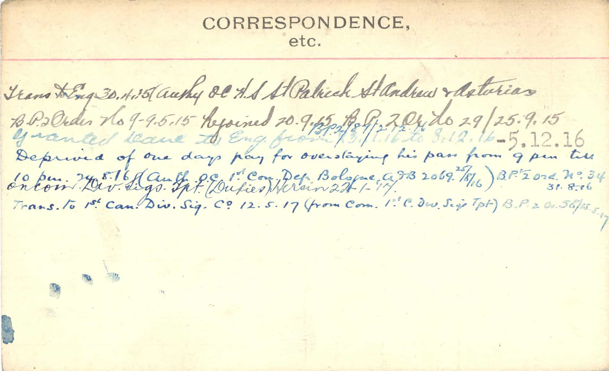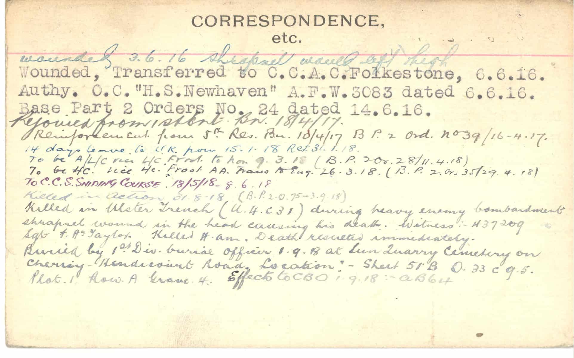 Record of Service Cards – C