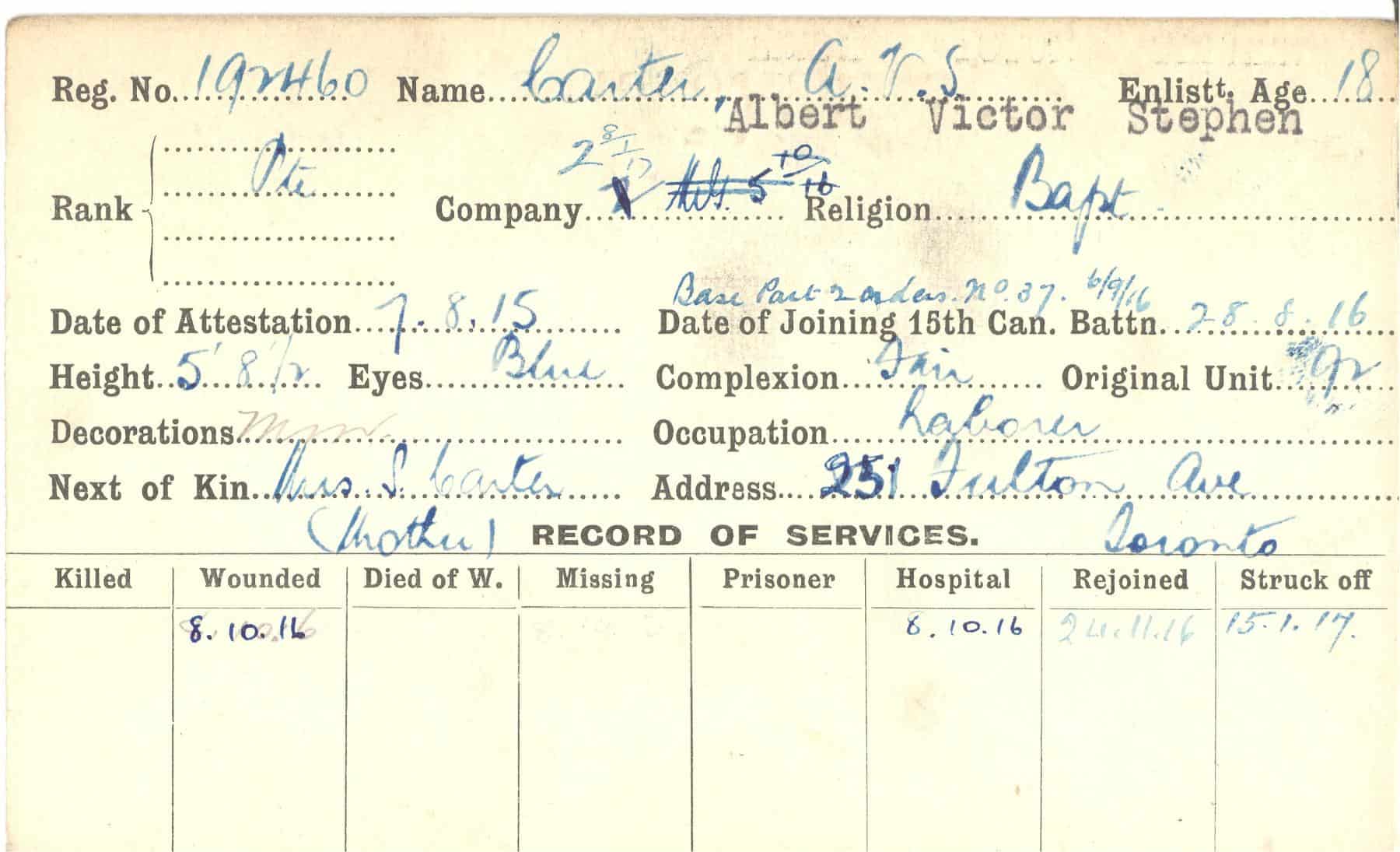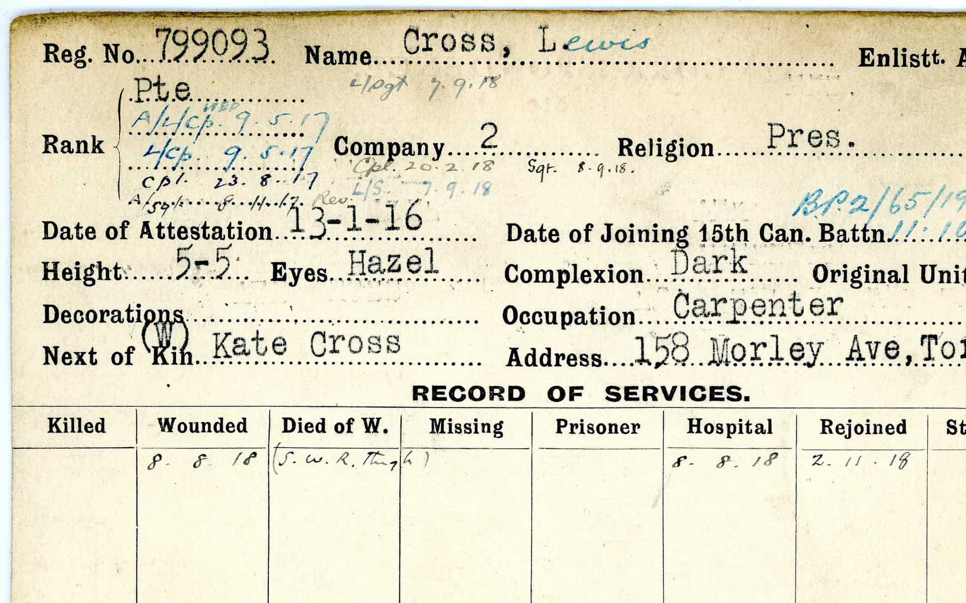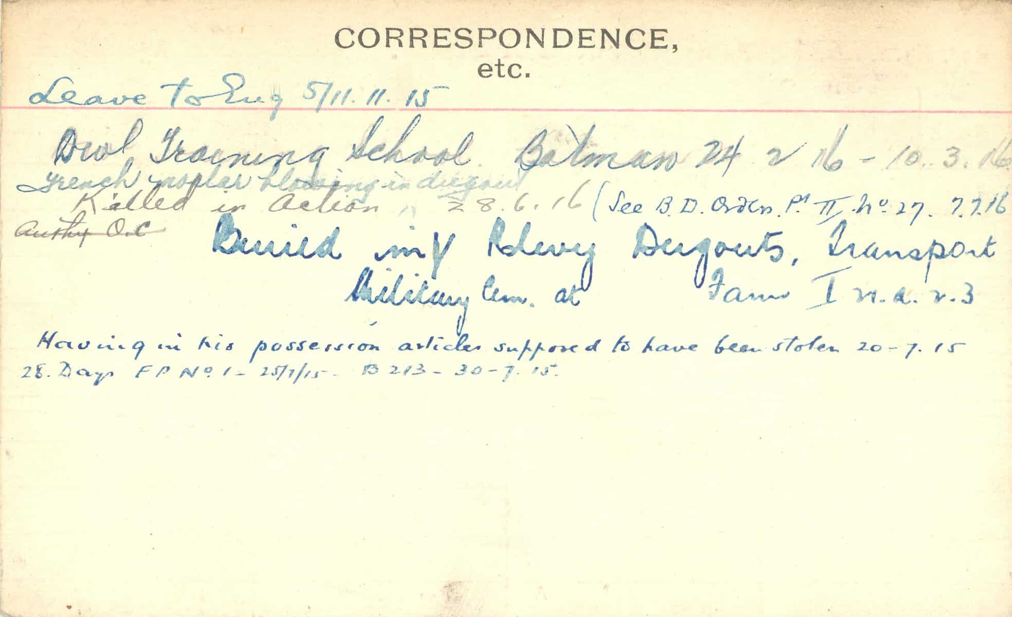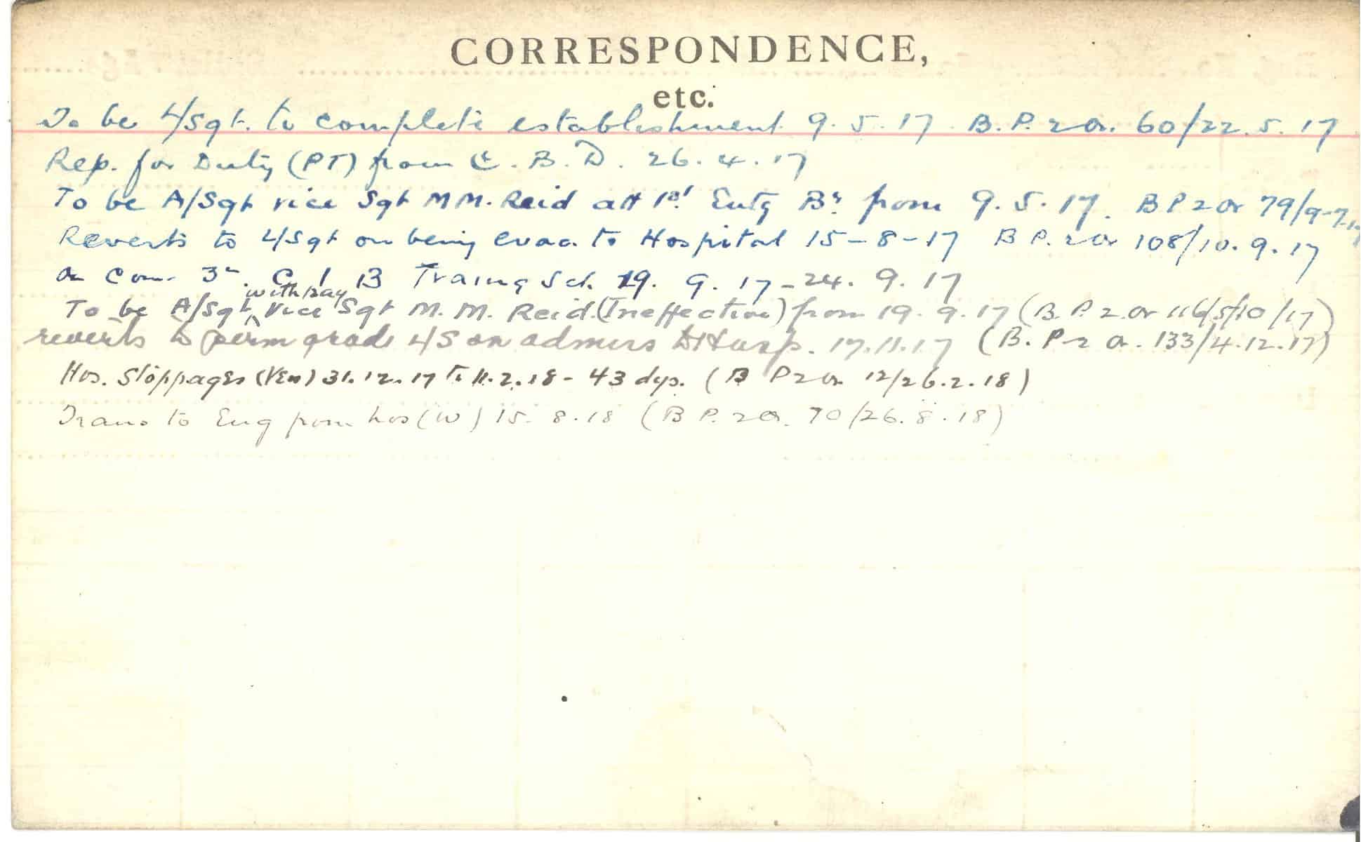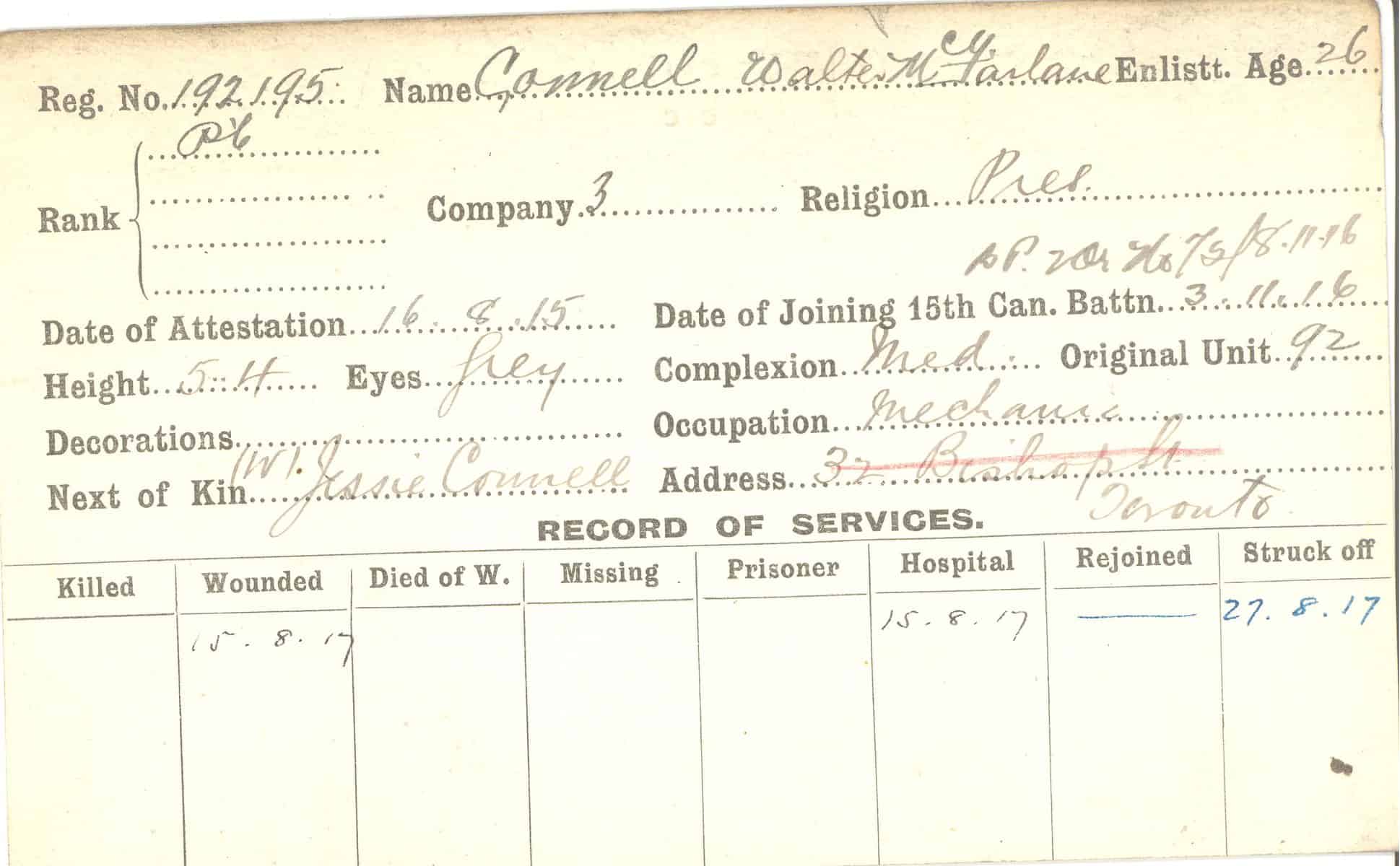 Record of Service Cards – C