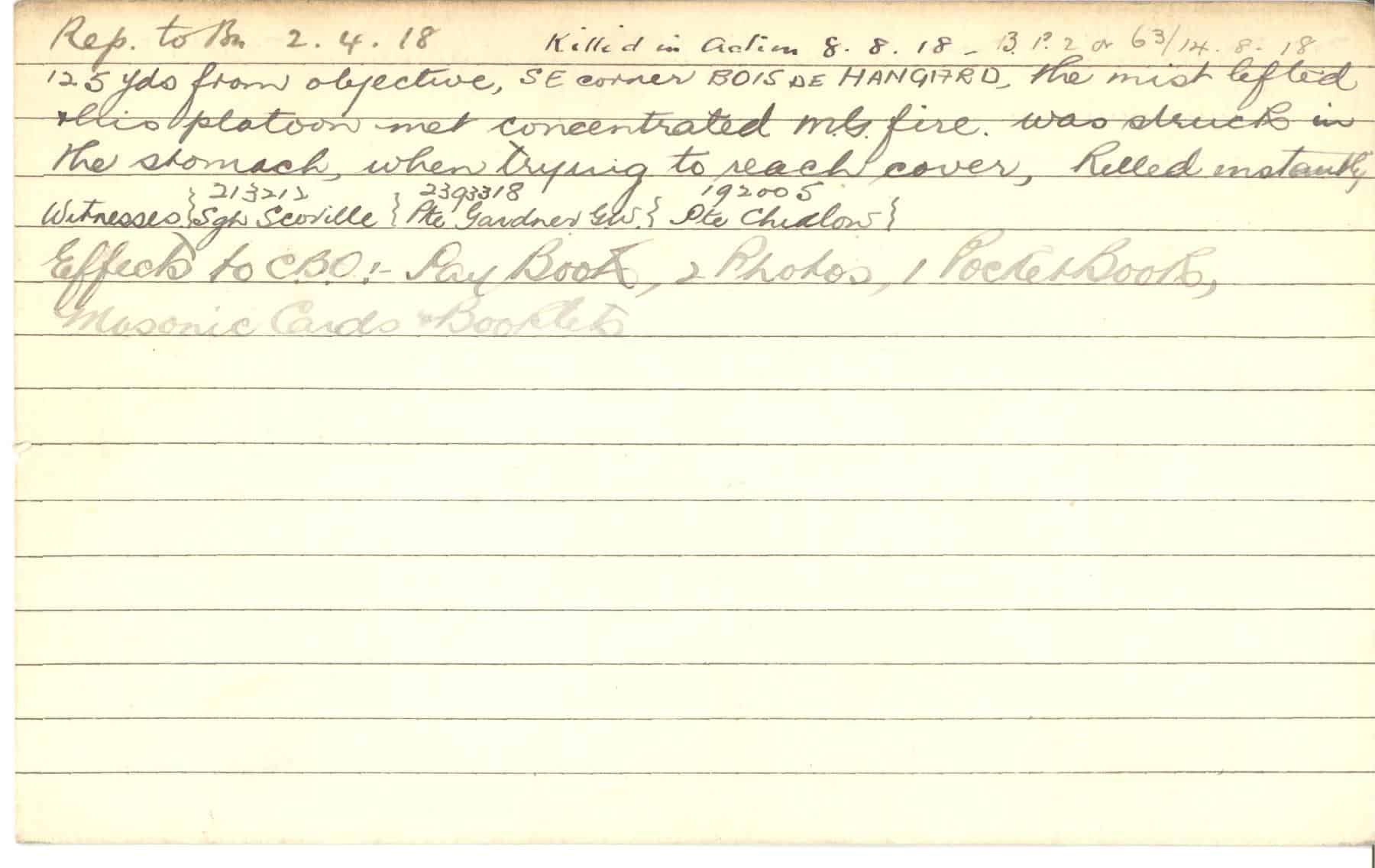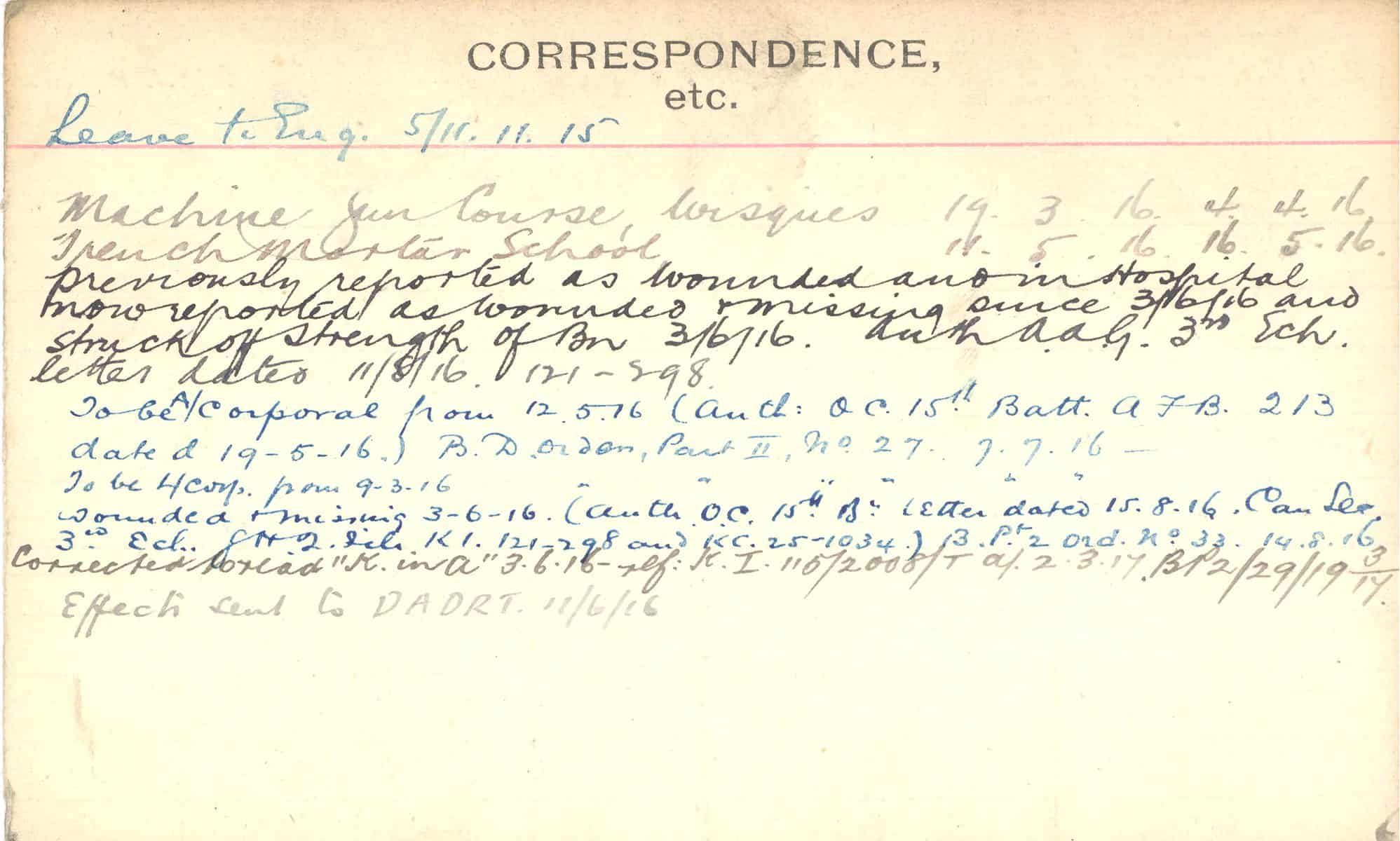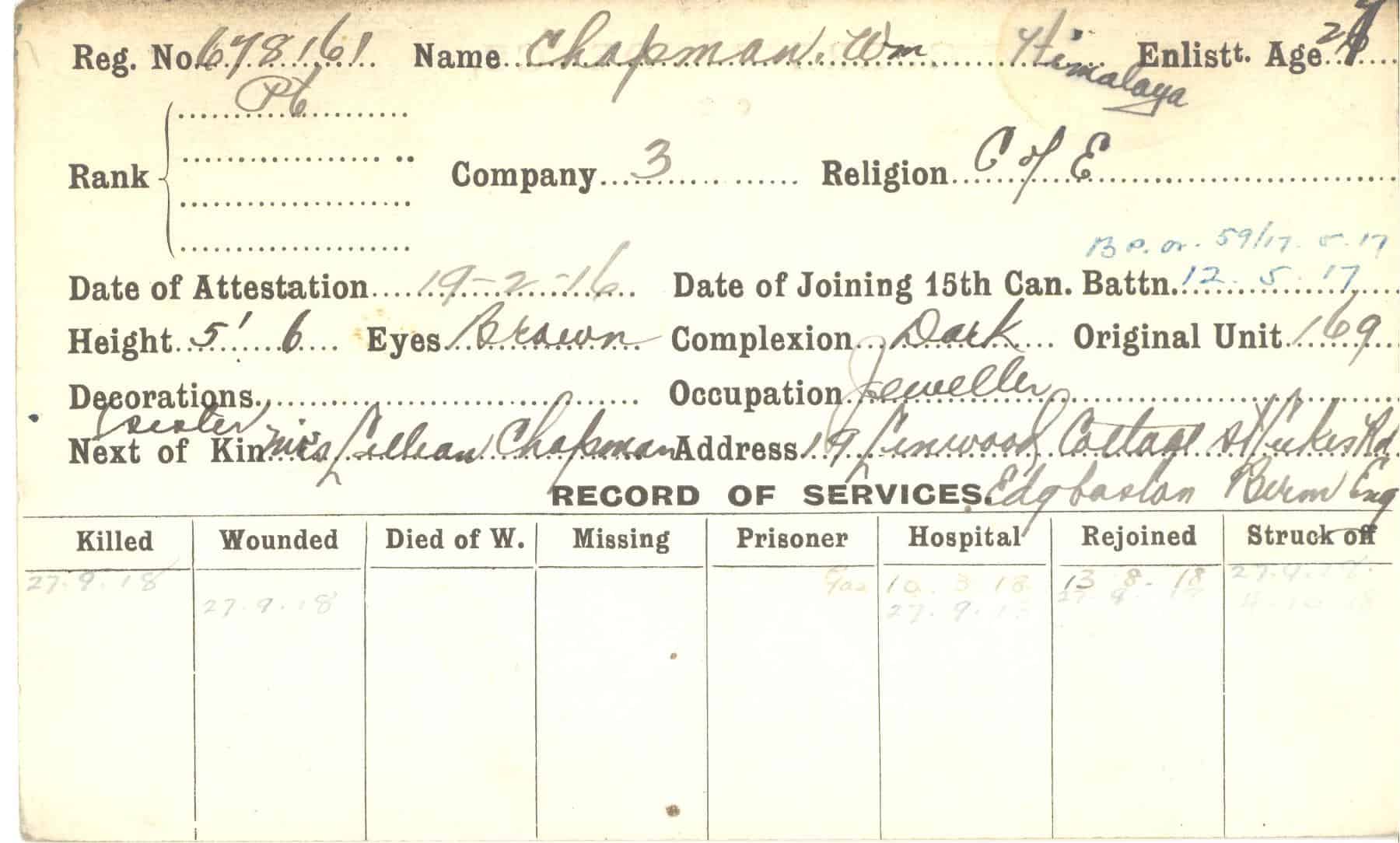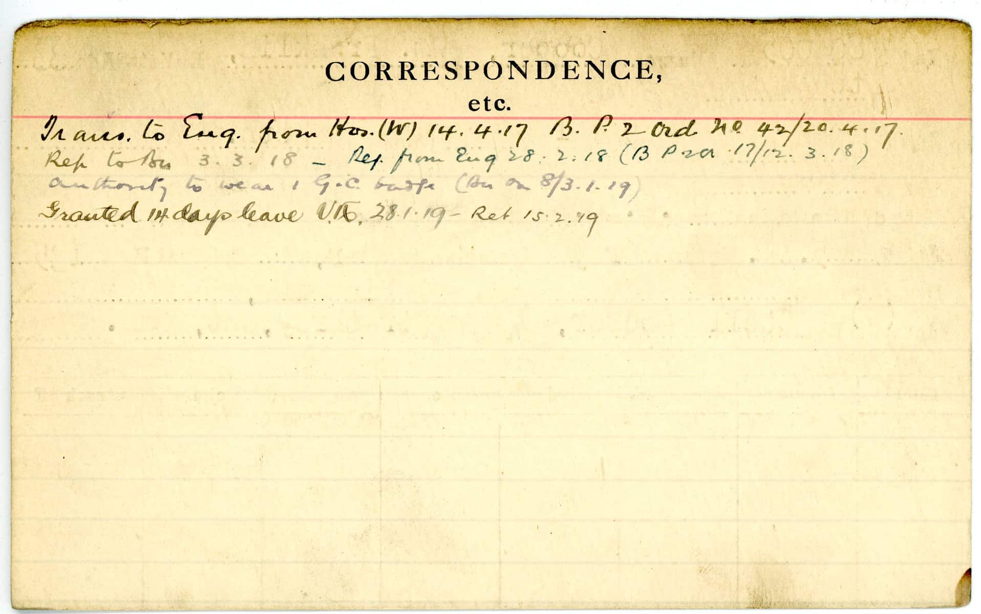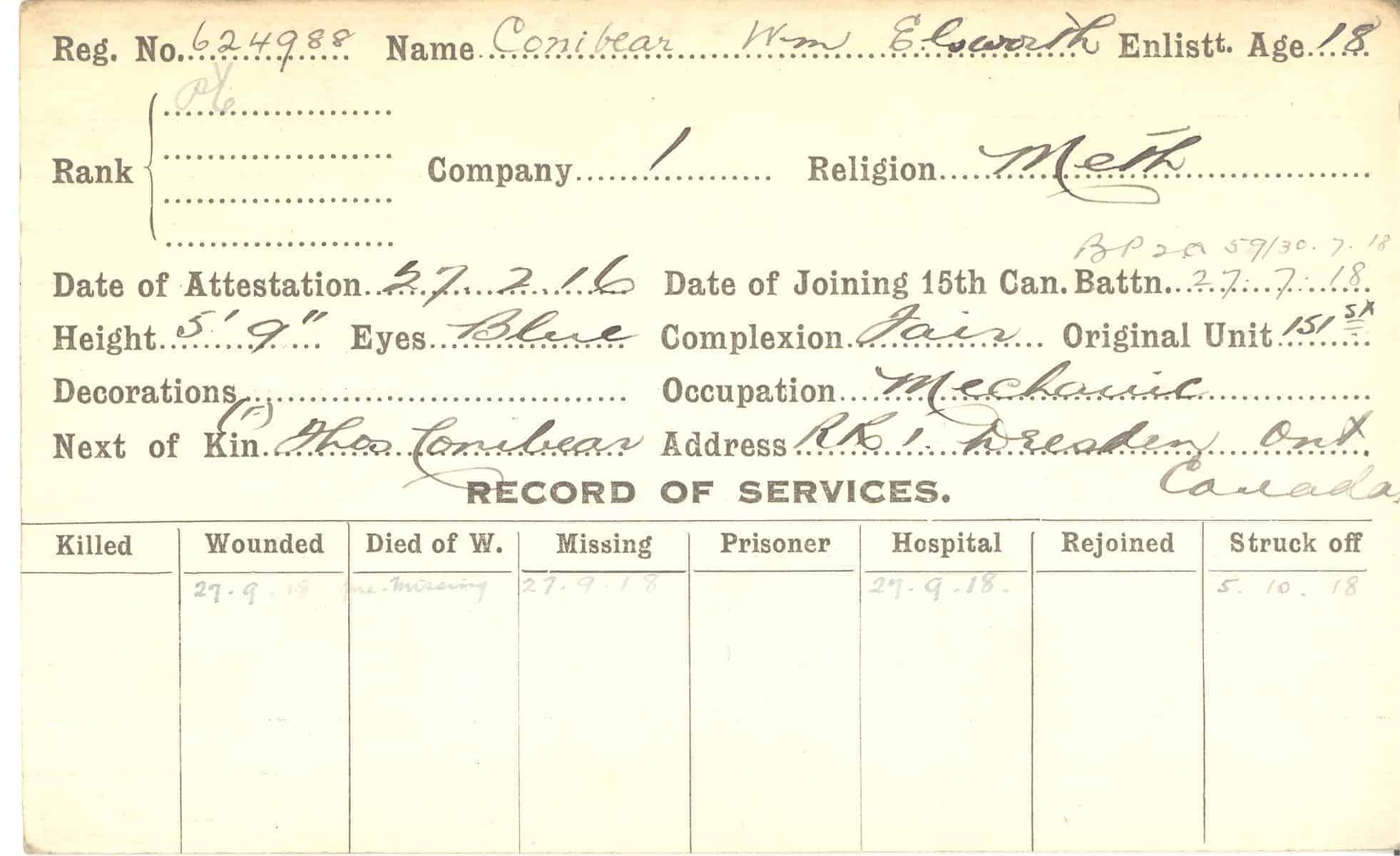 Record of Service Cards – C