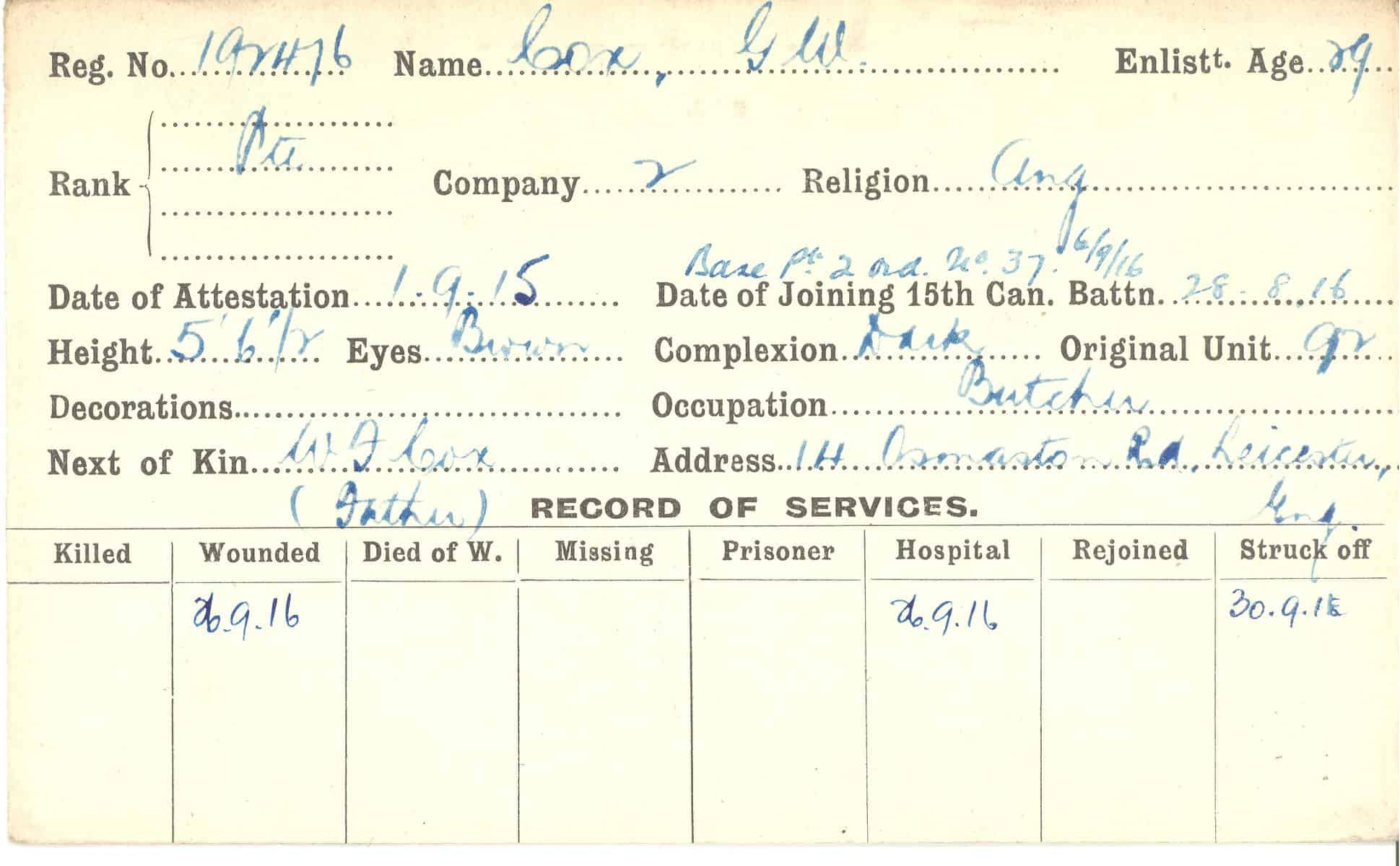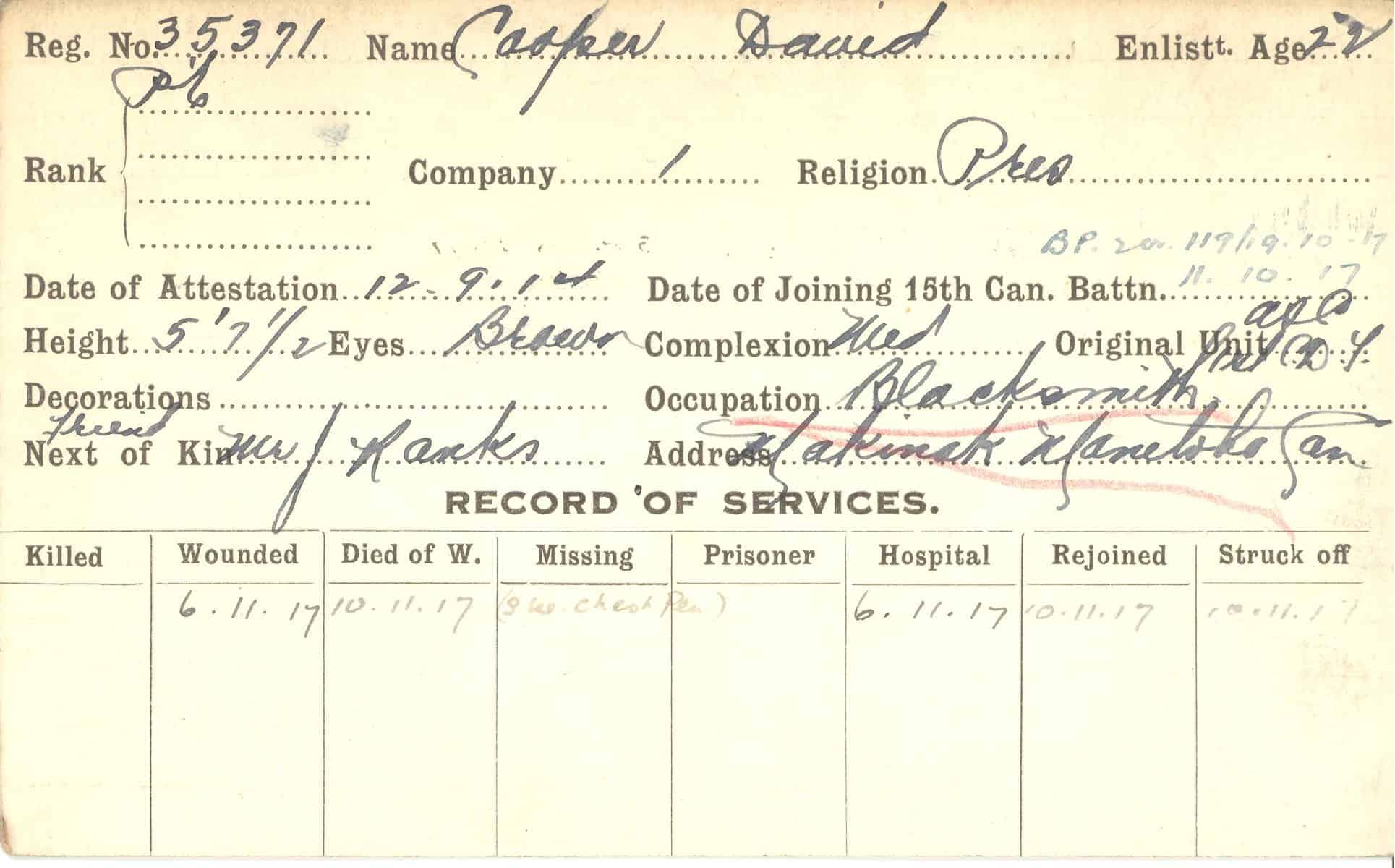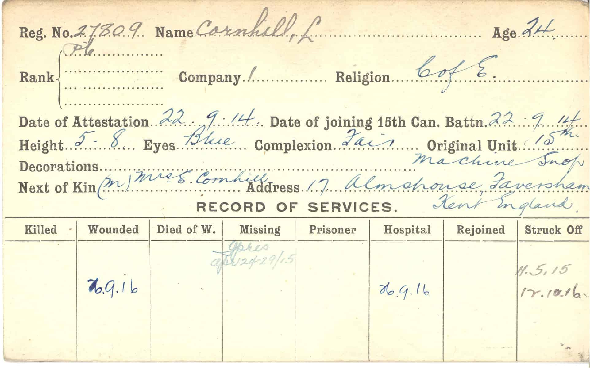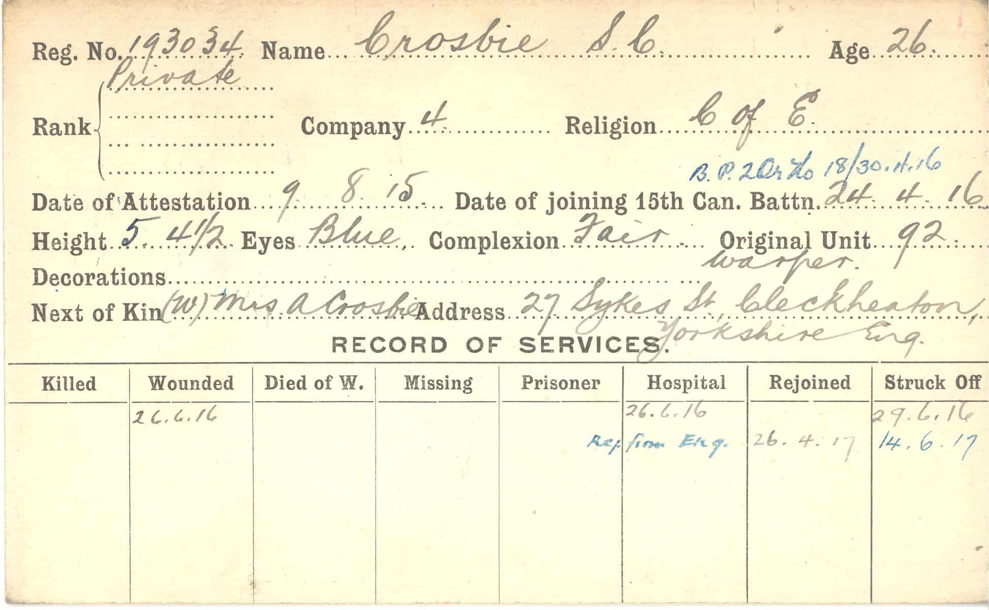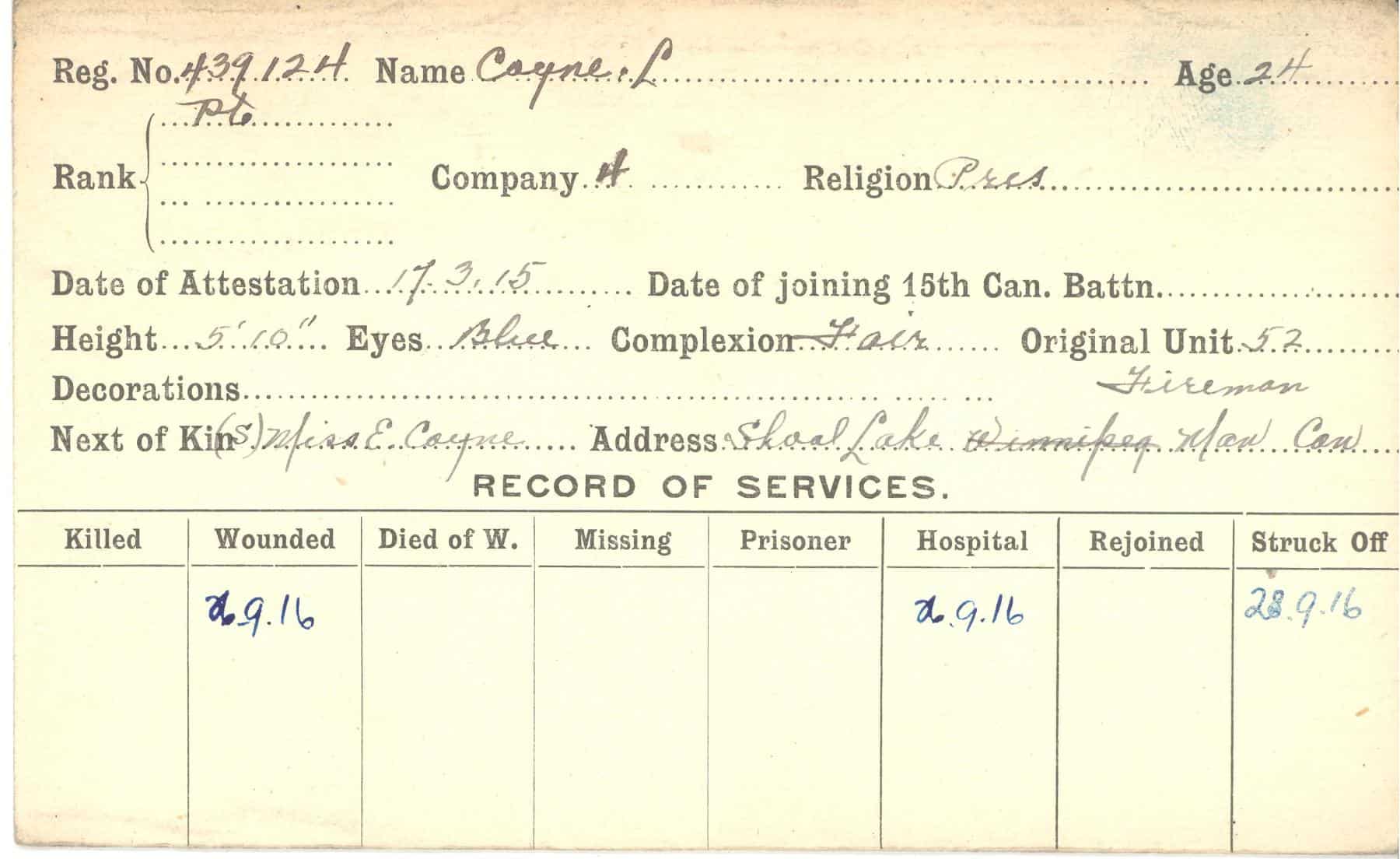 Record of Service Cards – C