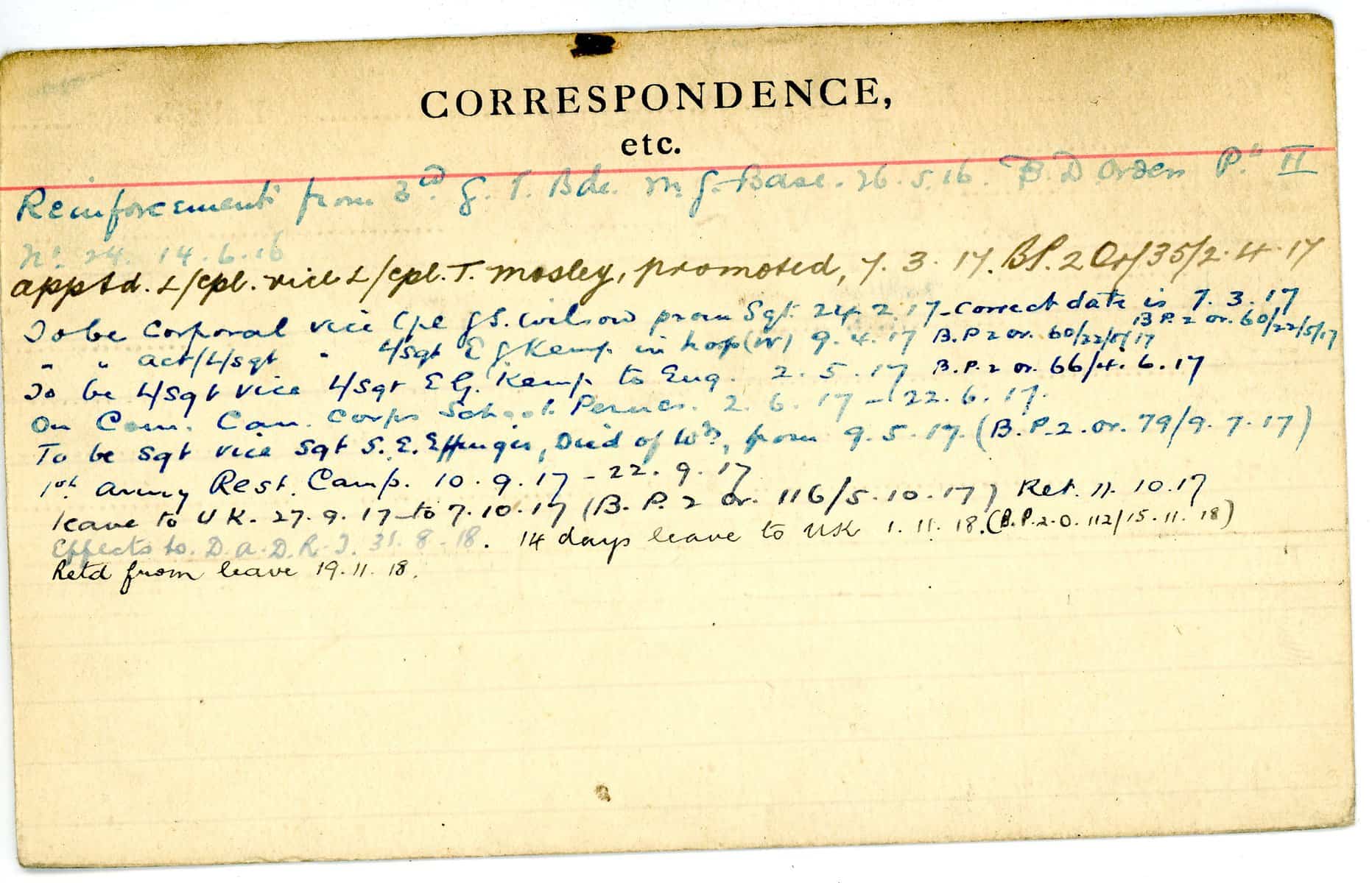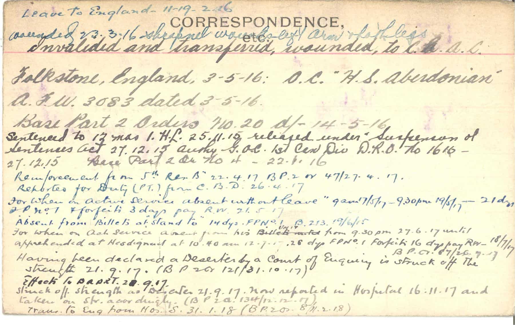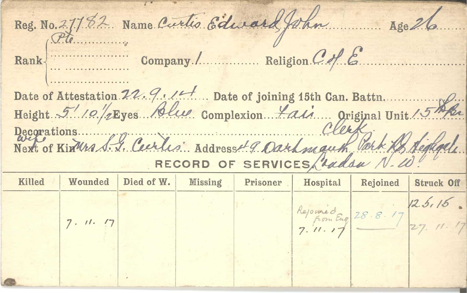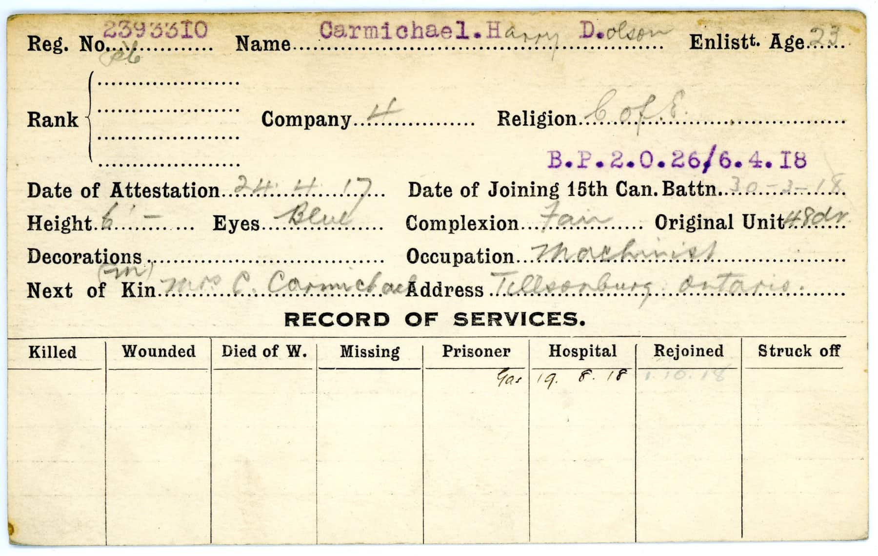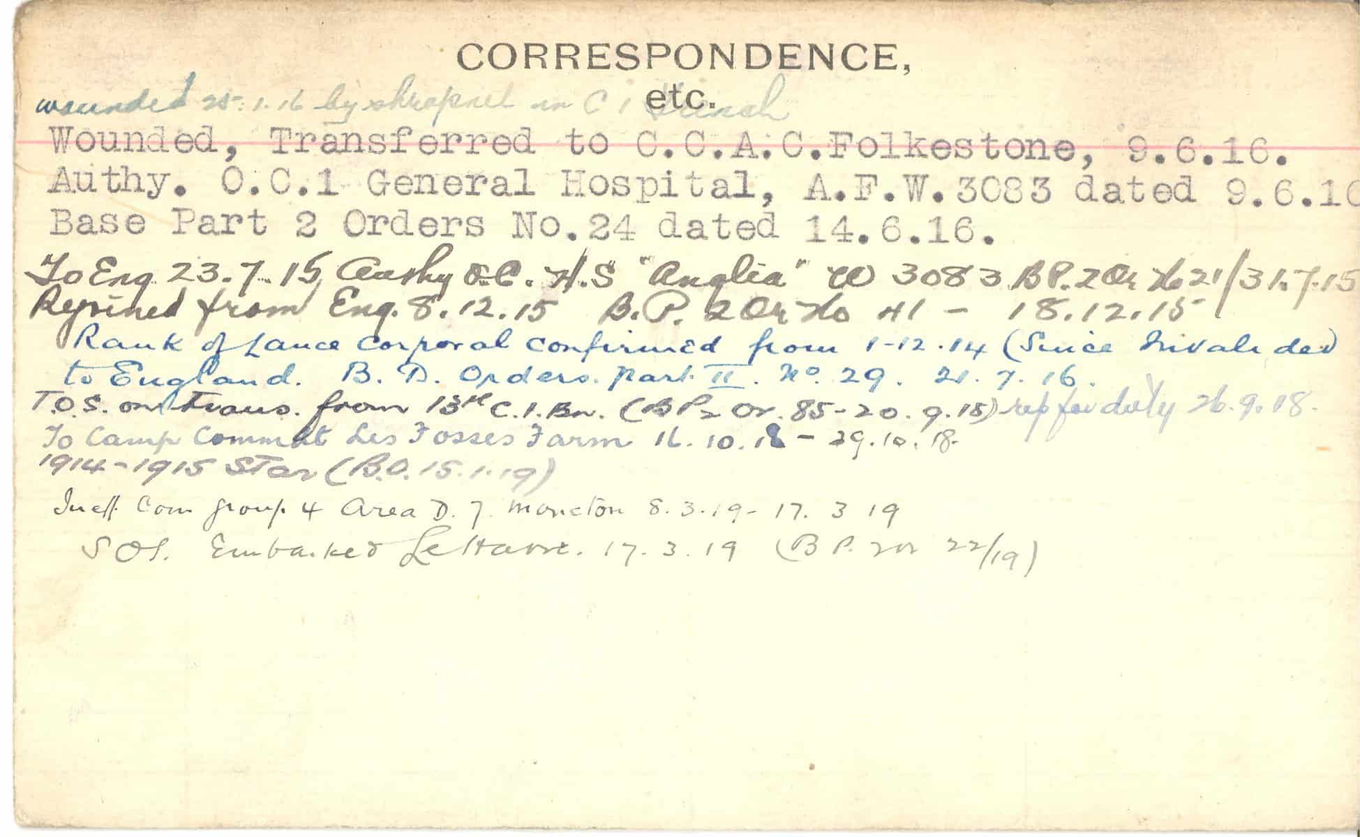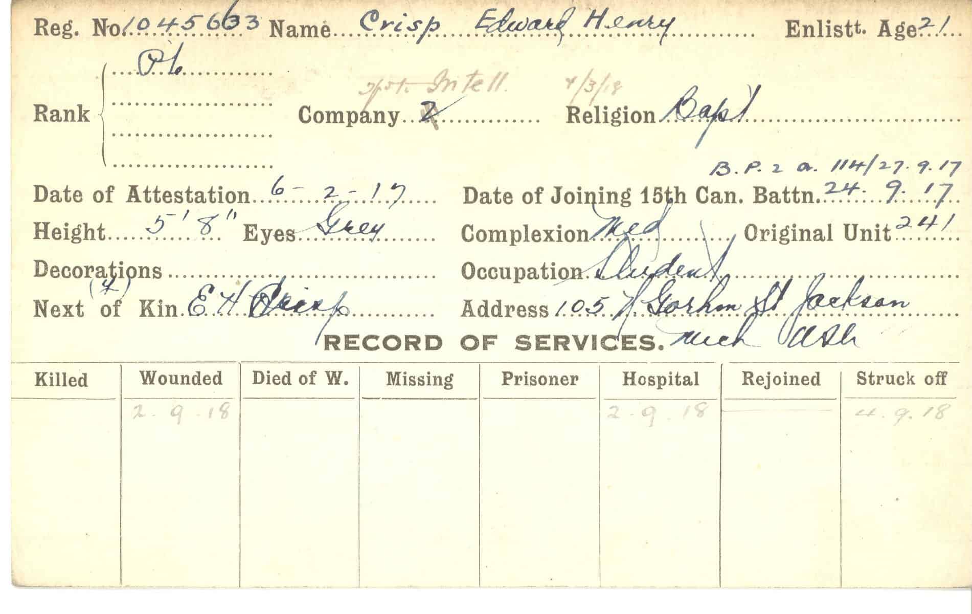 Record of Service Cards – C
