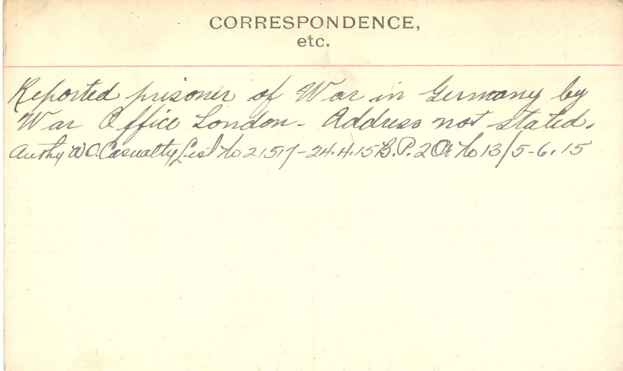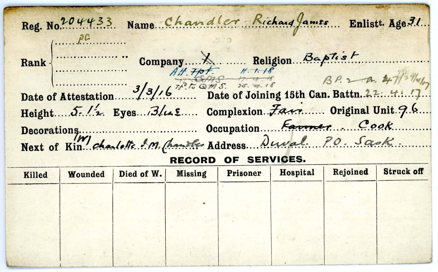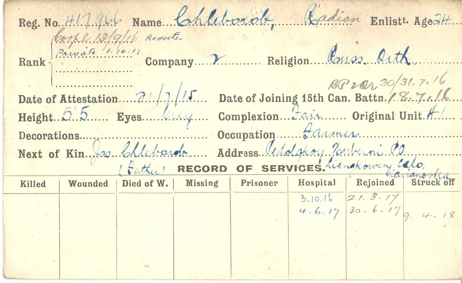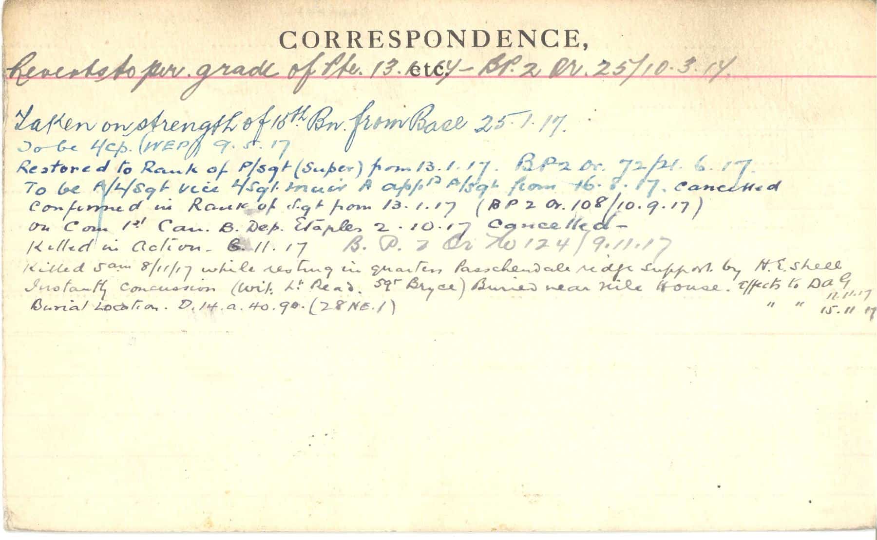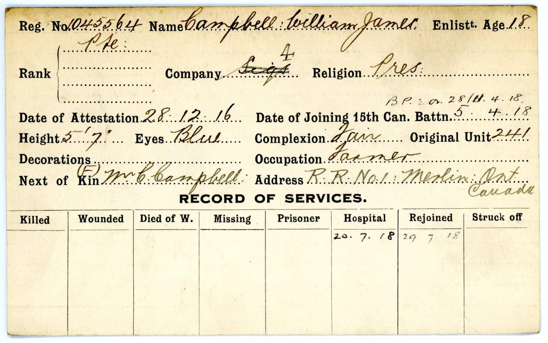 Record of Service Cards – C