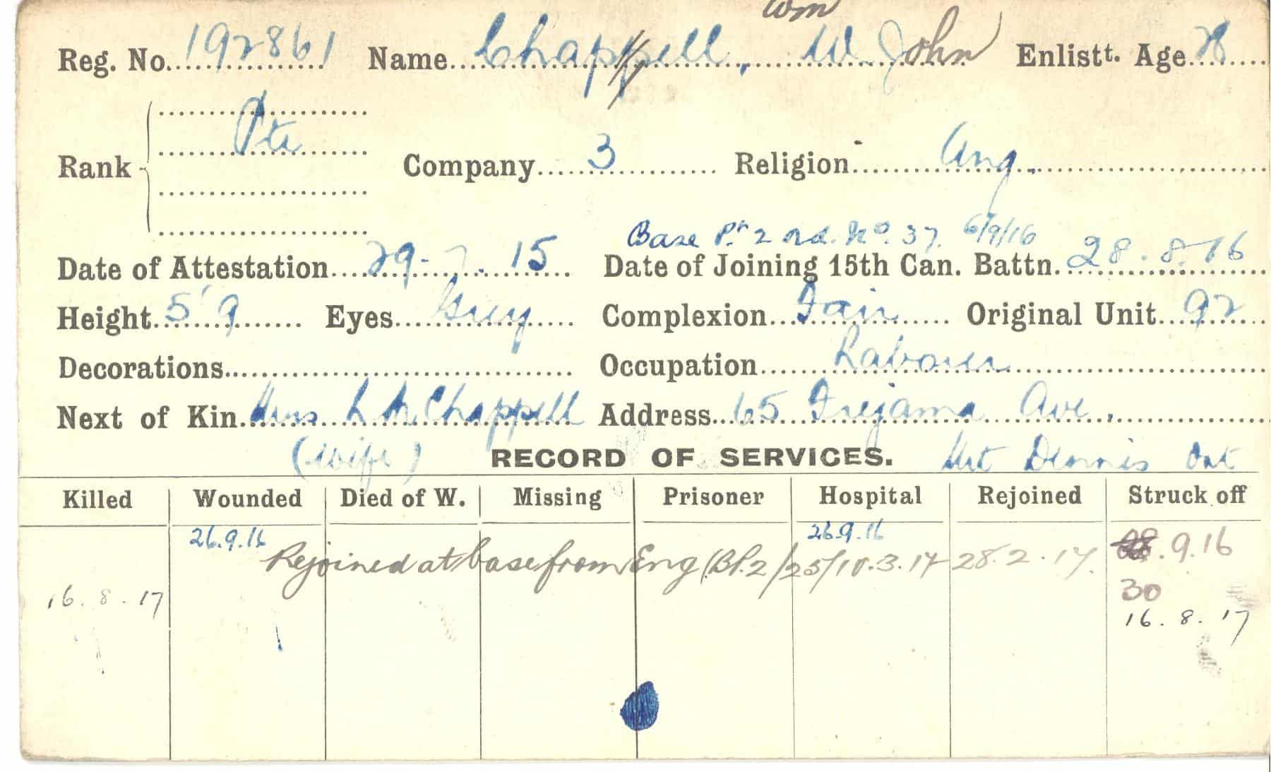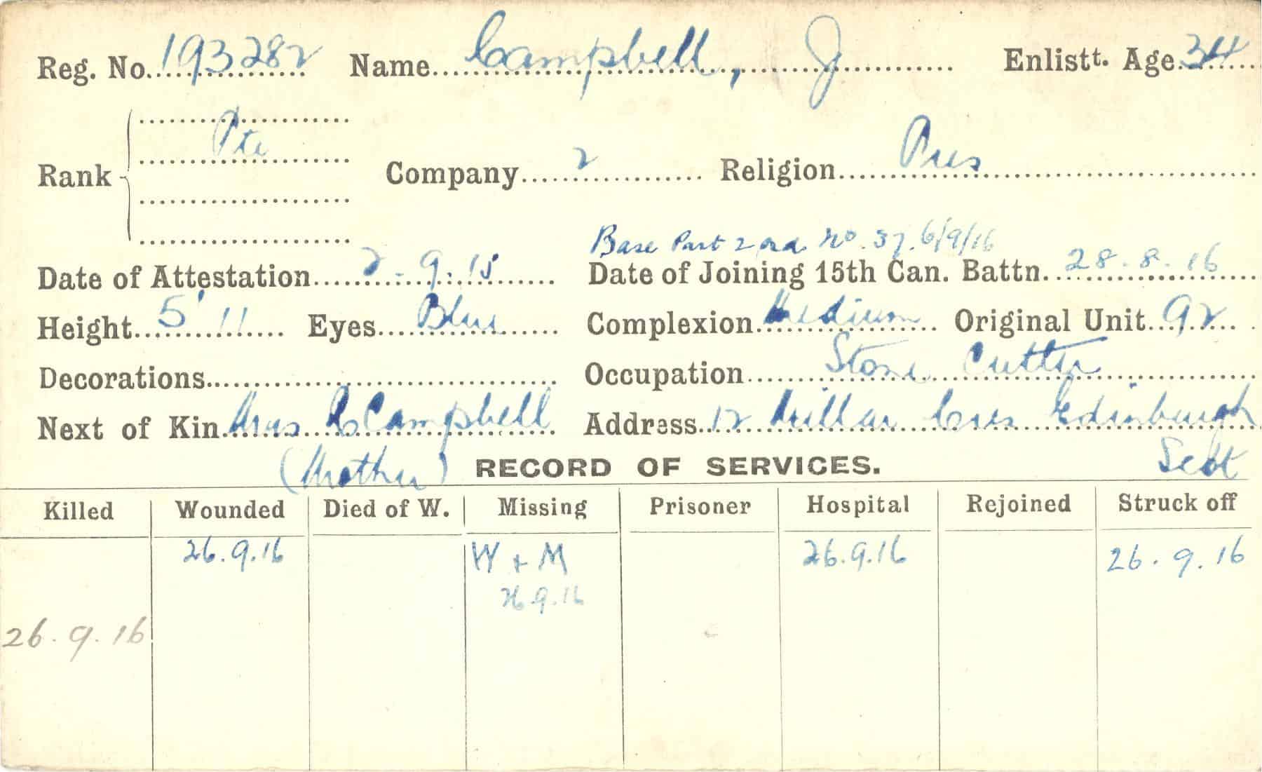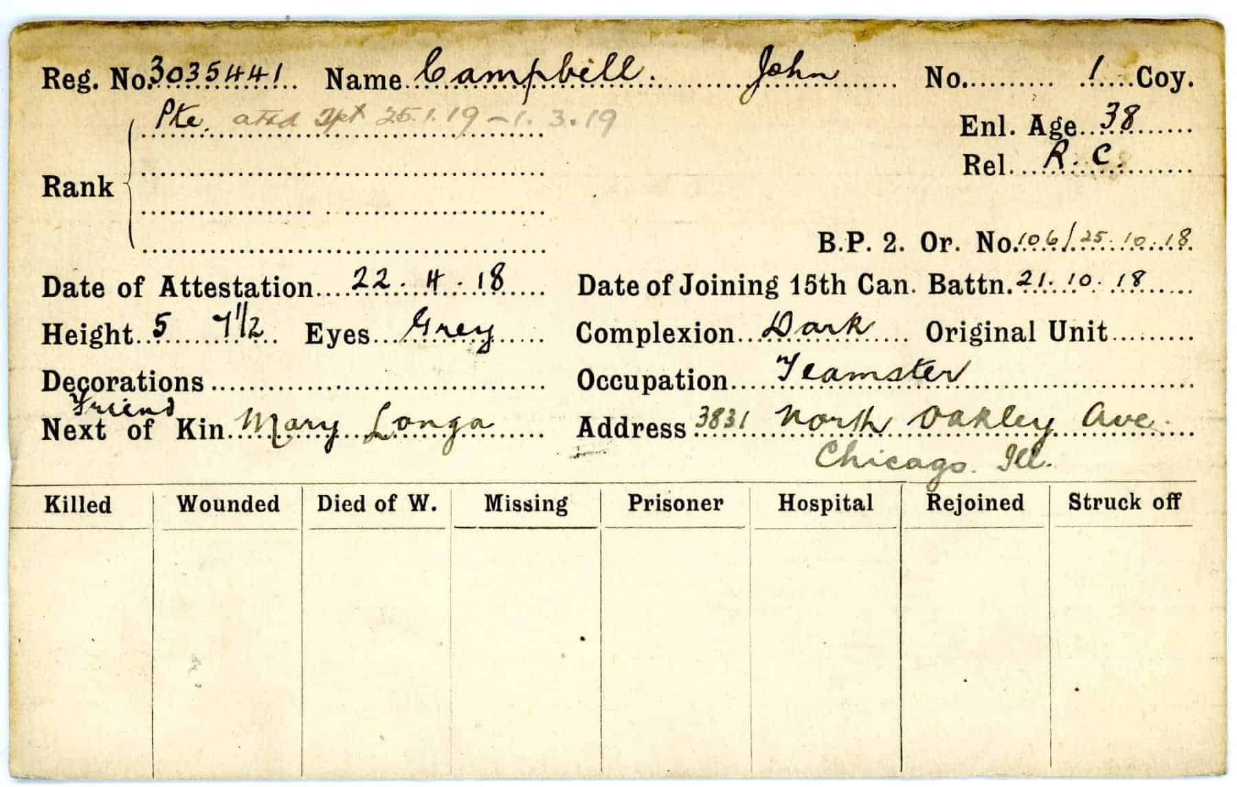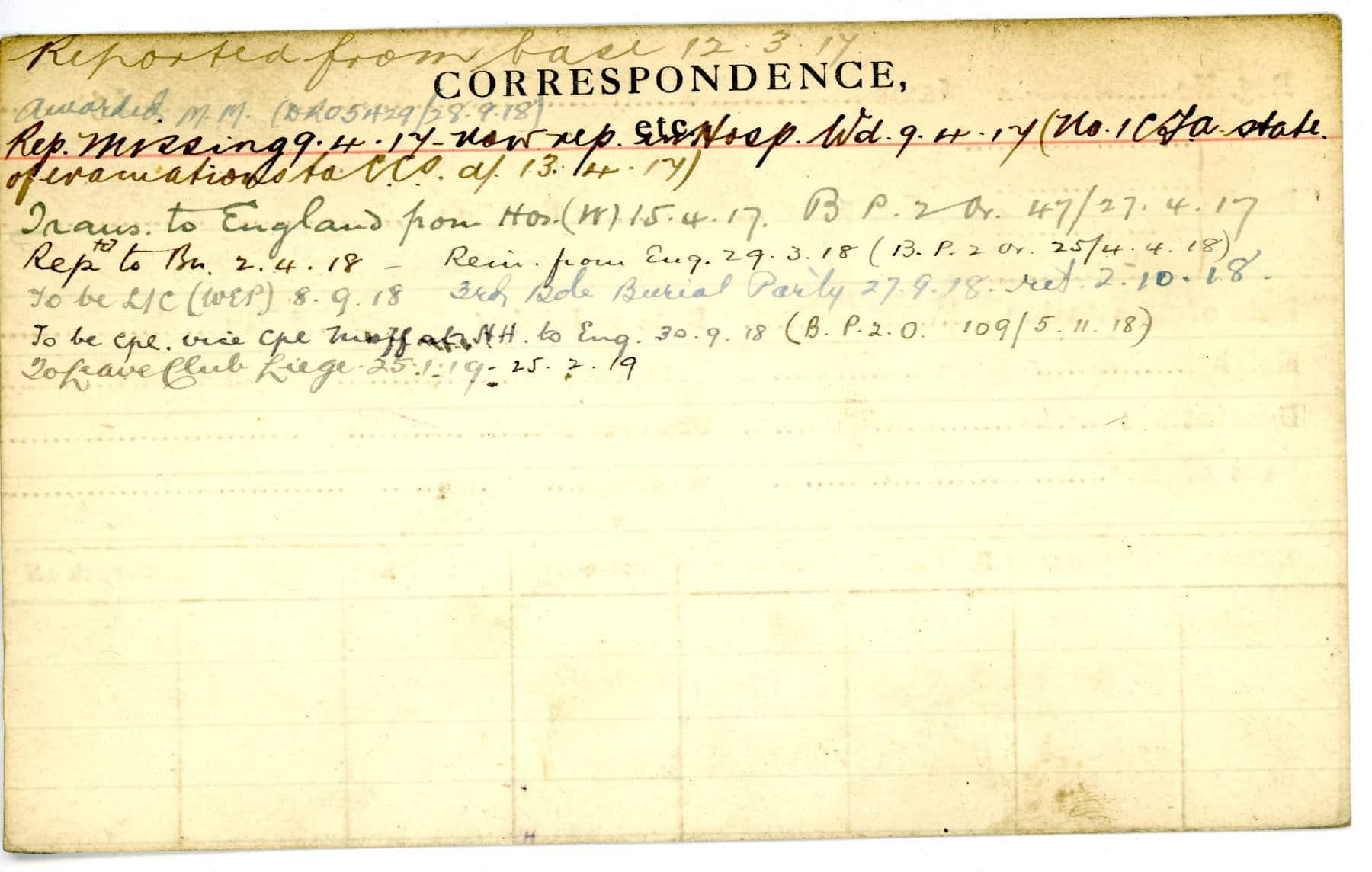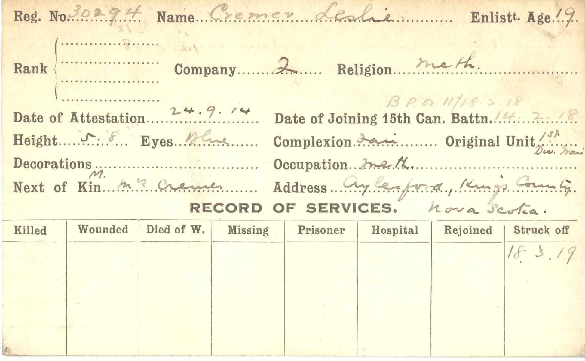 Record of Service Cards – C